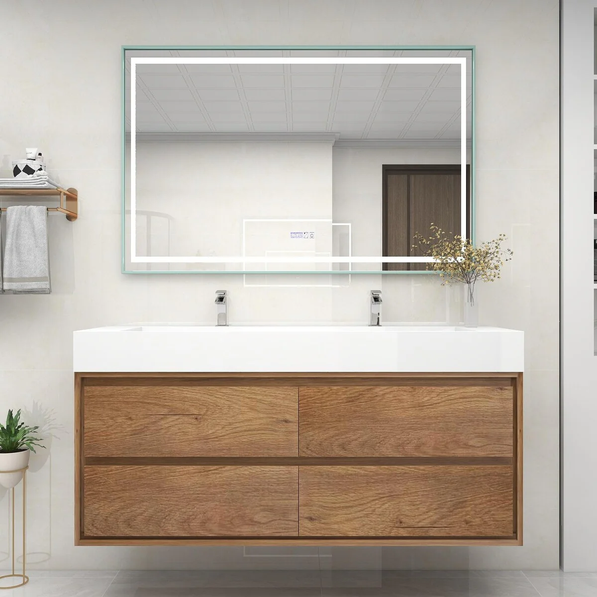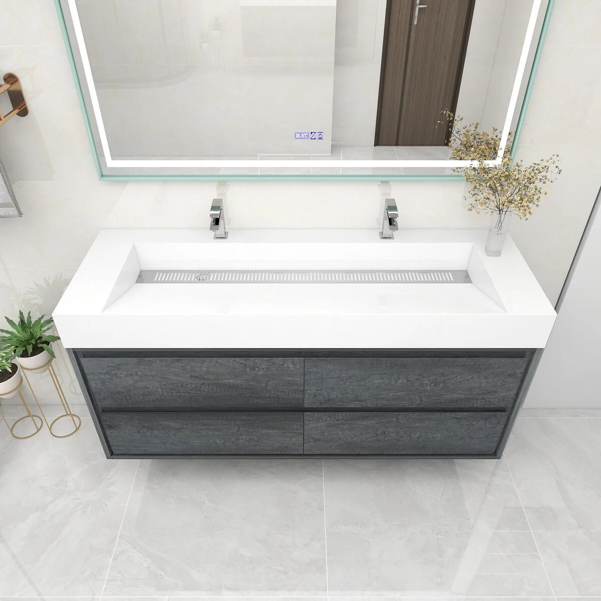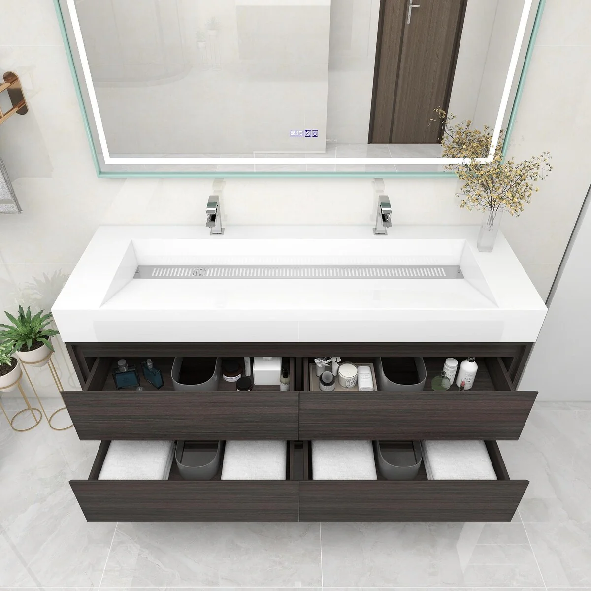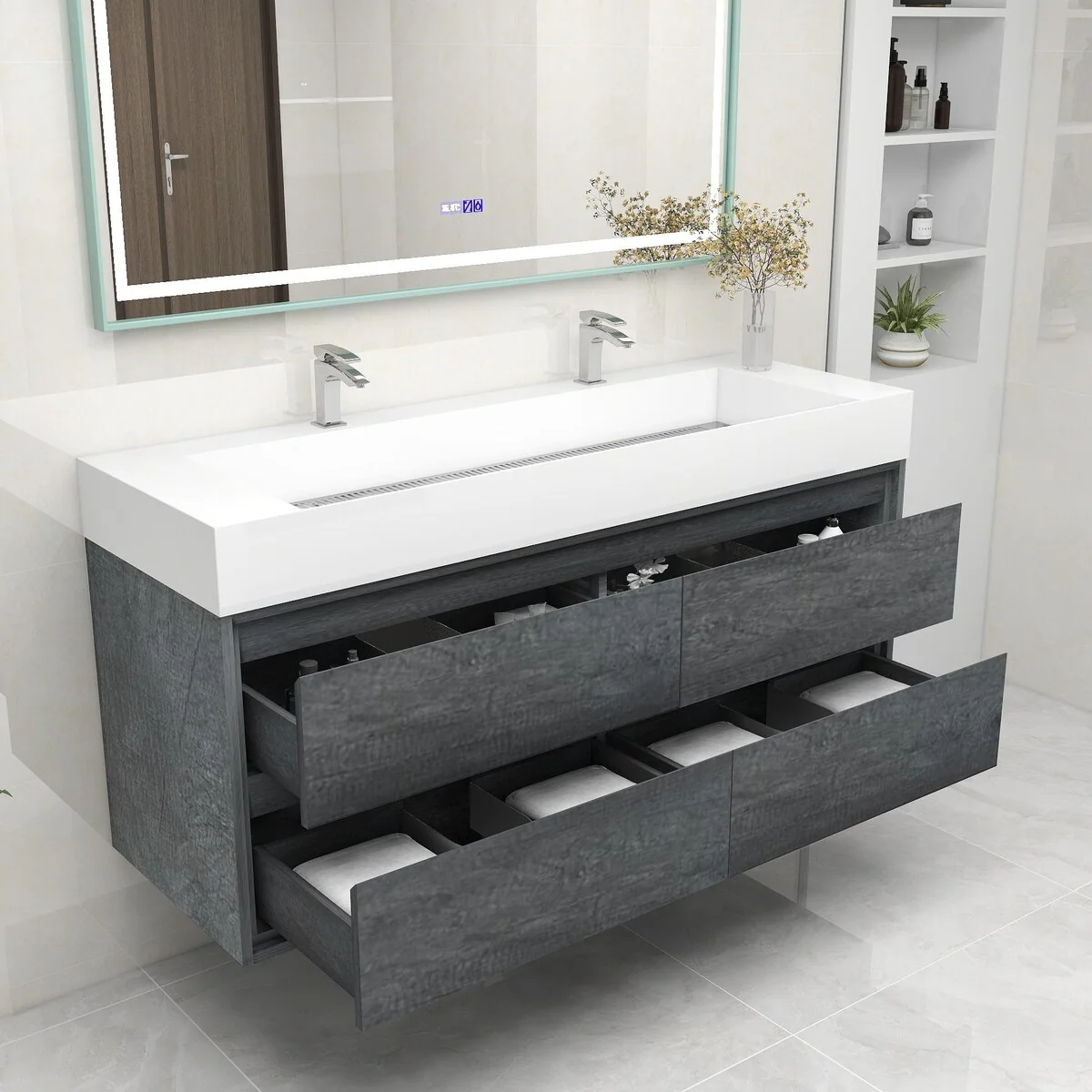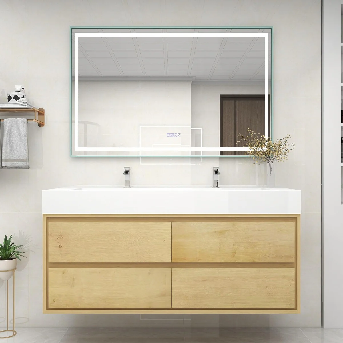- Modern Farmhouse Floating Bathroom Vanity Set with Sink, Natural Wood Bathroom Vanity