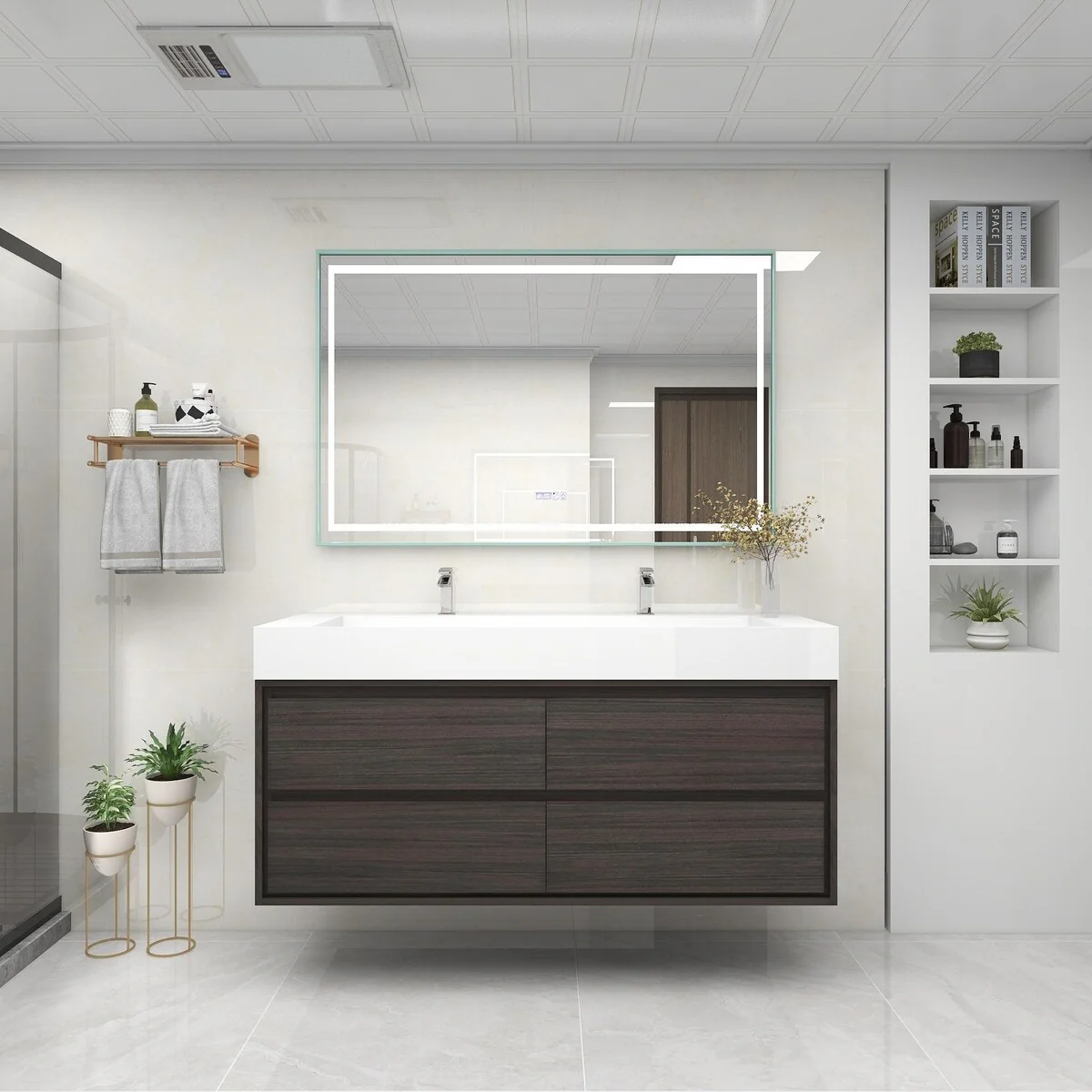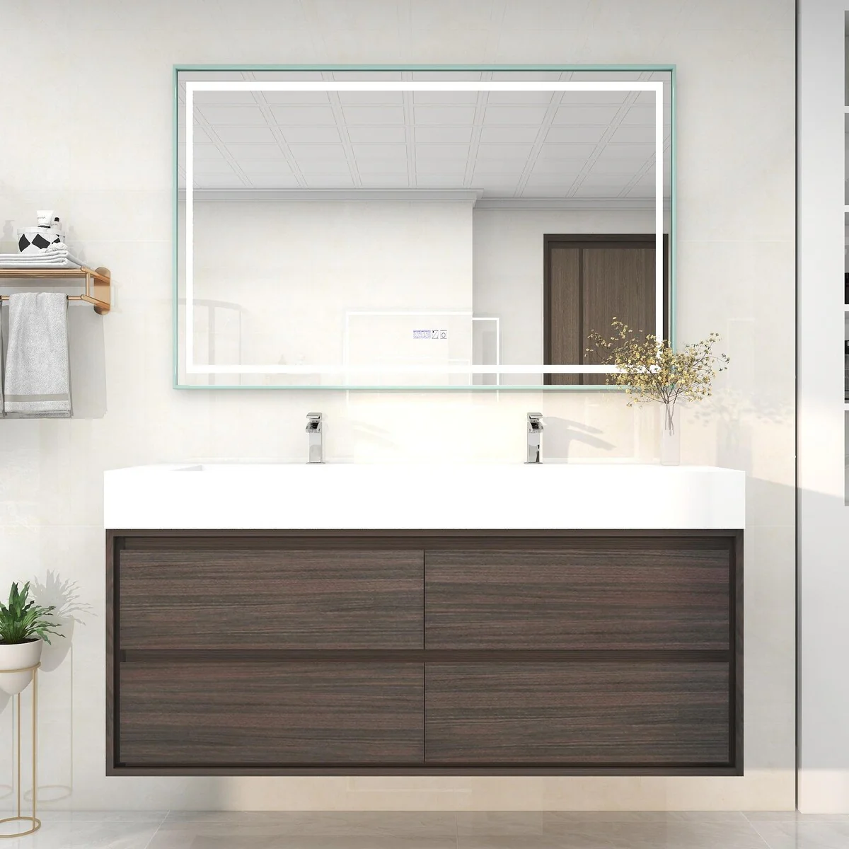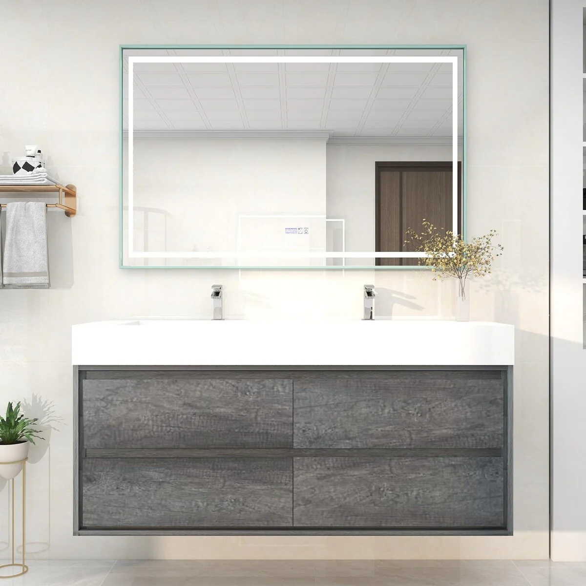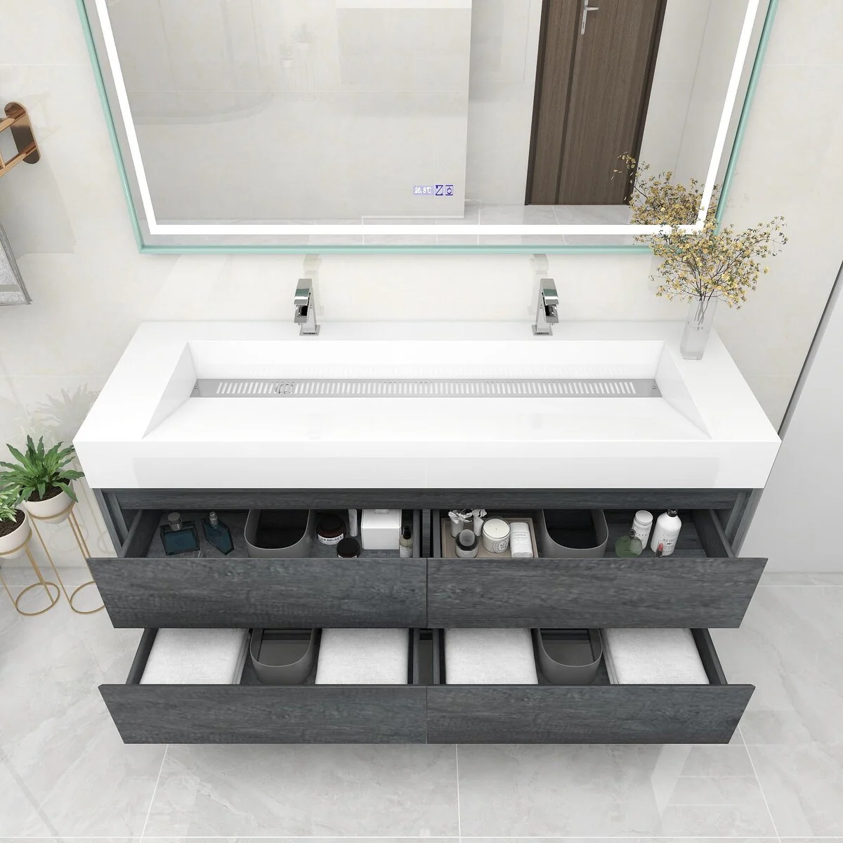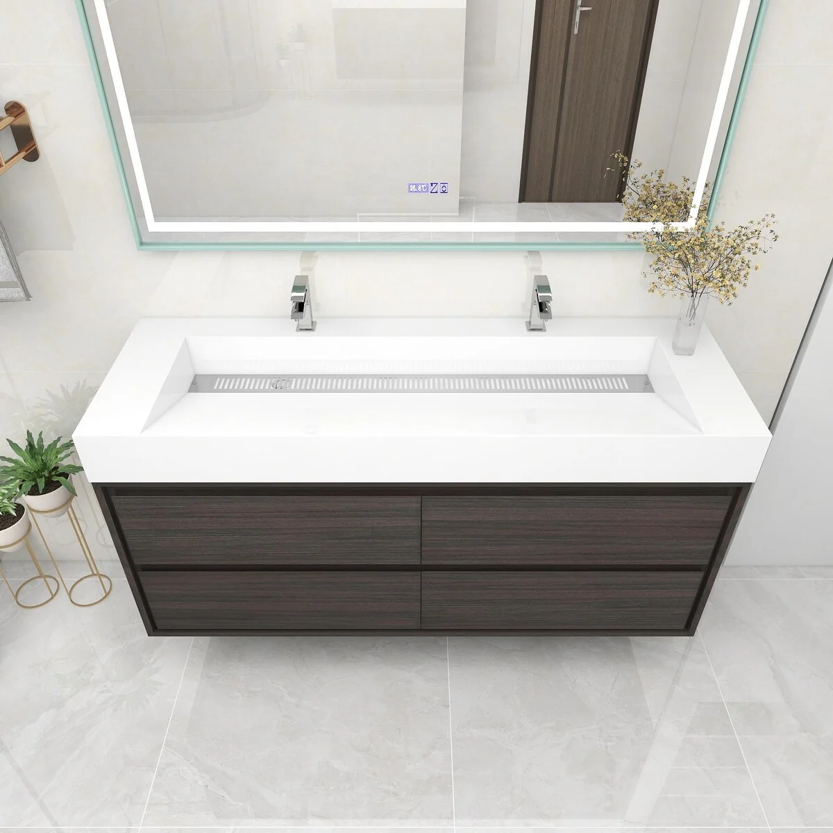 - Modern Farmhouse Floating Bathroom Vanity Set with Sink, Natural Wood Bathroom Vanity