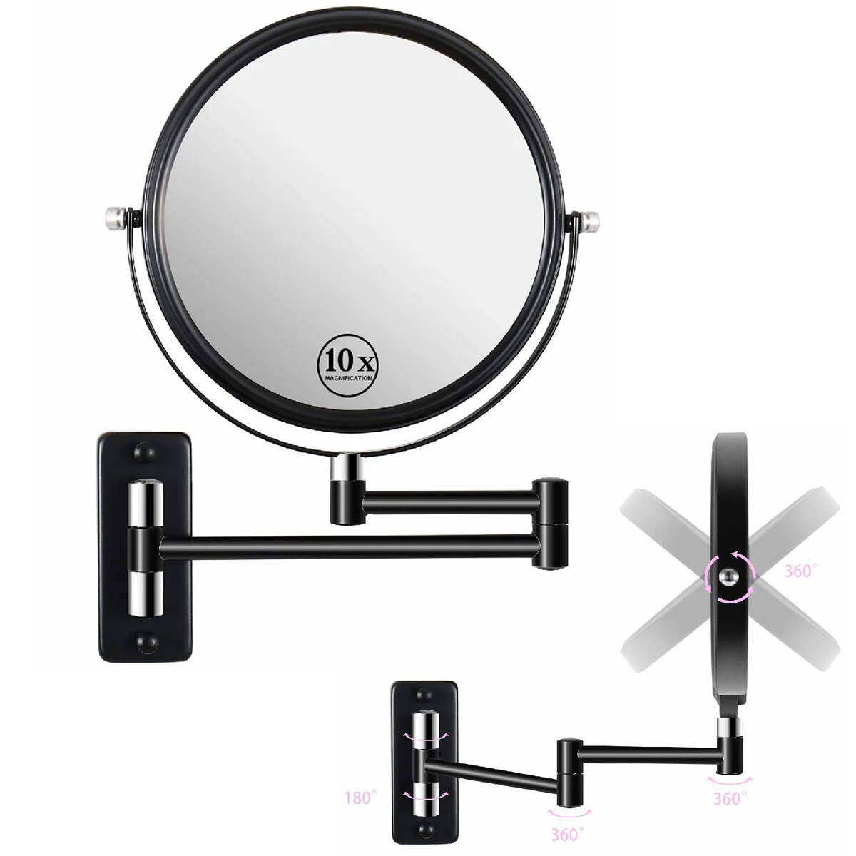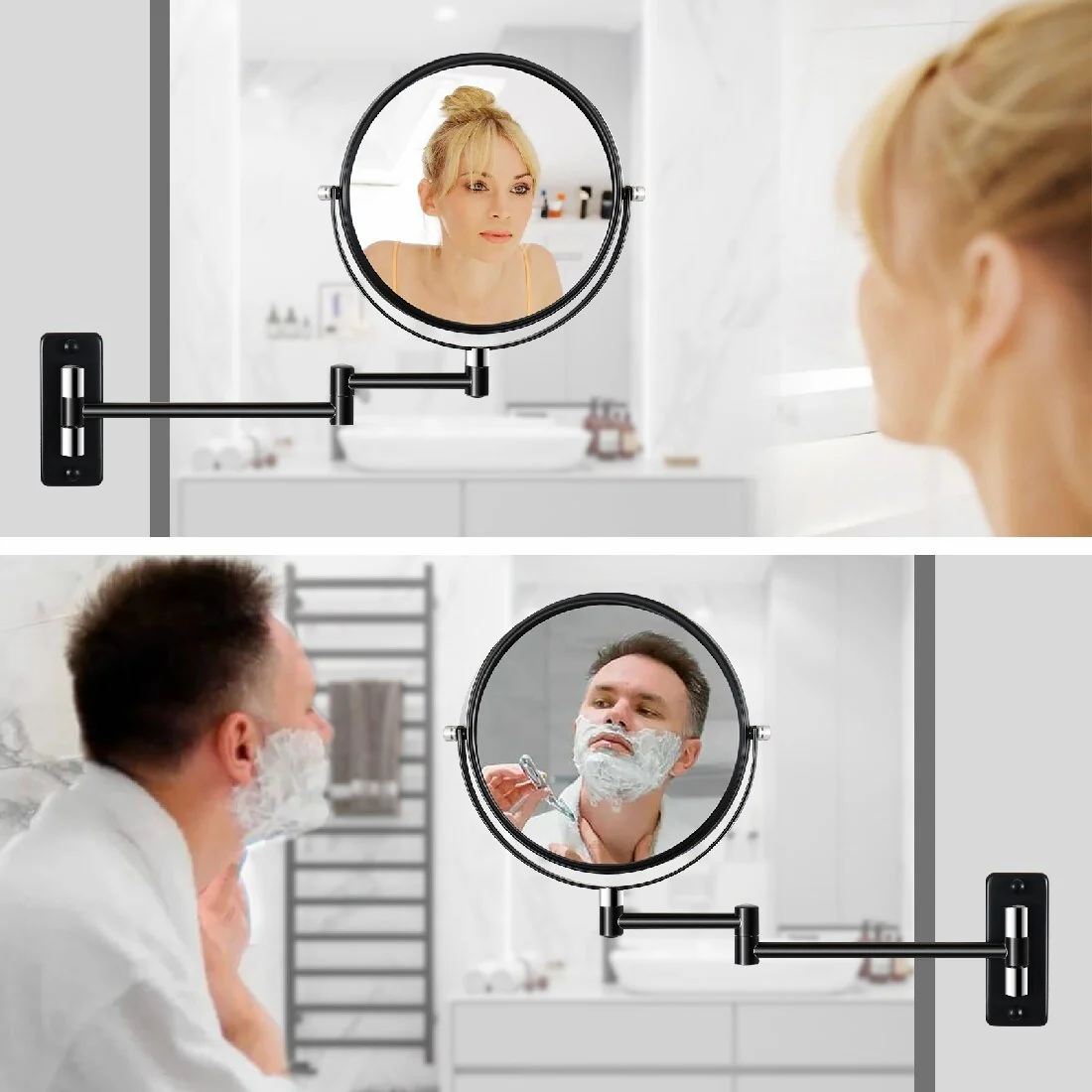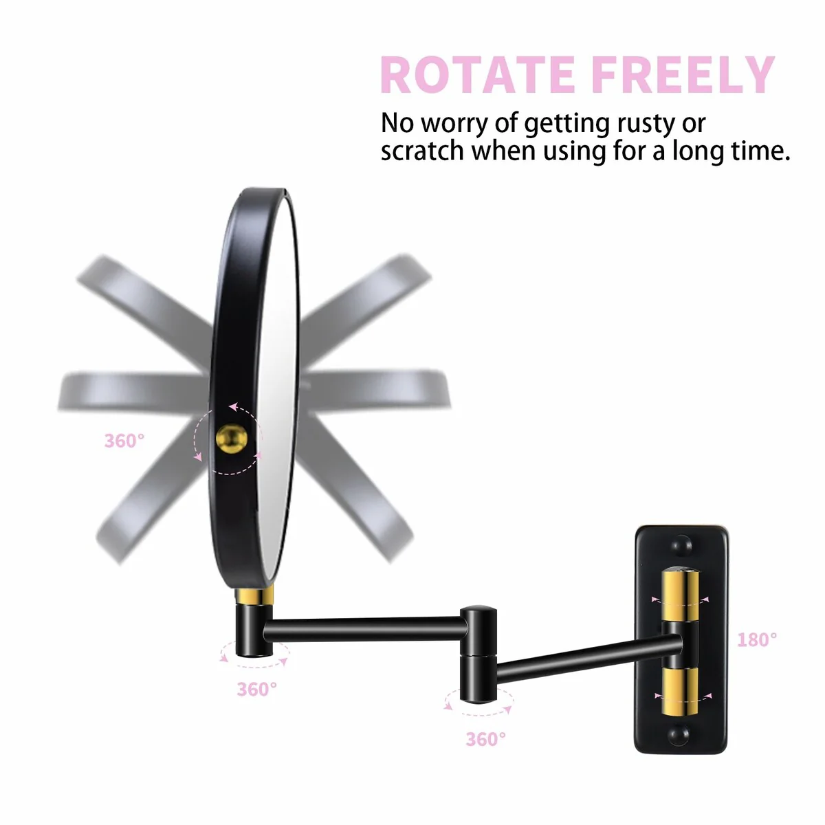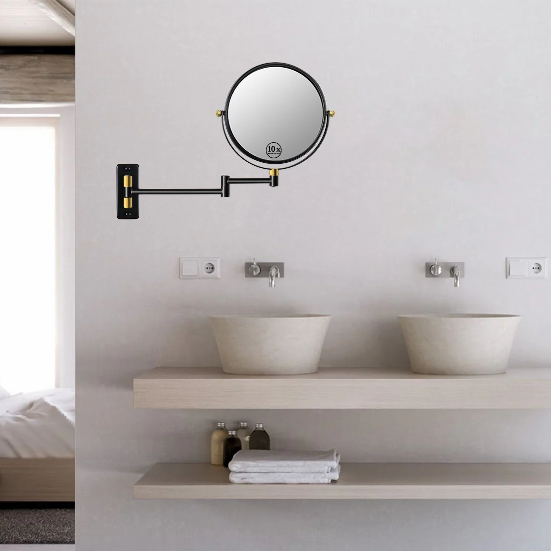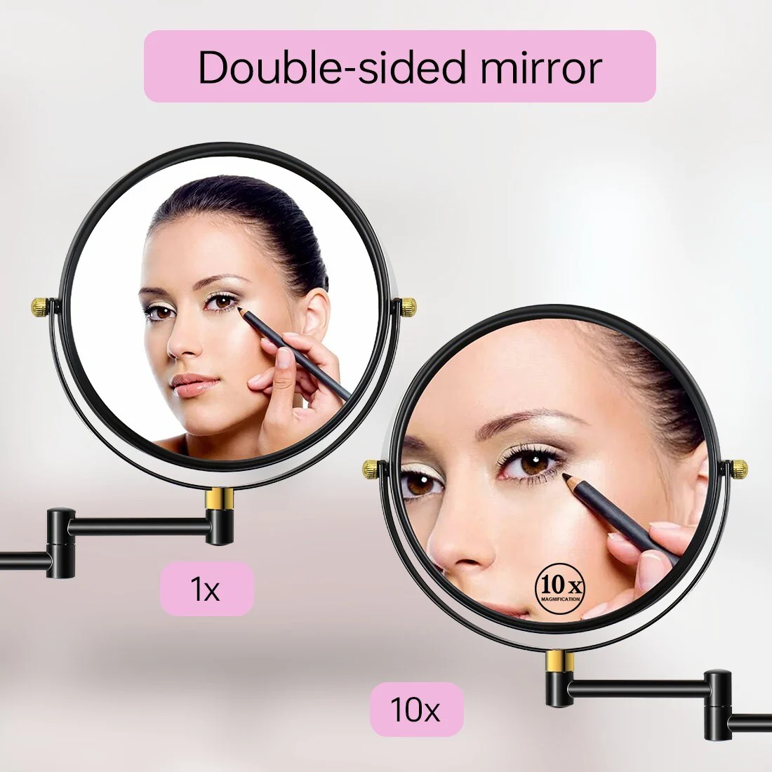 Do you often fail to illuminate your face because of insufficient distance? Like you recommend this makeup mirror with extension arm can be double-sided 1X/10X magnification, 10X magnification can clearly see the details of your face for perfect makeup; 1X face is suitable for overall observation.360掳 rotating design and extension arm make the mirror can be adjusted at any angle, convenient for you to observe. The extension arm design allows you to adjust the length as you like in the bathroom. The bottom of the mirror is equipped with a sturdy fixing device, which can be firmly mounted on the wall to ensure stability and safety when in use. Create your perfect look with this exquisite wall mirror!