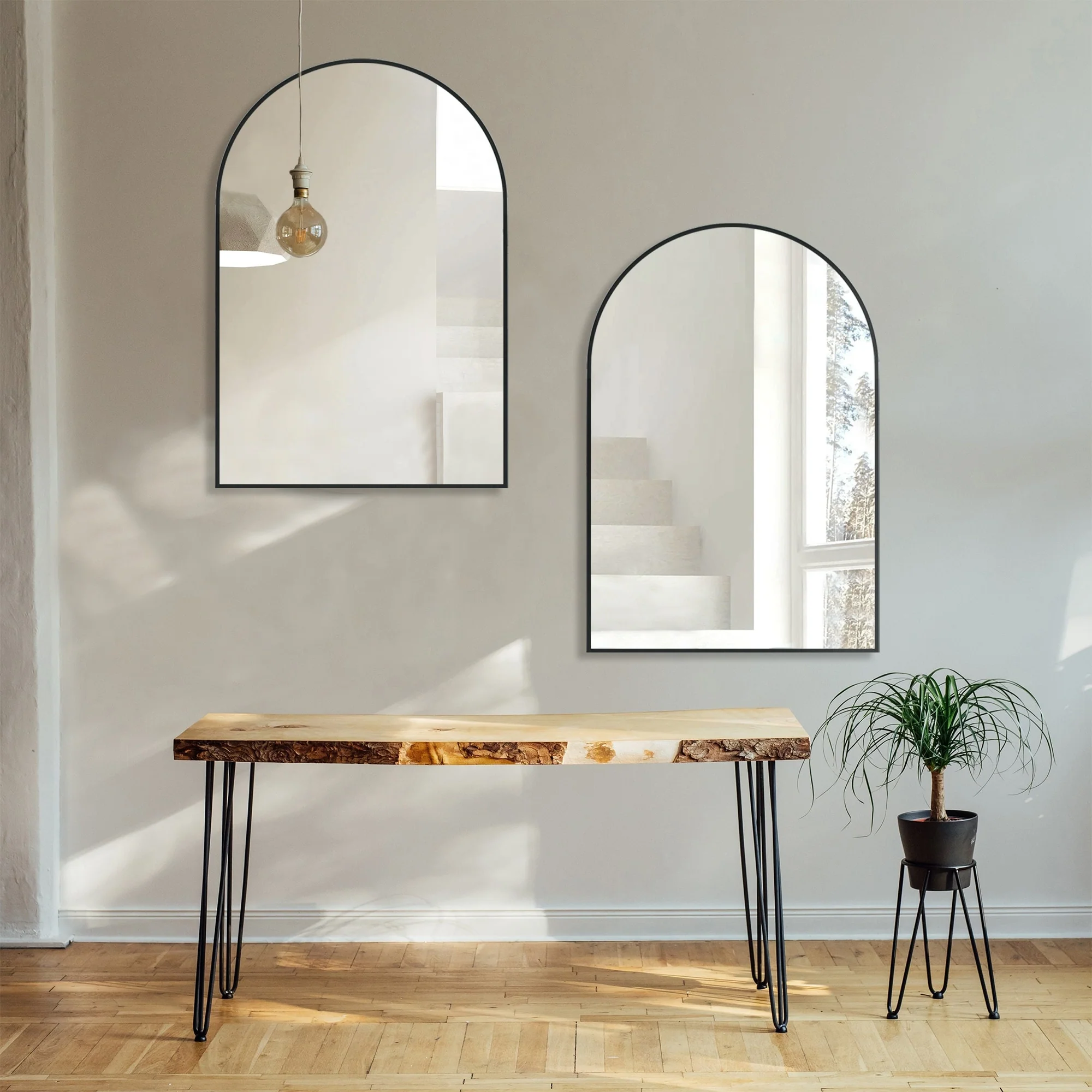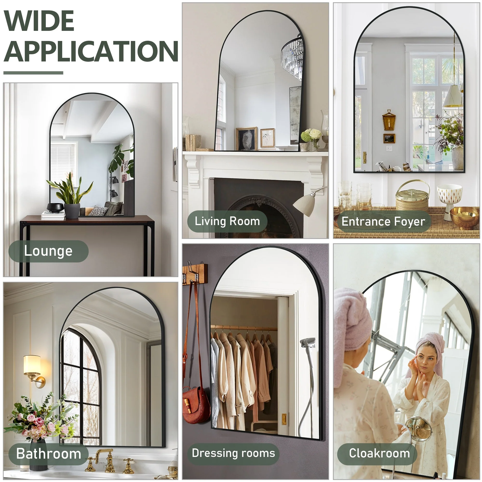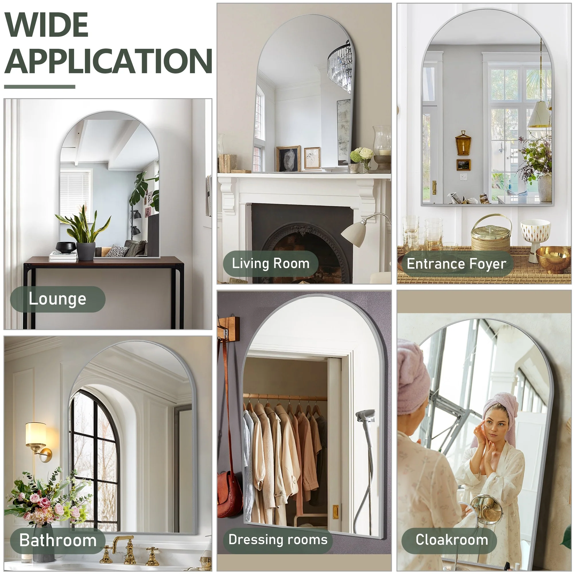 All-Match Arched Mirrors: Versatile and stylish, these arched bathroom mirrors can be hung on the wall or leaned against it, making them perfect for your bathroom, dining room, powder room, dresser unit, entryway, or as a mantle decoration above your fireplace.