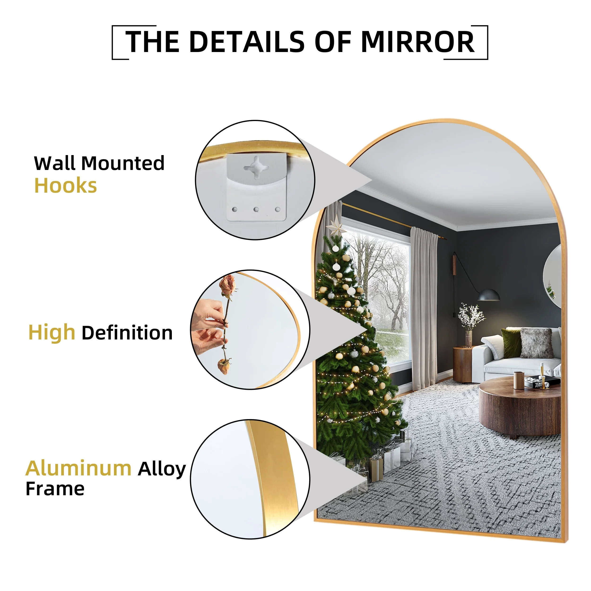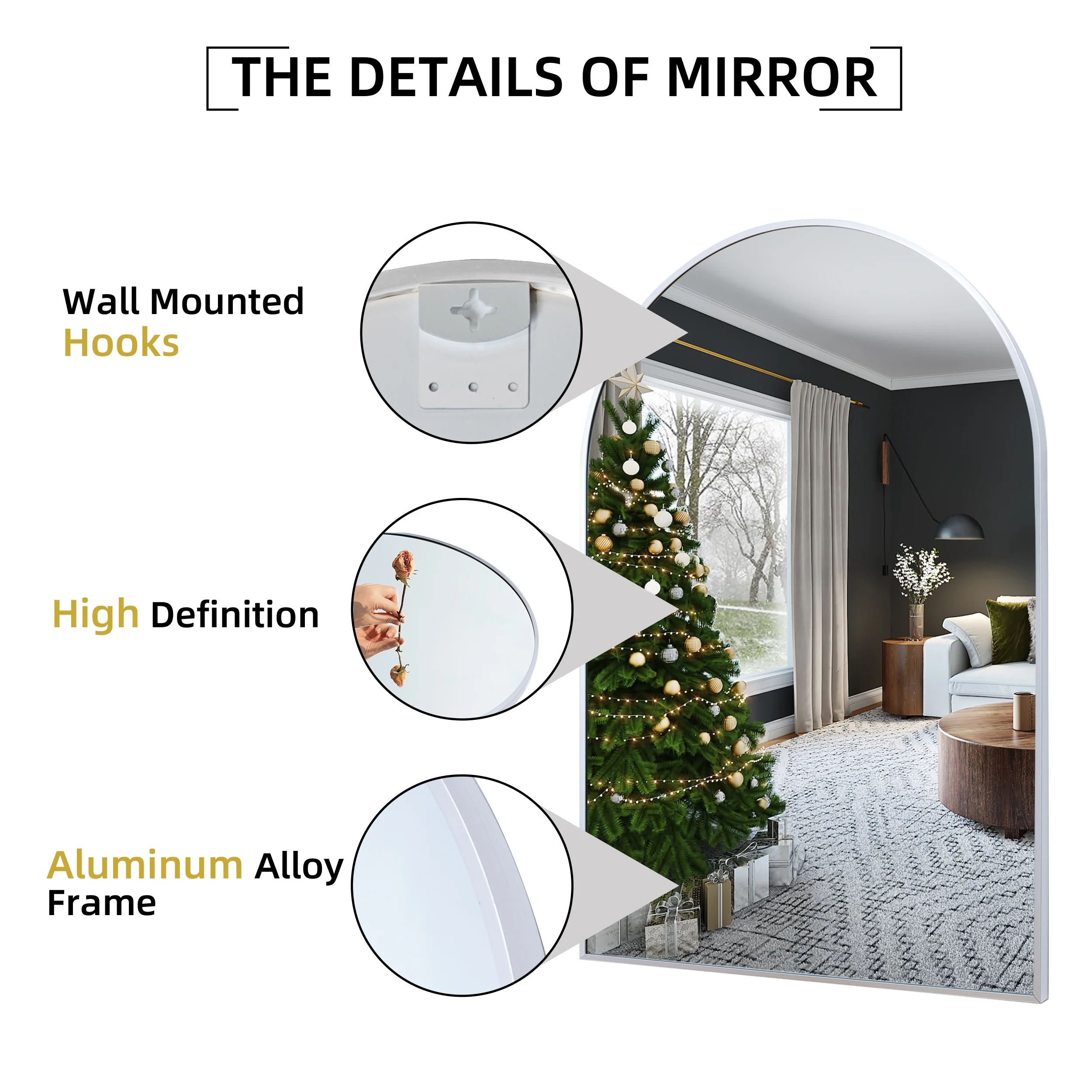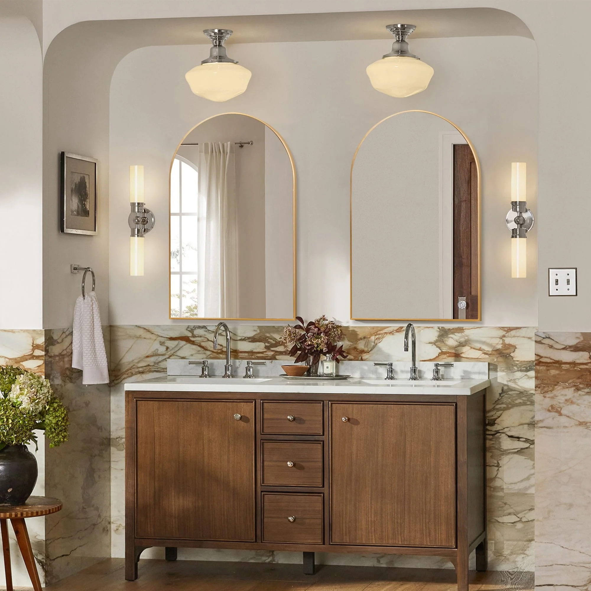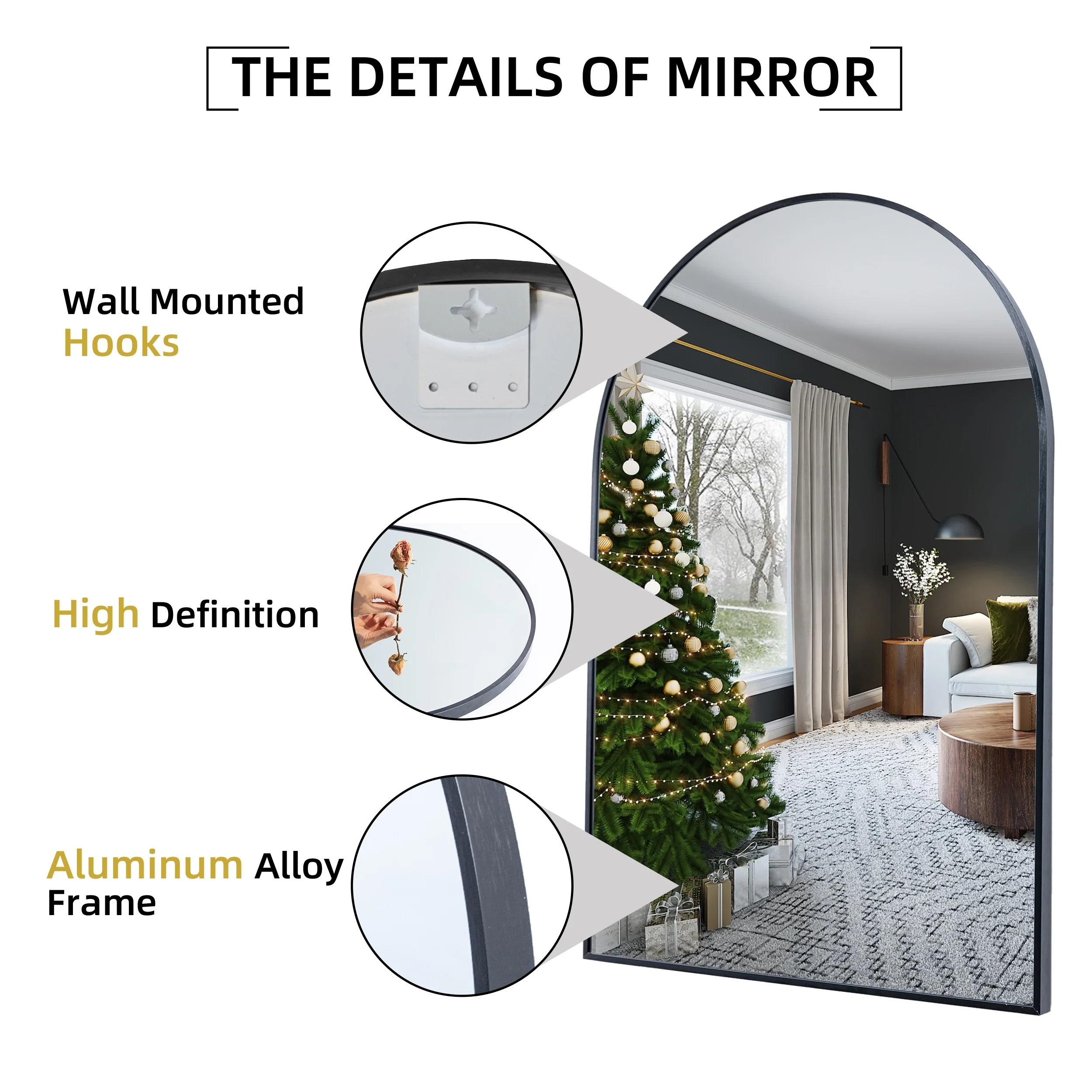 All-Match Arched Mirrors: Versatile and stylish, these arched bathroom mirrors can be hung on the wall or leaned against it, making them perfect for your bathroom, dining room, powder room, dresser unit, entryway, or as a mantle decoration above your fireplace.