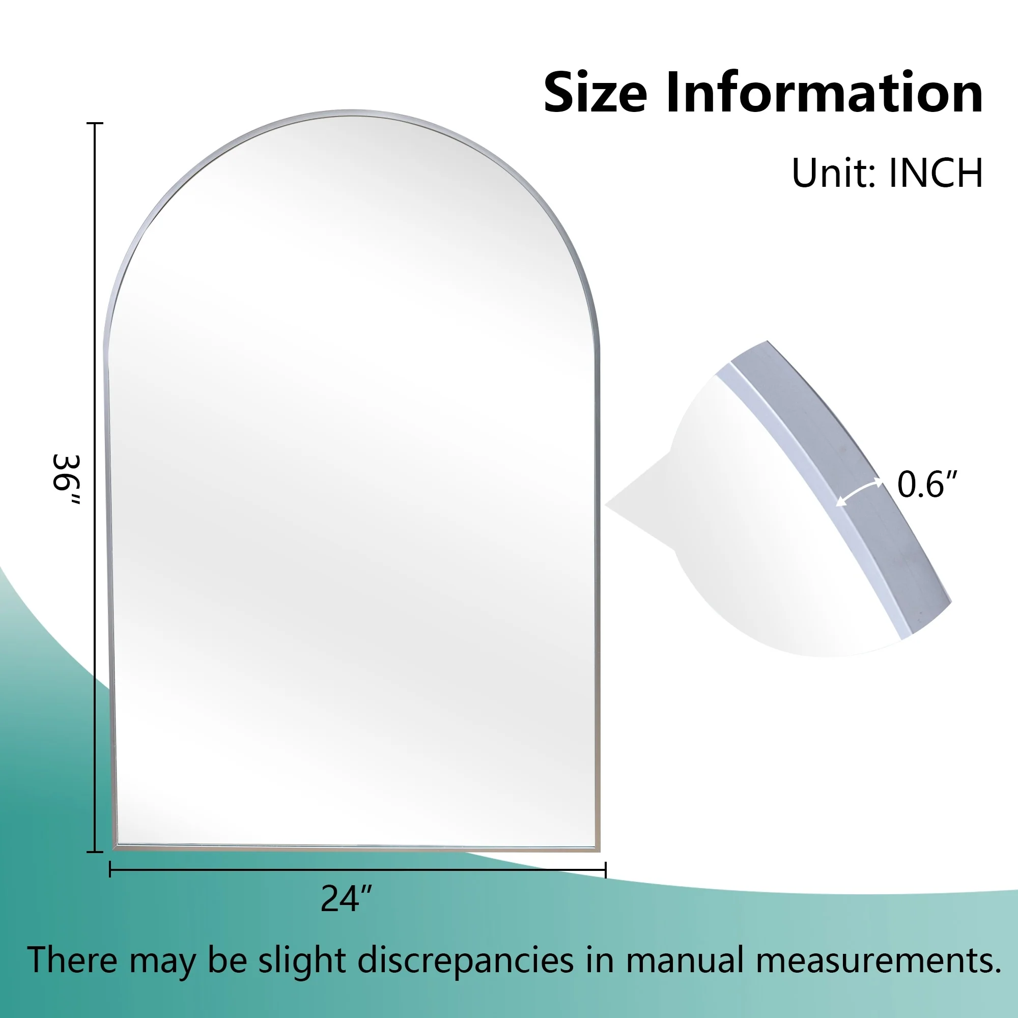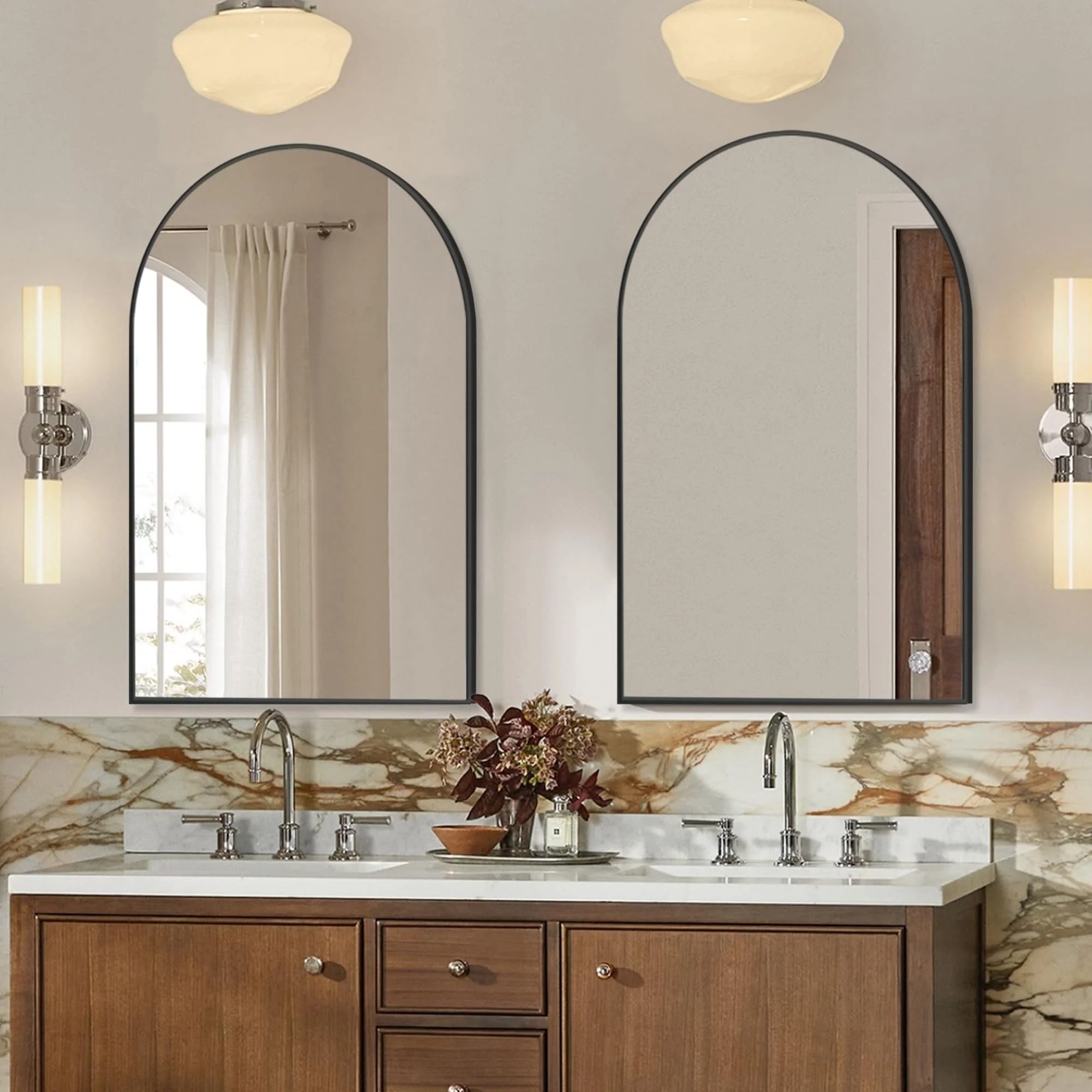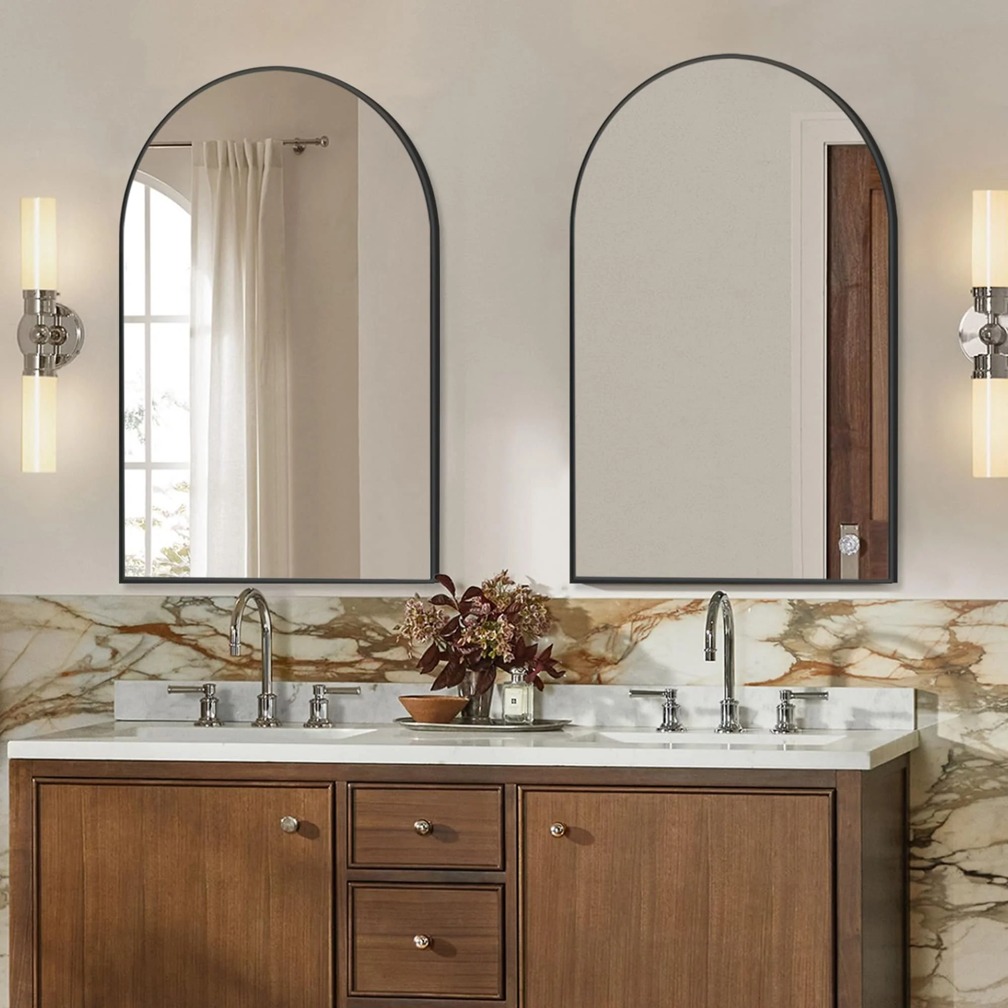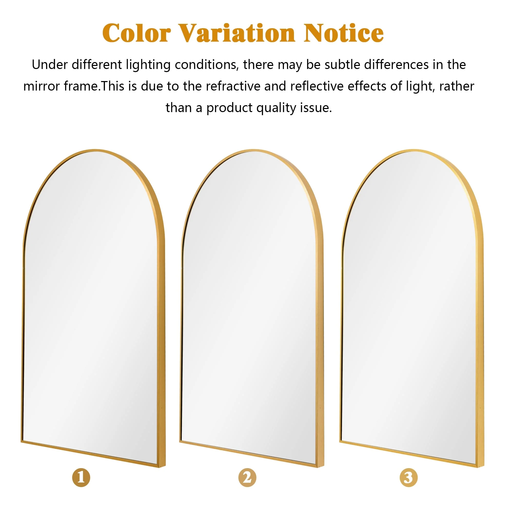 Guaranteed Quality: �These 2 pieces of arch bathroom mirrors feature sturdy stainless steel metal frames that encase the tempered glass, ensuring durability and an extended lifespan.