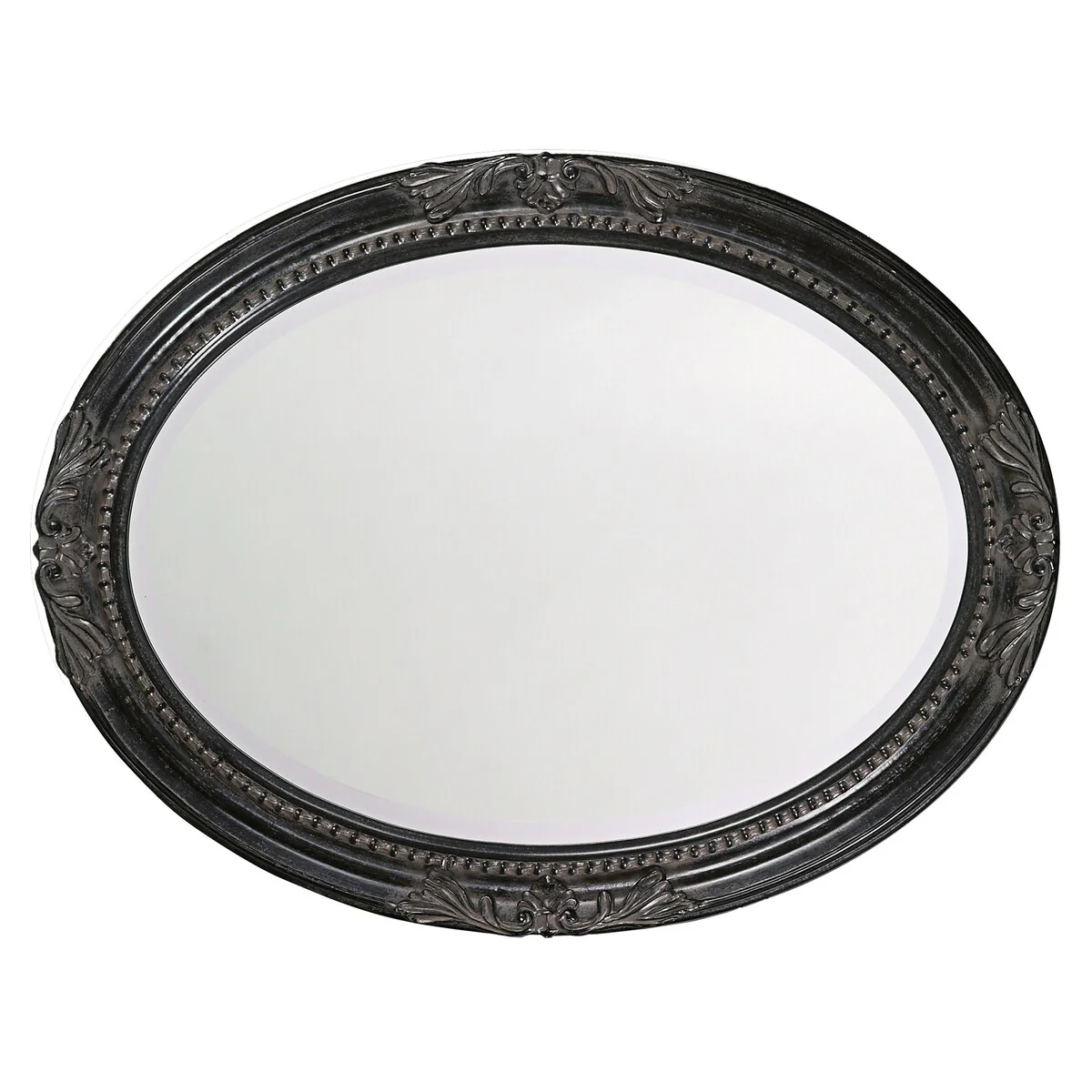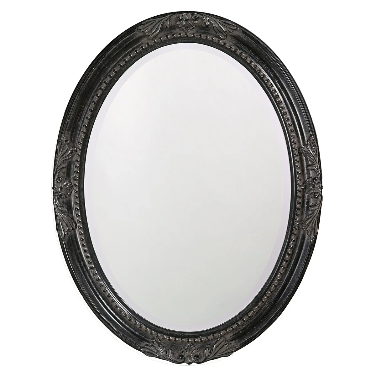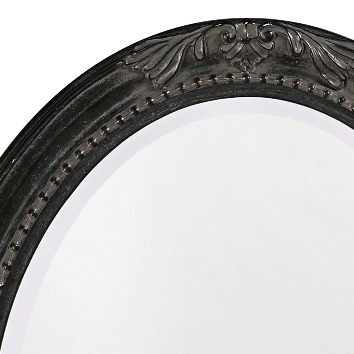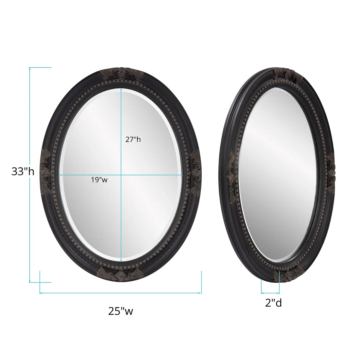 Add some vintage charm to your space with the Queen Ann Antique Black Oval Wall Mirror. The wooden frame with an antique black finish features a beaded textured inset and decorative adornments on either side of the frame, adding just the right amount of detail to this stunning piece. The one-inch bevel on the mirror enhances its overall appeal. This versatile mirror is perfect for any room in your home, from the entryway to the bedroom. Ready to hang either horizontally or vertically, this mirror is a must-have for anyone looking to add a touch of elegance to their decor.