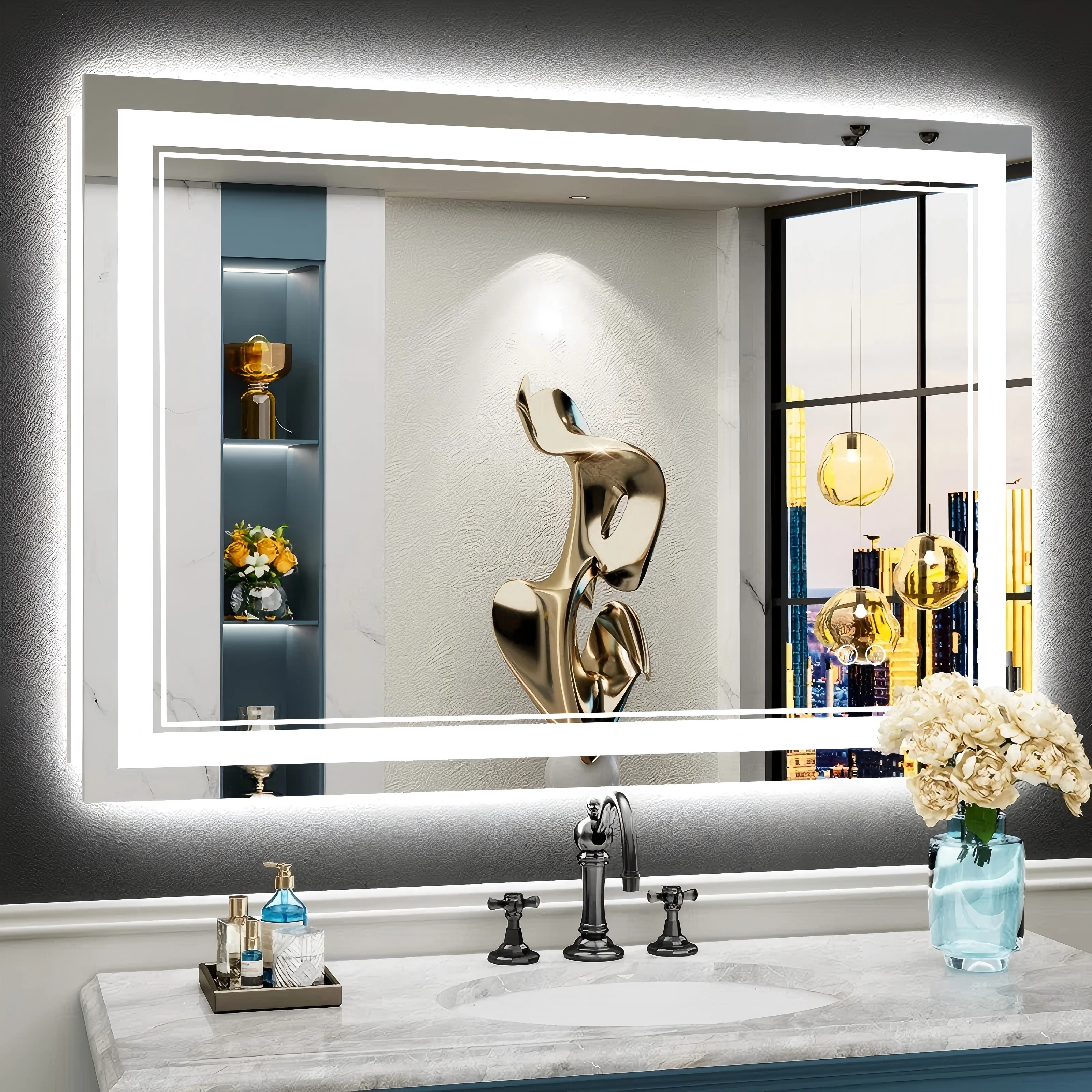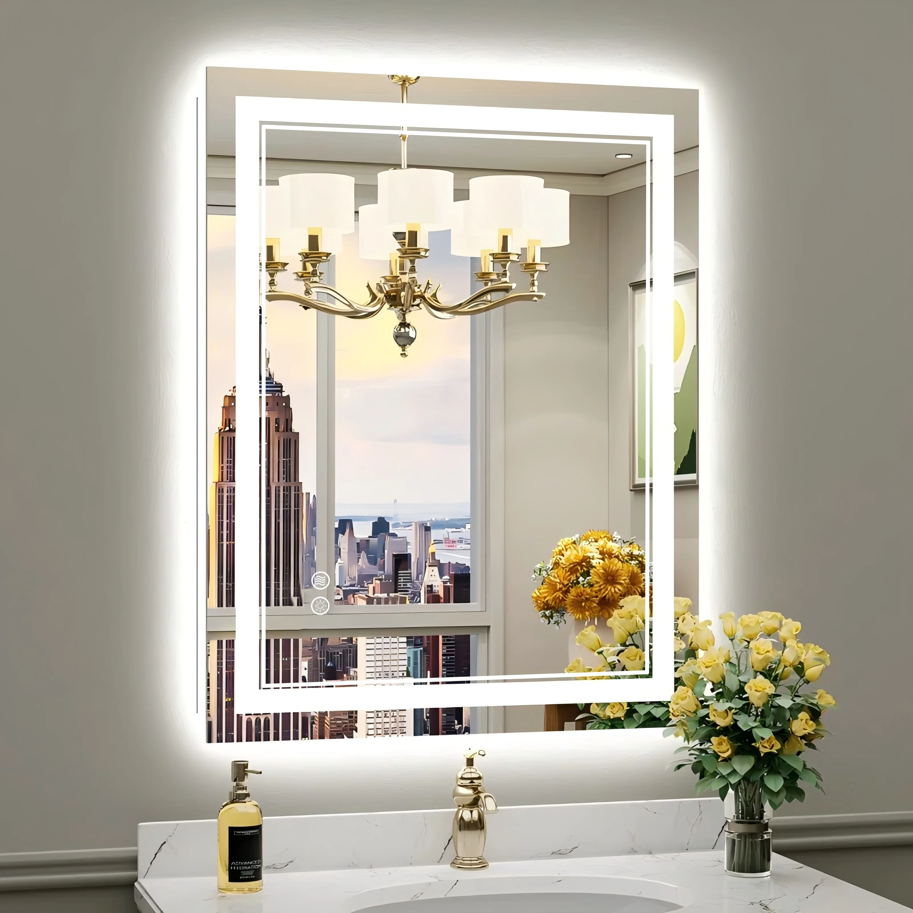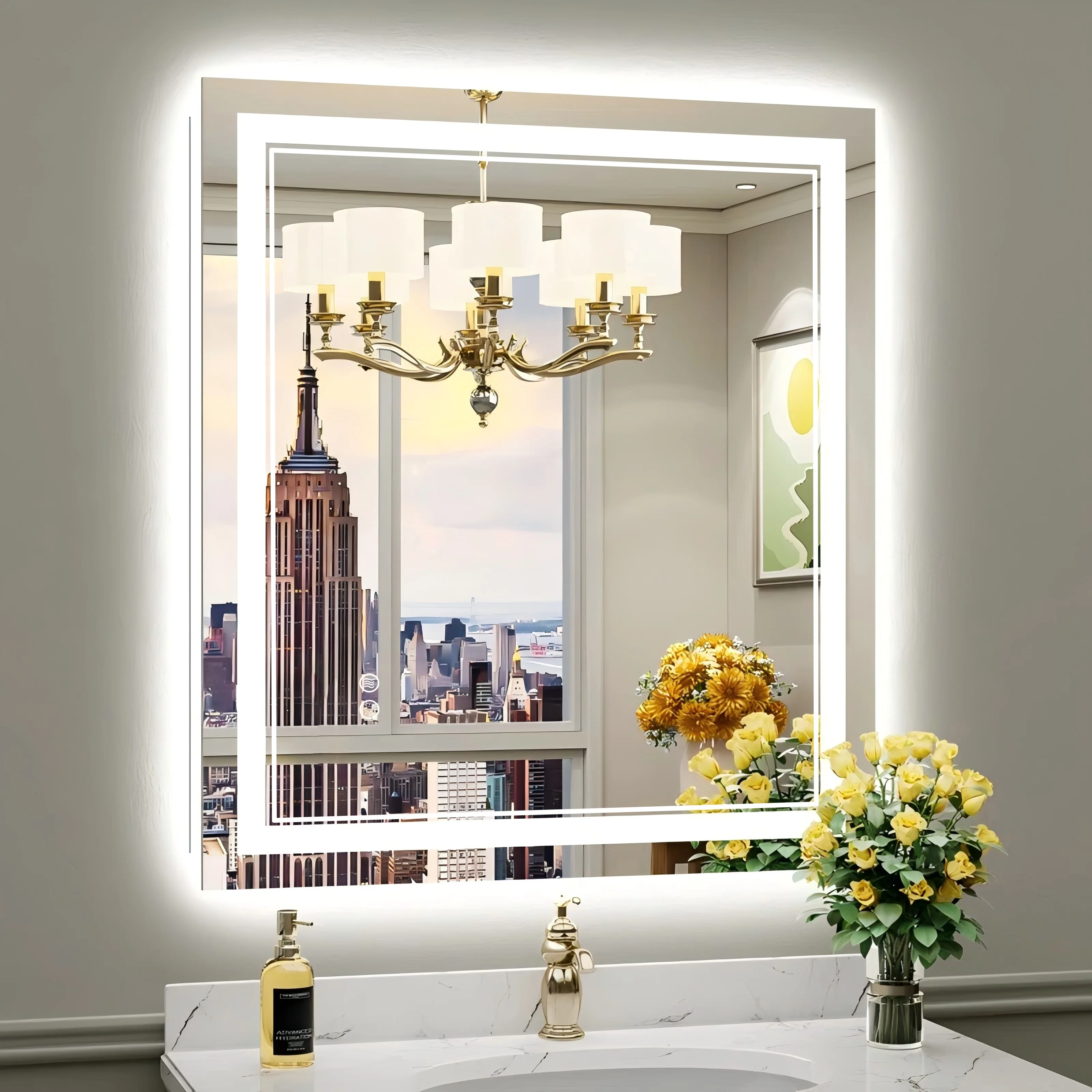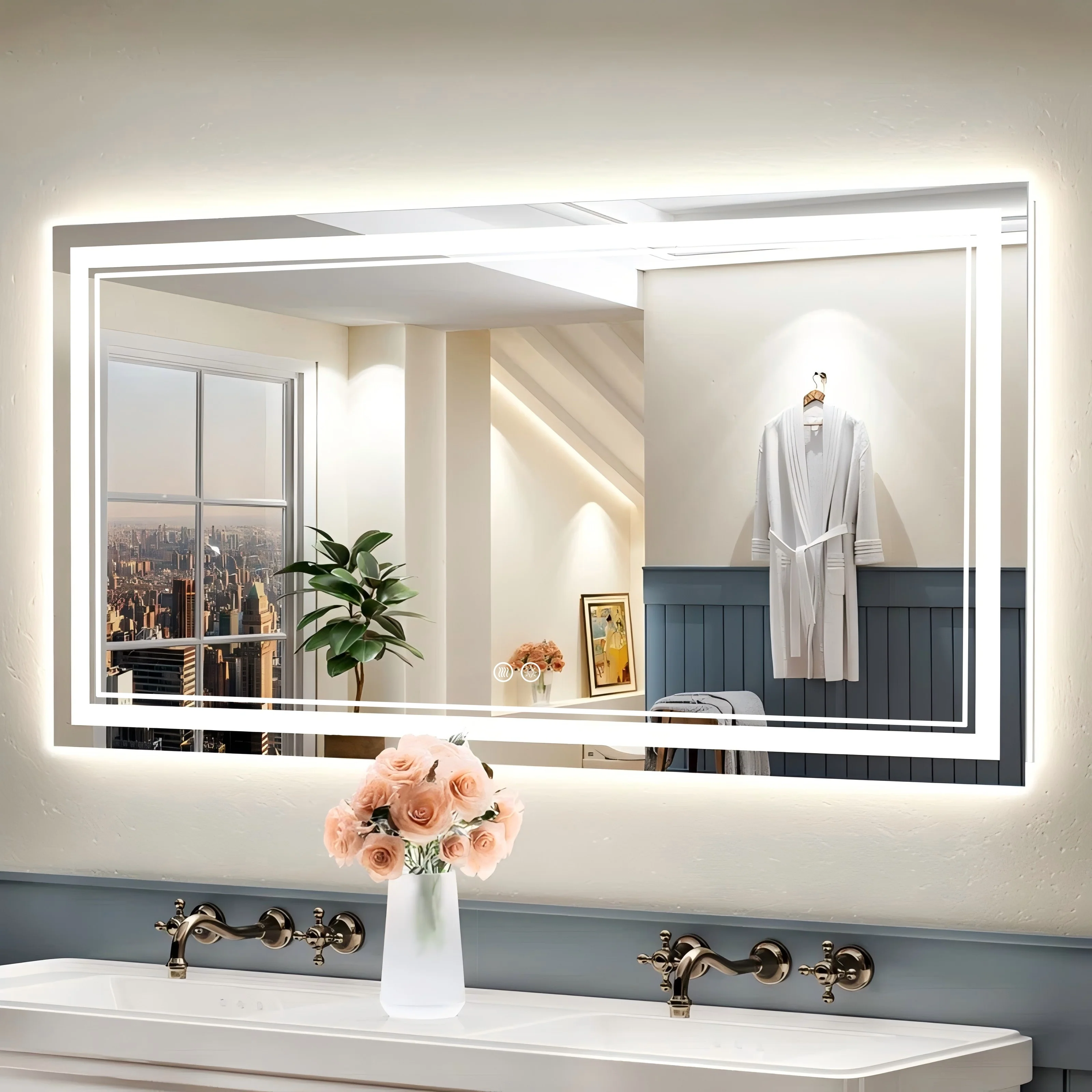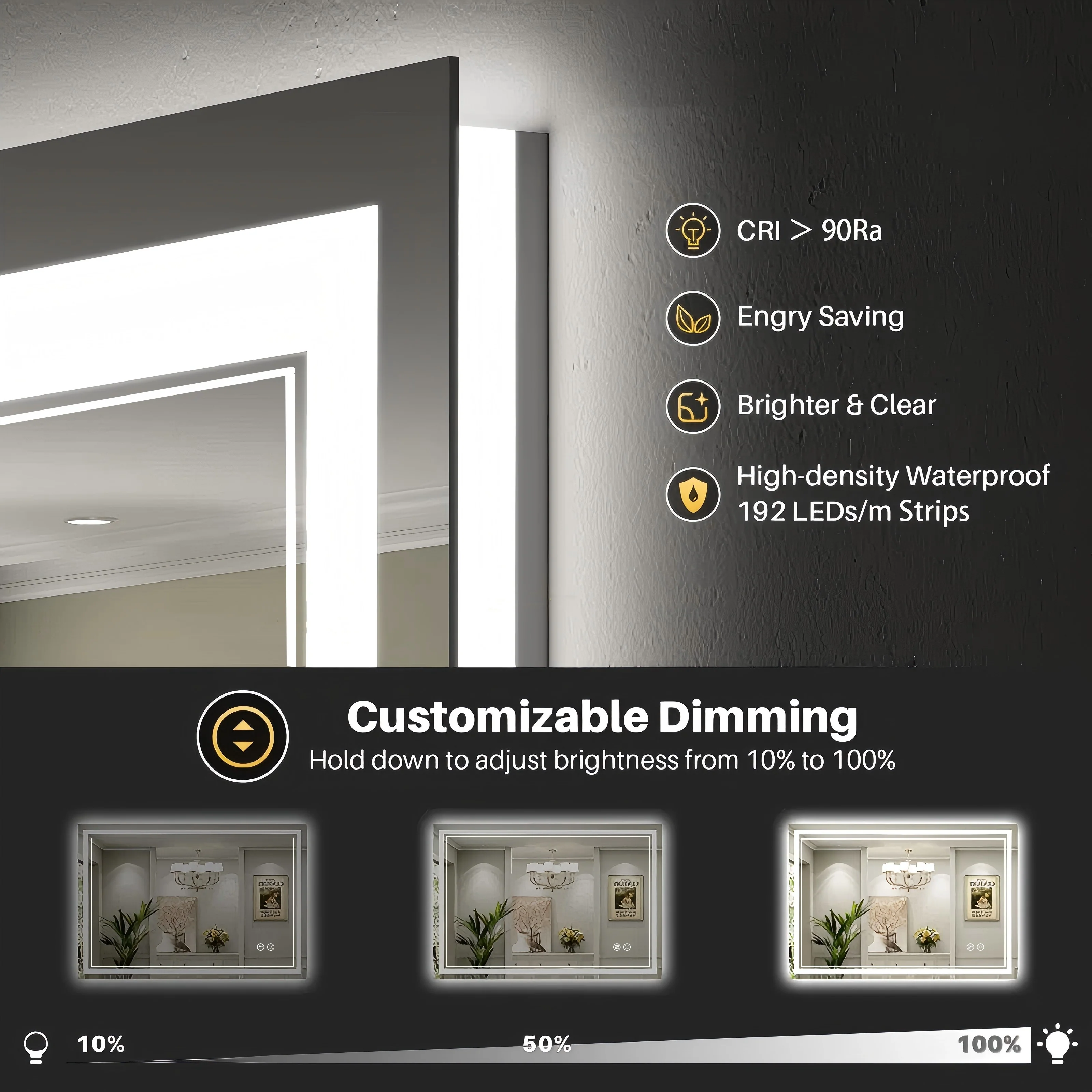 - High-quality Light Strips: our LED mirror adopts 24-Volt output voltage super-bright real CRI90+ 192 LEDs/m light strips, compared with others' 12-Volt low-power light strips, which are bright enough for makeup, shaving and skin care and longer lifespan.