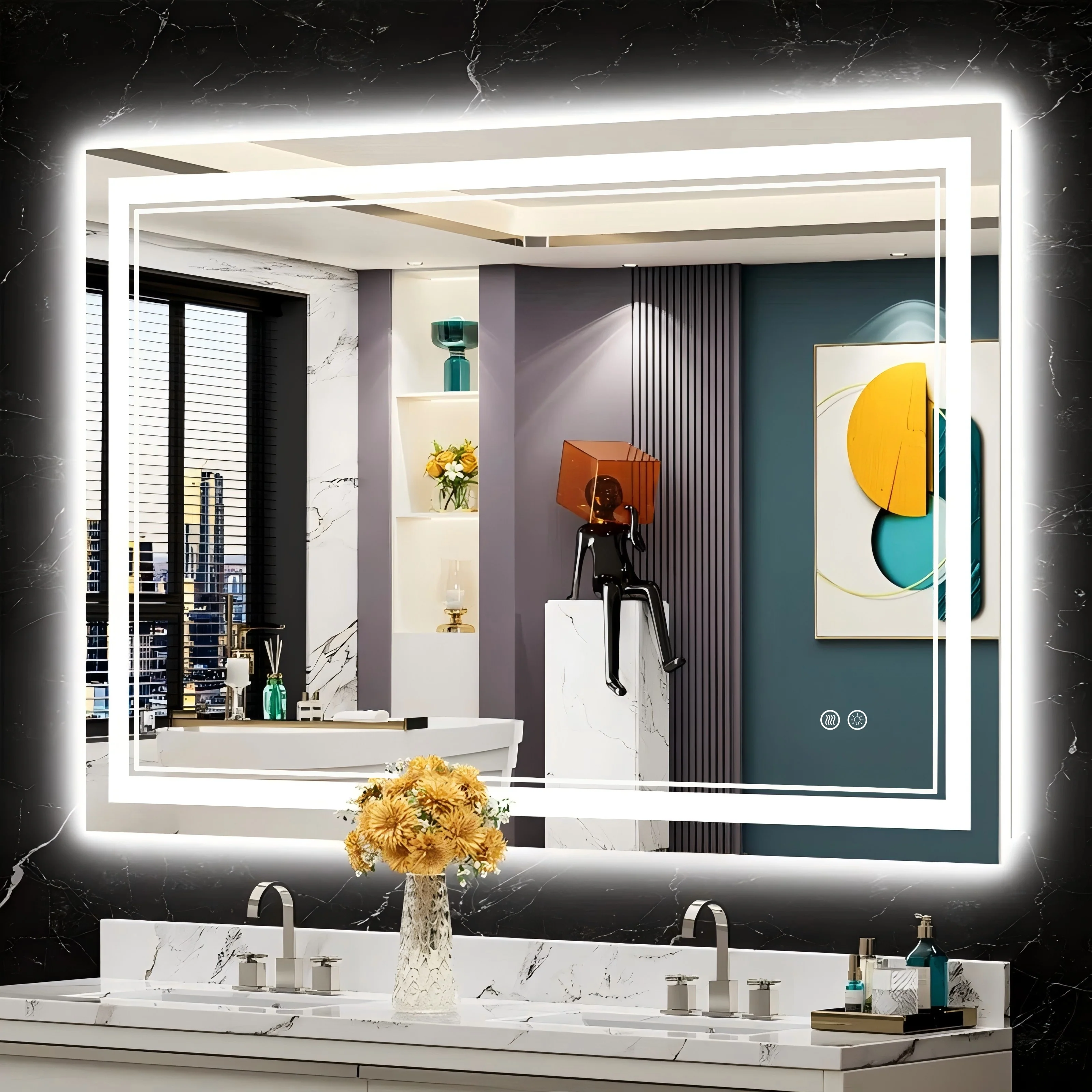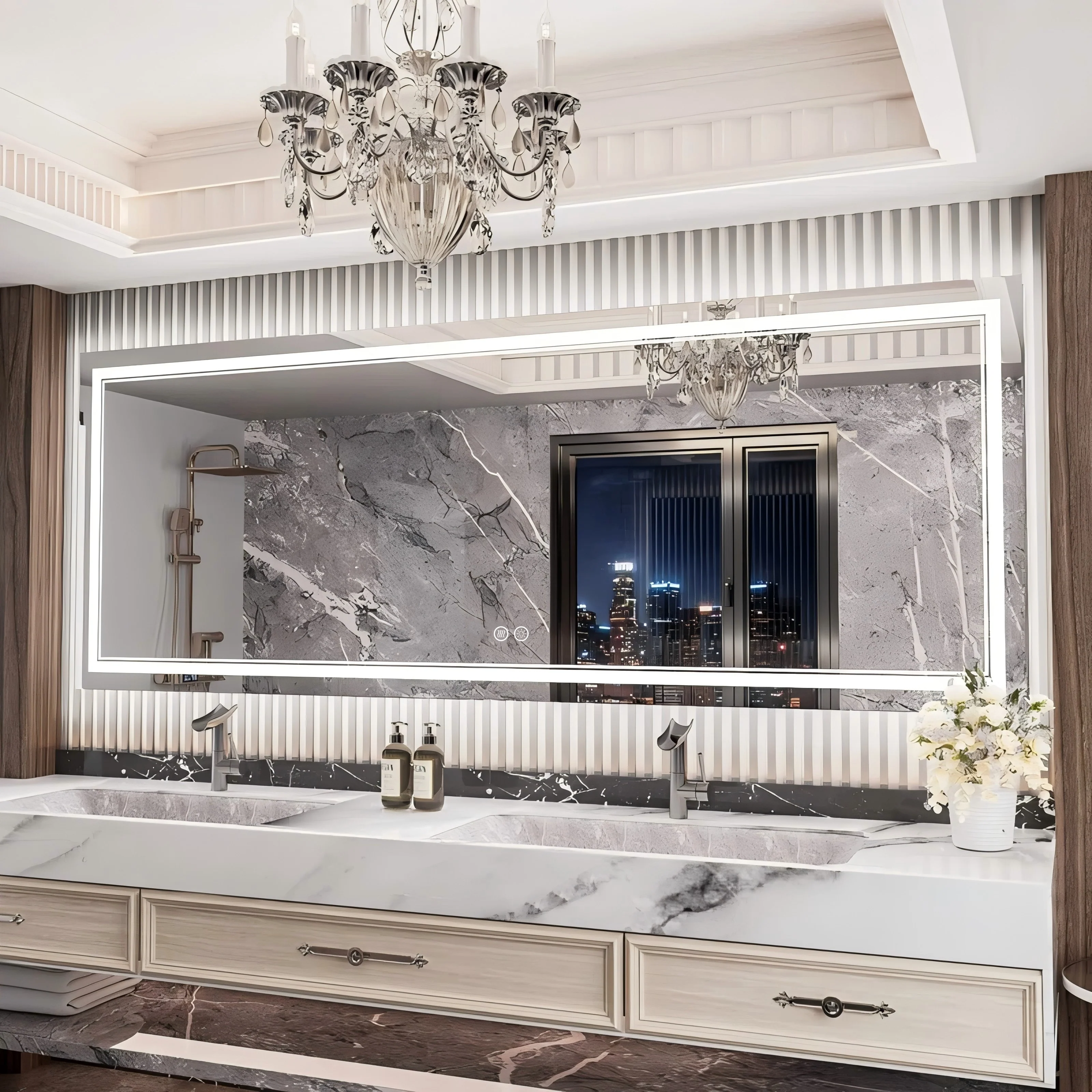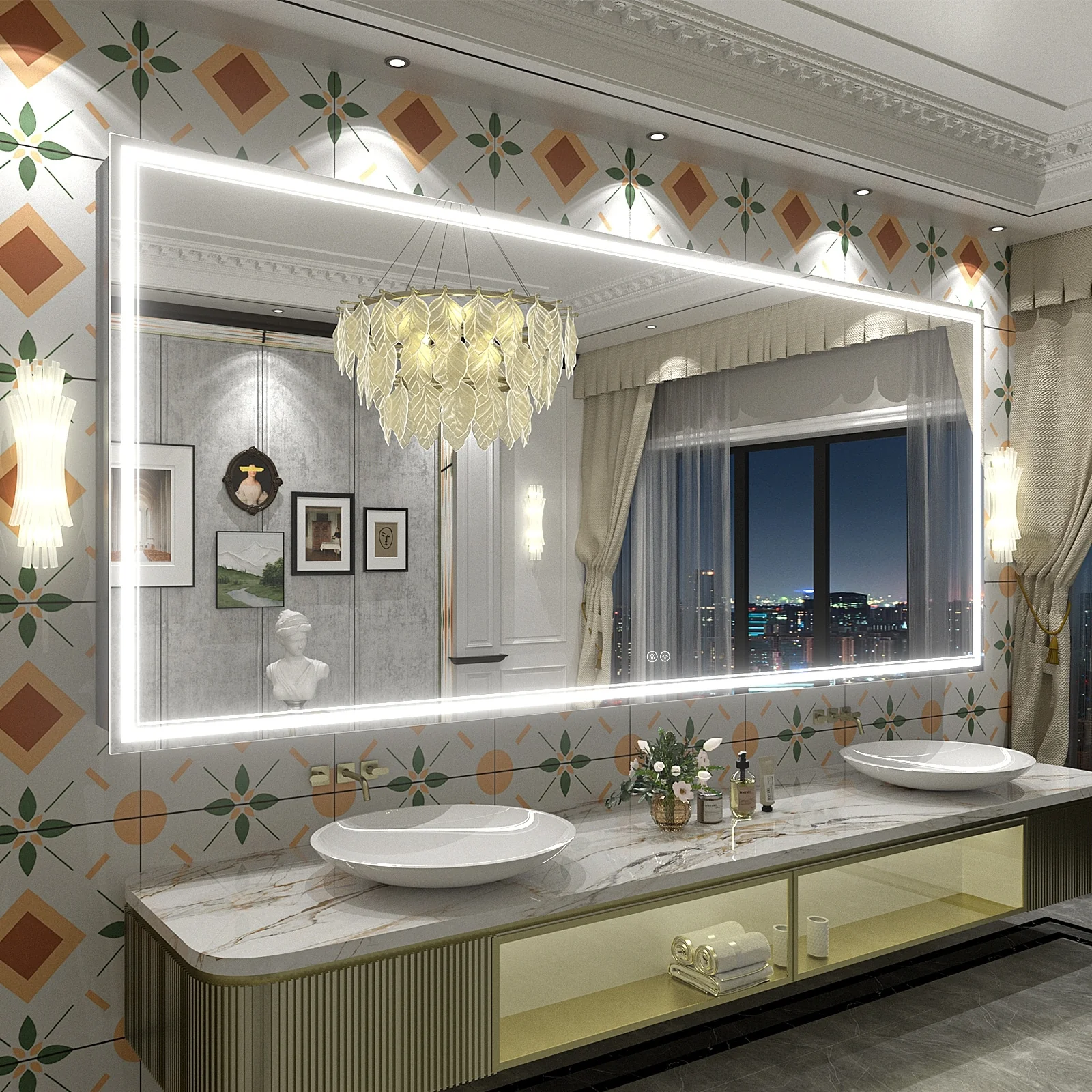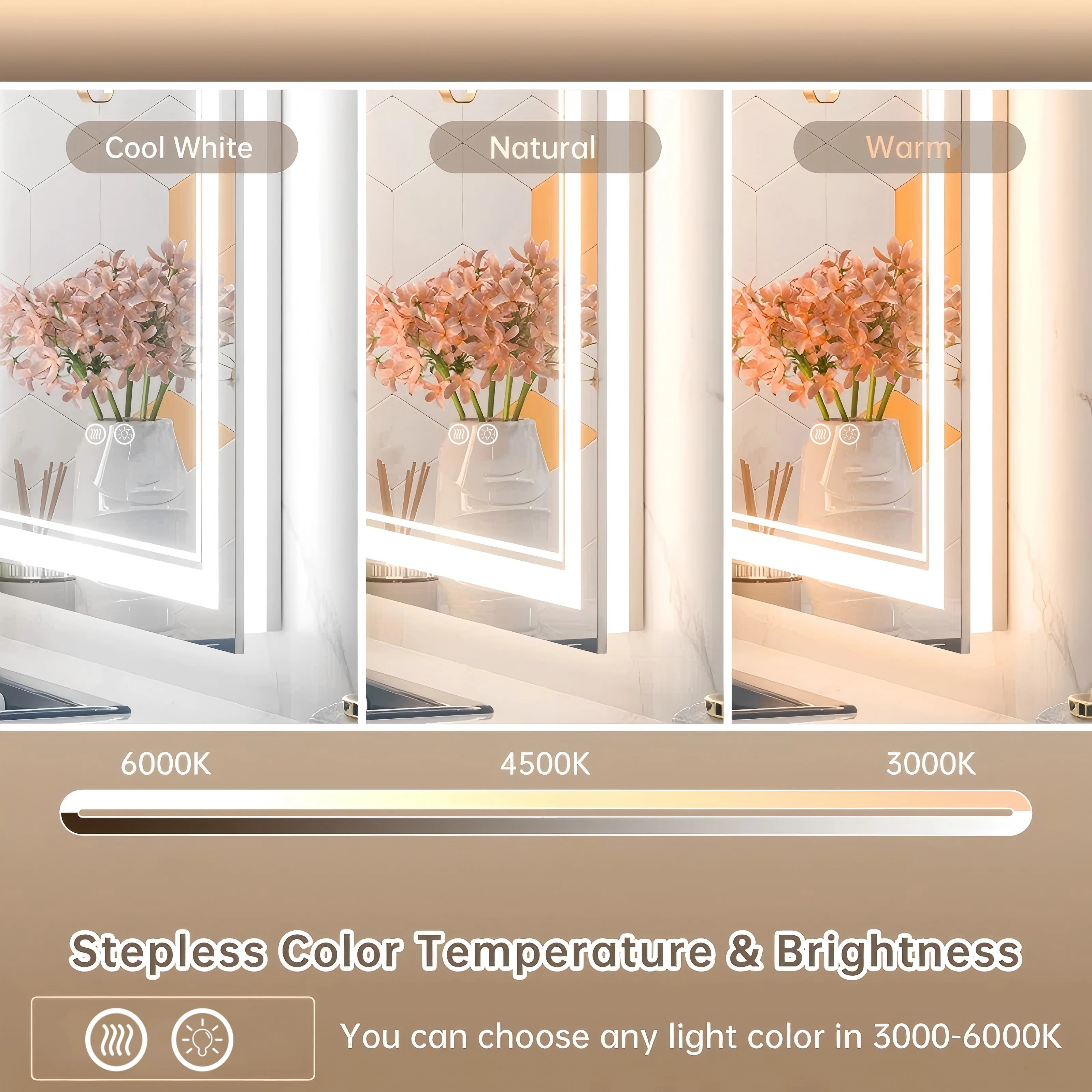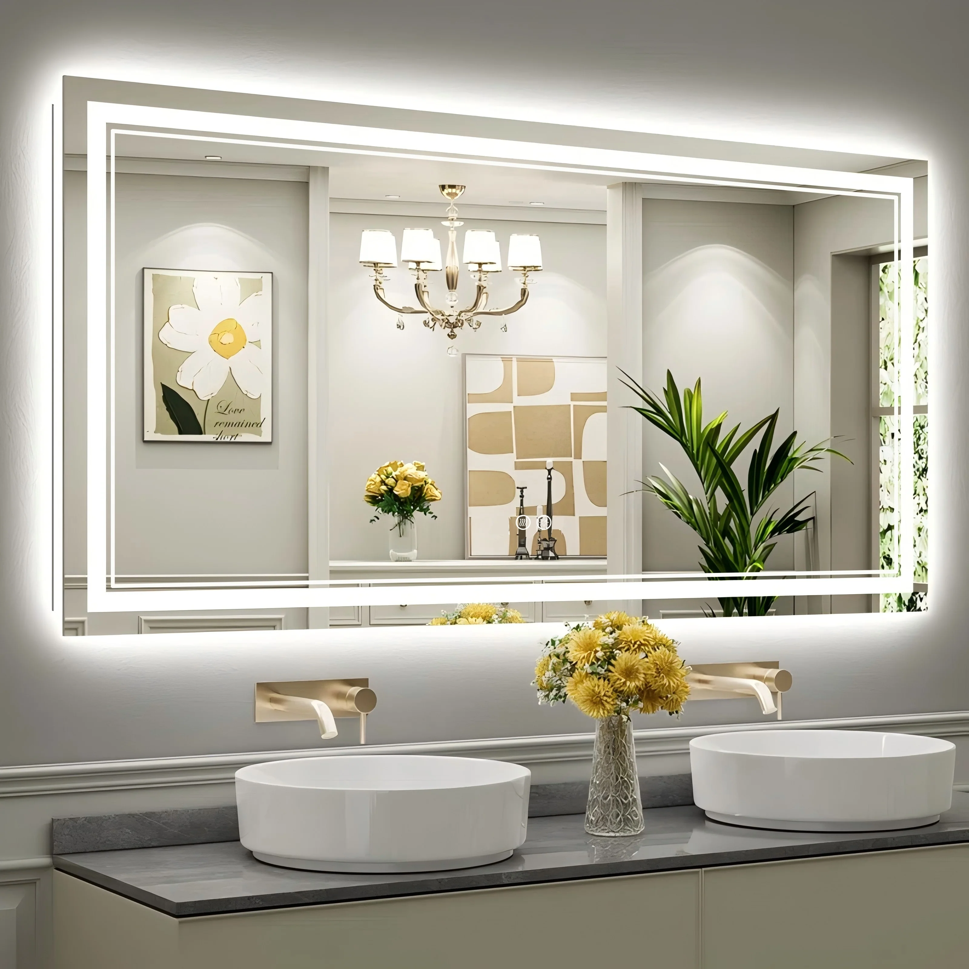 - High-quality Light Strips: our LED mirror adopts 24-Volt output voltage super-bright real CRI90+ 192 LEDs/m light strips, compared with others' 12-Volt low-power light strips, which are bright enough for makeup, shaving and skin care and longer lifespan.