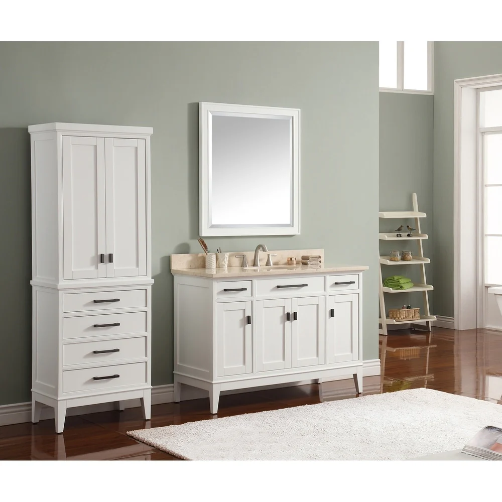 This mirror matches with the Madison collection for a coordinated look and includes mounting hardware for easy installation. You can hang it horizontally or vertically so hang it to your liking.The Madison 36 inch X 32 inch poplar wood framed mirror features a contemporary White finish and a simple clean design.�