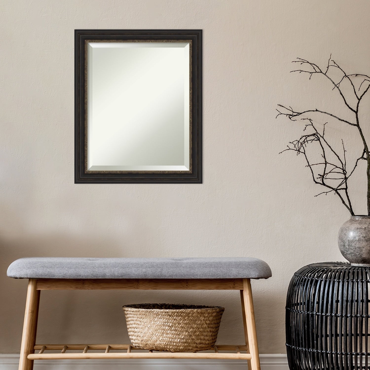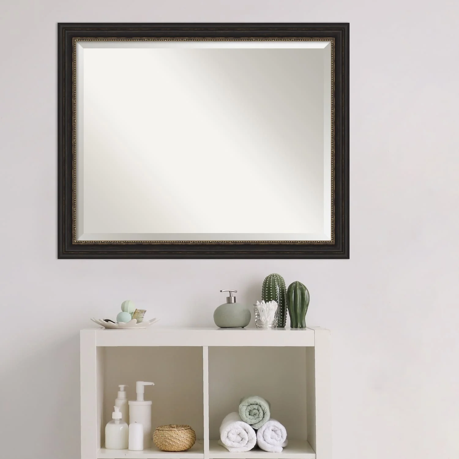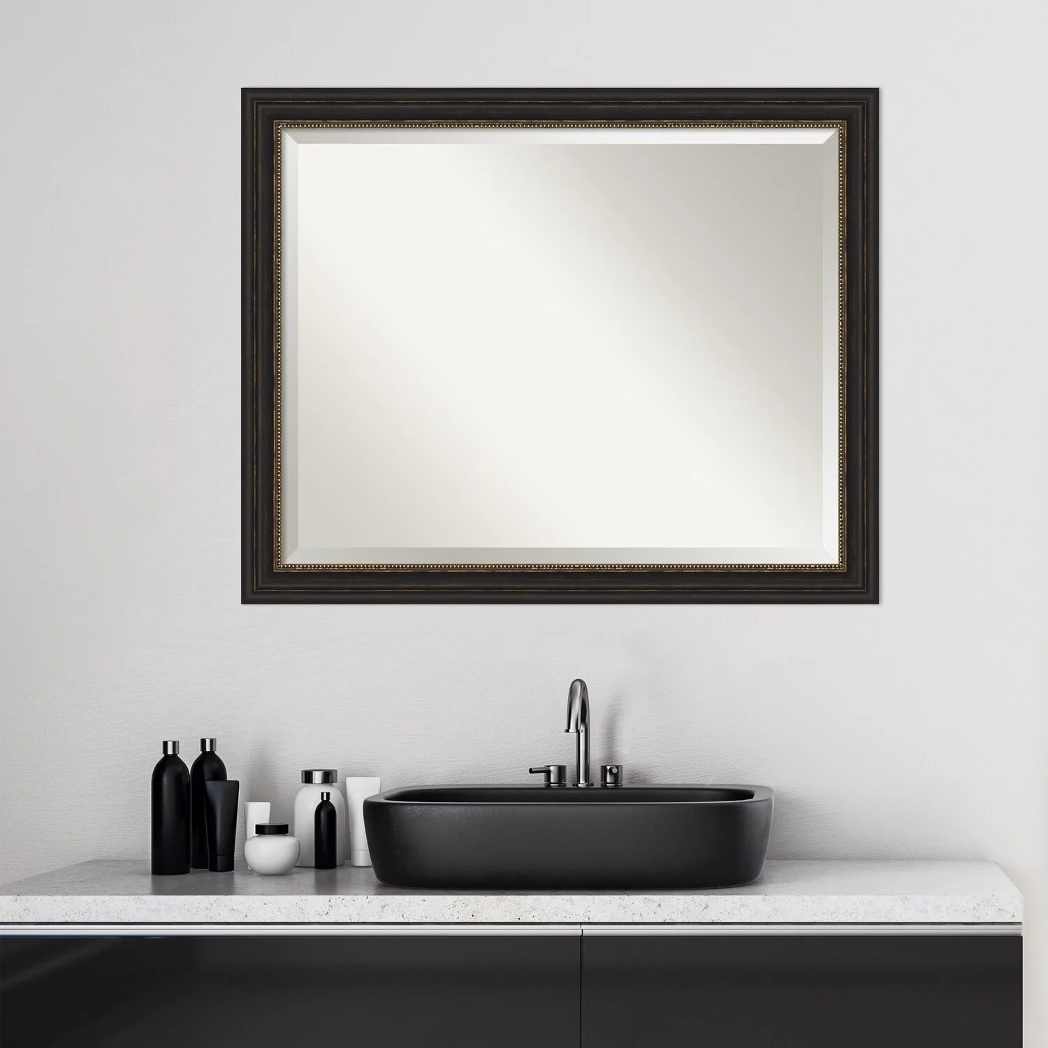Add the perfect finishing touch to your bathroom with this Beveled Bathroom Wall Mirror in the Accent Bronze Narrow Frame. Expertly crafted using traditional framing techniques, this mirror exudes the same quality you would expect from your local frame shop. Its premium finishing gives it the added touch of luxury that can be appreciated up close.