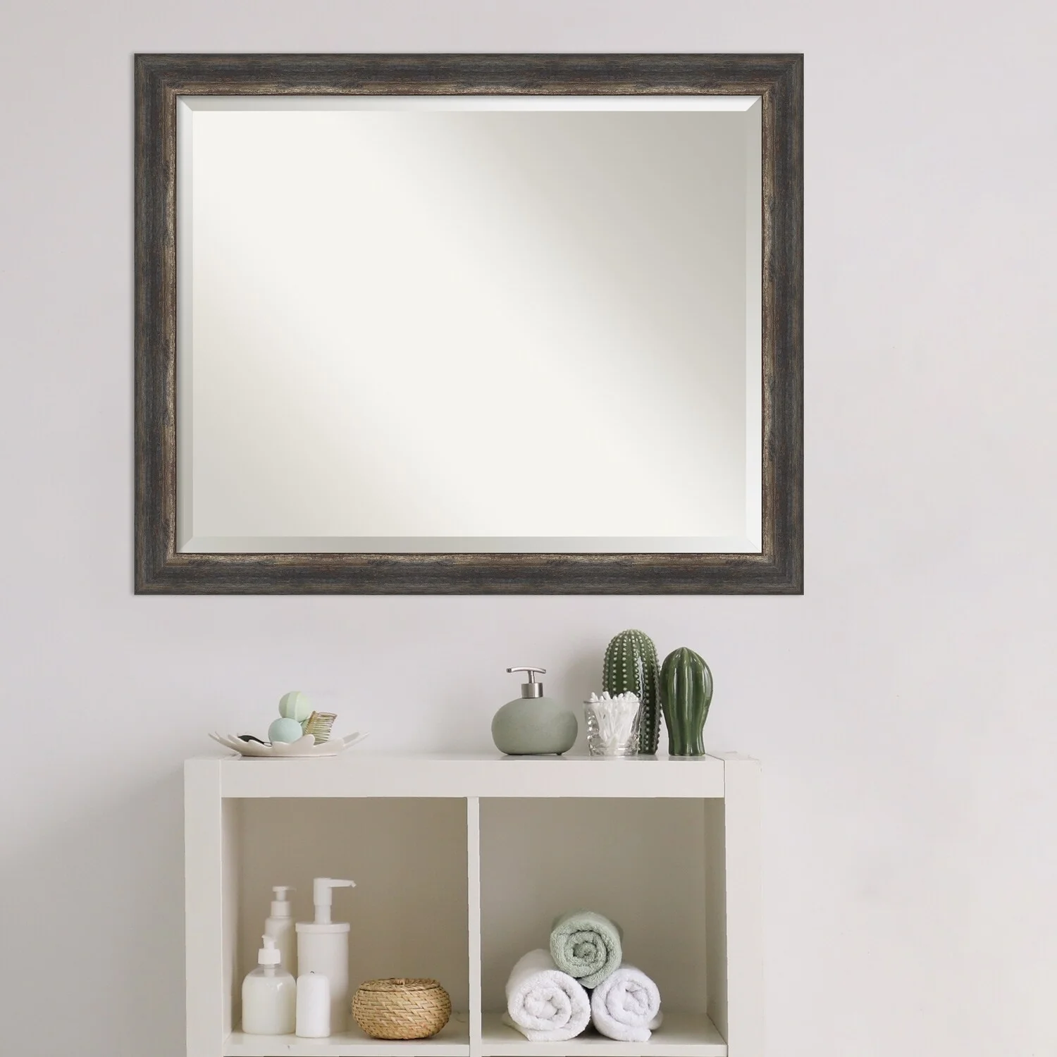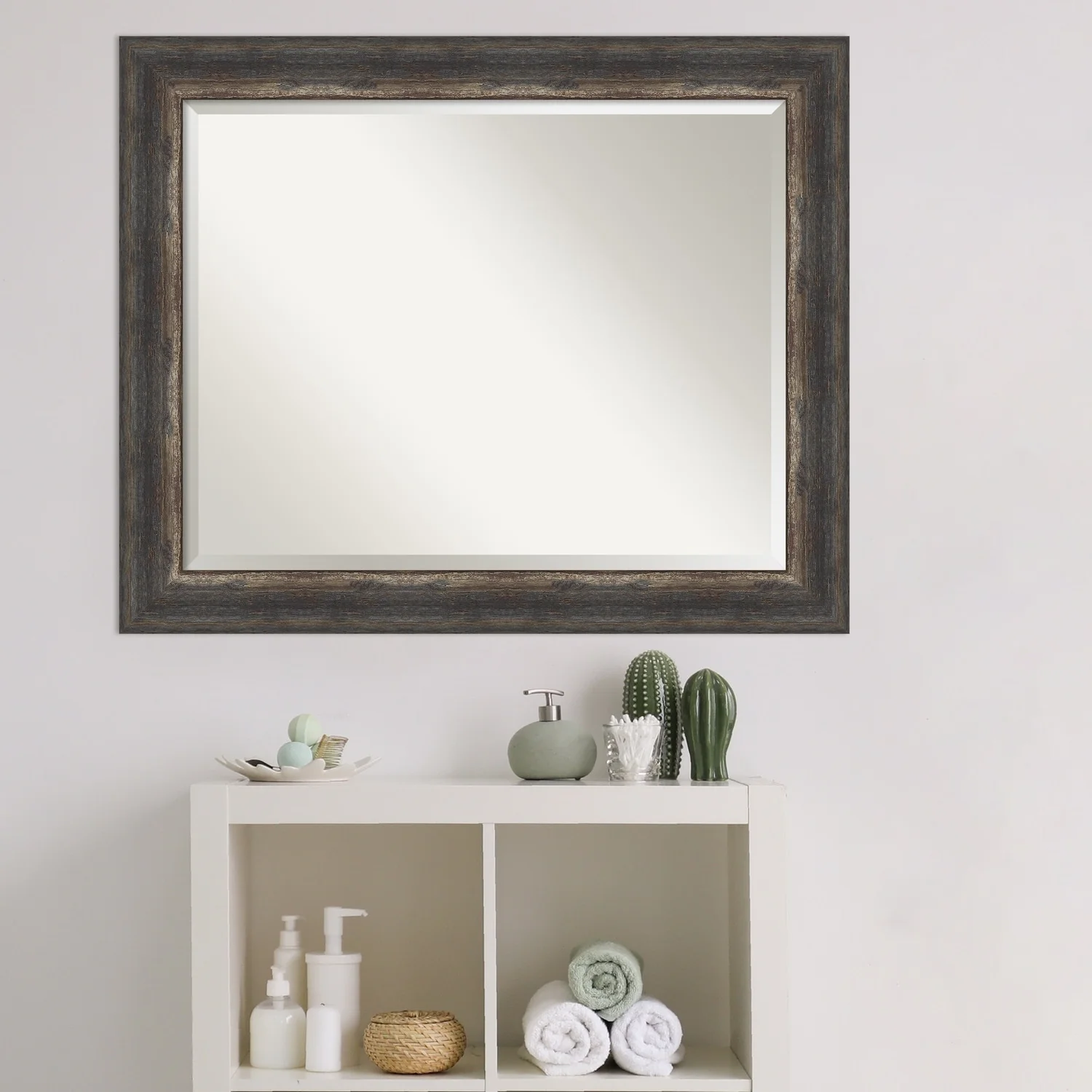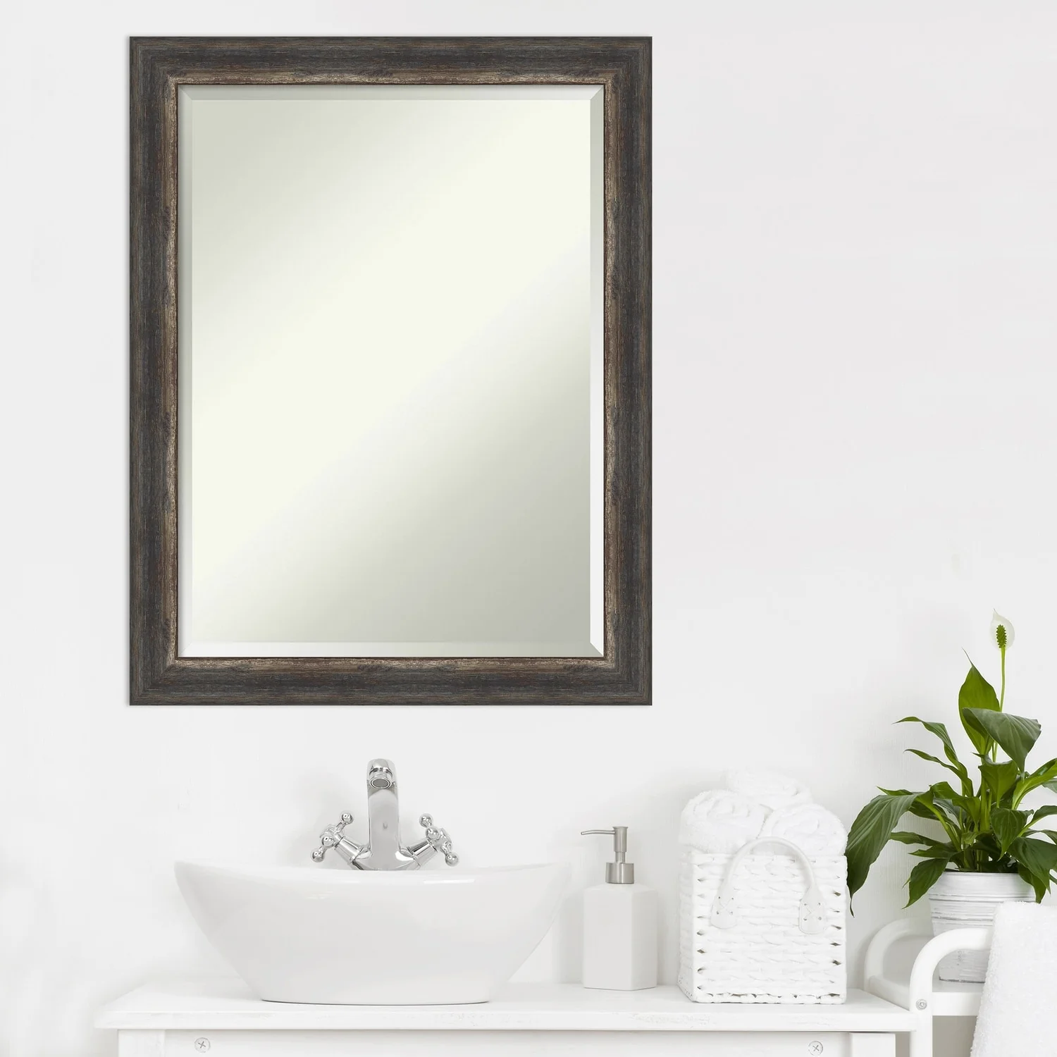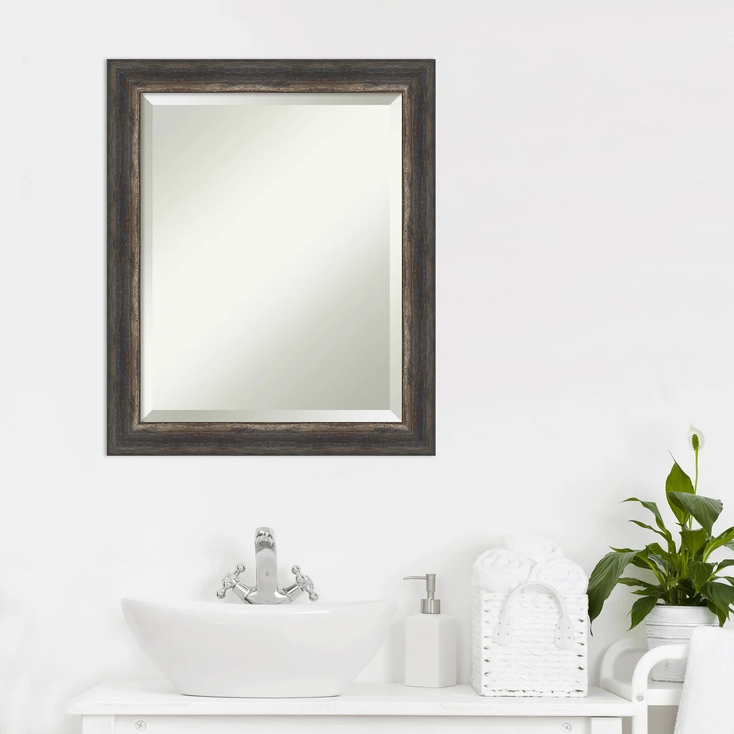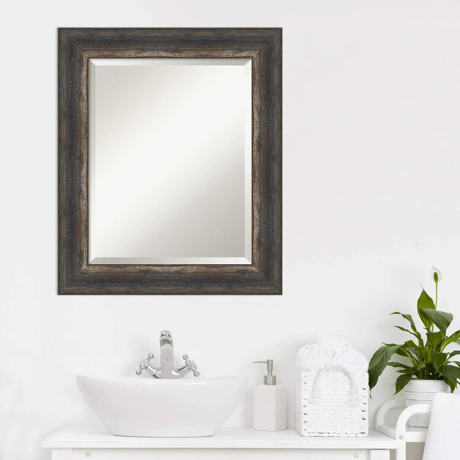 Add the perfect finishing touch to your bathroom with this Beveled Wall Mirror in a Bark Rustic Char Frame. Expertly crafted with traditional custom-framing techniques, it boasts exceptional quality that rivals your local frame shop. The premium finishing adds to its value and can be admired up close.