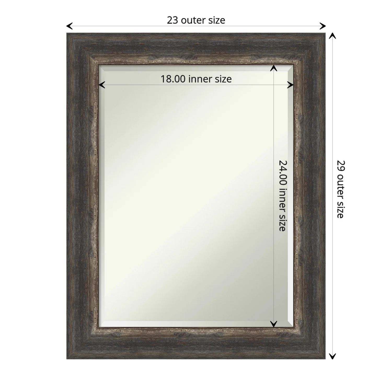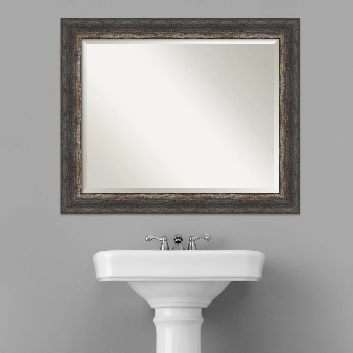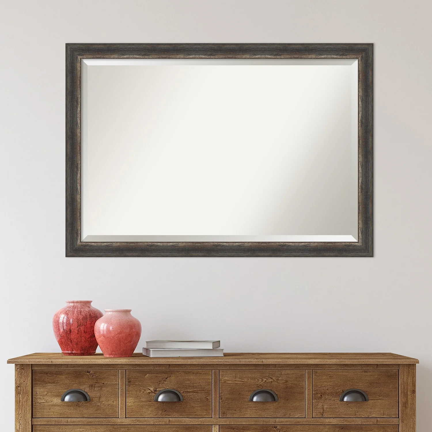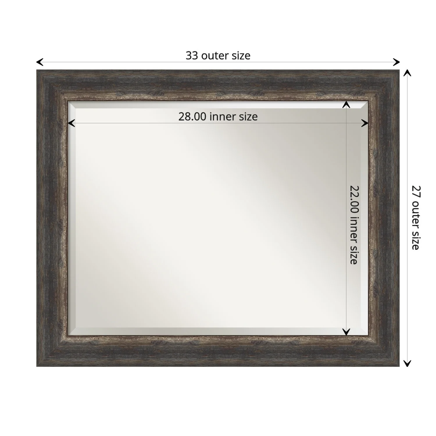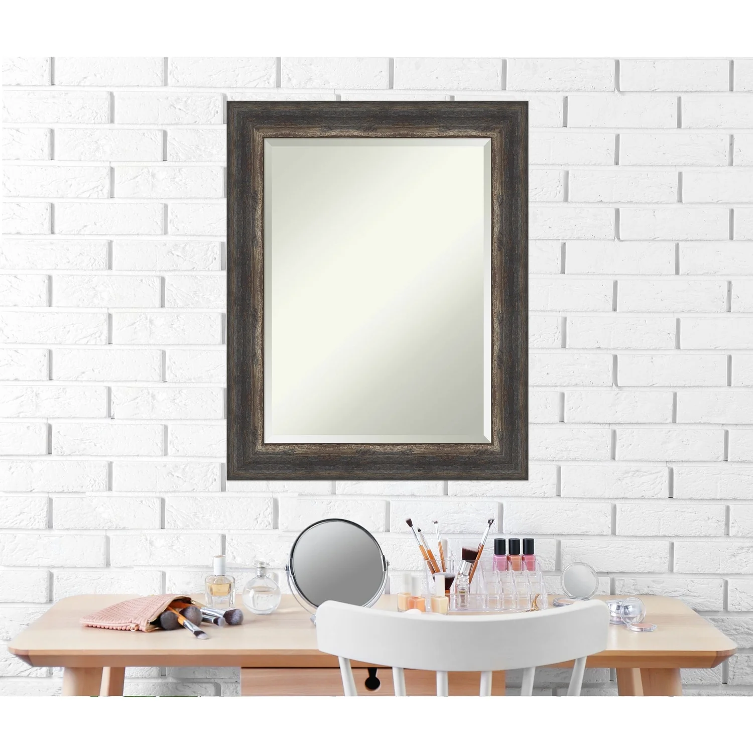 Add the perfect finishing touch to your bathroom with this Beveled Wall Mirror in a Bark Rustic Char Frame. Expertly crafted with traditional custom-framing techniques, it boasts exceptional quality that rivals your local frame shop. The premium finishing adds to its value and can be admired up close.