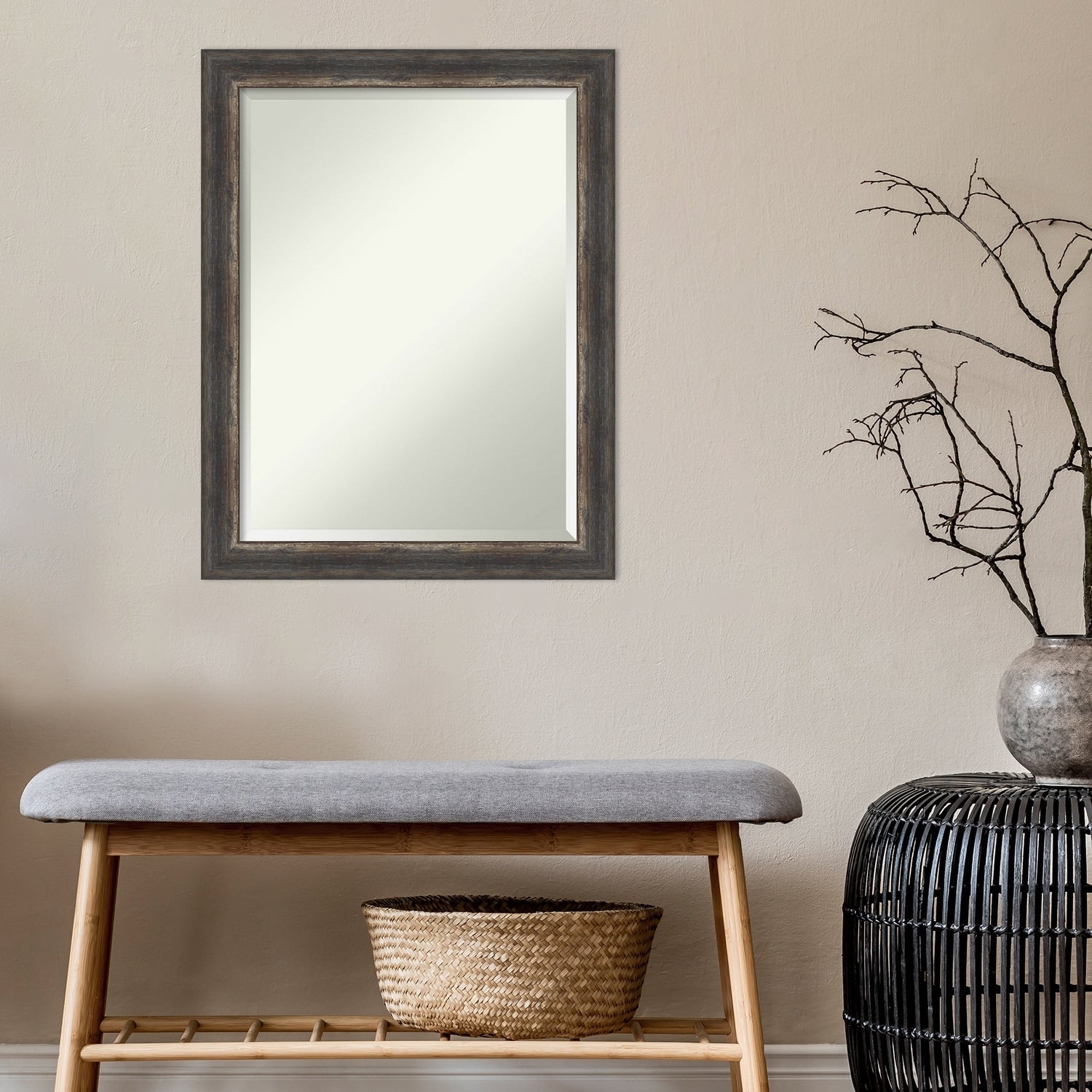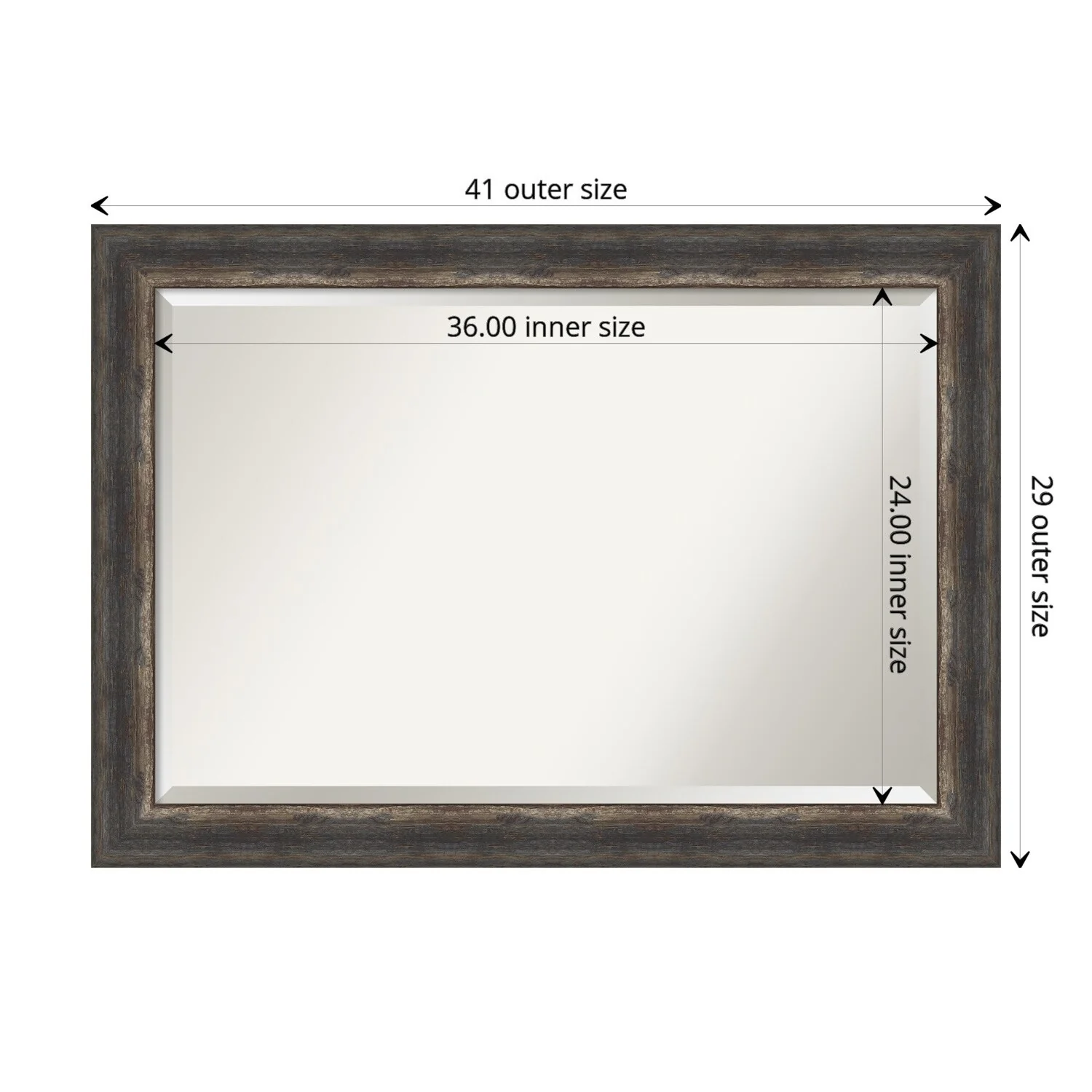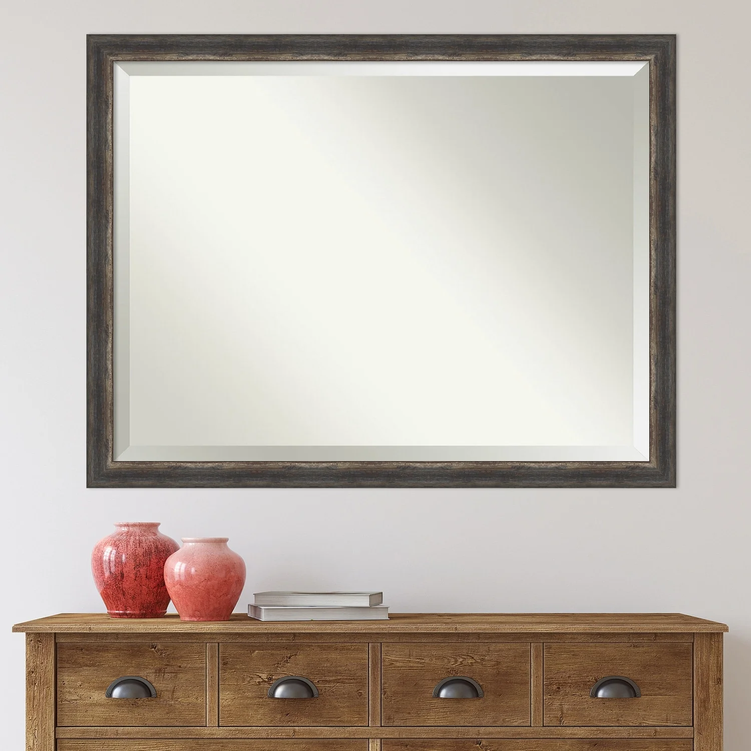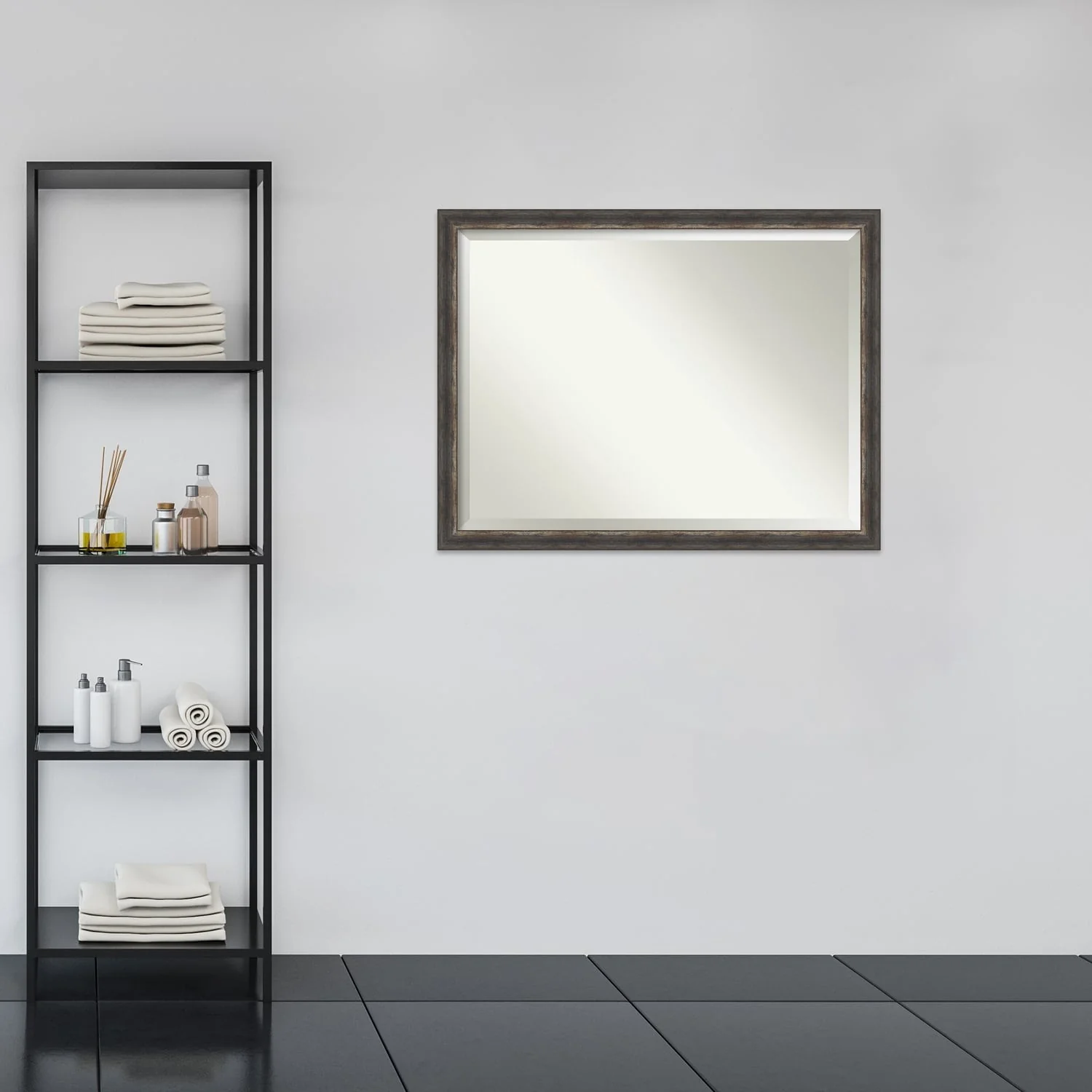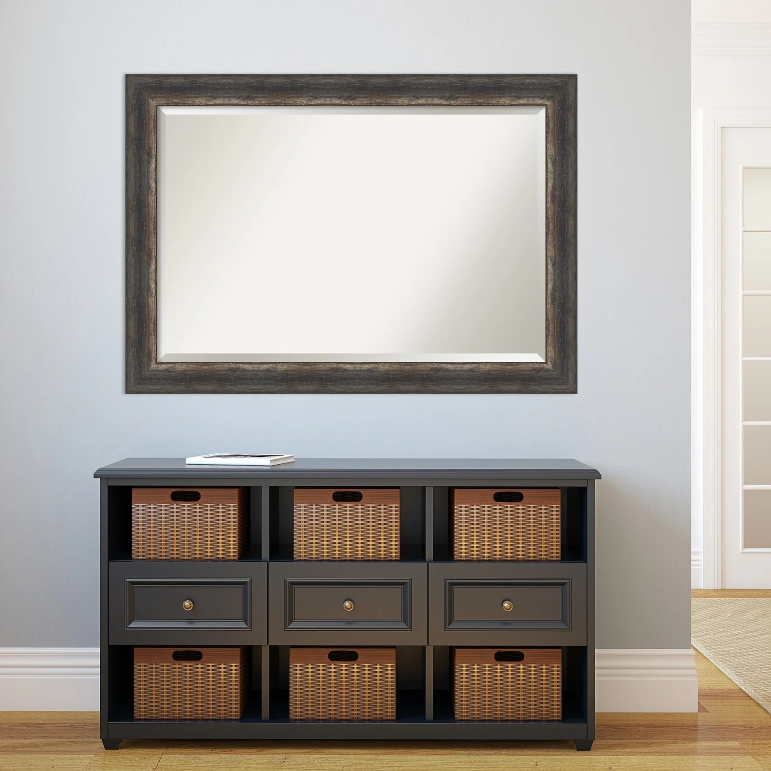 Add the perfect finishing touch to your bathroom with this Beveled Wall Mirror in a Bark Rustic Char Frame. Expertly crafted with traditional custom-framing techniques, it boasts exceptional quality that rivals your local frame shop. The premium finishing adds to its value and can be admired up close.