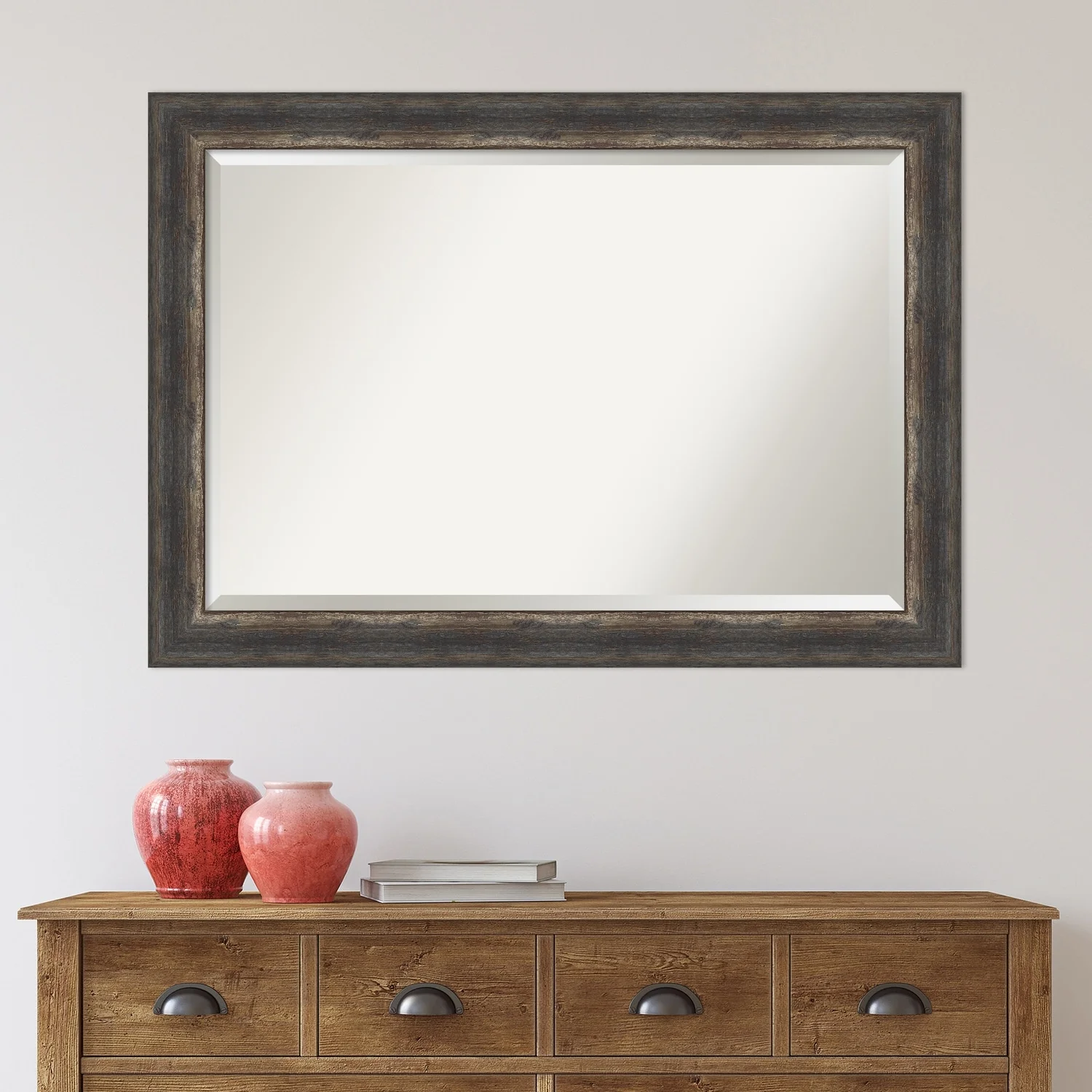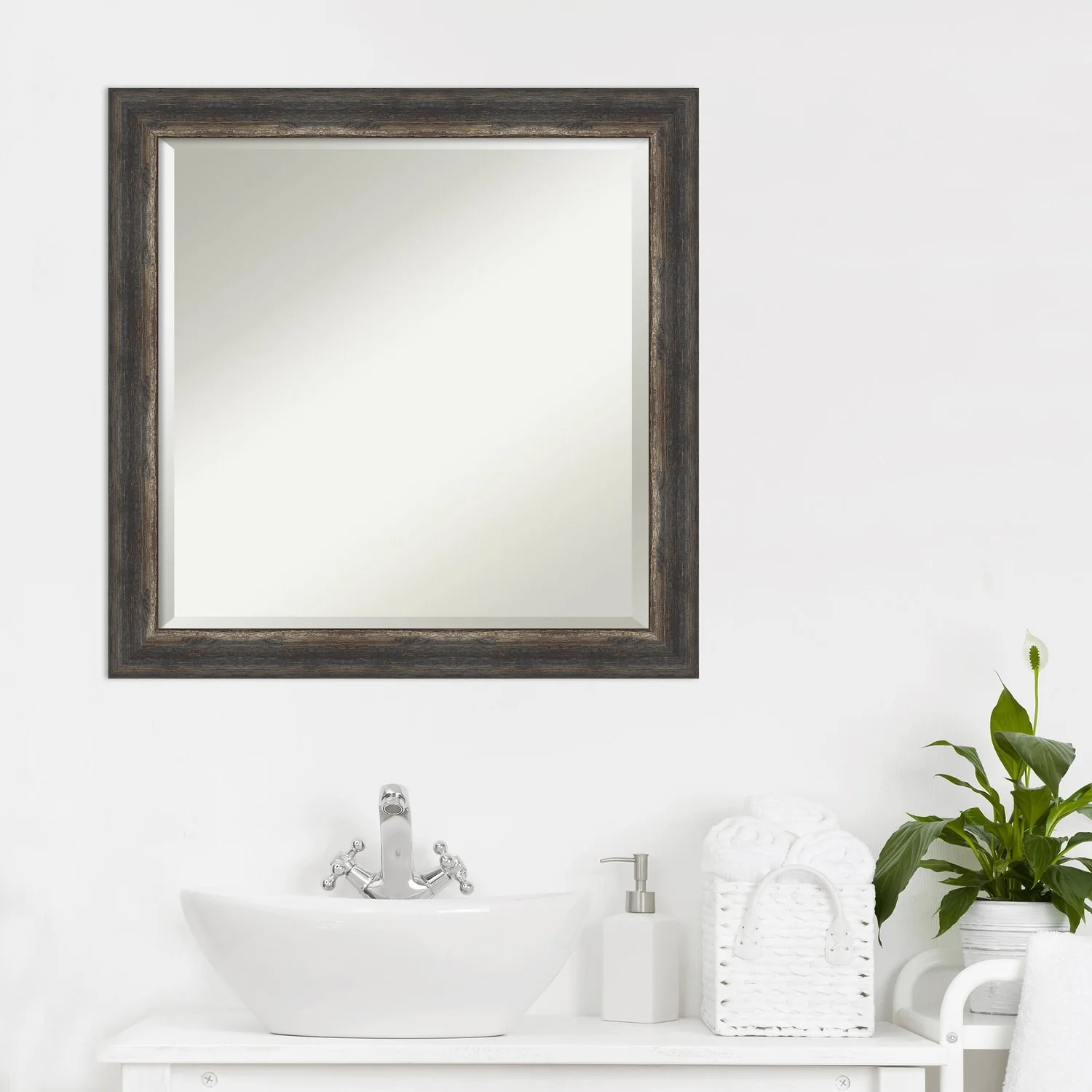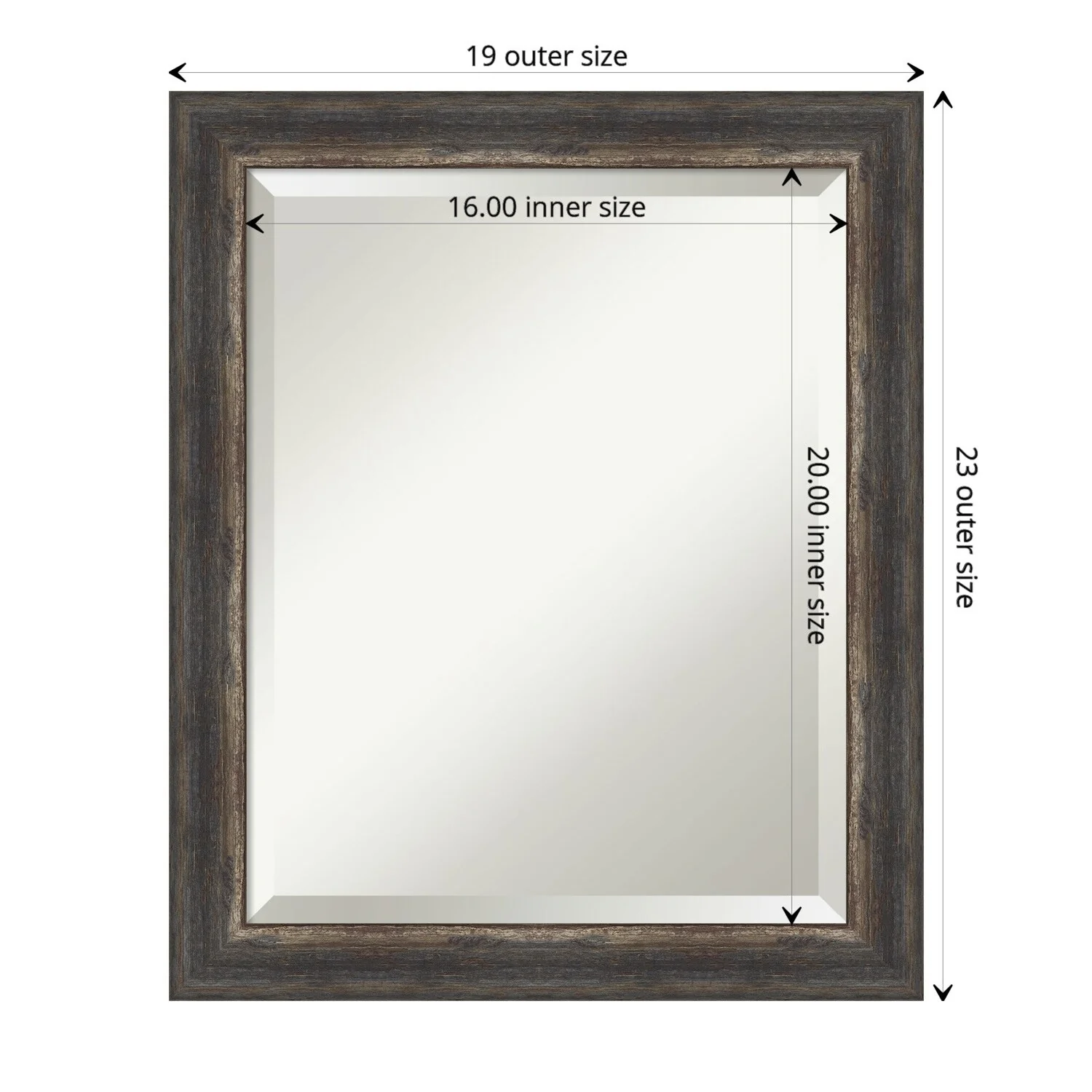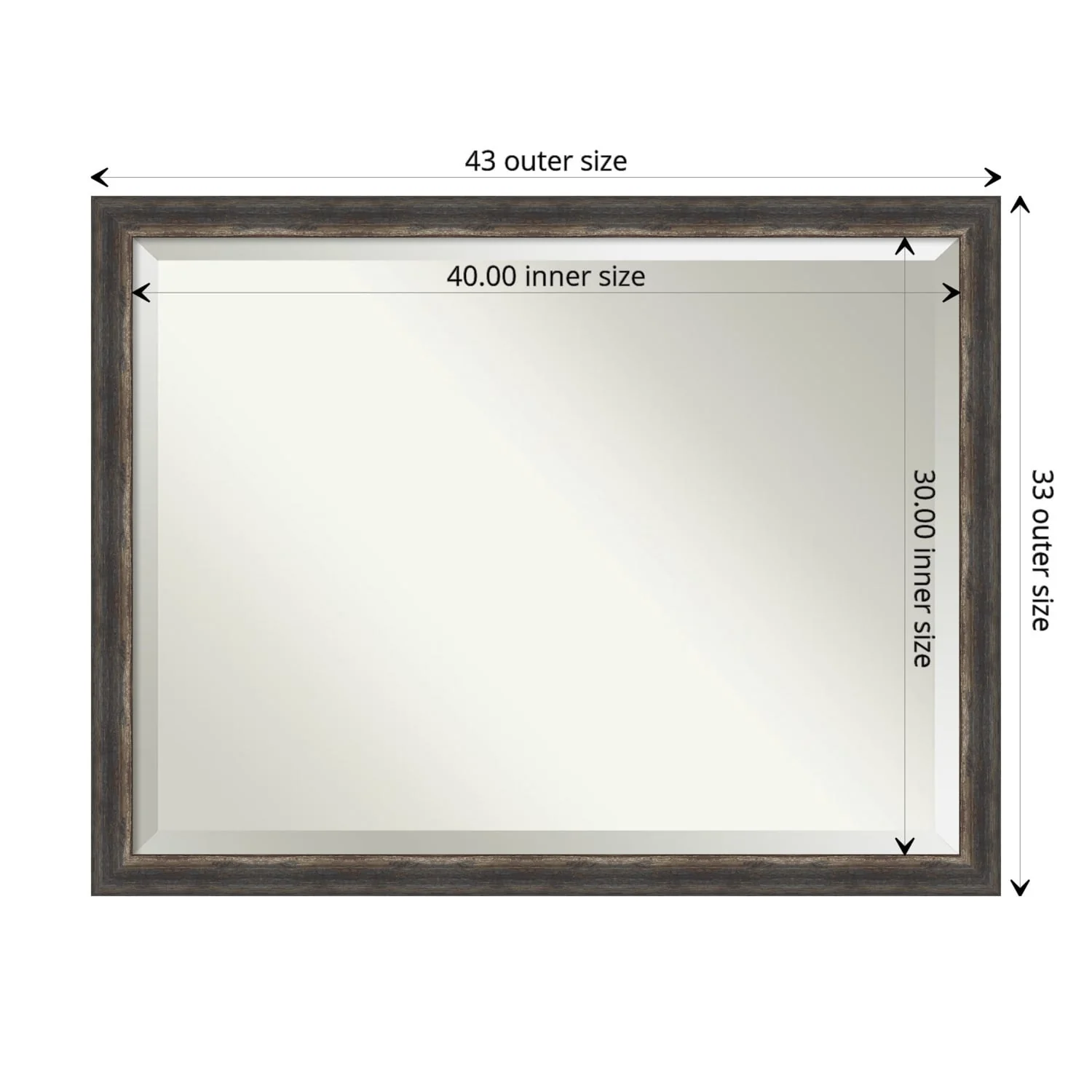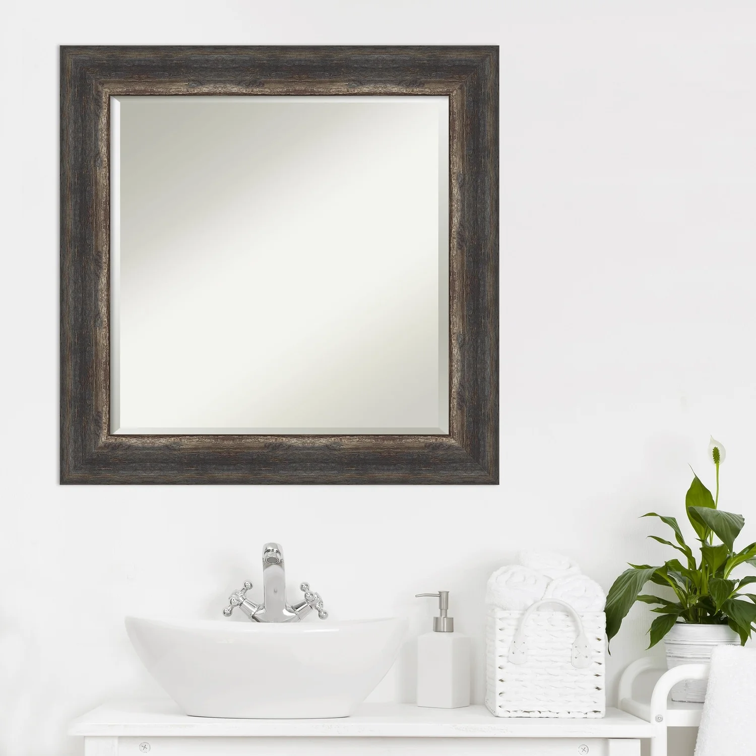 Add the perfect finishing touch to your bathroom with this Beveled Wall Mirror in a Bark Rustic Char Frame. Expertly crafted with traditional custom-framing techniques, it boasts exceptional quality that rivals your local frame shop. The premium finishing adds to its value and can be admired up close.