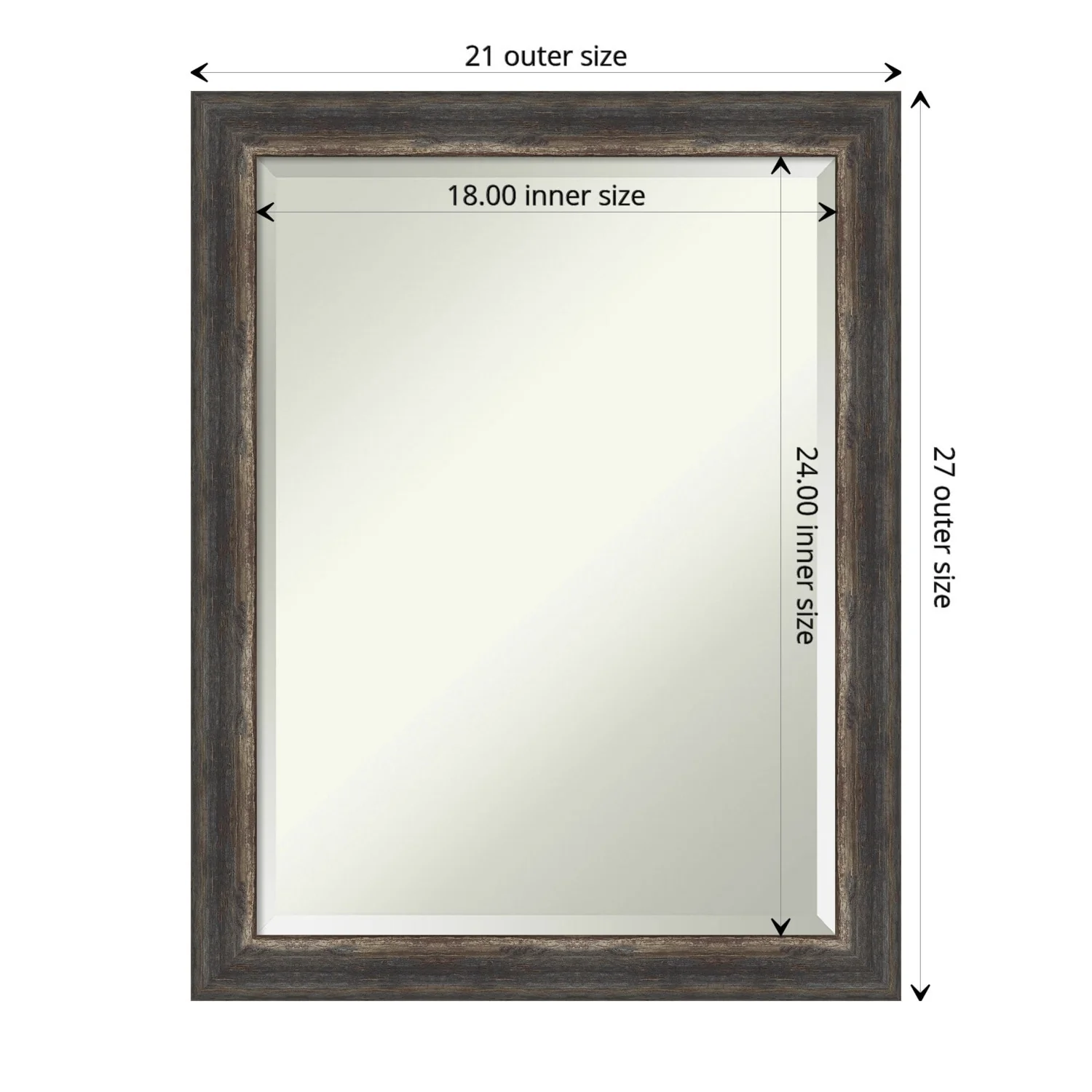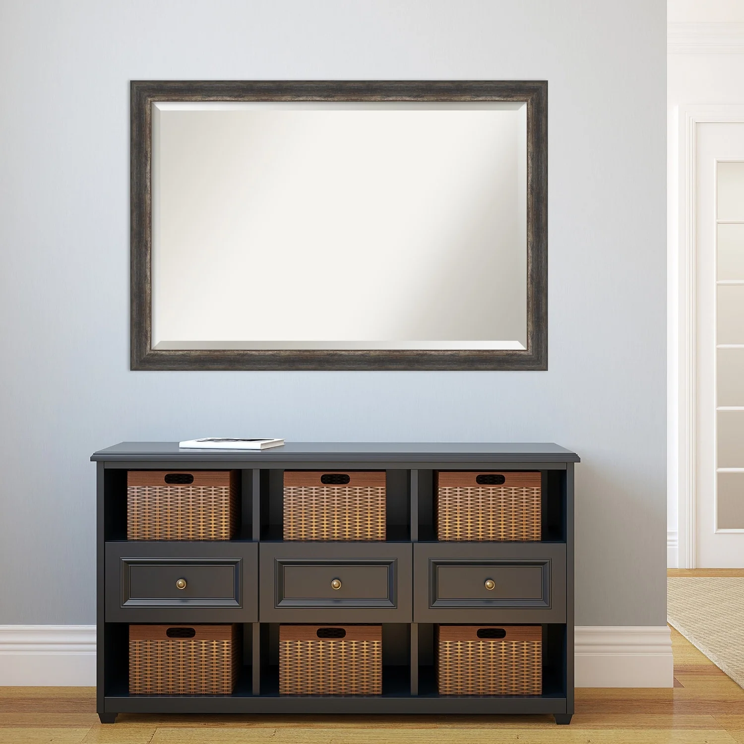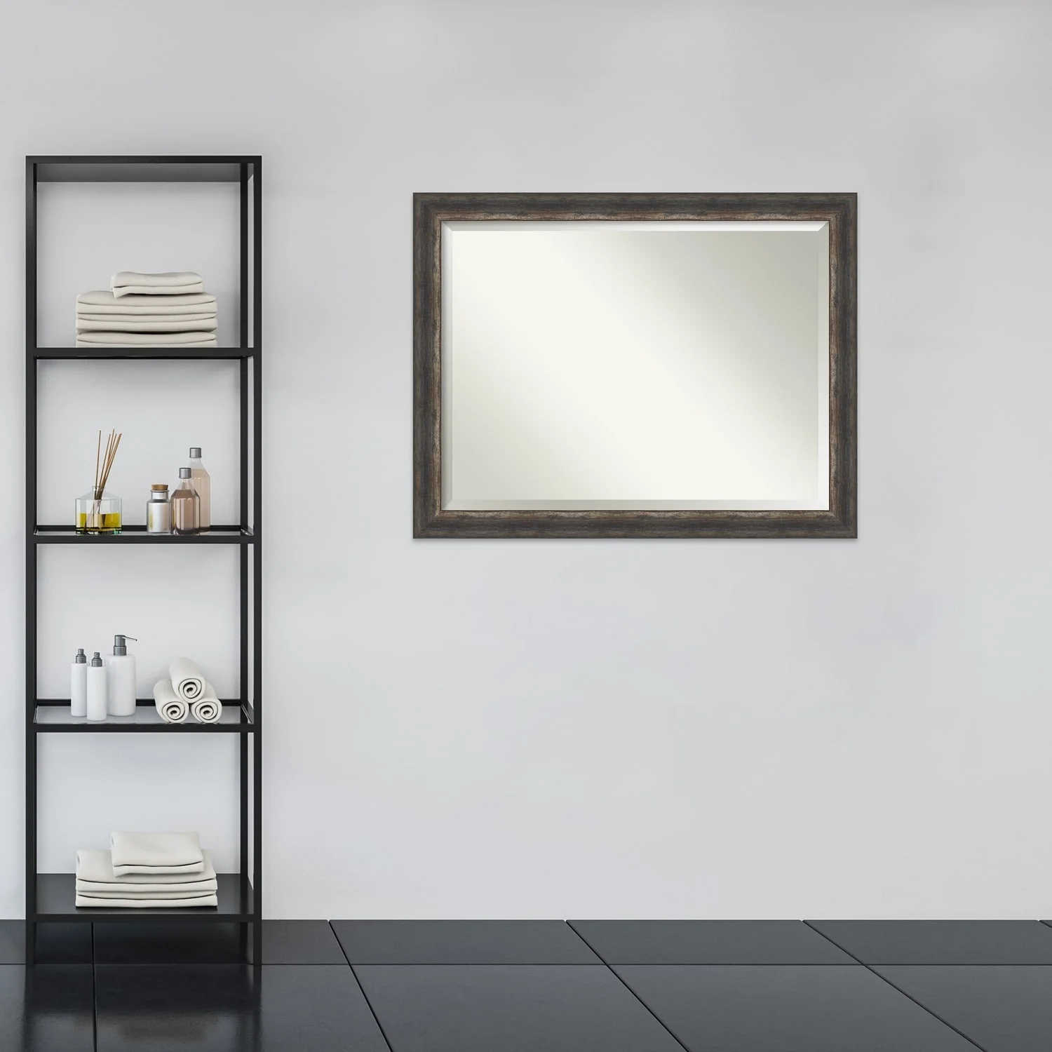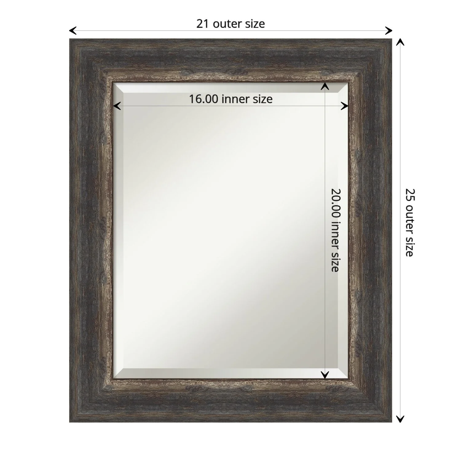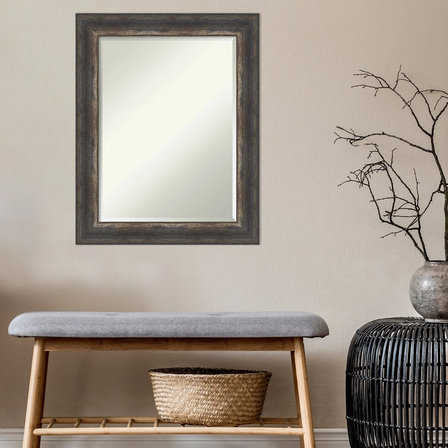 Add the perfect finishing touch to your bathroom with this Beveled Wall Mirror in a Bark Rustic Char Frame. Expertly crafted with traditional custom-framing techniques, it boasts exceptional quality that rivals your local frame shop. The premium finishing adds to its value and can be admired up close.