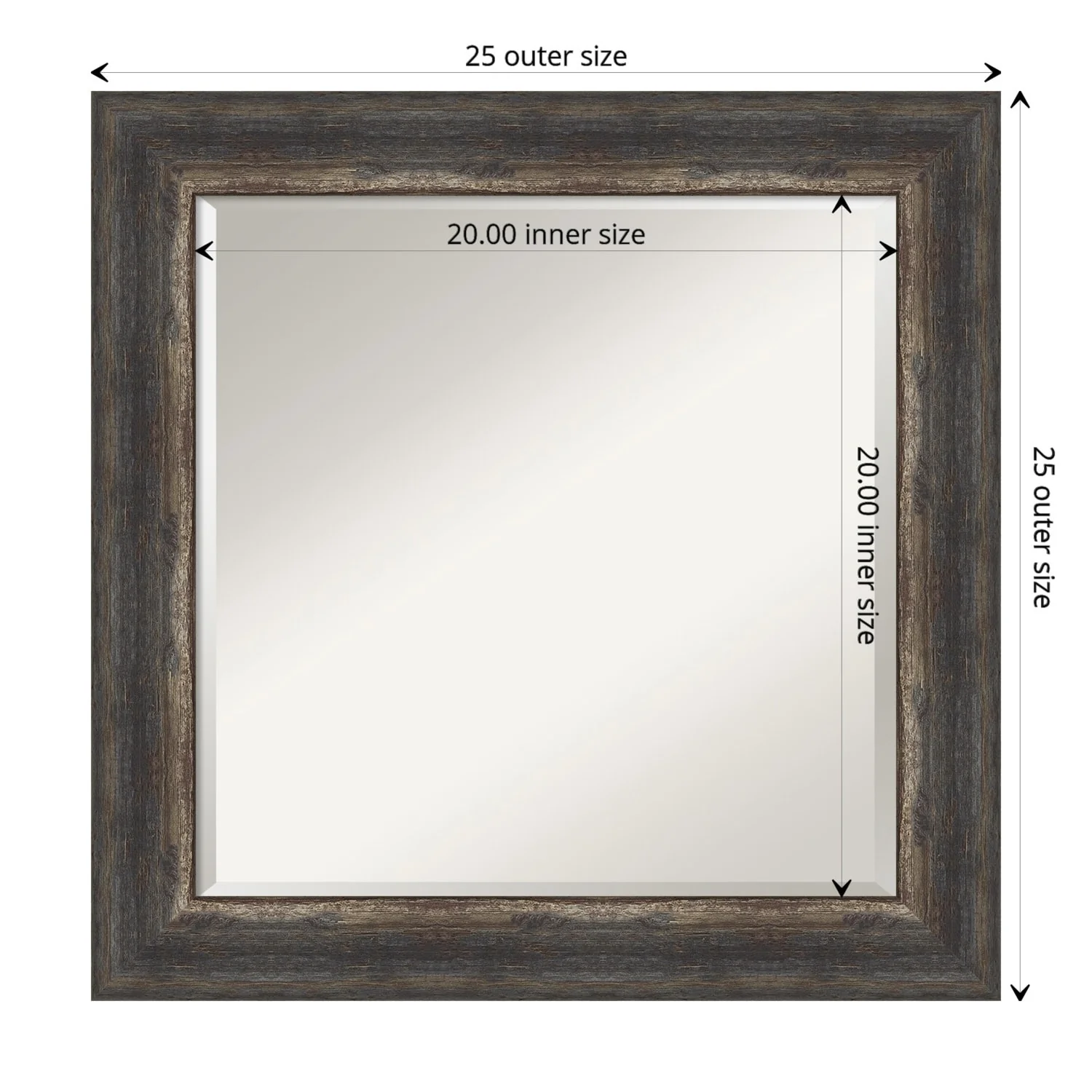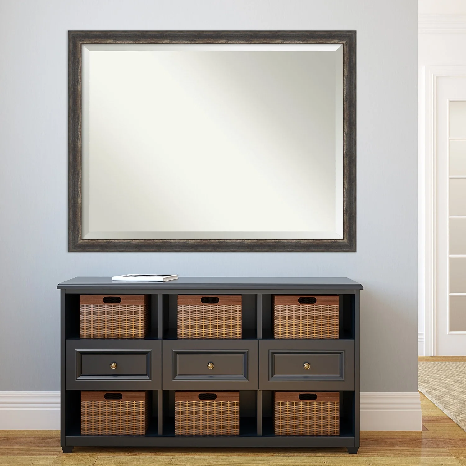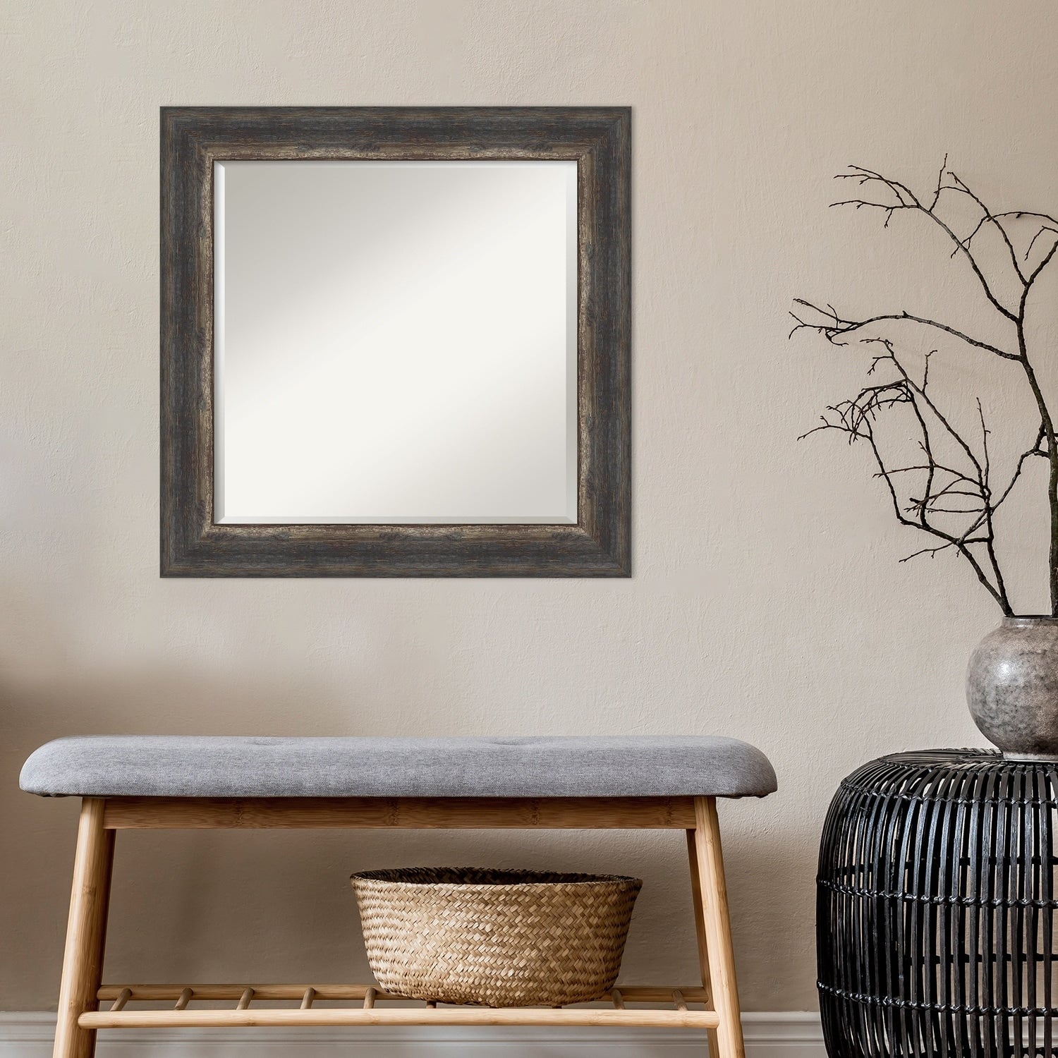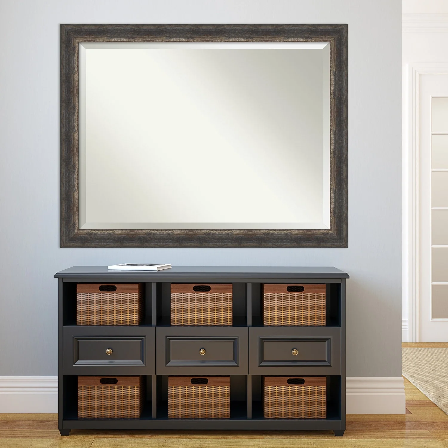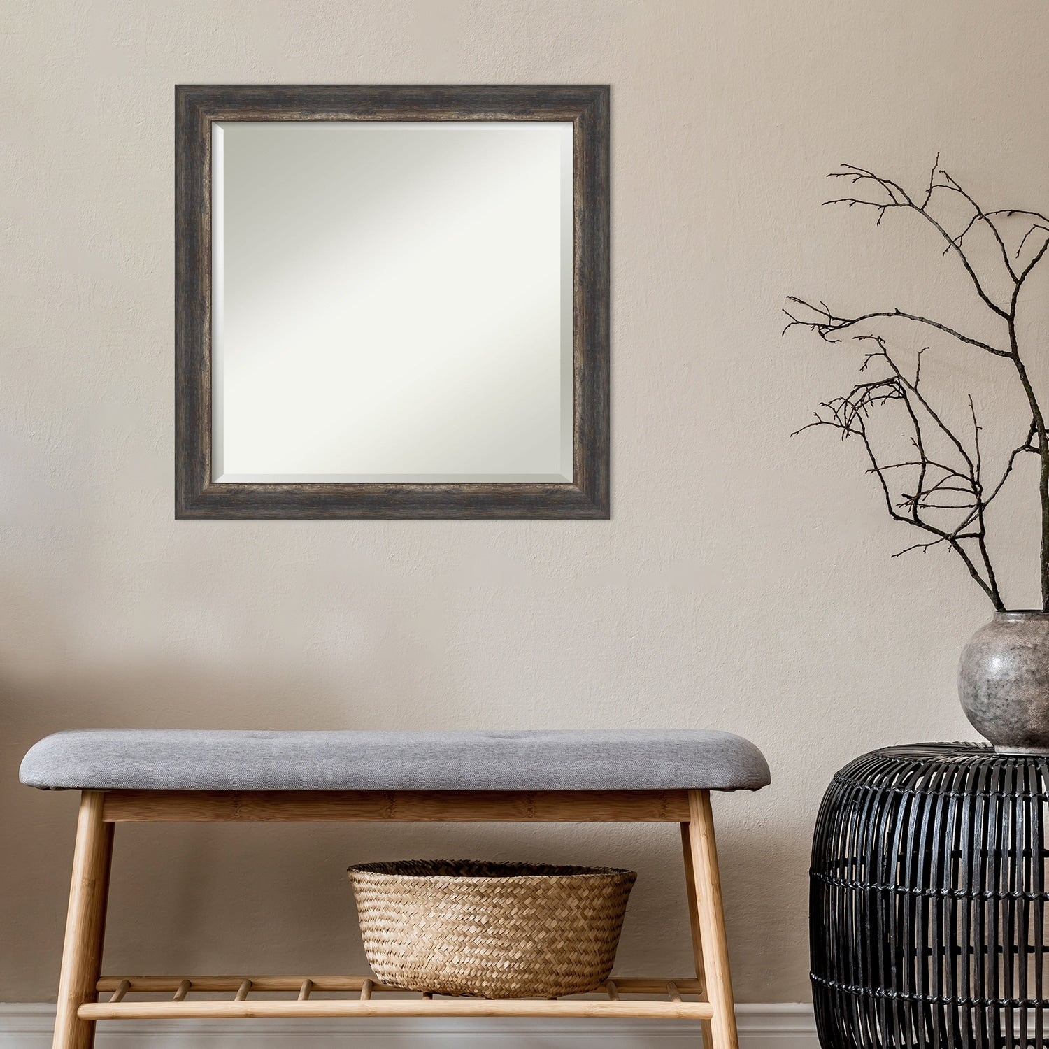 Add the perfect finishing touch to your bathroom with this Beveled Wall Mirror in a Bark Rustic Char Frame. Expertly crafted with traditional custom-framing techniques, it boasts exceptional quality that rivals your local frame shop. The premium finishing adds to its value and can be admired up close.