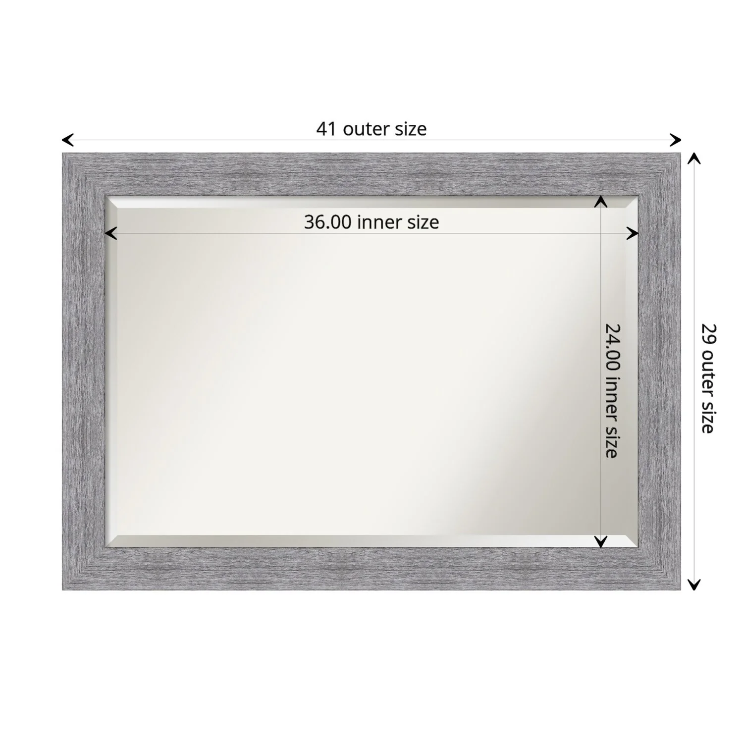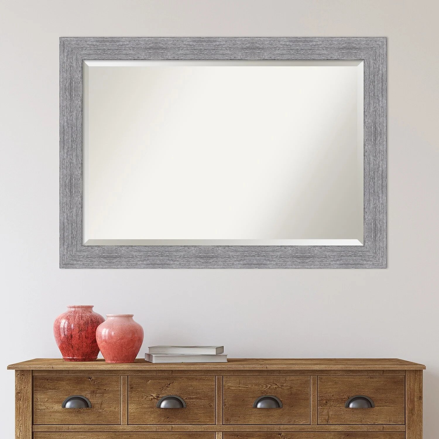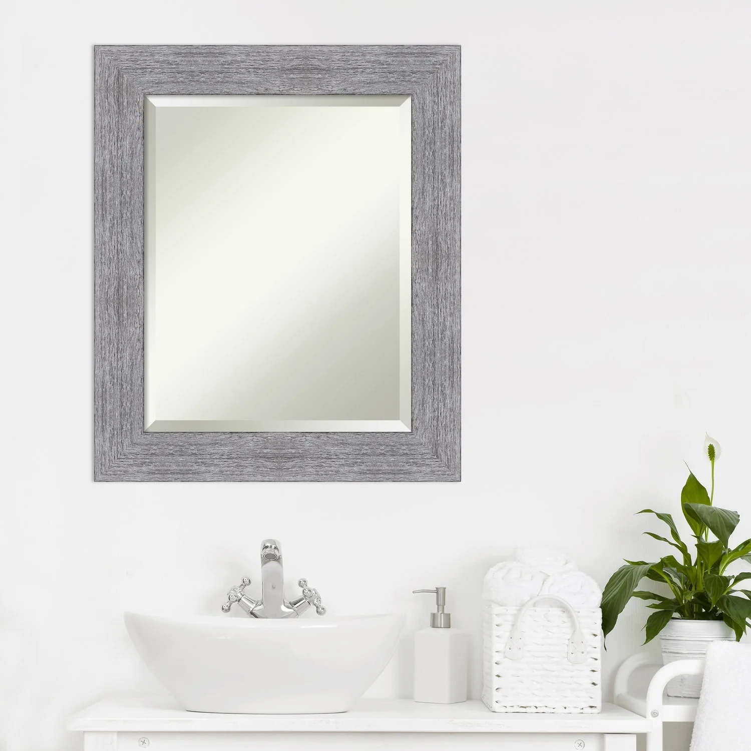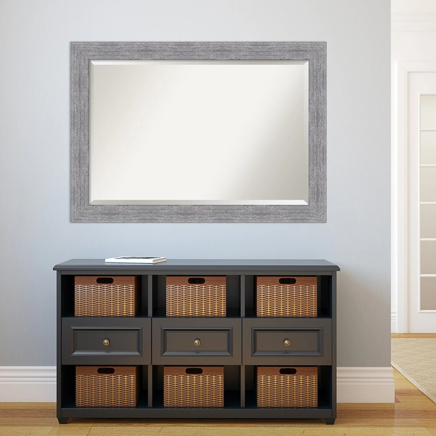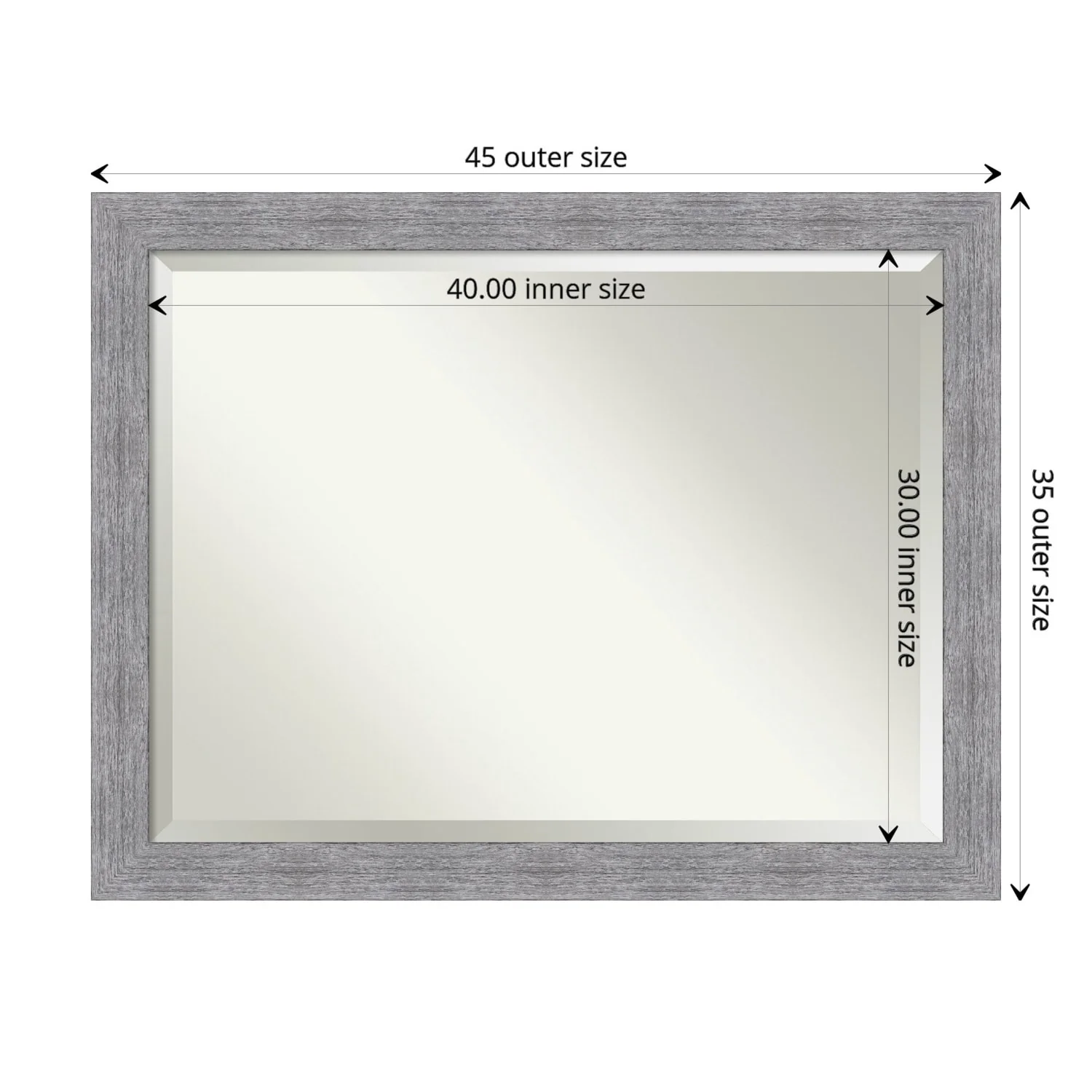 Add the perfect finishing touch to your bathroom with this Beveled Wall Mirror in a Bark Rustic Char Frame. Expertly crafted with traditional custom-framing techniques, it boasts exceptional quality that rivals your local frame shop. The premium finishing adds to its value and can be admired up close.