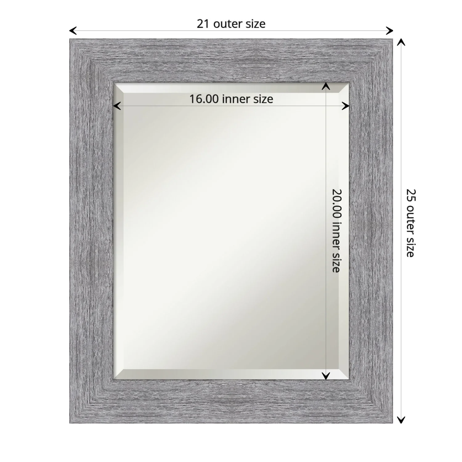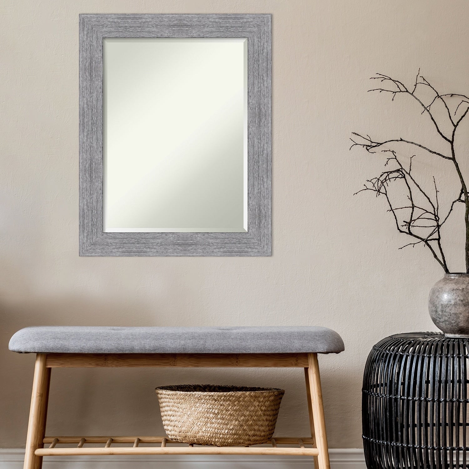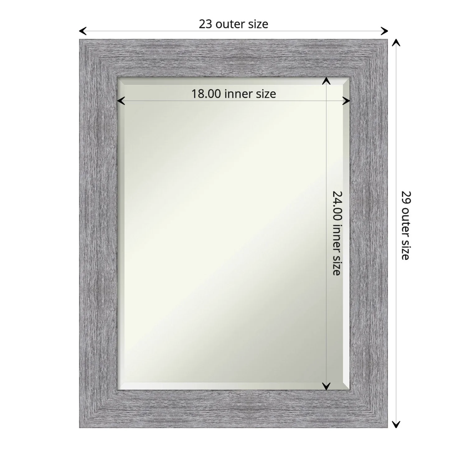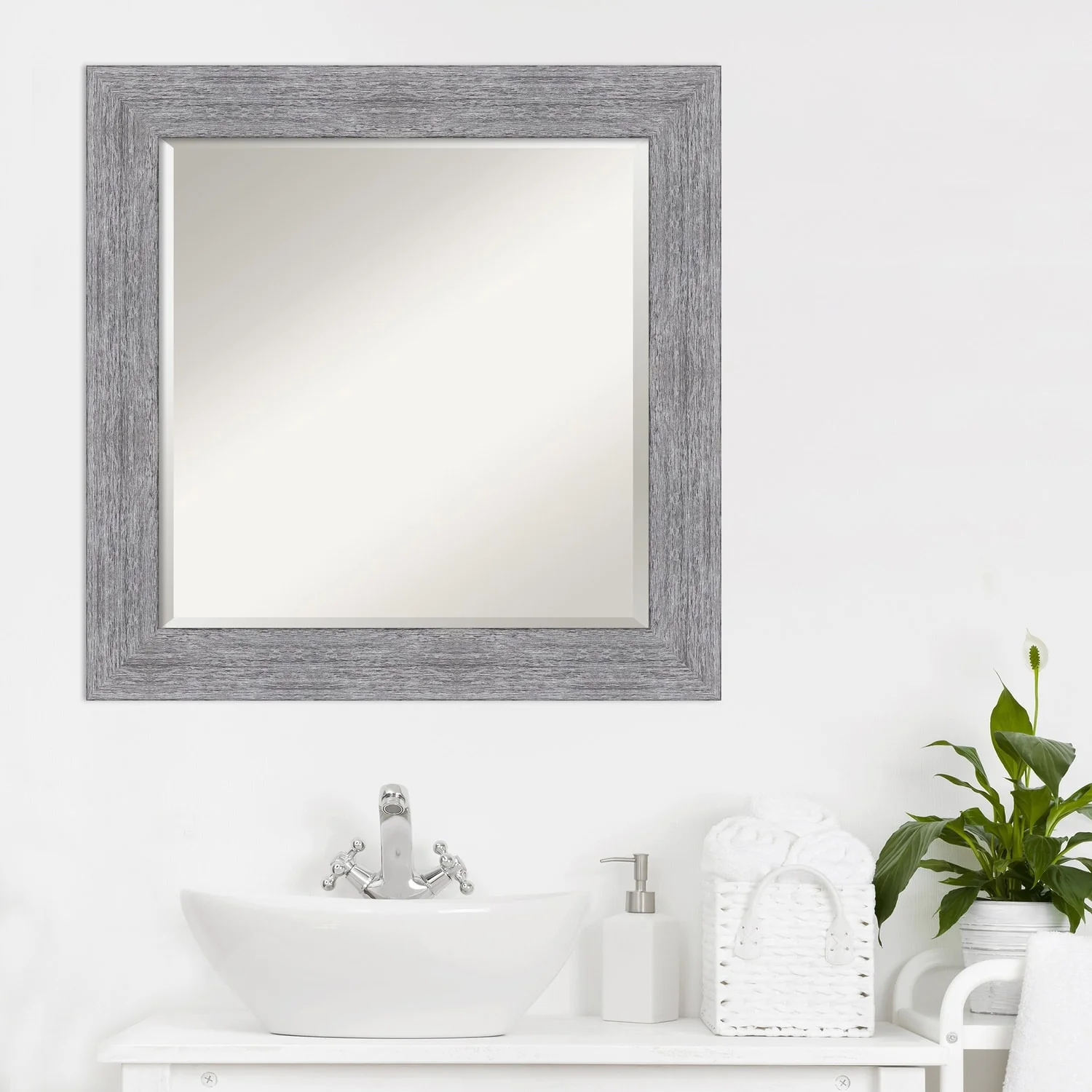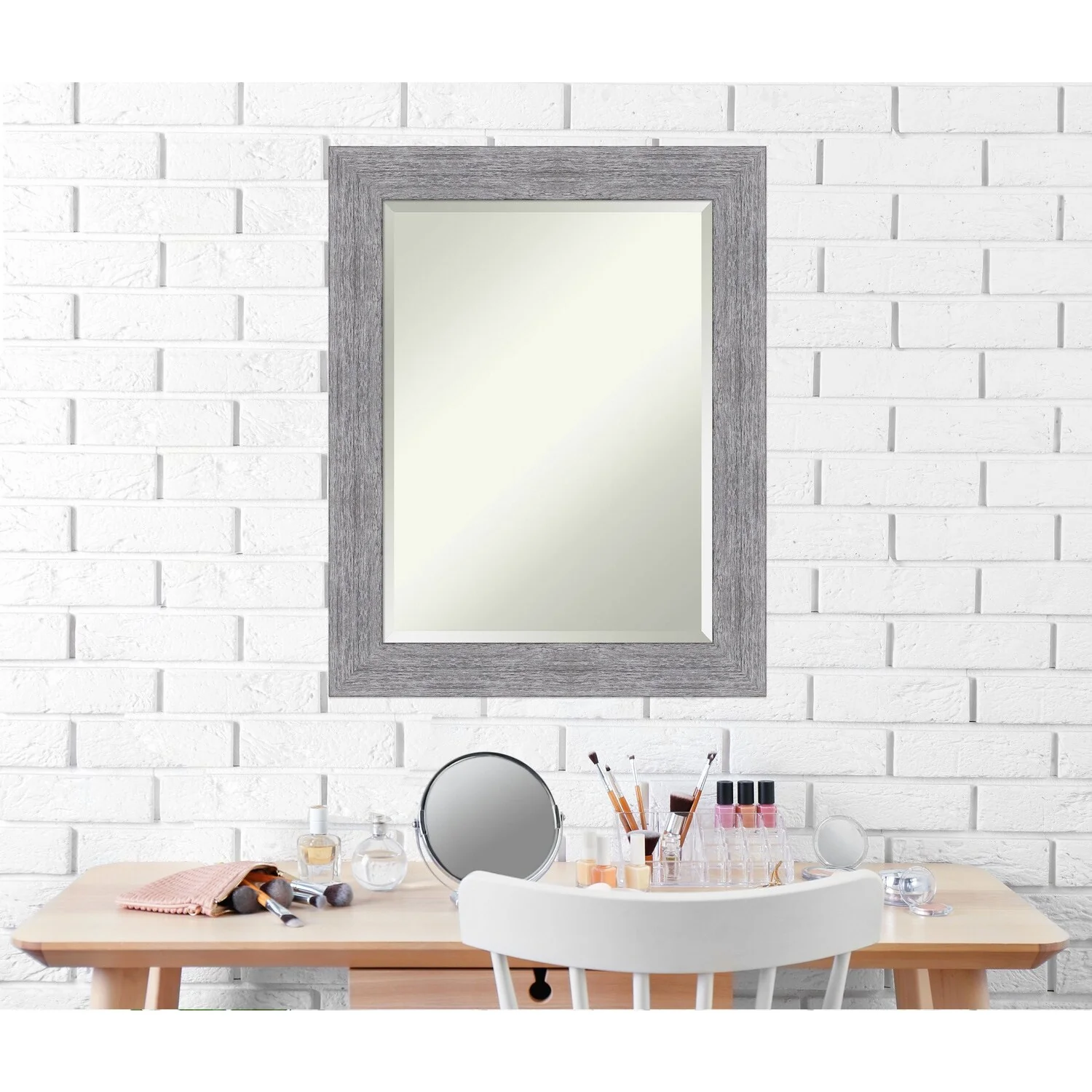 Add the perfect finishing touch to your bathroom with this Beveled Wall Mirror in a Bark Rustic Char Frame. Expertly crafted with traditional custom-framing techniques, it boasts exceptional quality that rivals your local frame shop. The premium finishing adds to its value and can be admired up close.