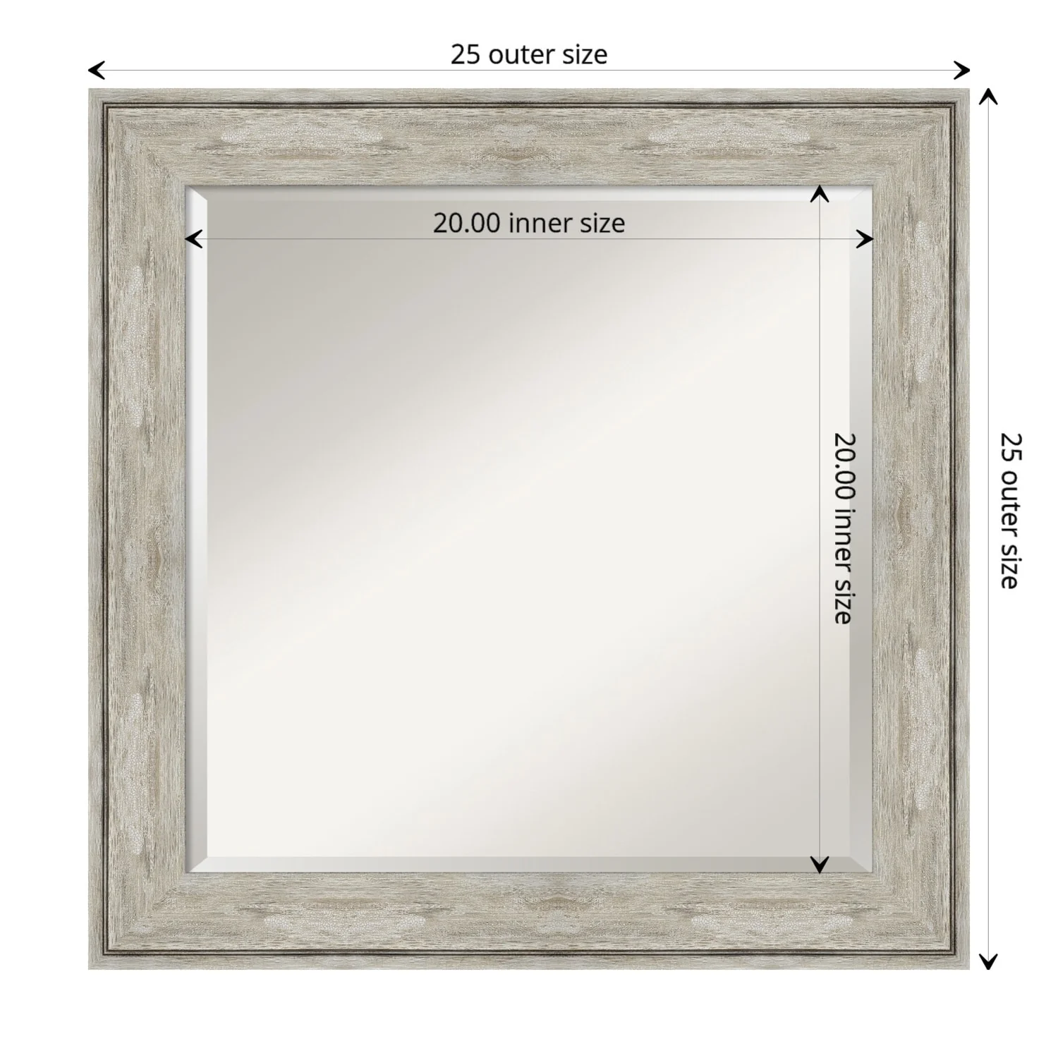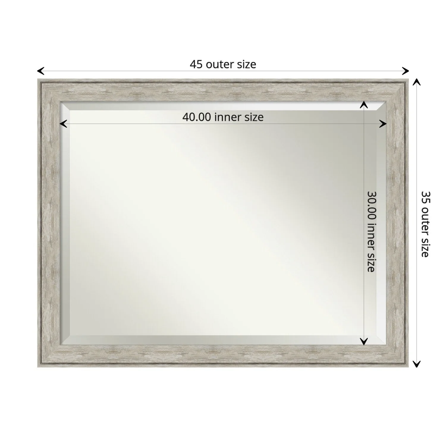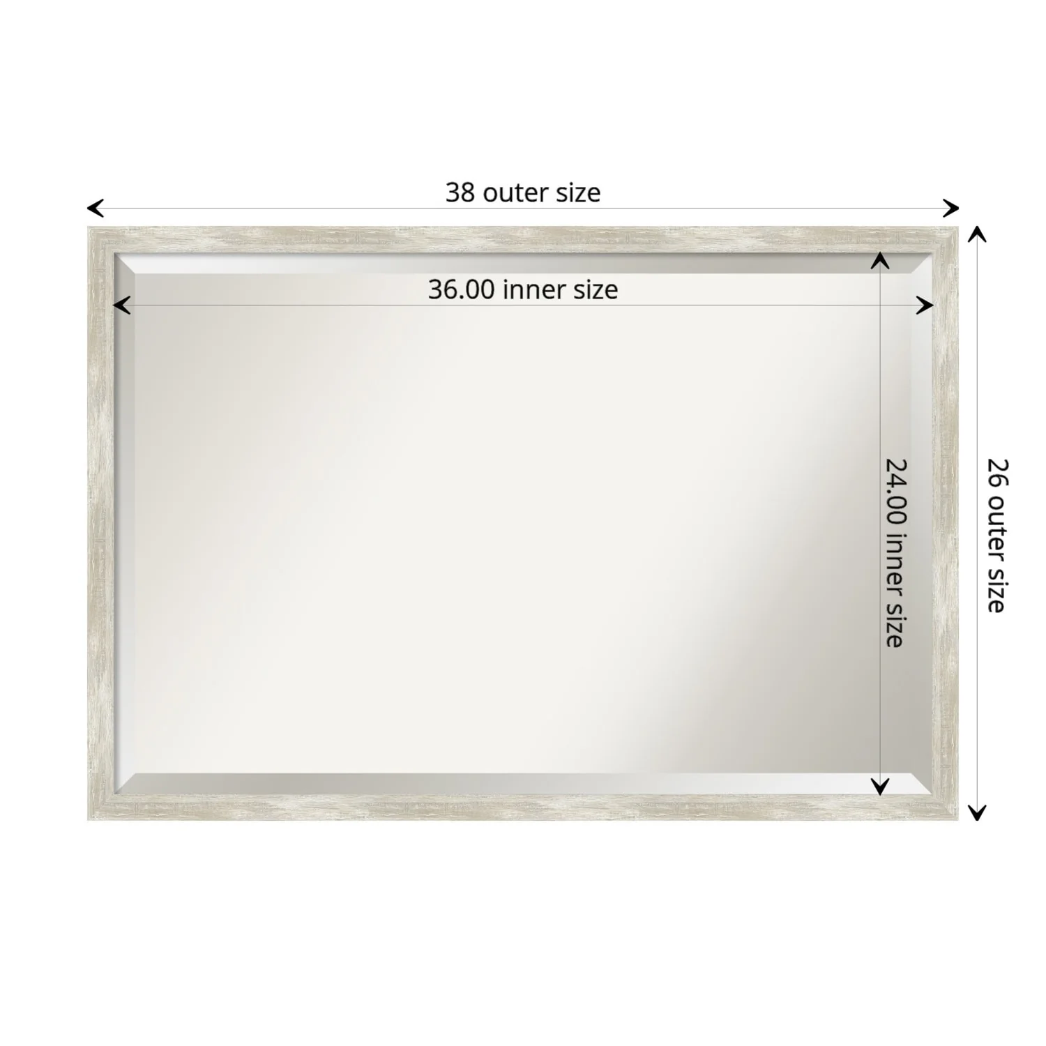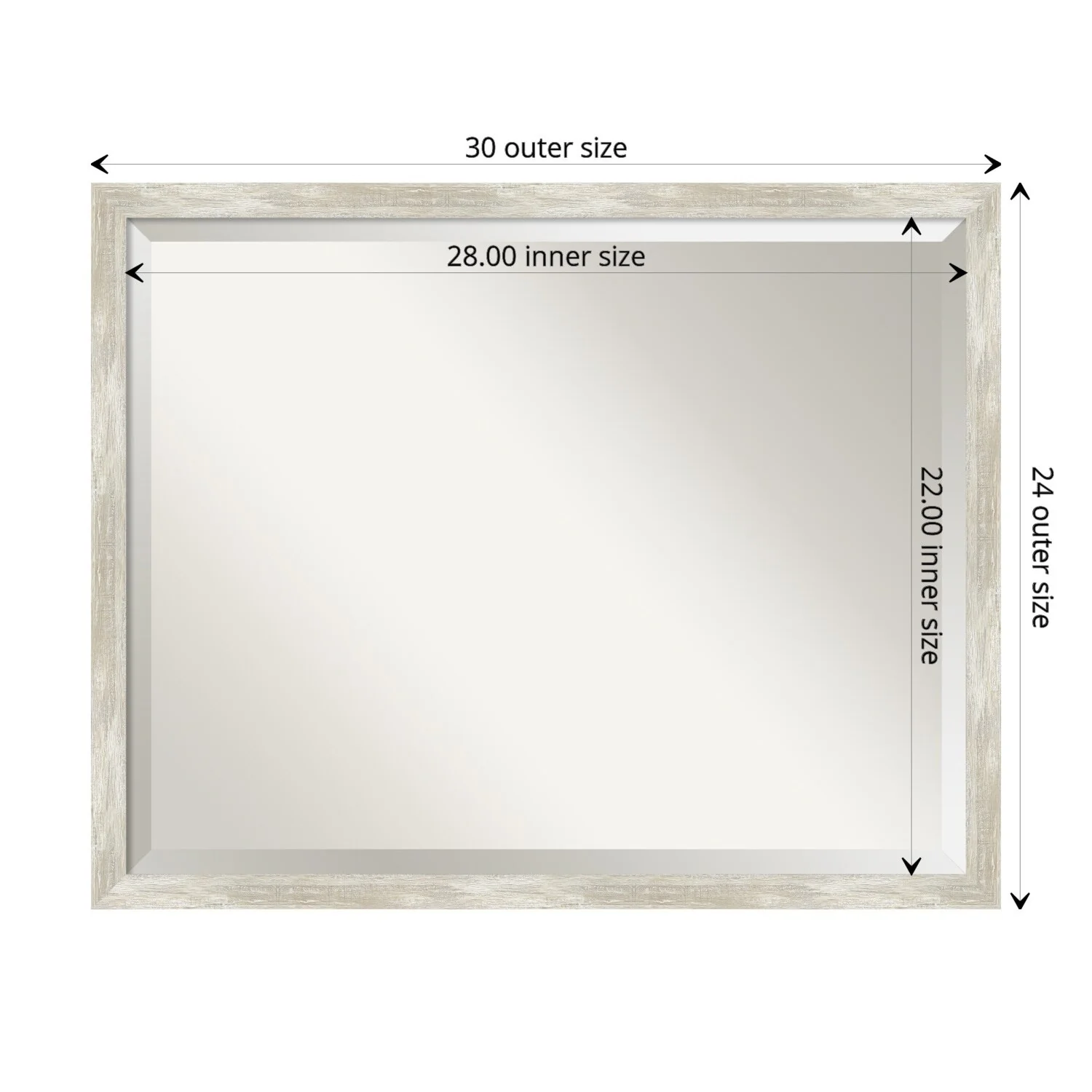 Add a touch of elegance to your bathroom with this Beveled Wall Mirror featuring a Crackled Metallic Frame. The premium glass provides a clear, undistorted reflection while the beveled edge adds a decorative touch. The frame is crafted using traditional custom framing techniques with a distressed silver and champagne panel and a neutral metallic, crackle-like finish, making it an eye-catching addition to any bathroom. Hang it vertically or horizontally with the durable hardware attached to the back. Assembled in the USA, this mirror is perfect for home or commercial use.