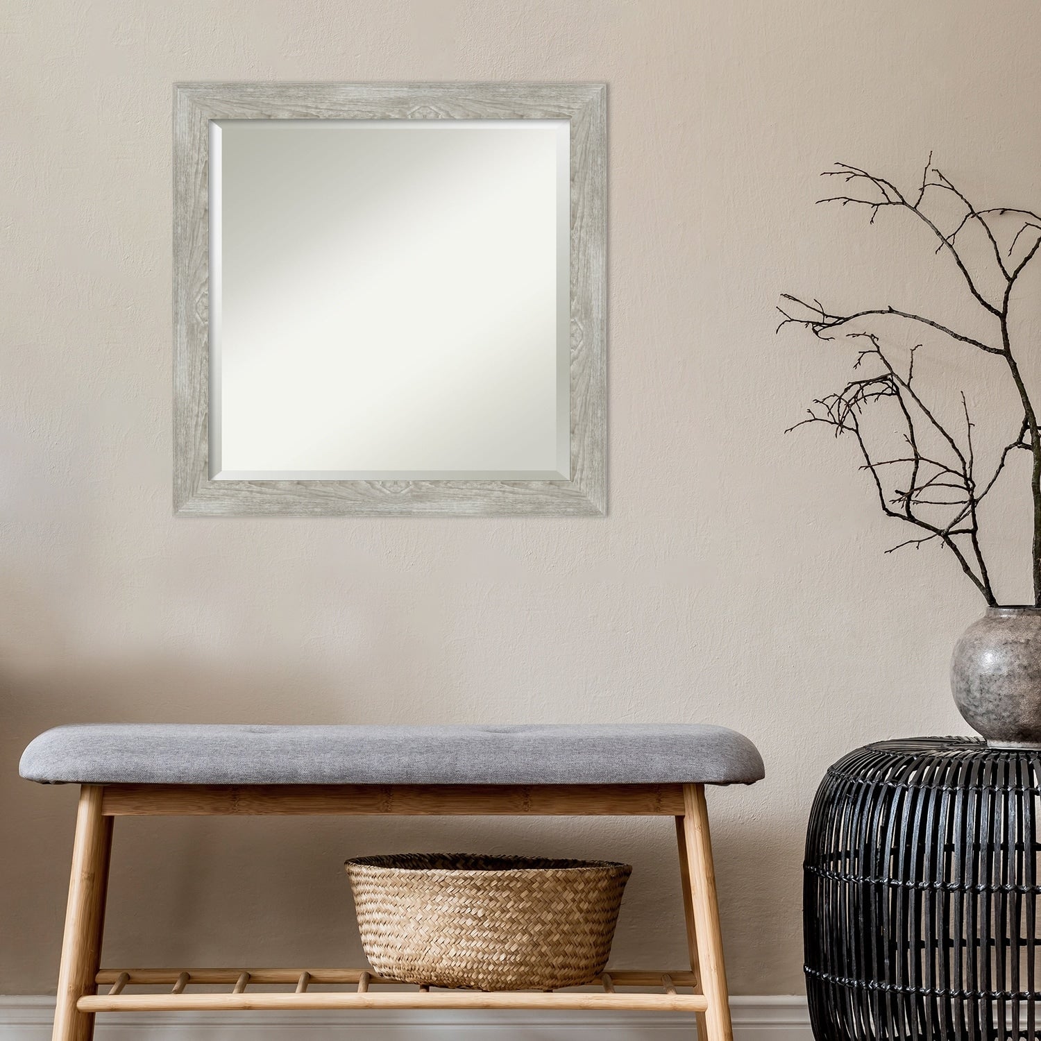 Add the perfect touch to your bathroom with this Beveled Wall Mirror in a Dove Greywash Narrow Frame. Made with traditional custom framing techniques, this individually crafted mirror brings the quality of your local frame shop to your home. Its premium finishing holds its value and adds style that can be appreciated up close.