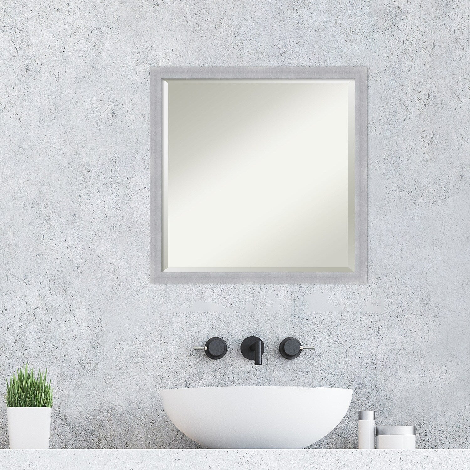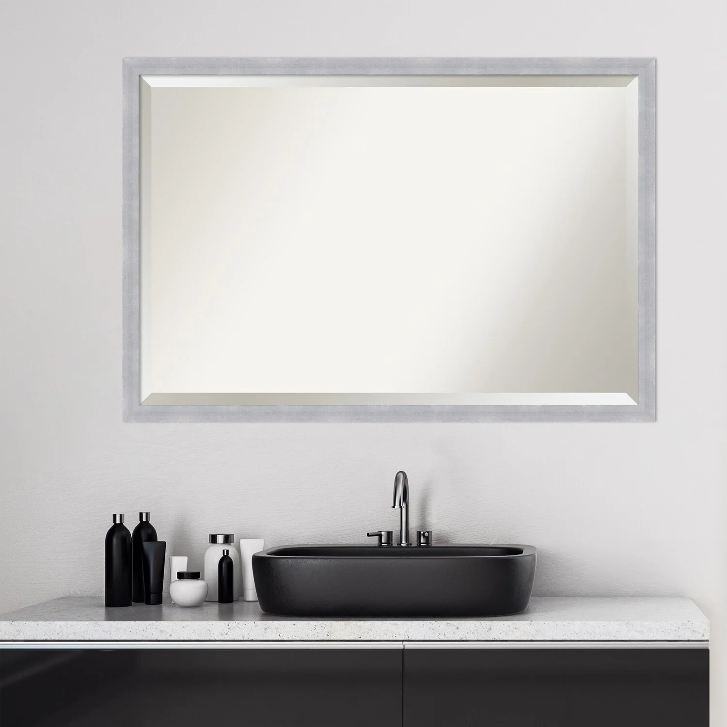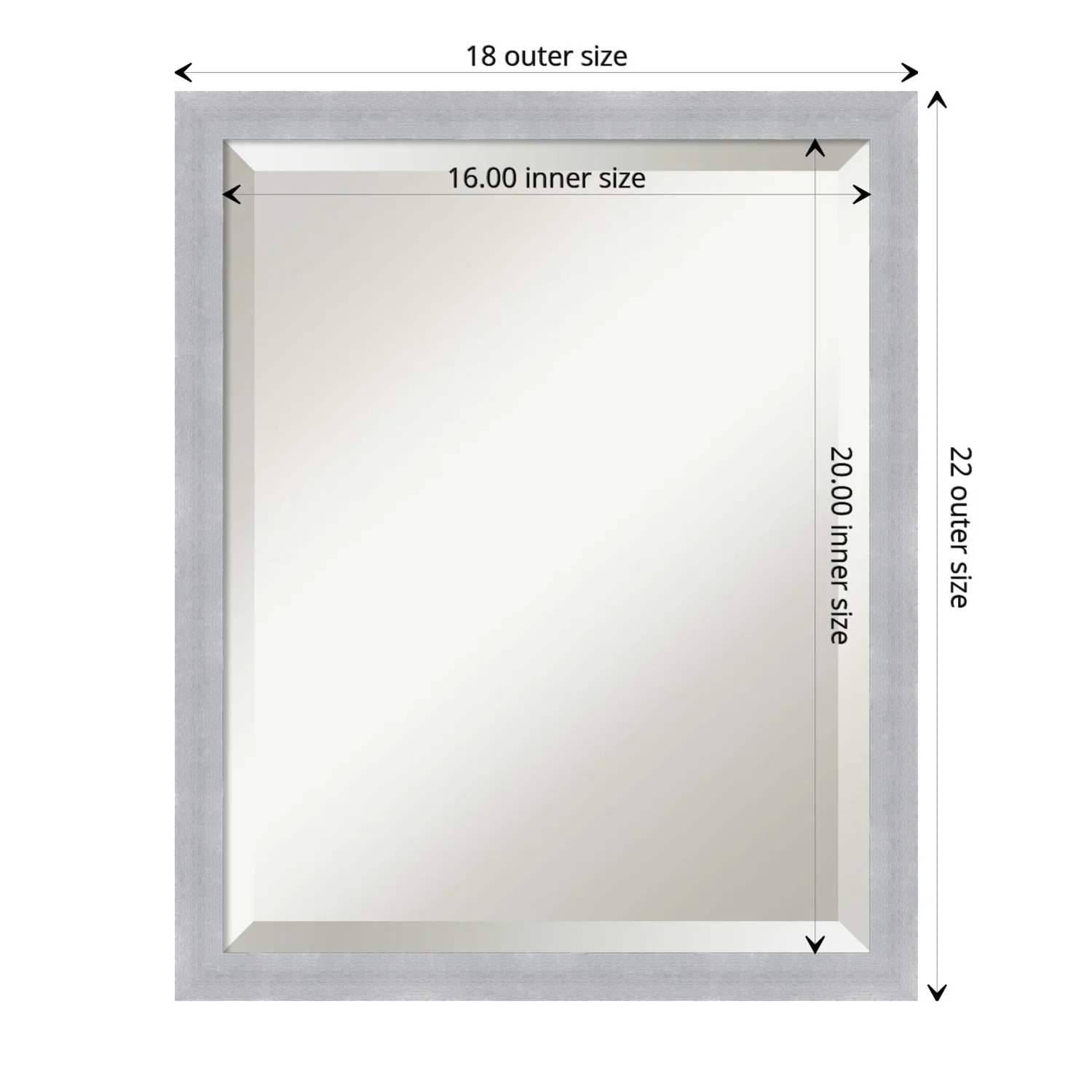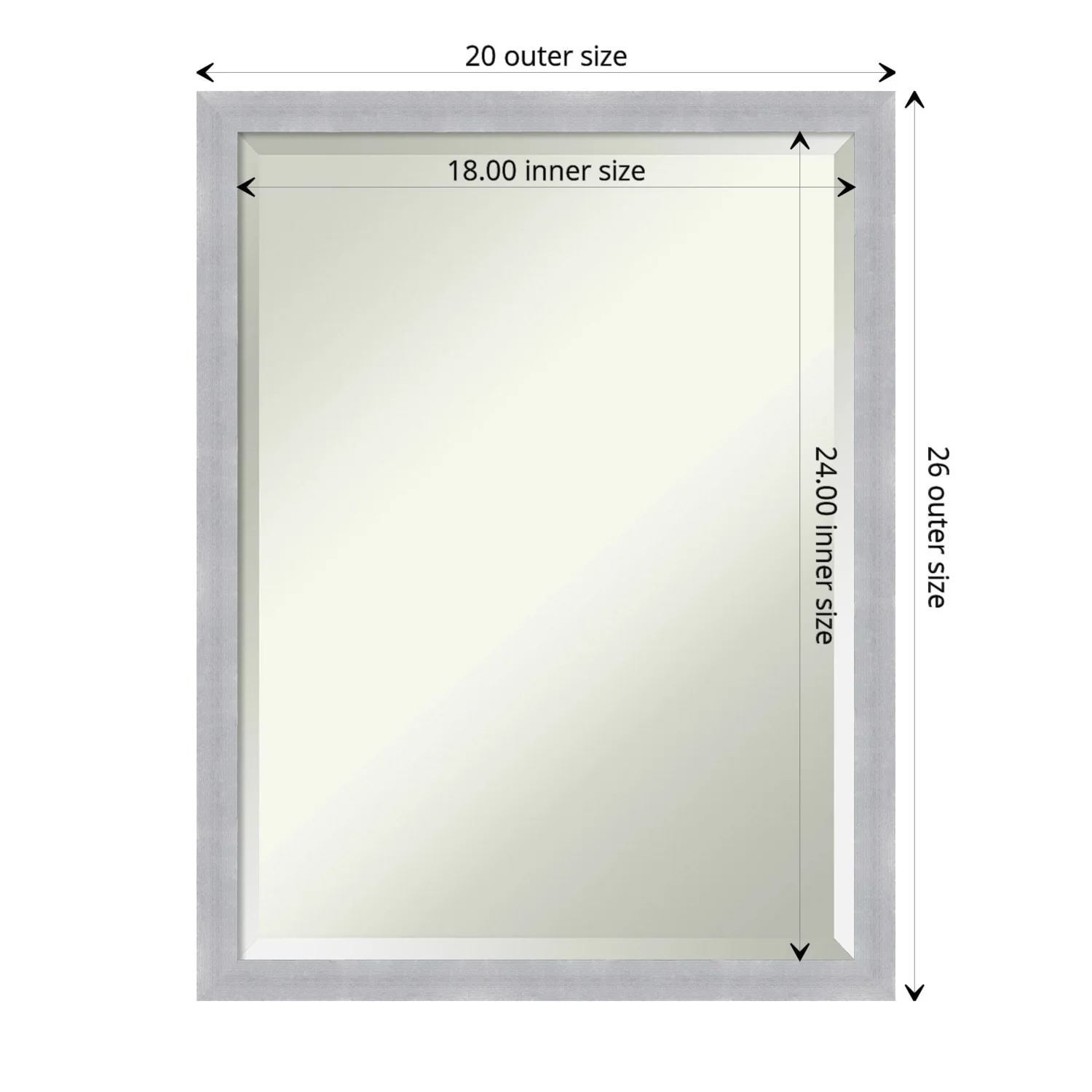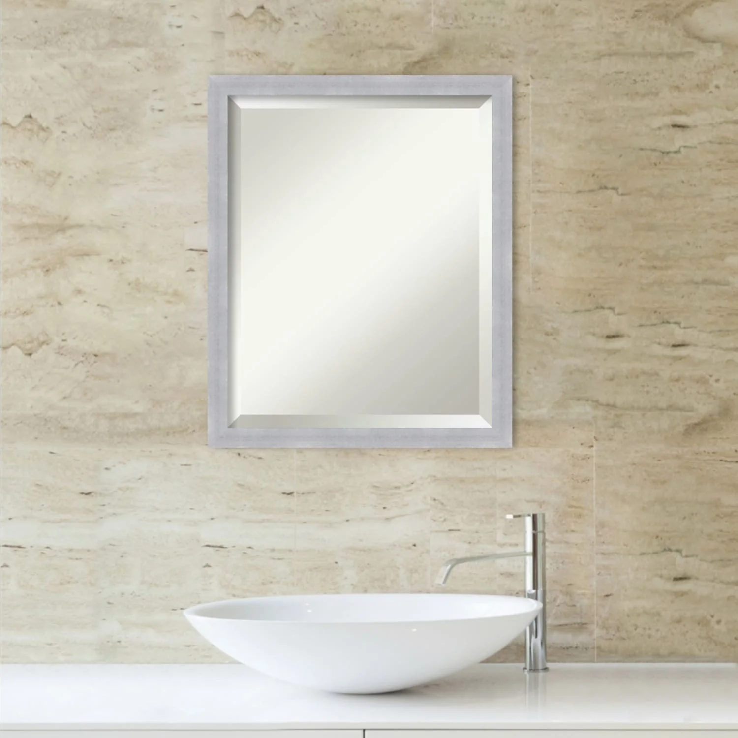 Add the finishing touch to your bathroom with this Beveled Wall Mirror framed with the Grace Brushed Narrow Frame. Made using traditional custom framing techniques, it boasts premium finishing and quality, perfect for a luxury feel. The mirror features premium glass that delivers a clear and undistorted image, while the beveled edge adds a decorative touch. With durable hanging hardware attached to the back, this mirror can be hung vertically or horizontally with ease.