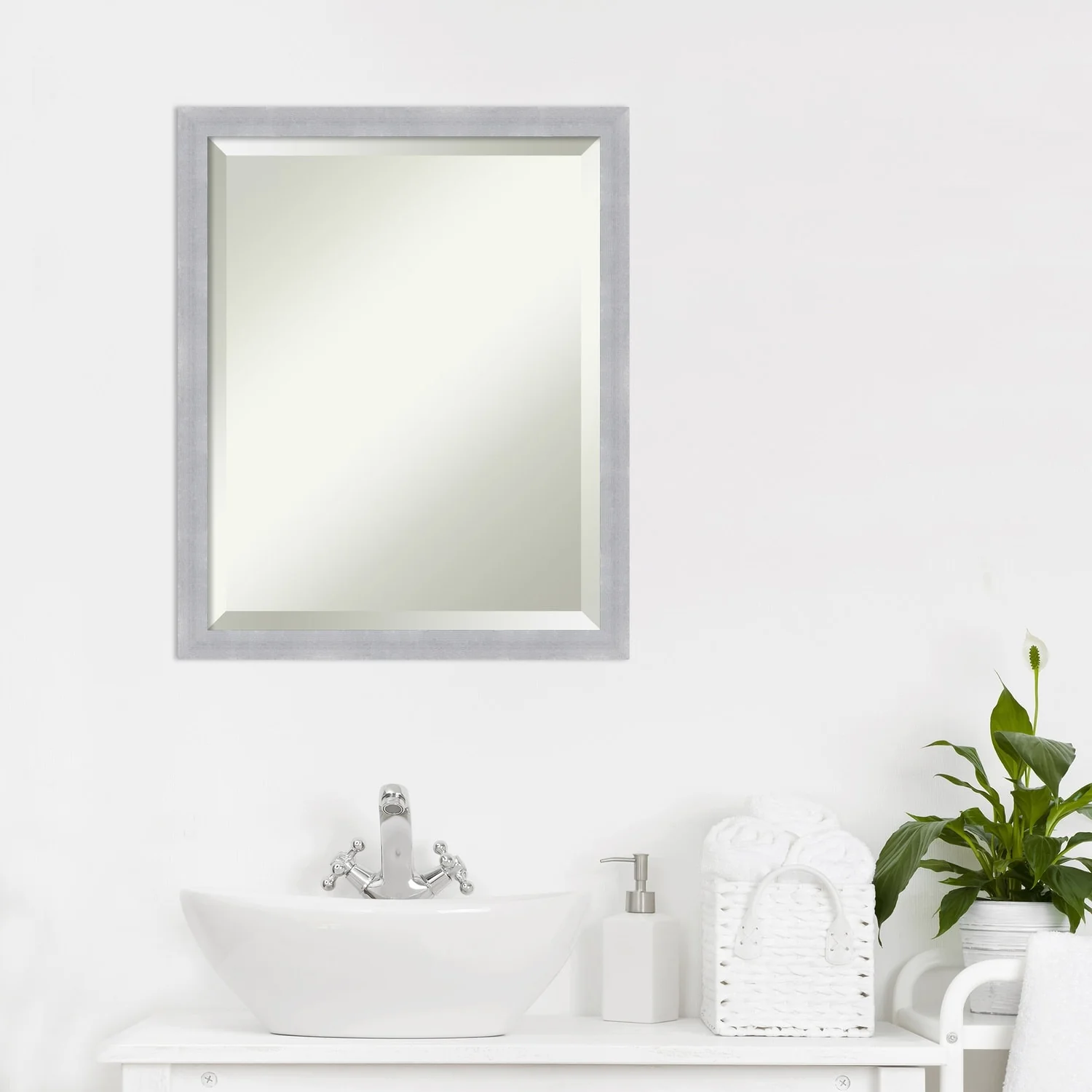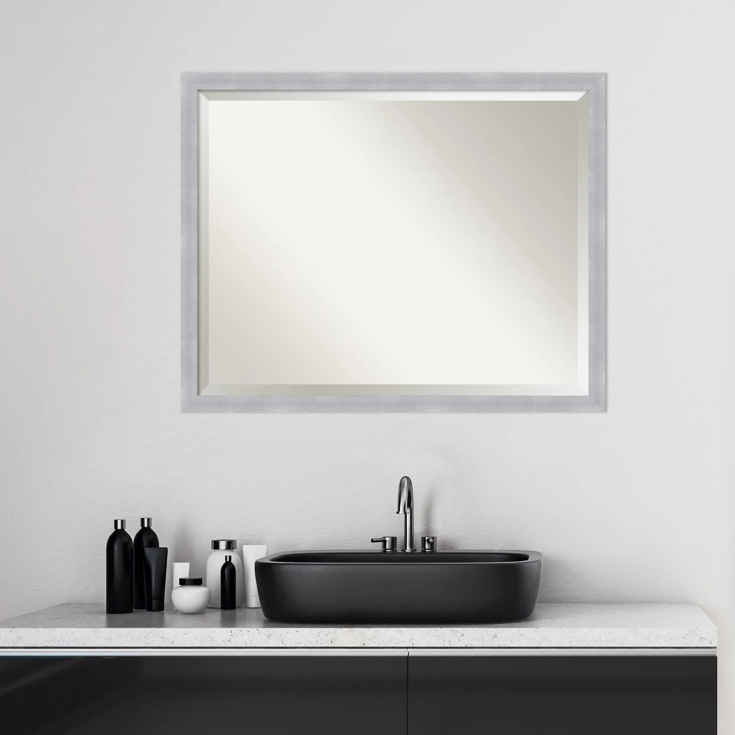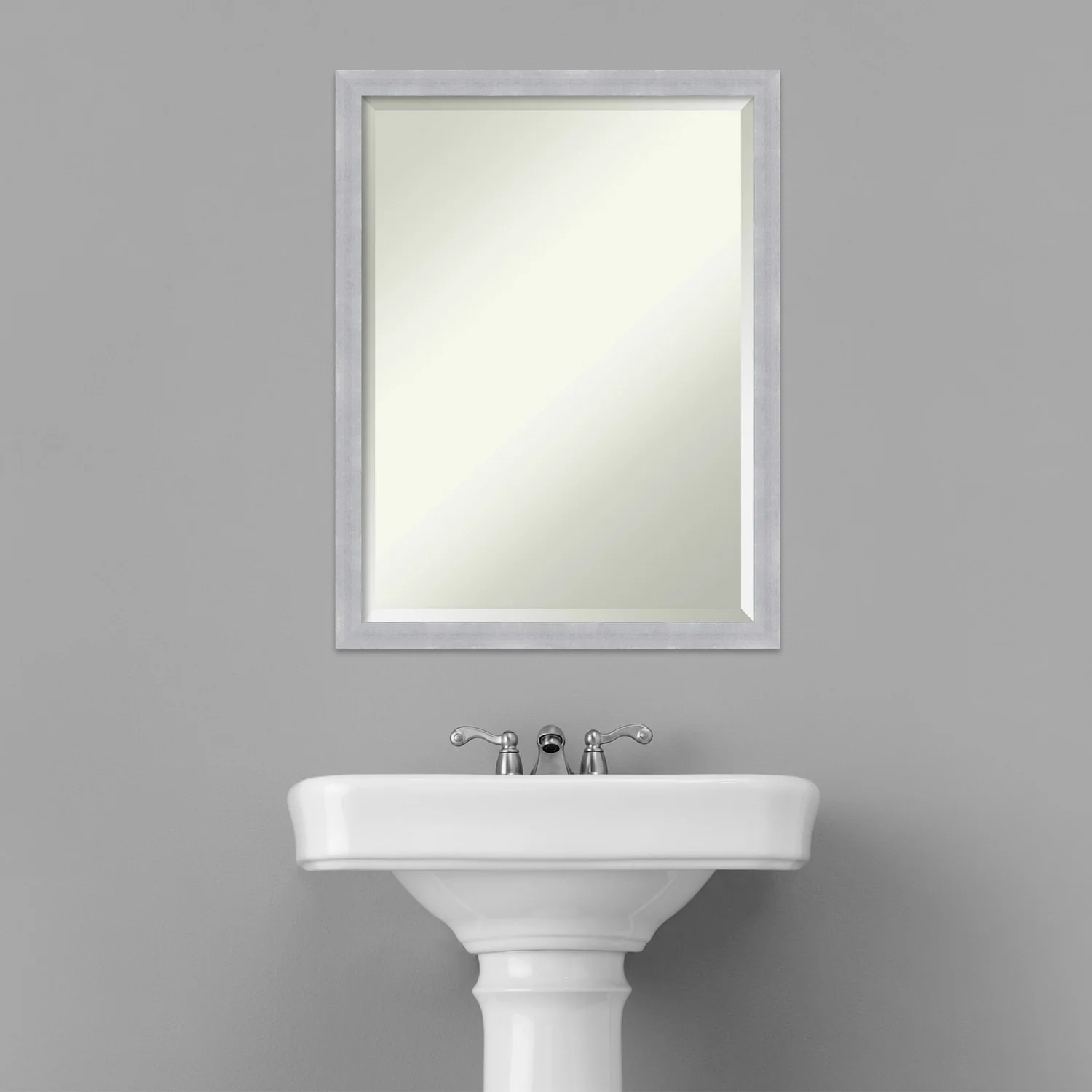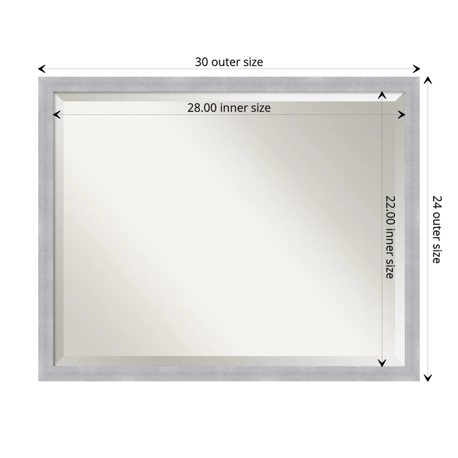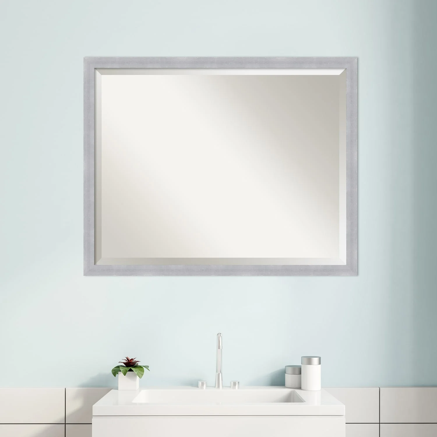 Add the finishing touch to your bathroom with this Beveled Wall Mirror framed with the Grace Brushed Narrow Frame. Made using traditional custom framing techniques, it boasts premium finishing and quality, perfect for a luxury feel. The mirror features premium glass that delivers a clear and undistorted image, while the beveled edge adds a decorative touch. With durable hanging hardware attached to the back, this mirror can be hung vertically or horizontally with ease.