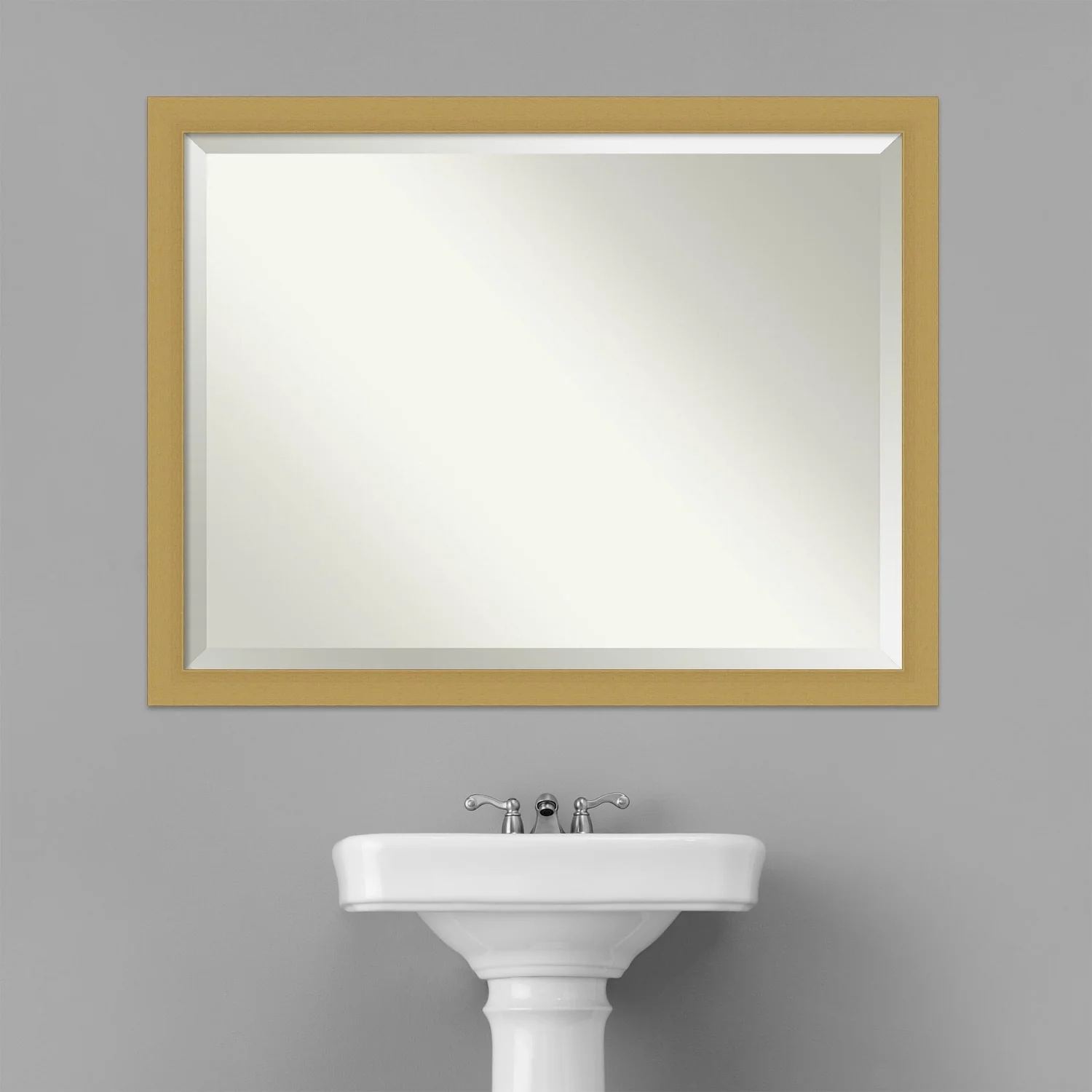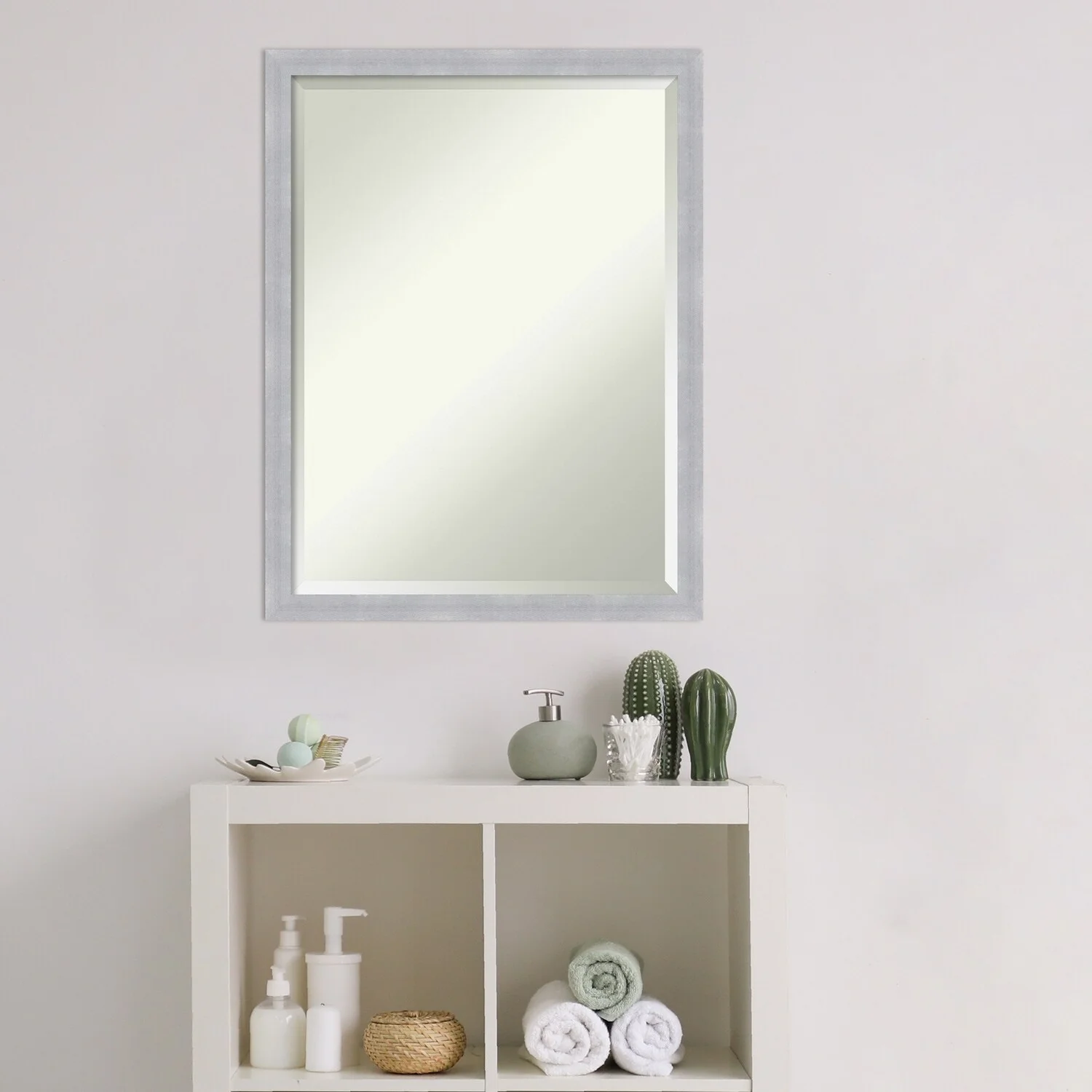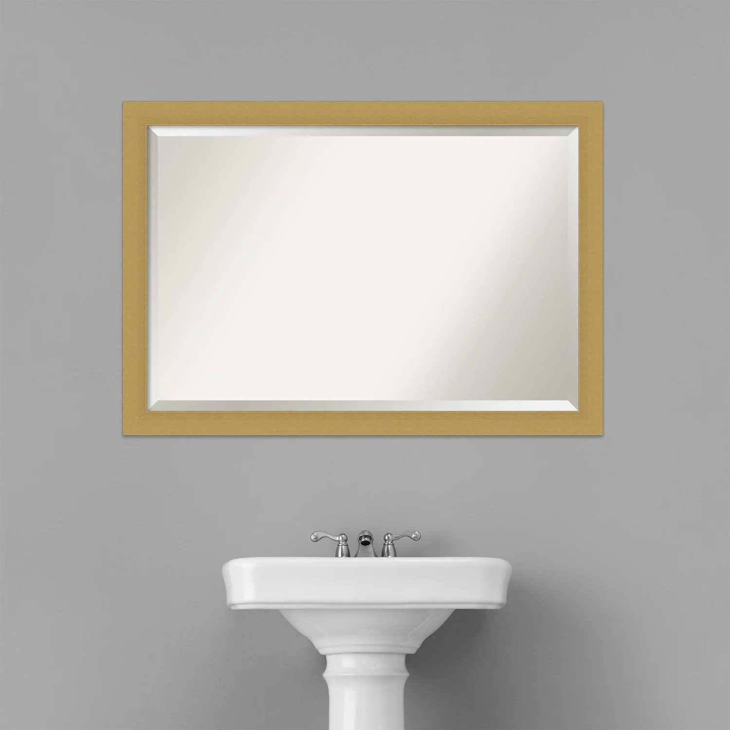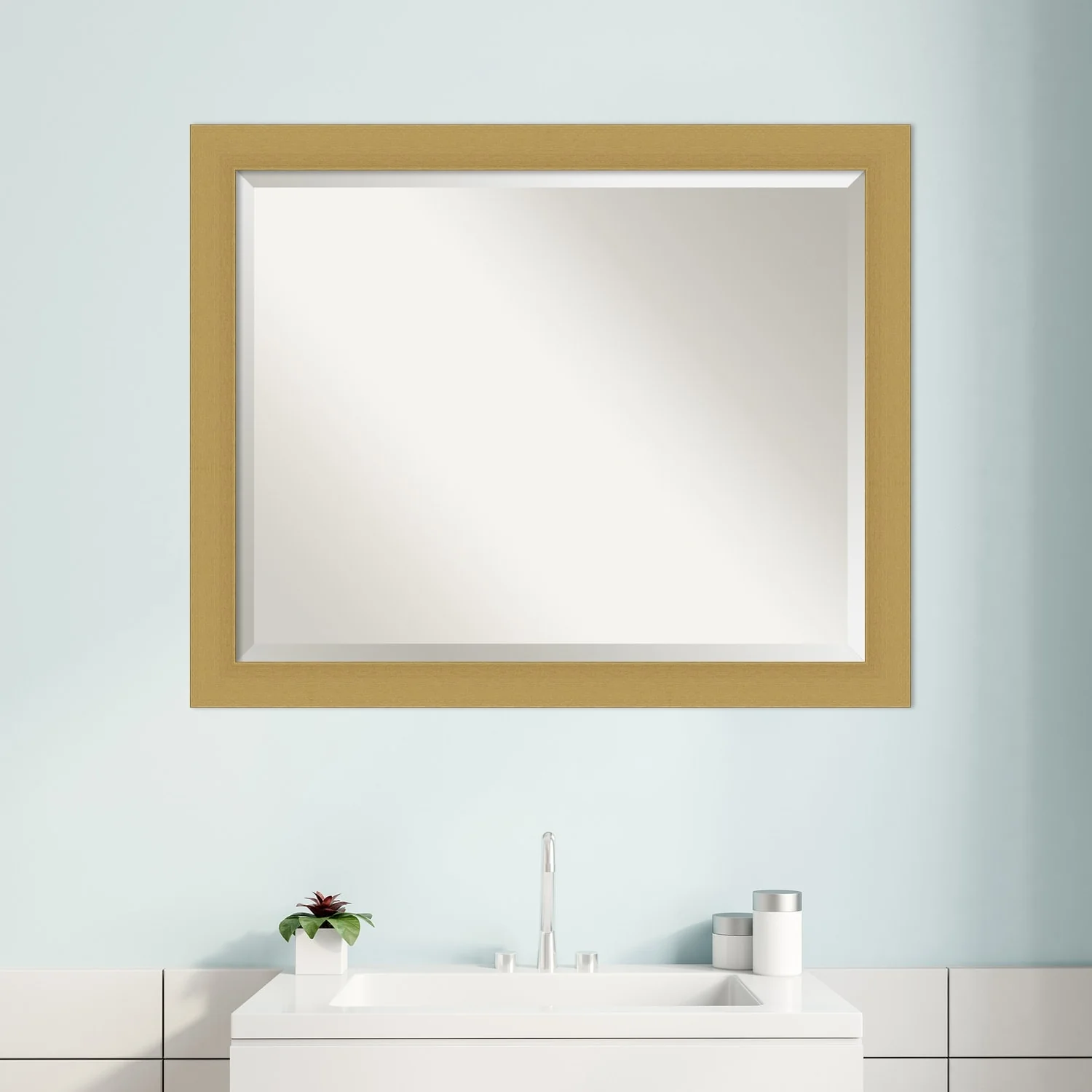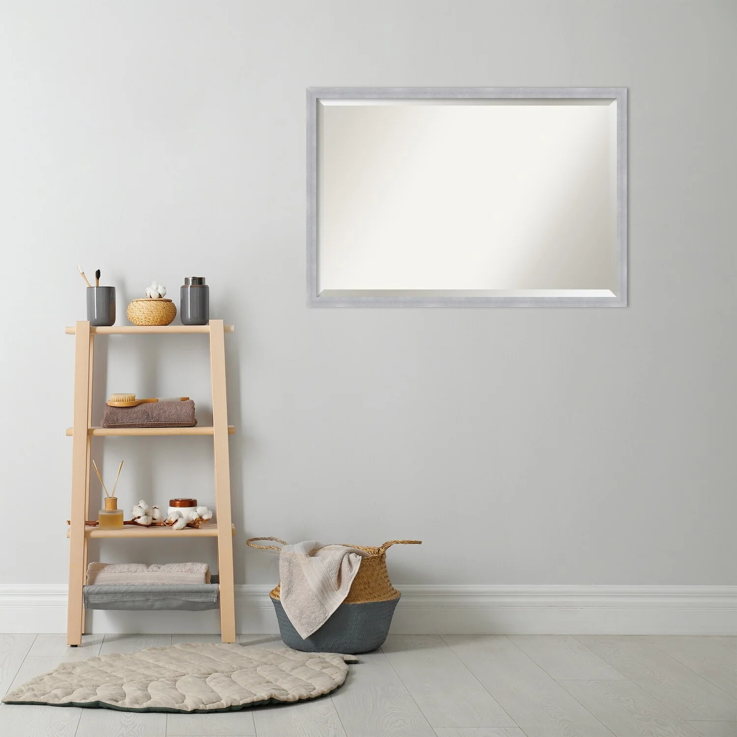 Add the finishing touch to your bathroom with this Beveled Wall Mirror framed with the Grace Brushed Narrow Frame. Made using traditional custom framing techniques, it boasts premium finishing and quality, perfect for a luxury feel. The mirror features premium glass that delivers a clear and undistorted image, while the beveled edge adds a decorative touch. With durable hanging hardware attached to the back, this mirror can be hung vertically or horizontally with ease.