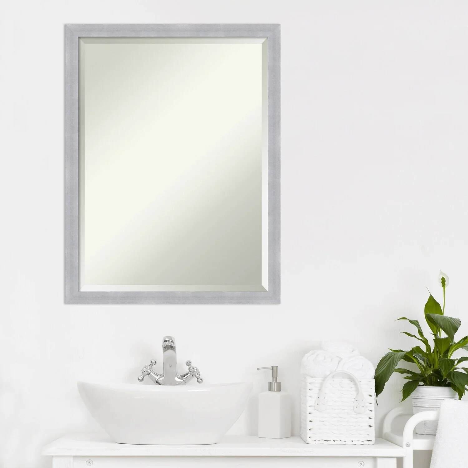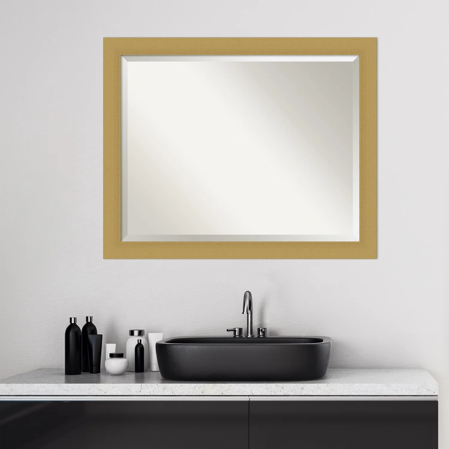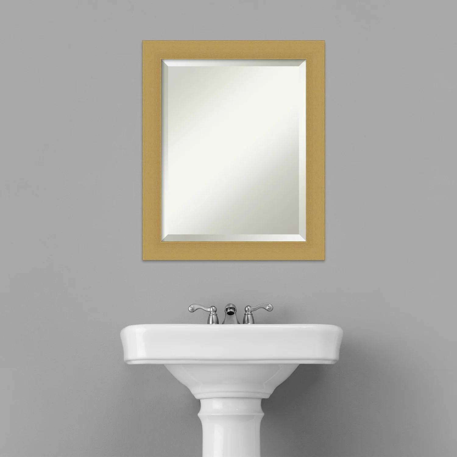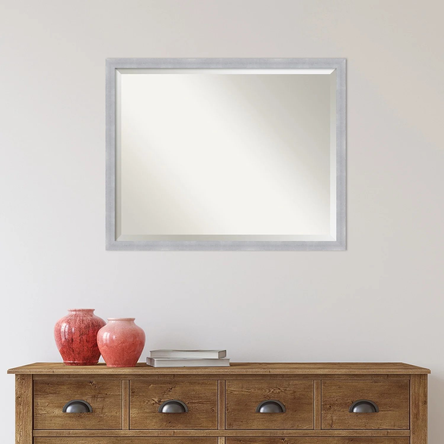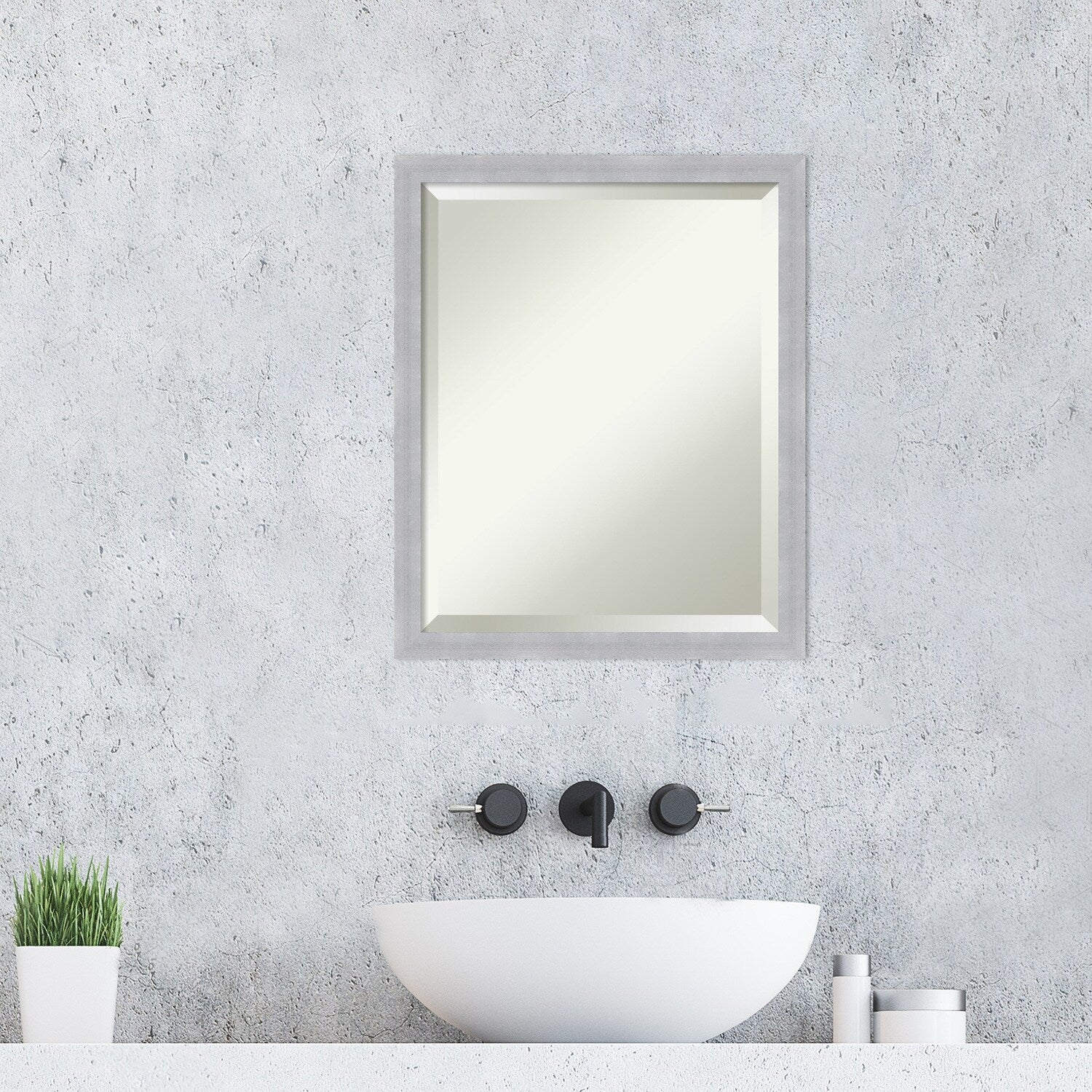 Add the finishing touch to your bathroom with this Beveled Wall Mirror framed with the Grace Brushed Narrow Frame. Made using traditional custom framing techniques, it boasts premium finishing and quality, perfect for a luxury feel. The mirror features premium glass that delivers a clear and undistorted image, while the beveled edge adds a decorative touch. With durable hanging hardware attached to the back, this mirror can be hung vertically or horizontally with ease.