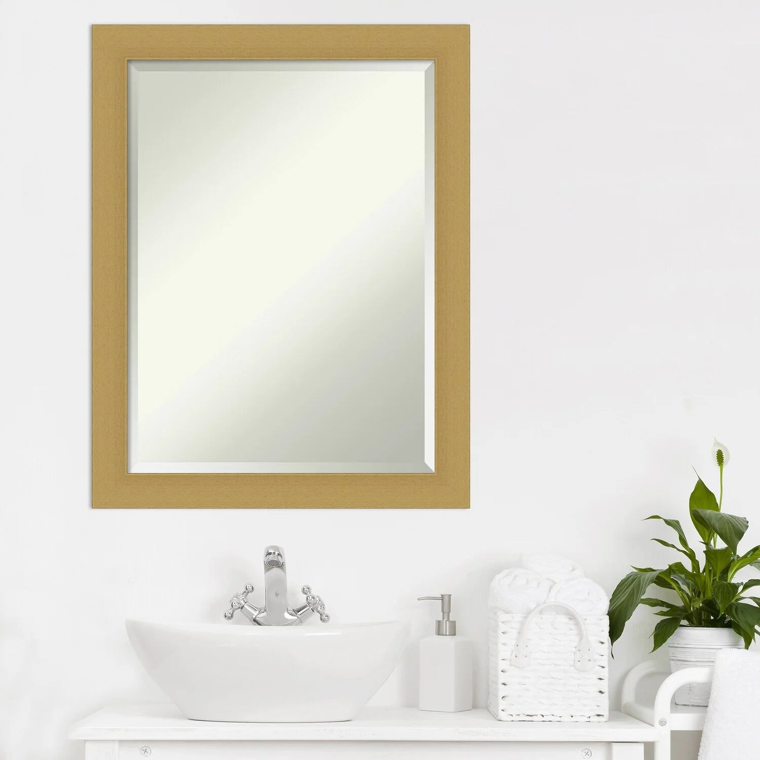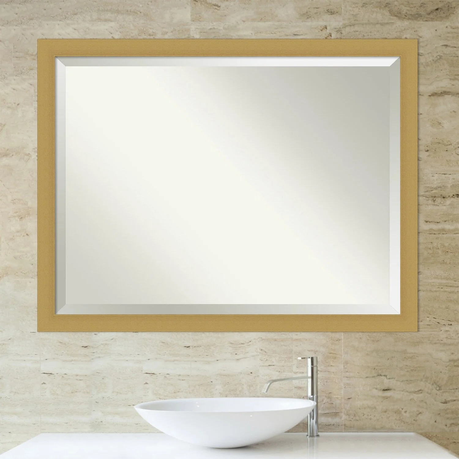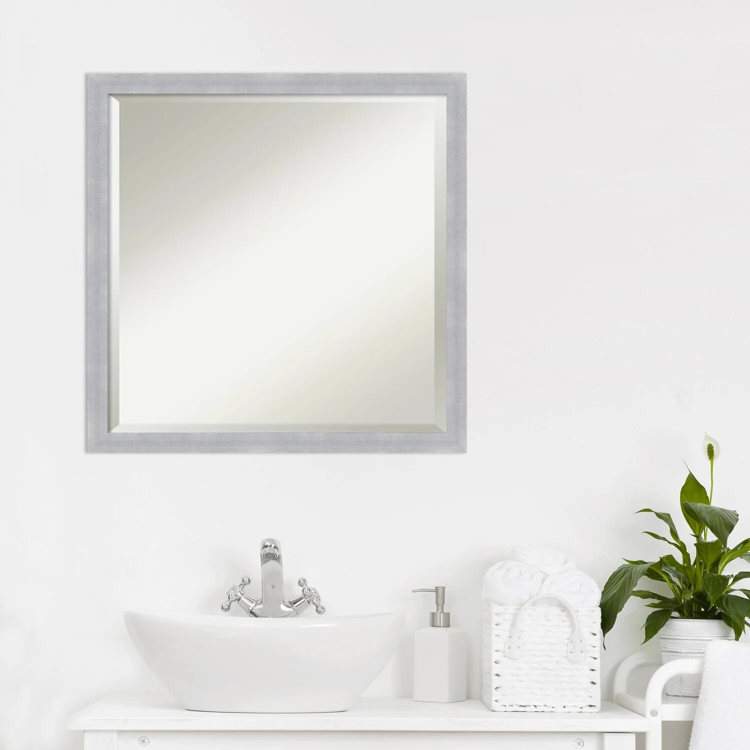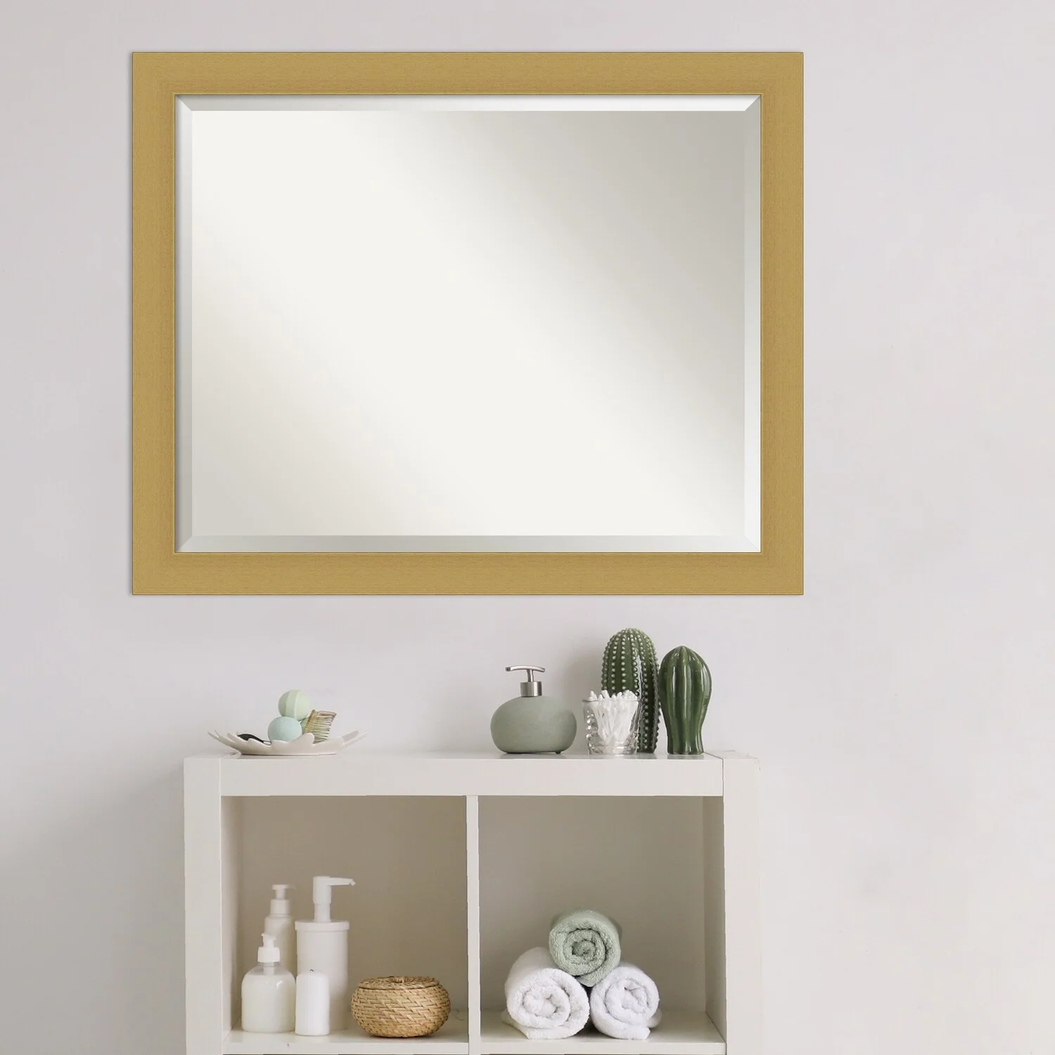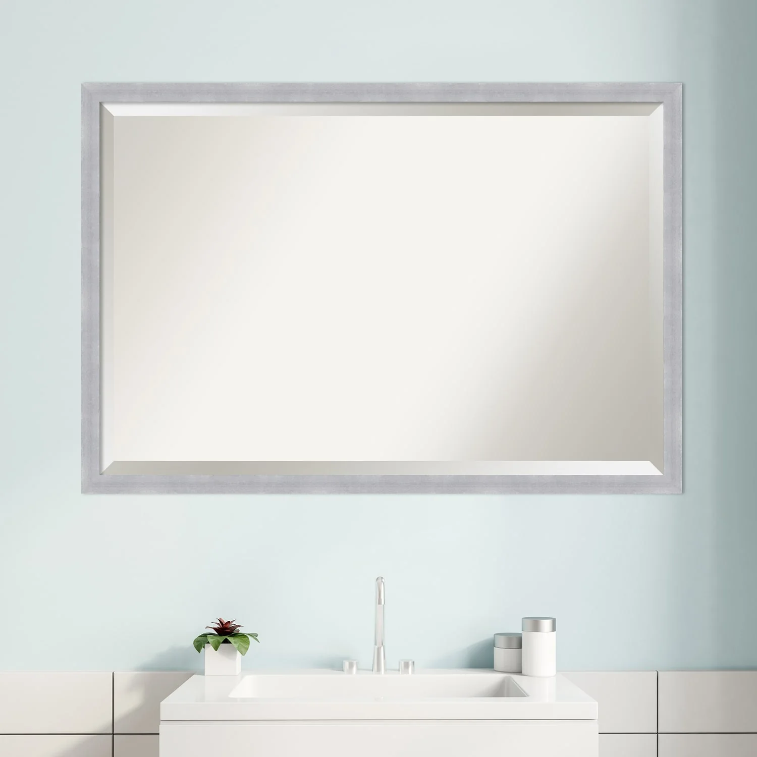 Add the finishing touch to your bathroom with this Beveled Wall Mirror framed with the Grace Brushed Narrow Frame. Made using traditional custom framing techniques, it boasts premium finishing and quality, perfect for a luxury feel. The mirror features premium glass that delivers a clear and undistorted image, while the beveled edge adds a decorative touch. With durable hanging hardware attached to the back, this mirror can be hung vertically or horizontally with ease.