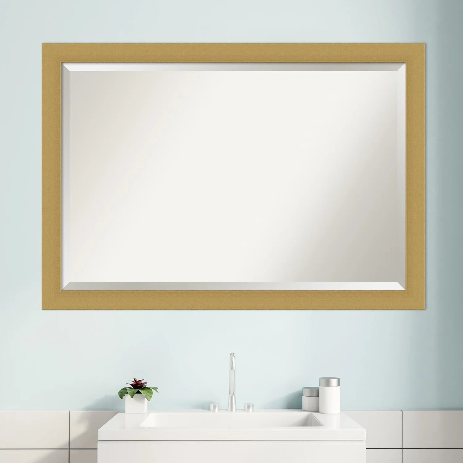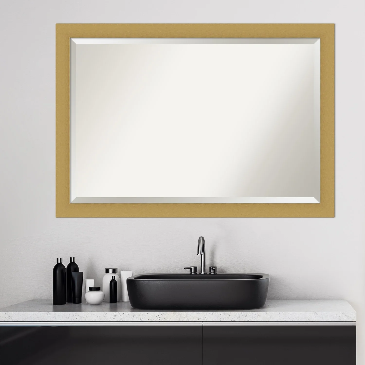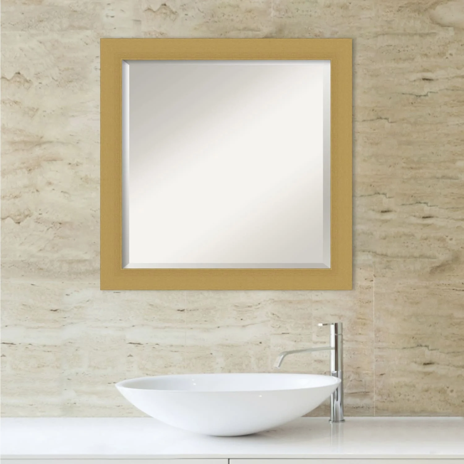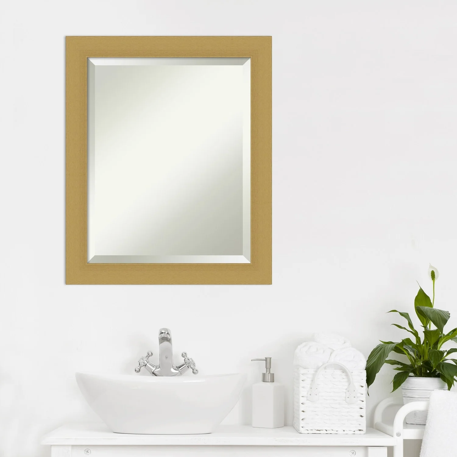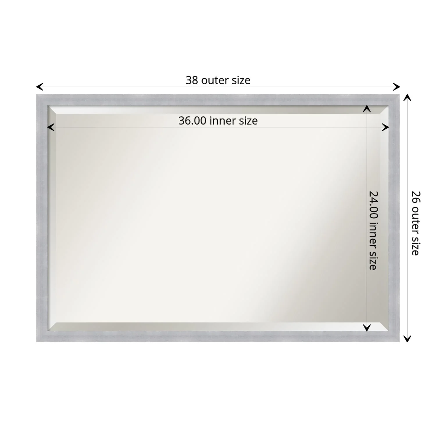 Add the finishing touch to your bathroom with this Beveled Wall Mirror framed with the Grace Brushed Narrow Frame. Made using traditional custom framing techniques, it boasts premium finishing and quality, perfect for a luxury feel. The mirror features premium glass that delivers a clear and undistorted image, while the beveled edge adds a decorative touch. With durable hanging hardware attached to the back, this mirror can be hung vertically or horizontally with ease.