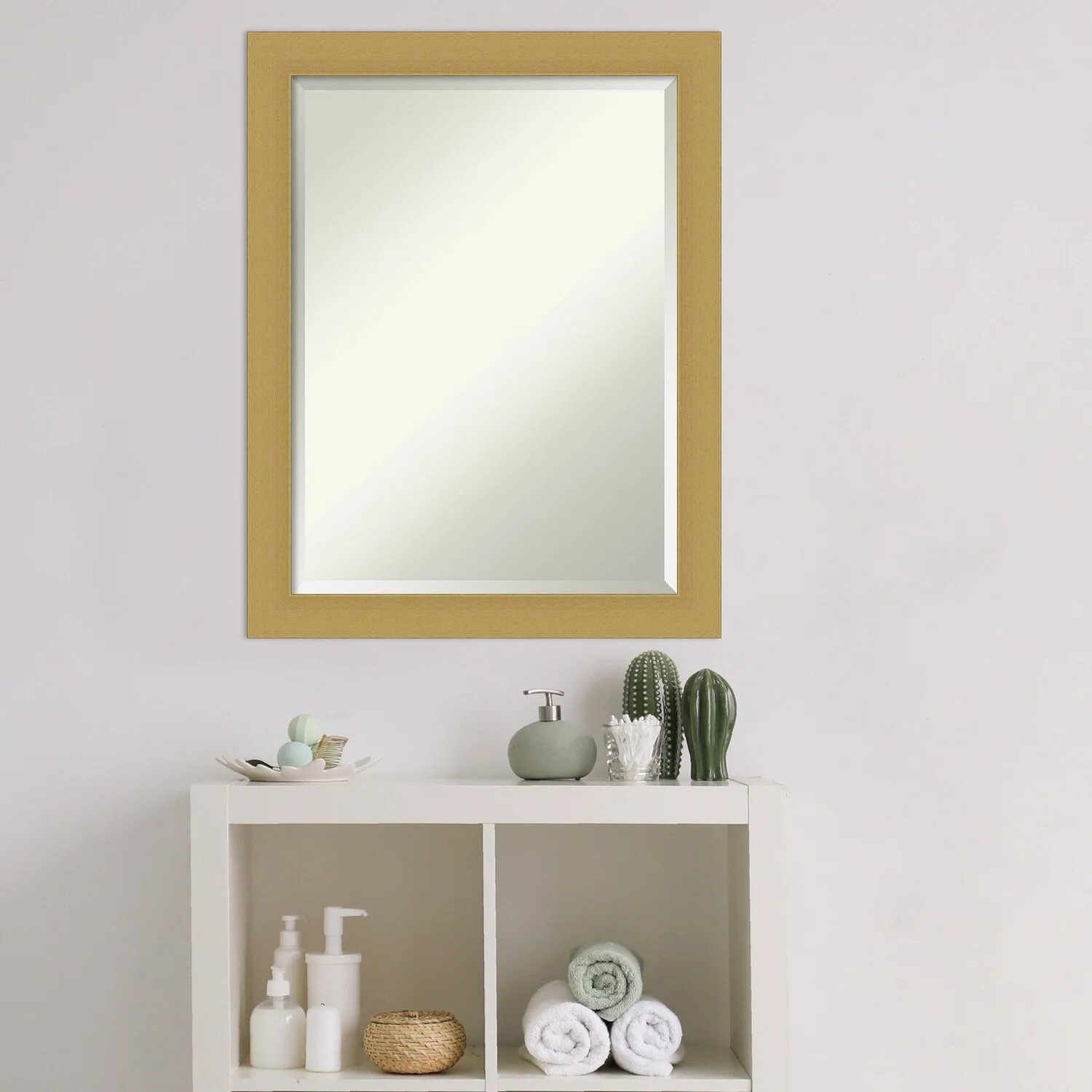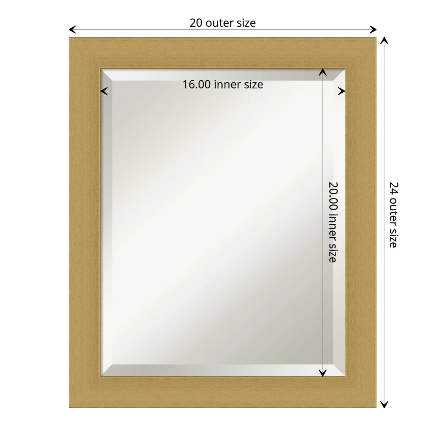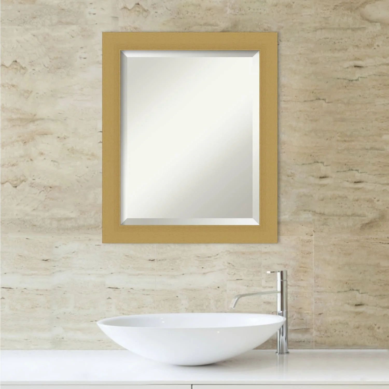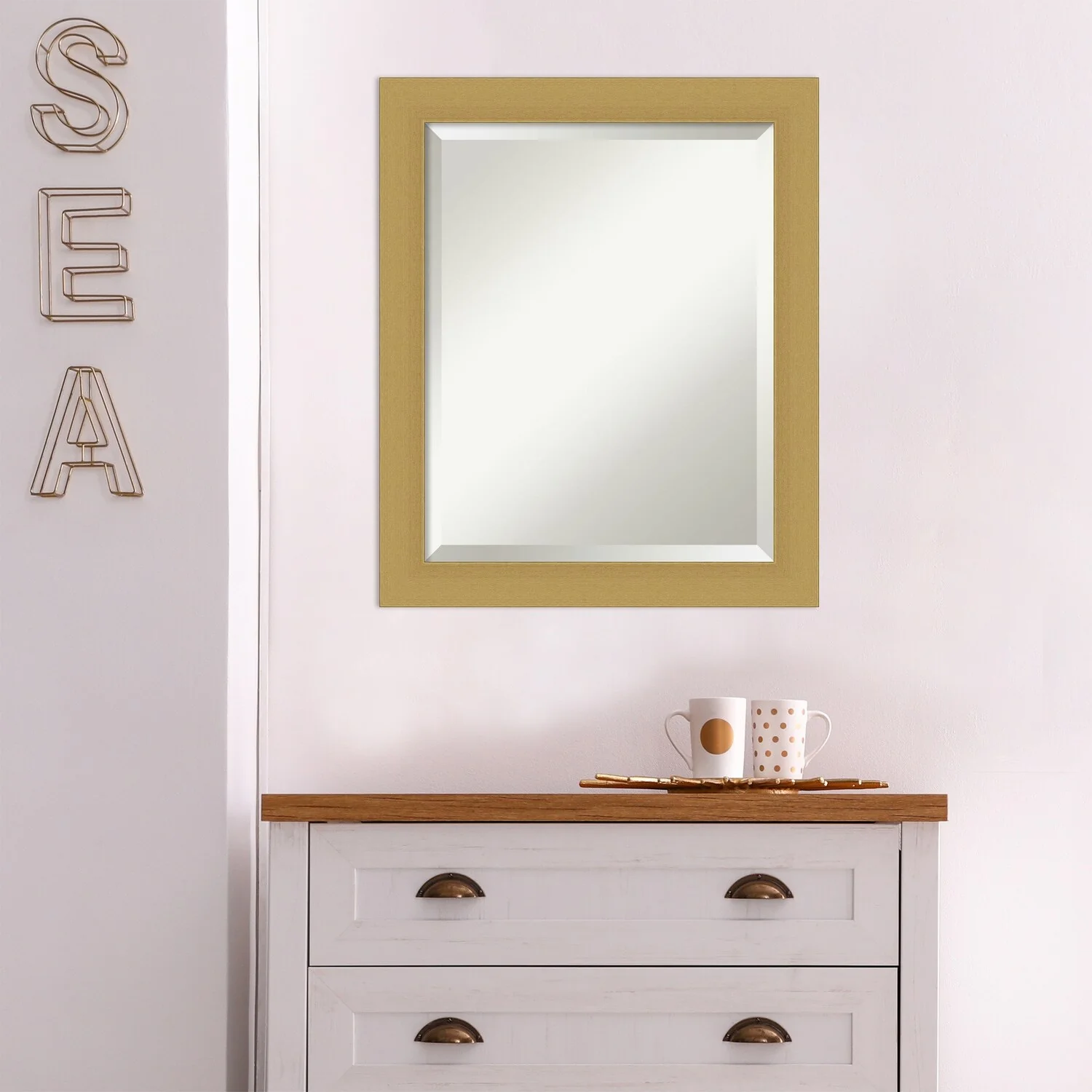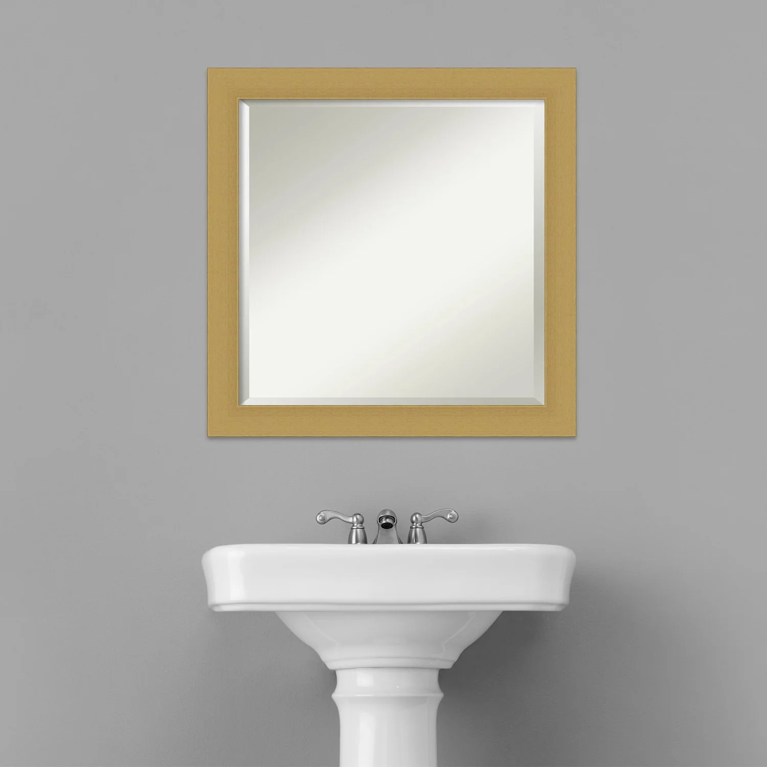Add the finishing touch to your bathroom with this Beveled Wall Mirror framed with the Grace Brushed Narrow Frame. Made using traditional custom framing techniques, it boasts premium finishing and quality, perfect for a luxury feel. The mirror features premium glass that delivers a clear and undistorted image, while the beveled edge adds a decorative touch. With durable hanging hardware attached to the back, this mirror can be hung vertically or horizontally with ease.