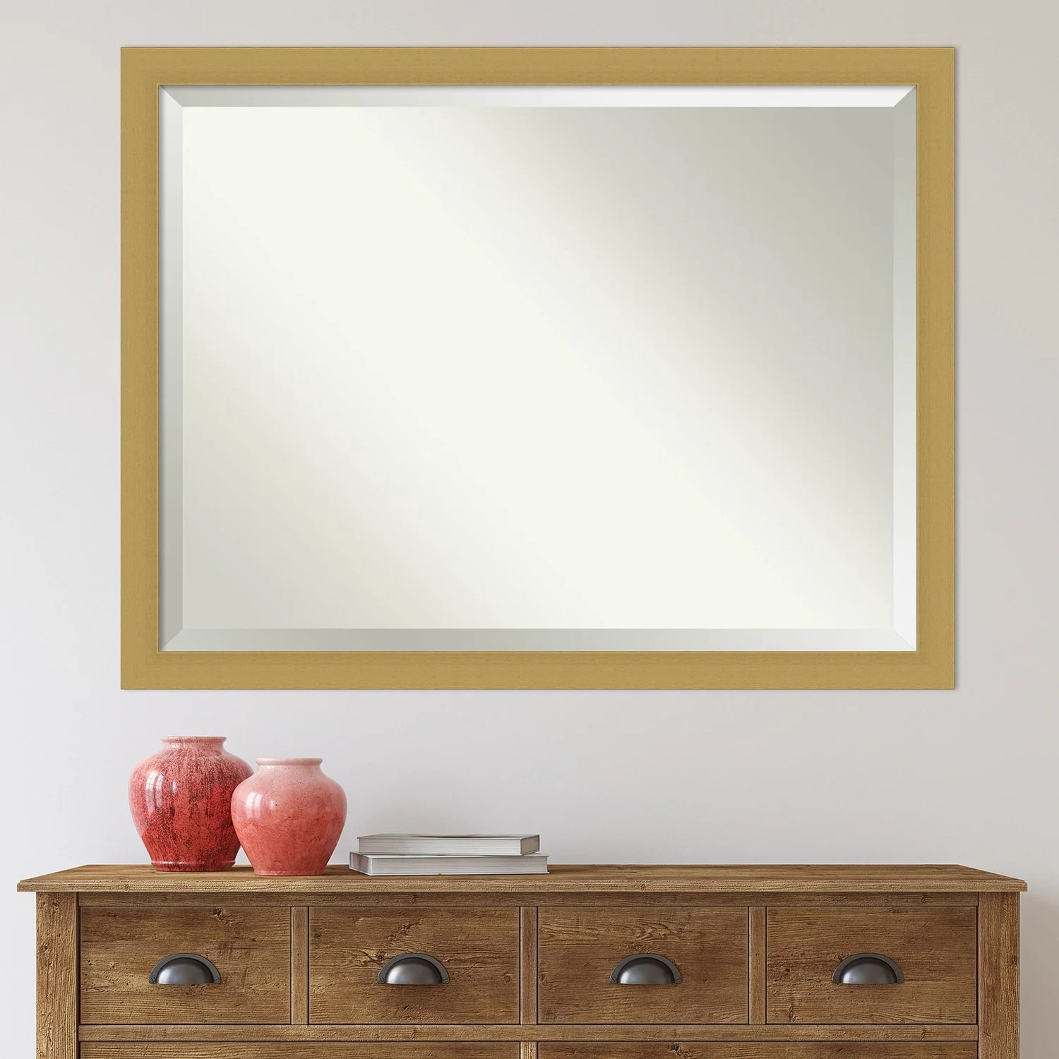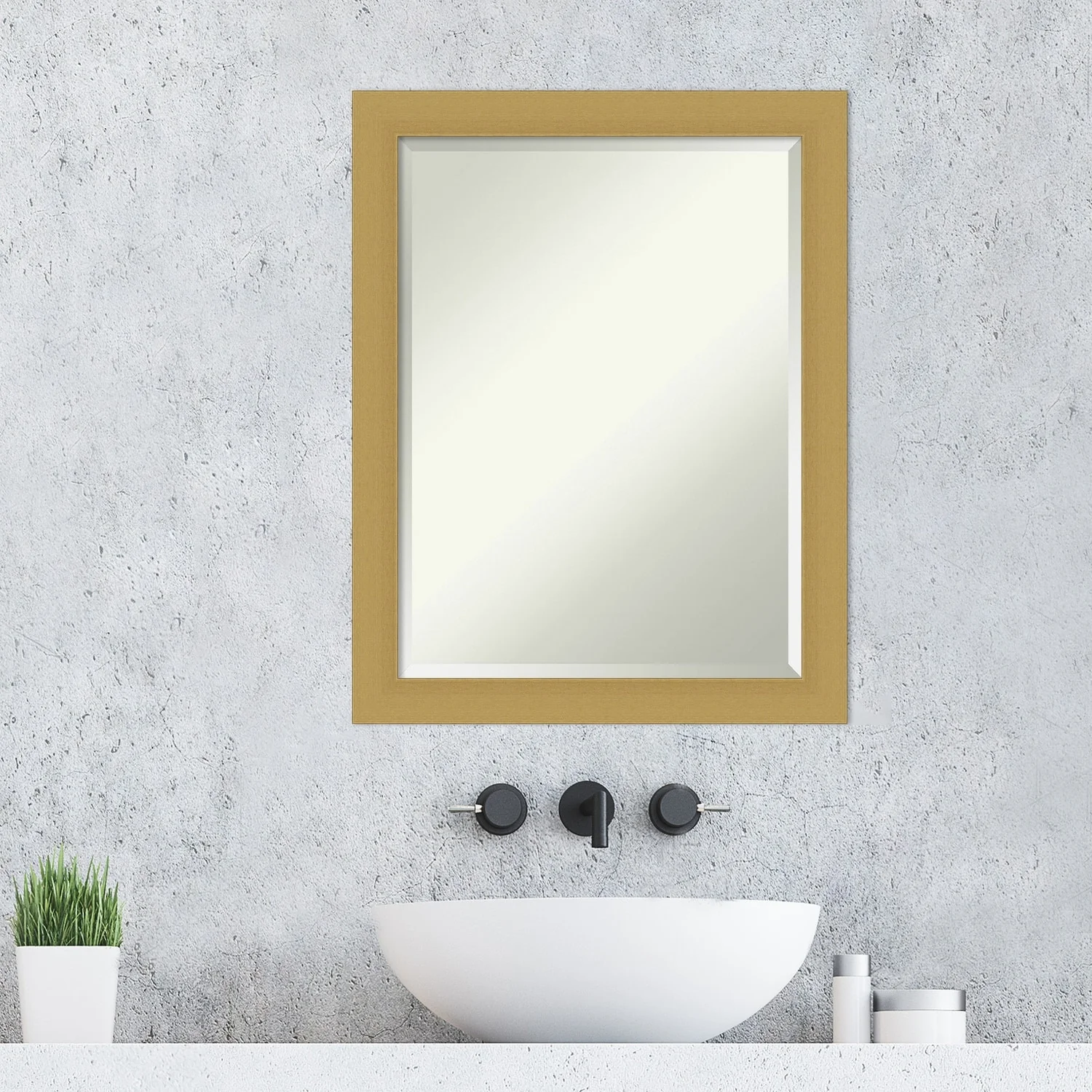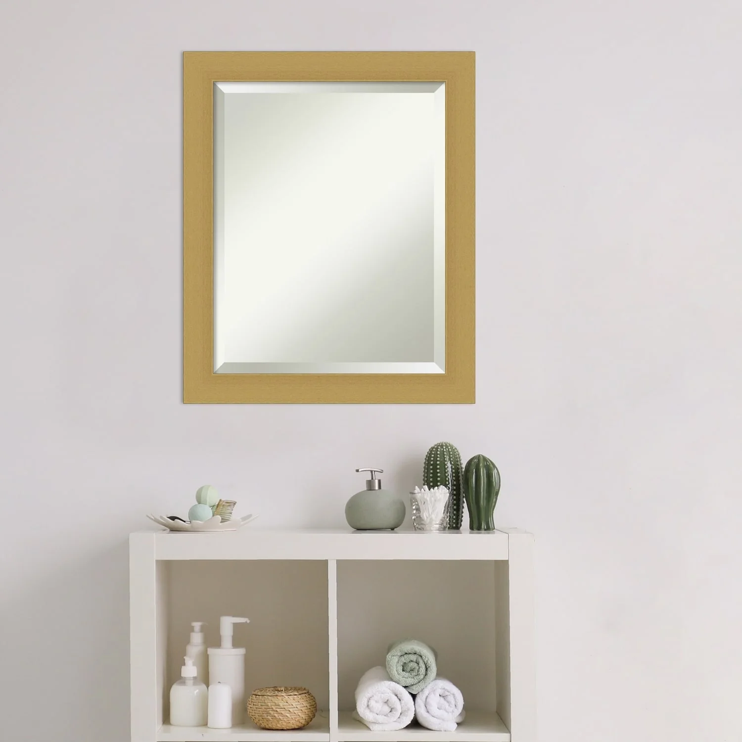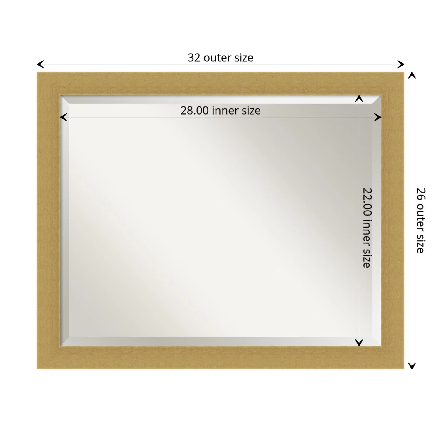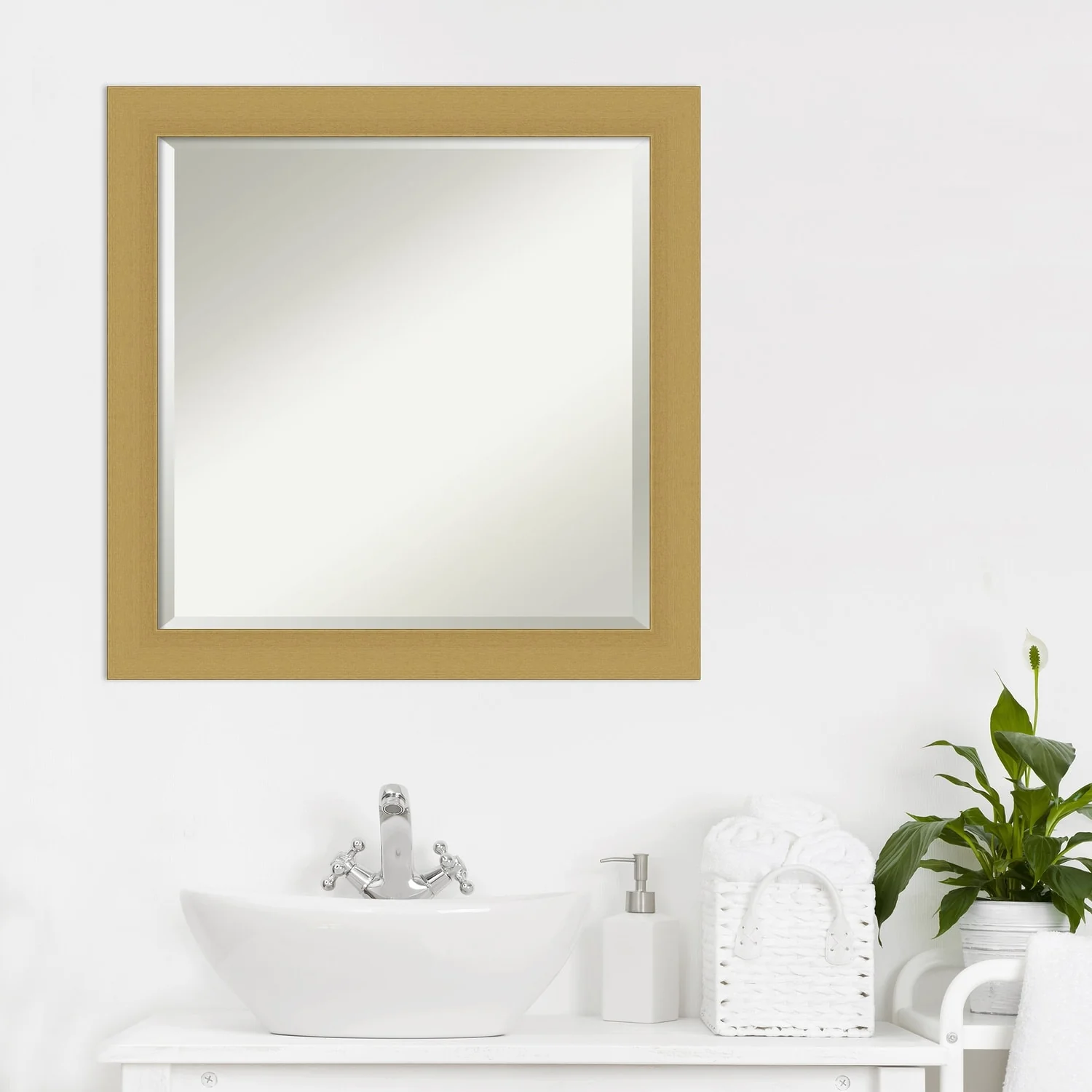 Add the finishing touch to your bathroom with this Beveled Wall Mirror framed with the Grace Brushed Narrow Frame. Made using traditional custom framing techniques, it boasts premium finishing and quality, perfect for a luxury feel. The mirror features premium glass that delivers a clear and undistorted image, while the beveled edge adds a decorative touch. With durable hanging hardware attached to the back, this mirror can be hung vertically or horizontally with ease.