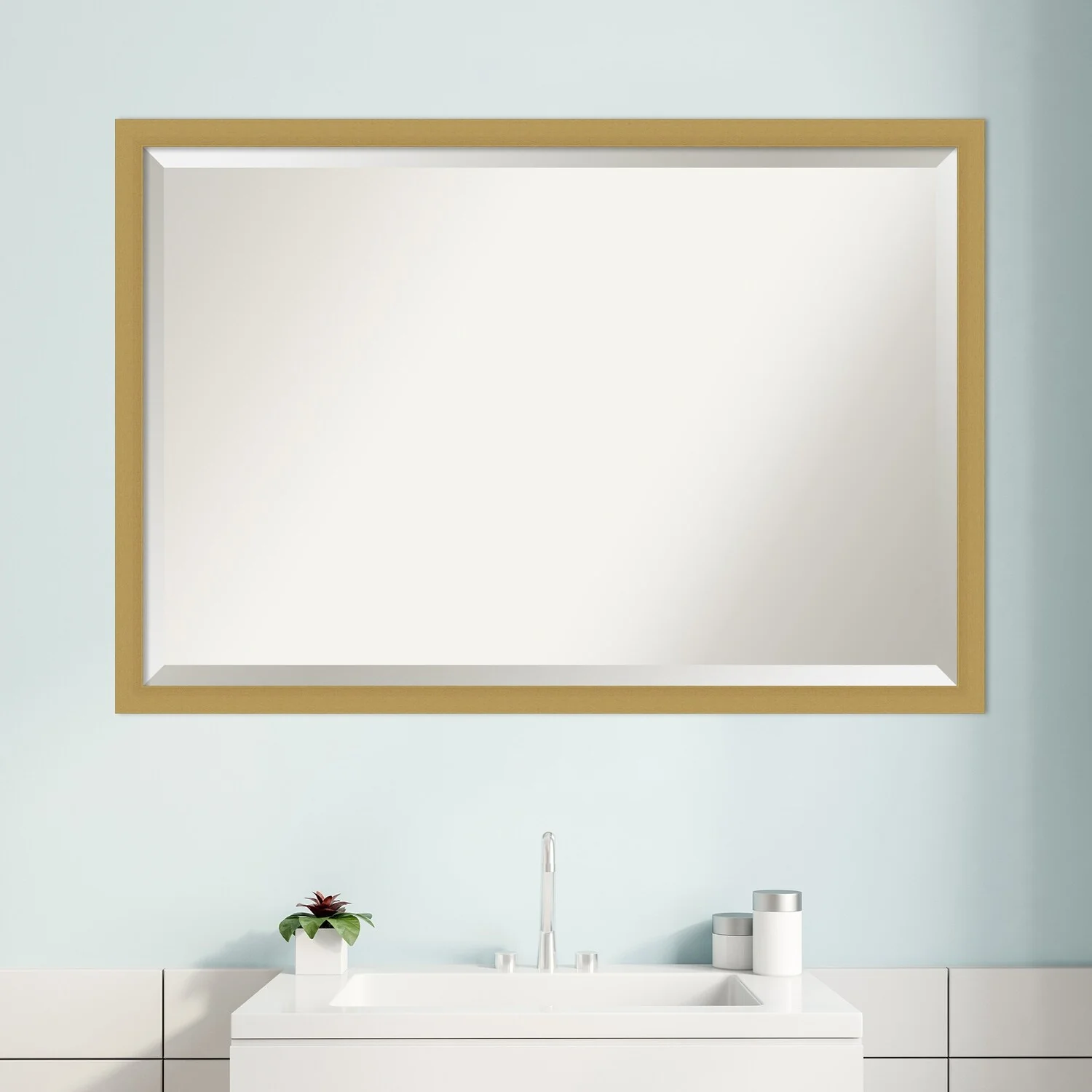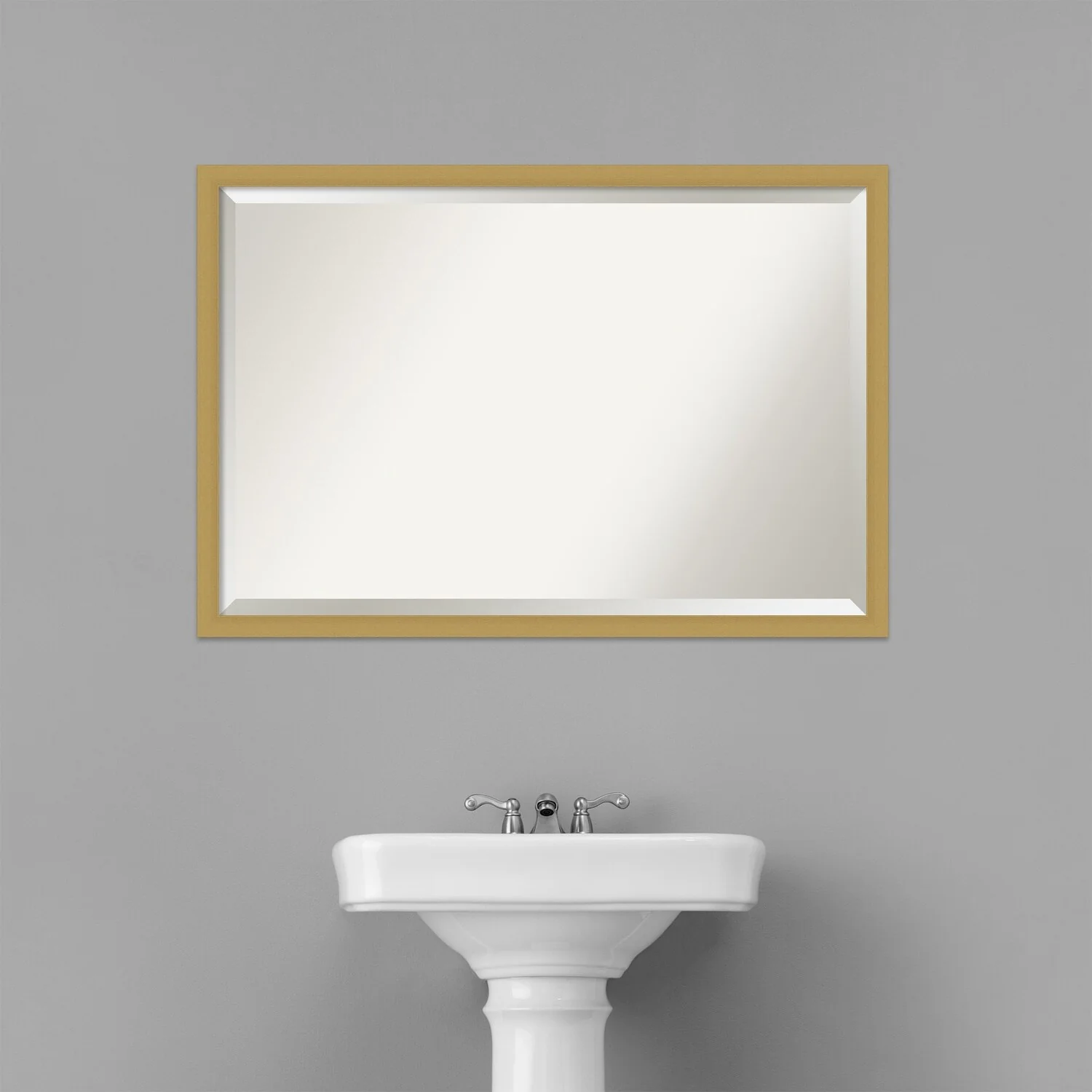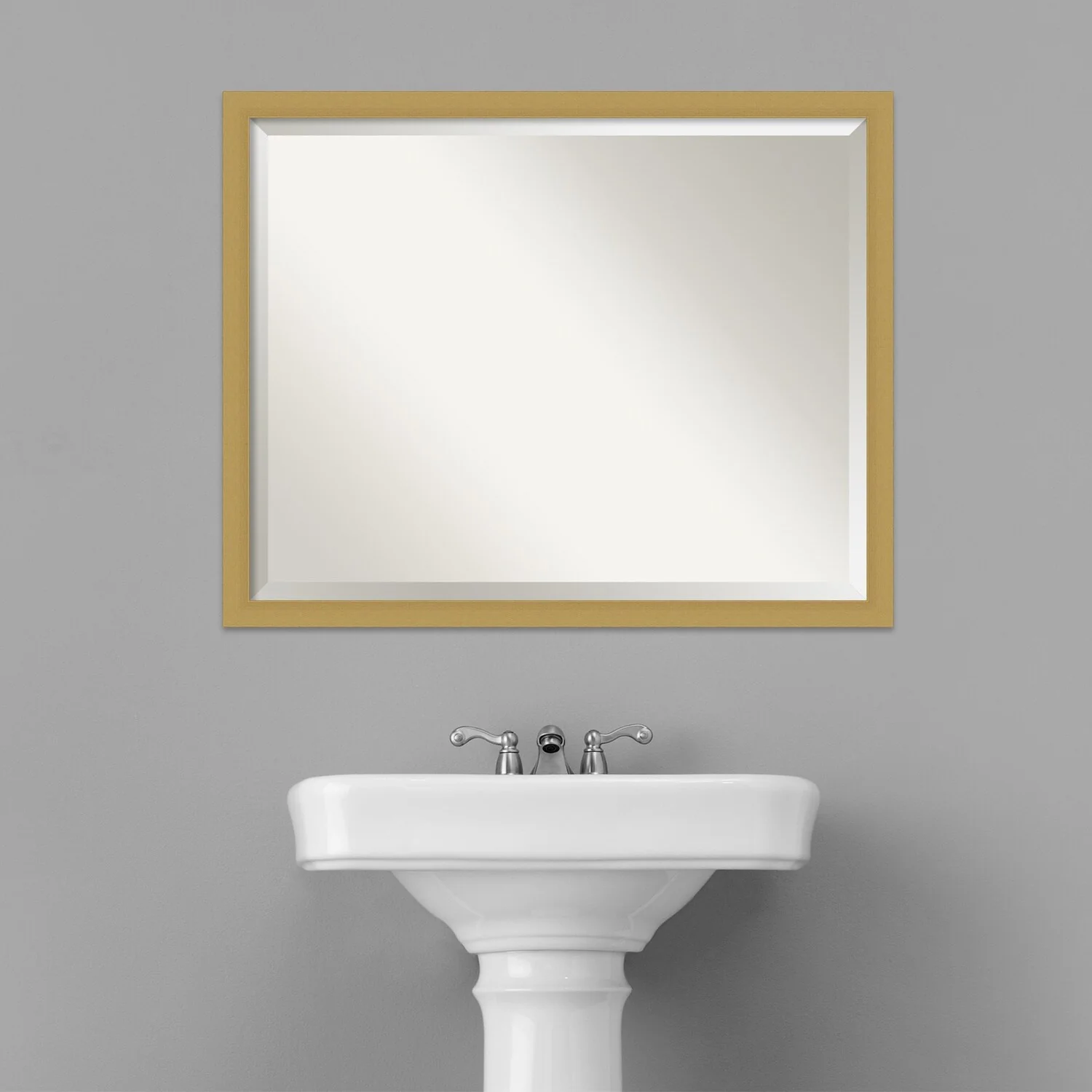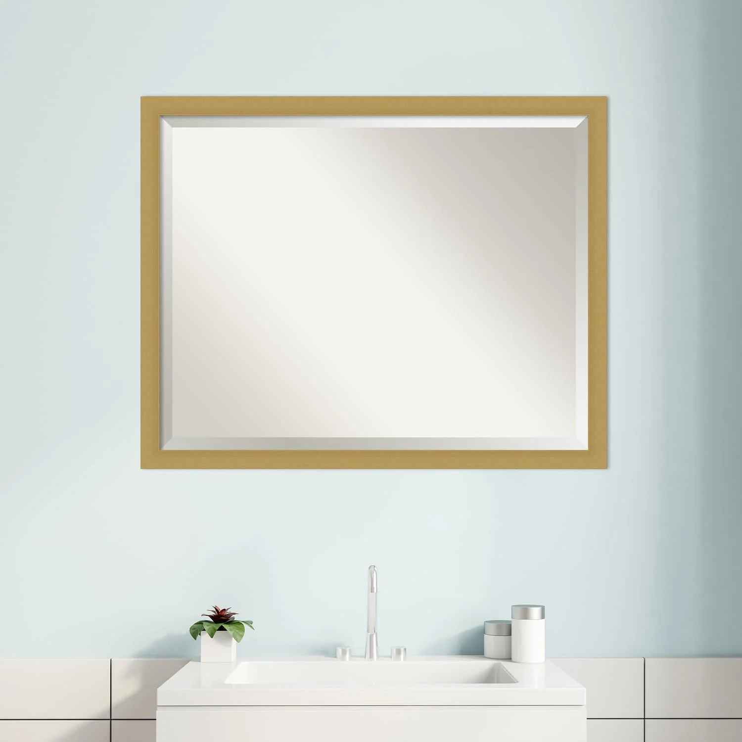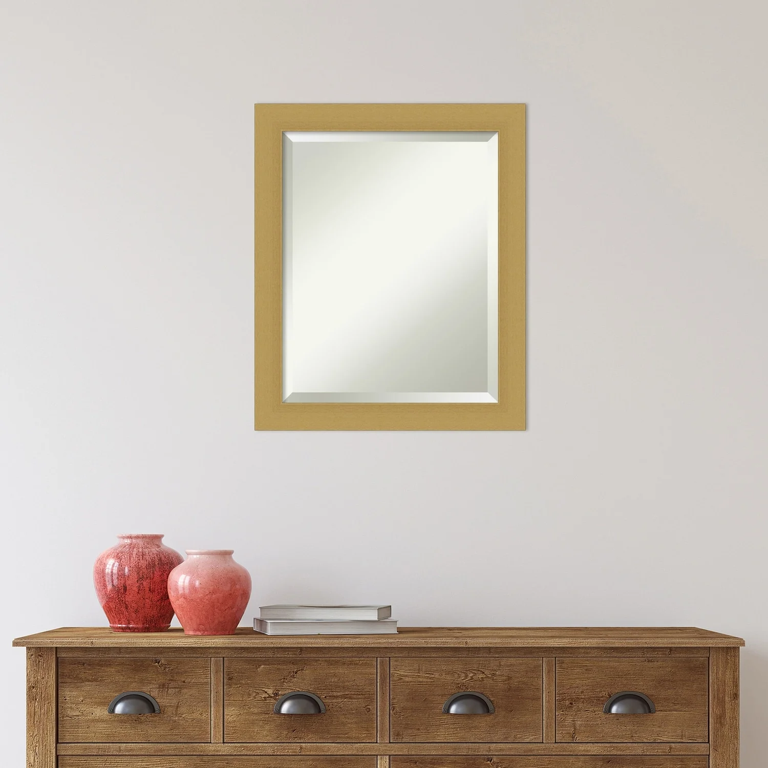 Add the finishing touch to your bathroom with this Beveled Wall Mirror framed with the Grace Brushed Narrow Frame. Made using traditional custom framing techniques, it boasts premium finishing and quality, perfect for a luxury feel. The mirror features premium glass that delivers a clear and undistorted image, while the beveled edge adds a decorative touch. With durable hanging hardware attached to the back, this mirror can be hung vertically or horizontally with ease.