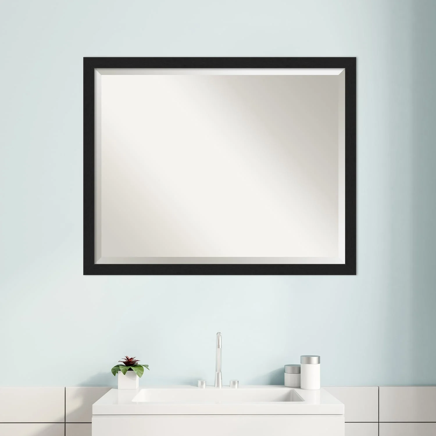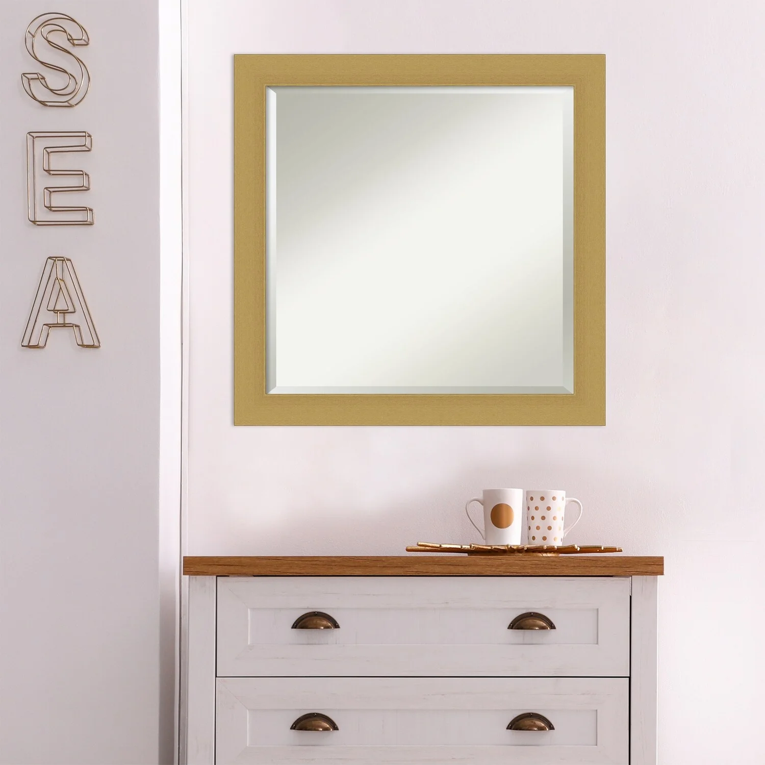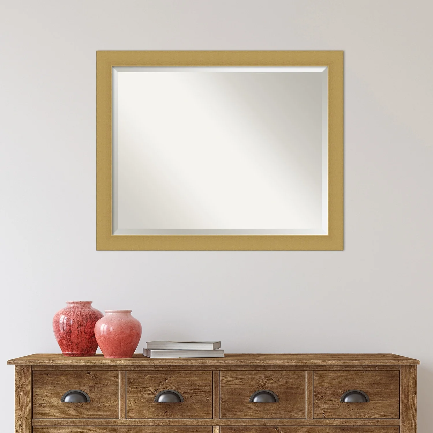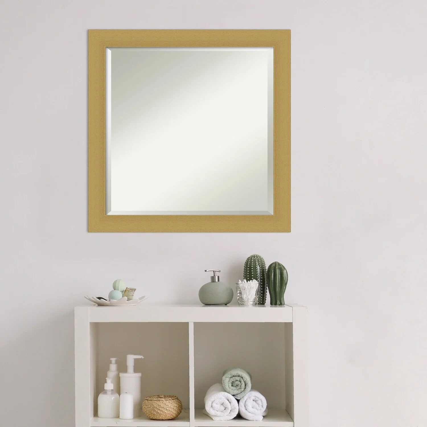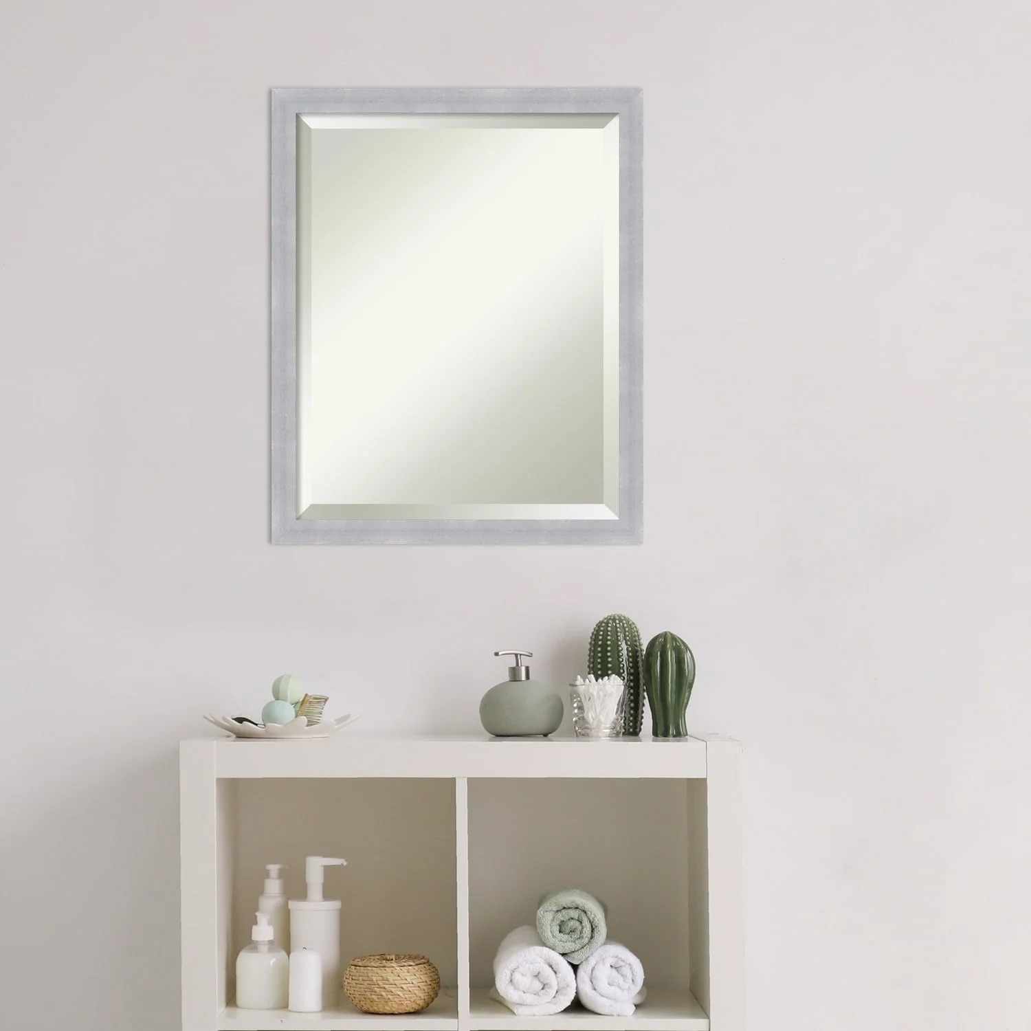 Add the finishing touch to your bathroom with this Beveled Wall Mirror framed with the Grace Brushed Narrow Frame. Made using traditional custom framing techniques, it boasts premium finishing and quality, perfect for a luxury feel. The mirror features premium glass that delivers a clear and undistorted image, while the beveled edge adds a decorative touch. With durable hanging hardware attached to the back, this mirror can be hung vertically or horizontally with ease.