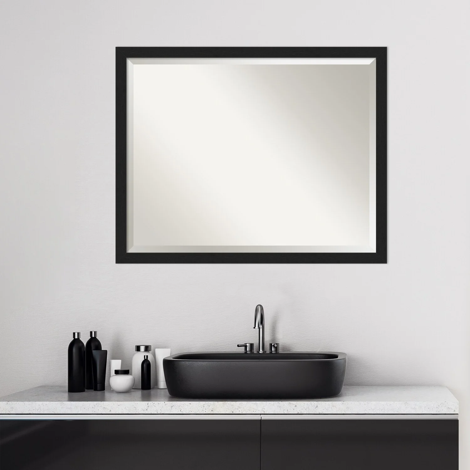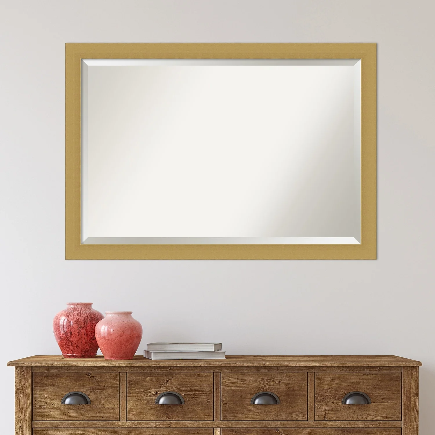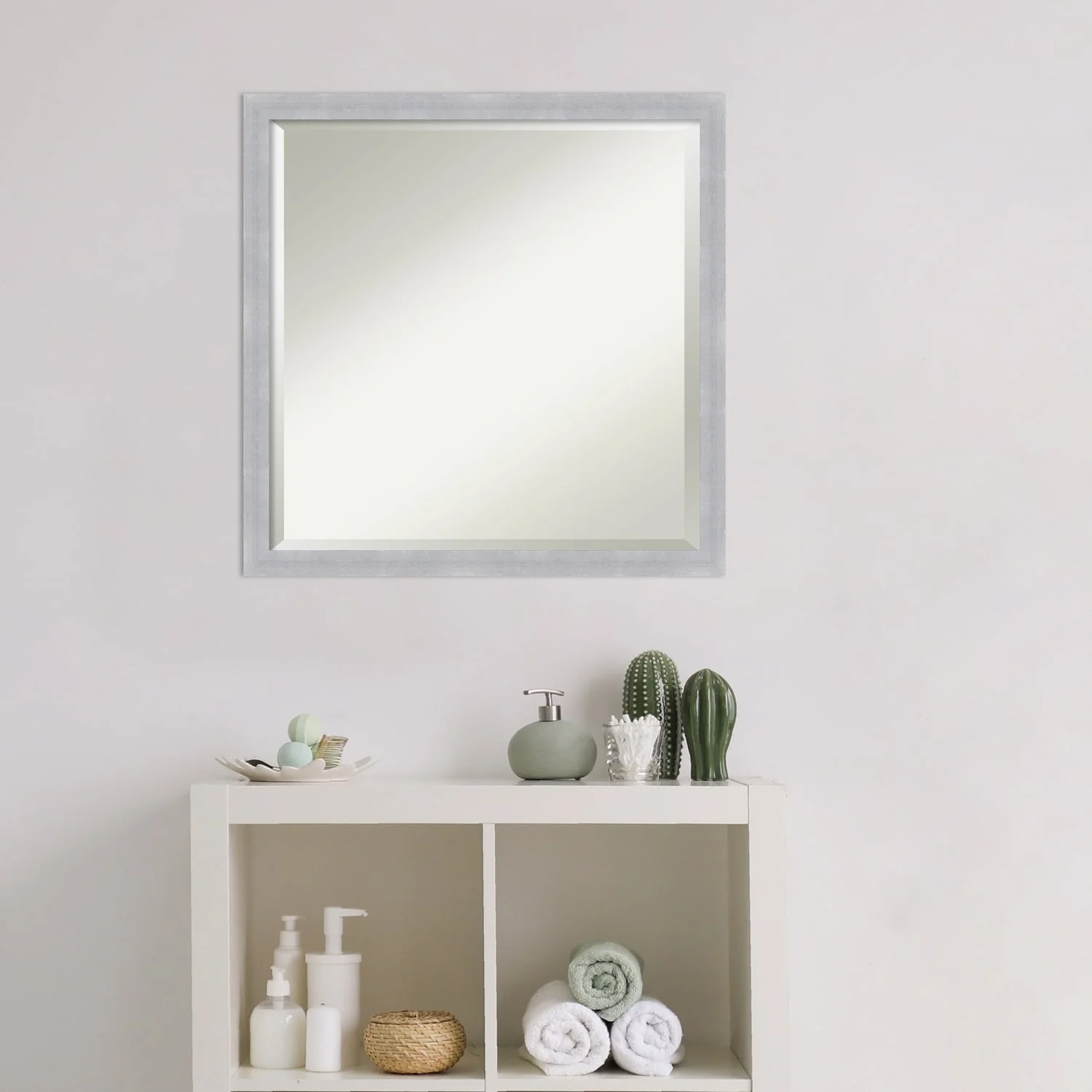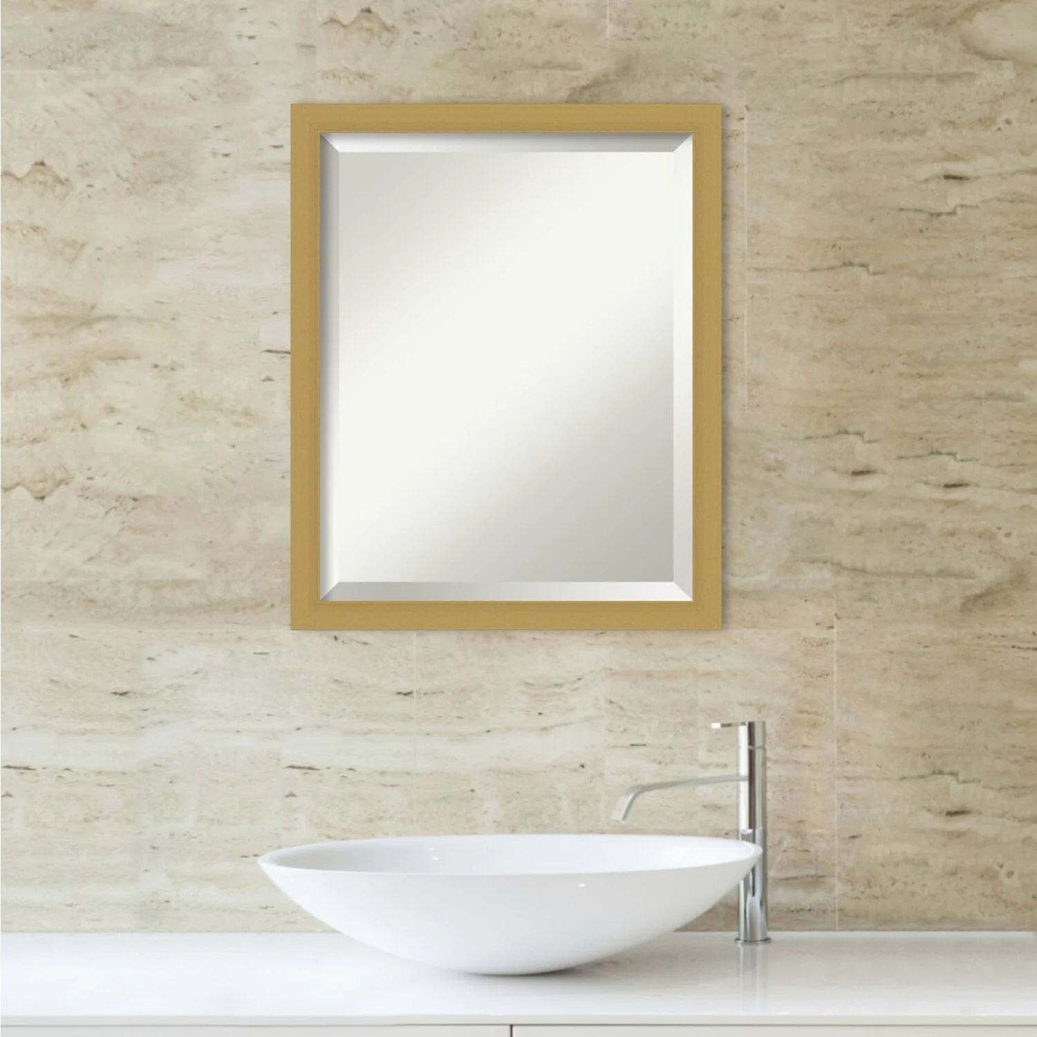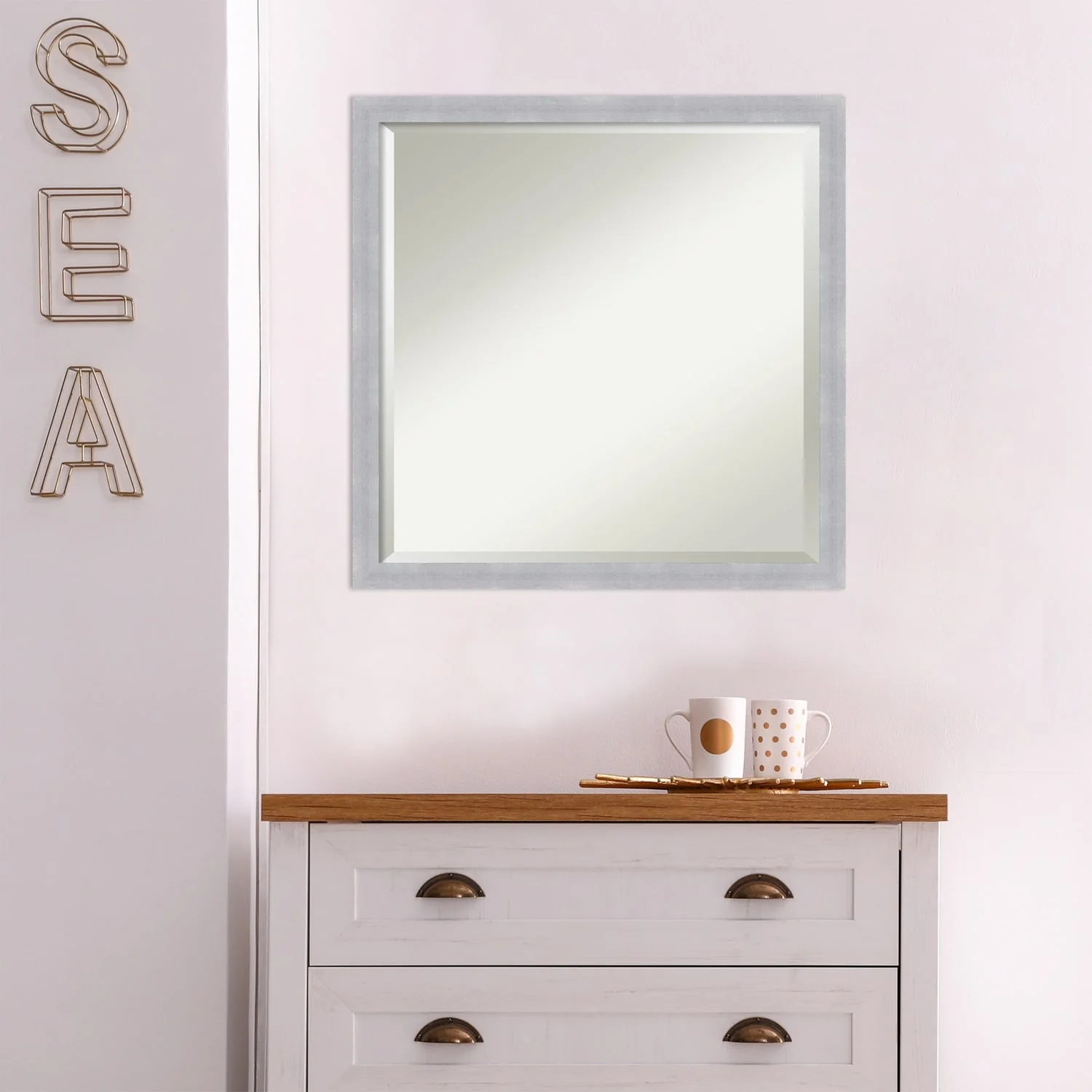 Add the finishing touch to your bathroom with this Beveled Wall Mirror framed with the Grace Brushed Narrow Frame. Made using traditional custom framing techniques, it boasts premium finishing and quality, perfect for a luxury feel. The mirror features premium glass that delivers a clear and undistorted image, while the beveled edge adds a decorative touch. With durable hanging hardware attached to the back, this mirror can be hung vertically or horizontally with ease.
