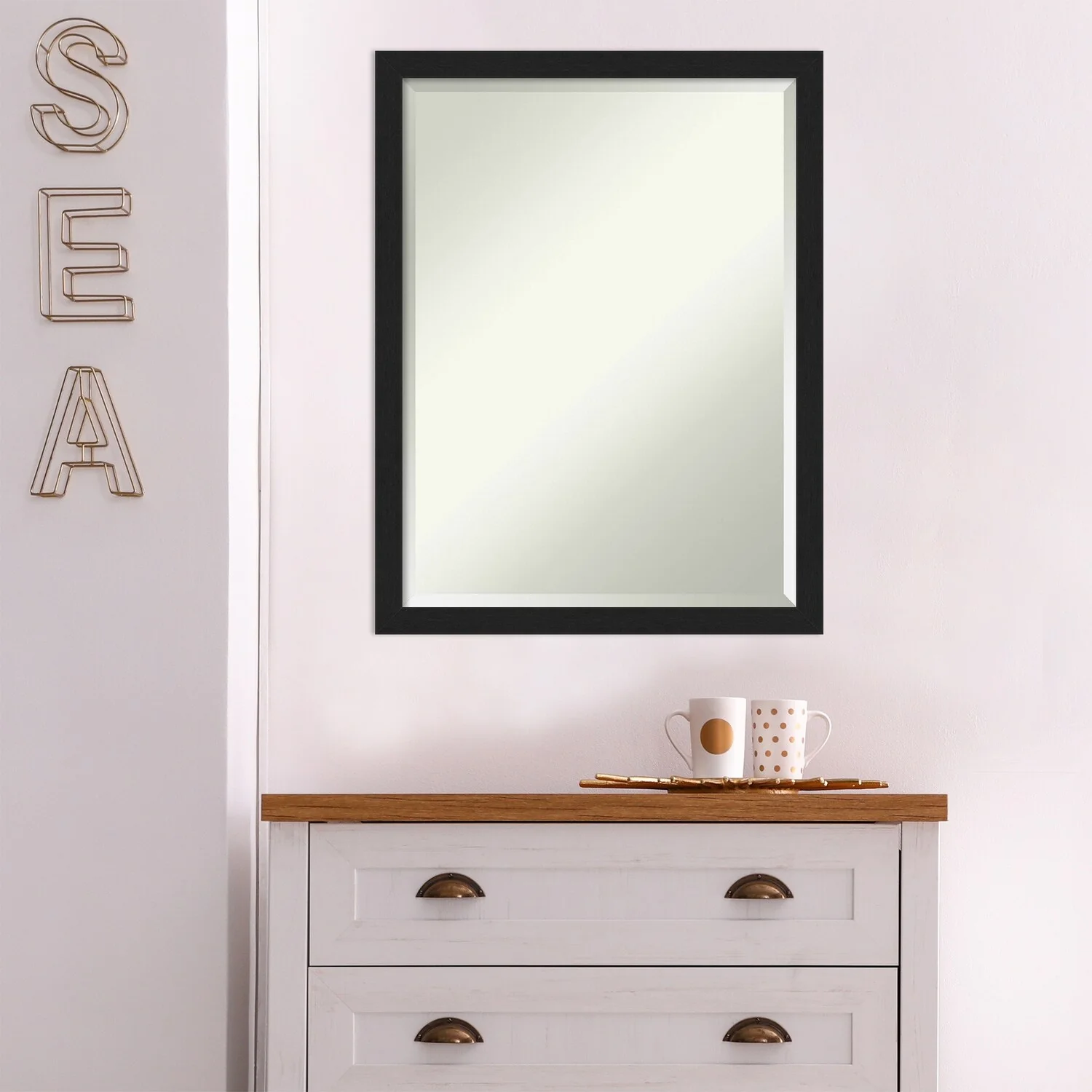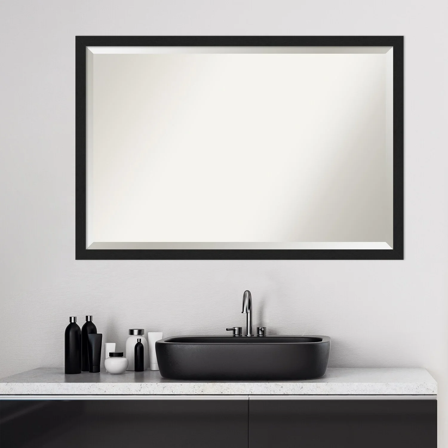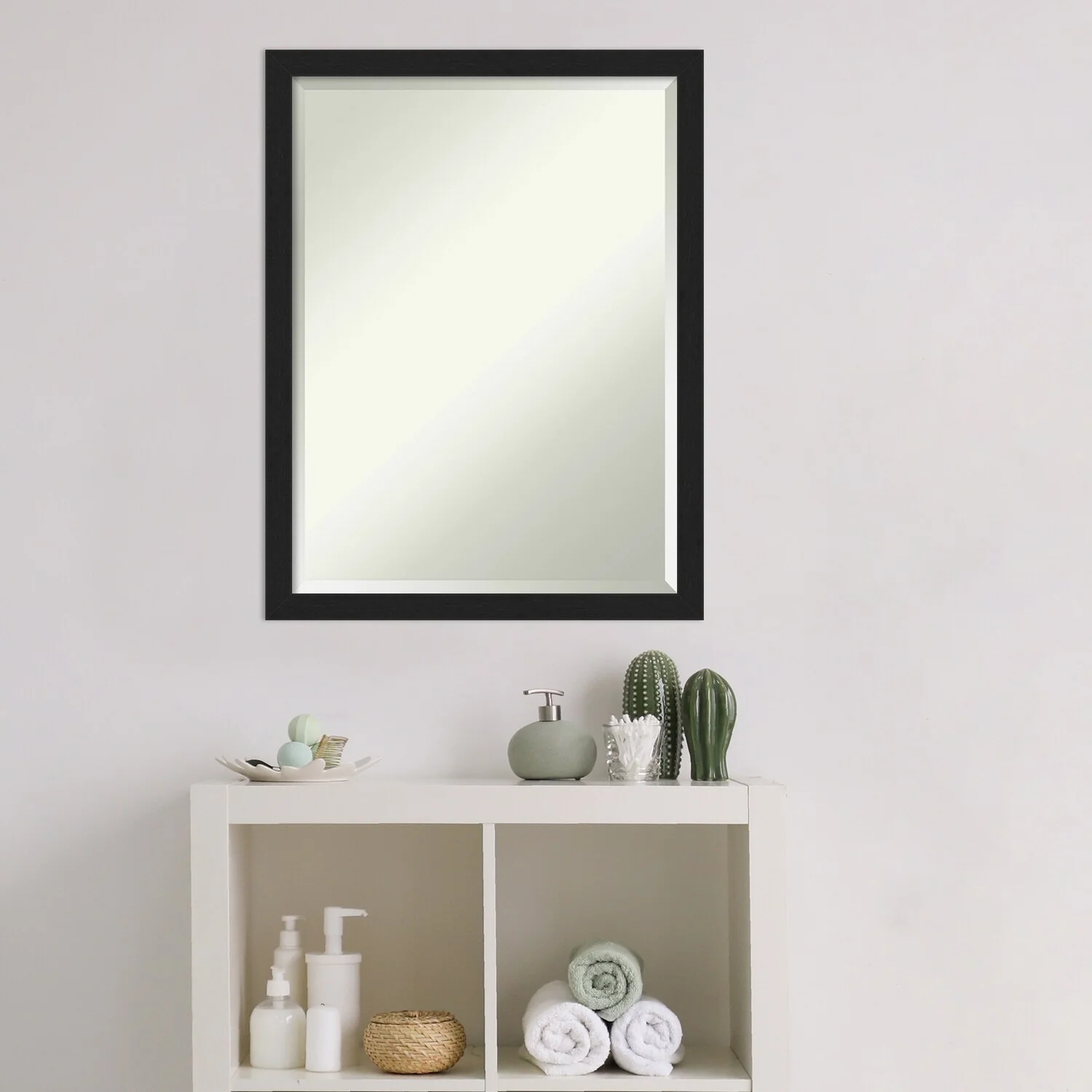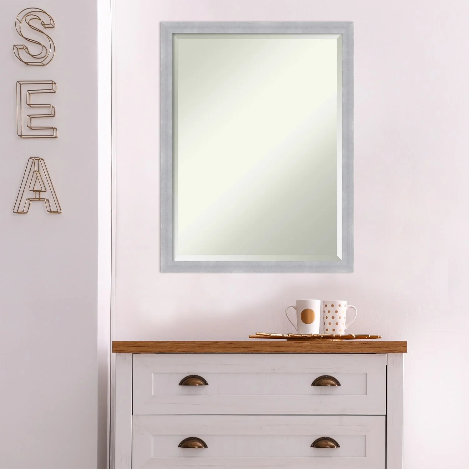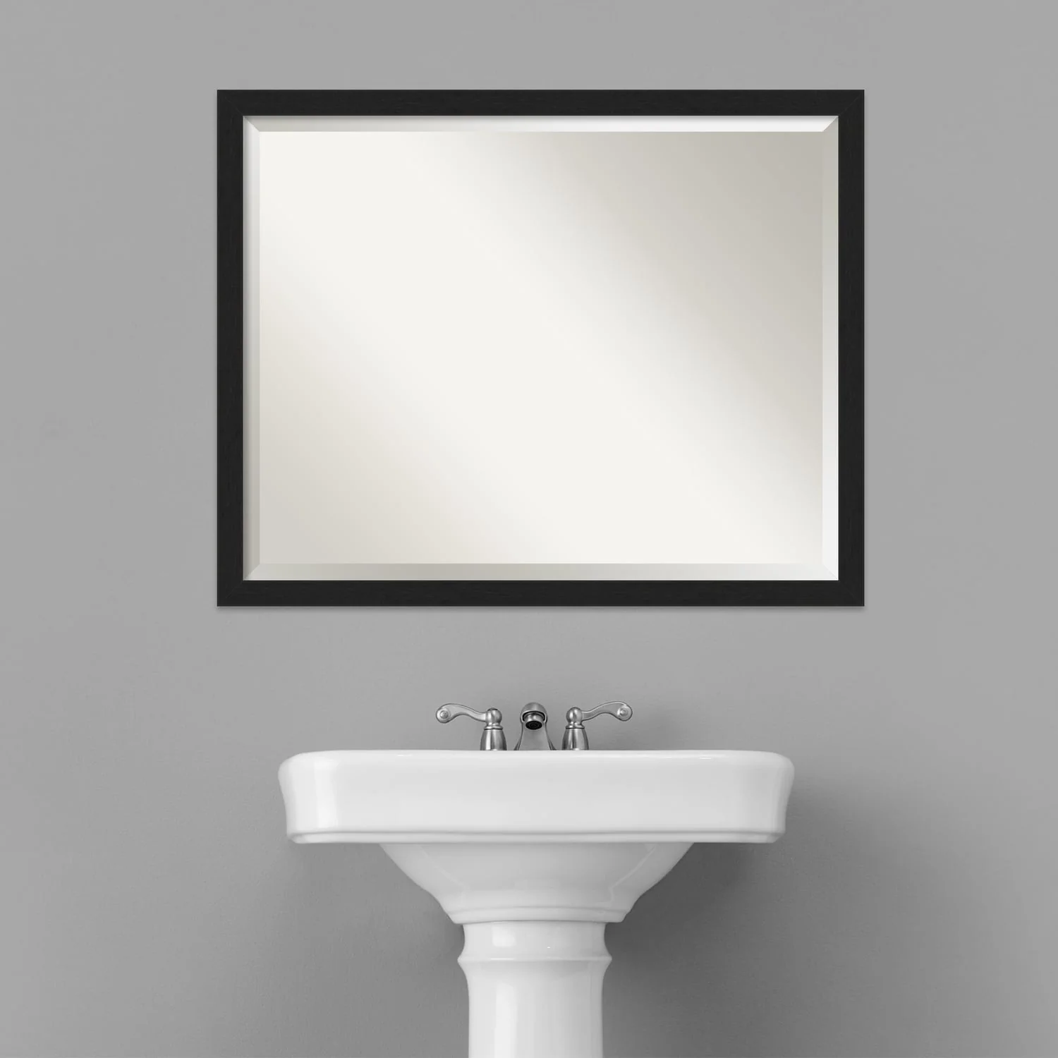 Add the finishing touch to your bathroom with this Beveled Wall Mirror framed with the Grace Brushed Narrow Frame. Made using traditional custom framing techniques, it boasts premium finishing and quality, perfect for a luxury feel. The mirror features premium glass that delivers a clear and undistorted image, while the beveled edge adds a decorative touch. With durable hanging hardware attached to the back, this mirror can be hung vertically or horizontally with ease.