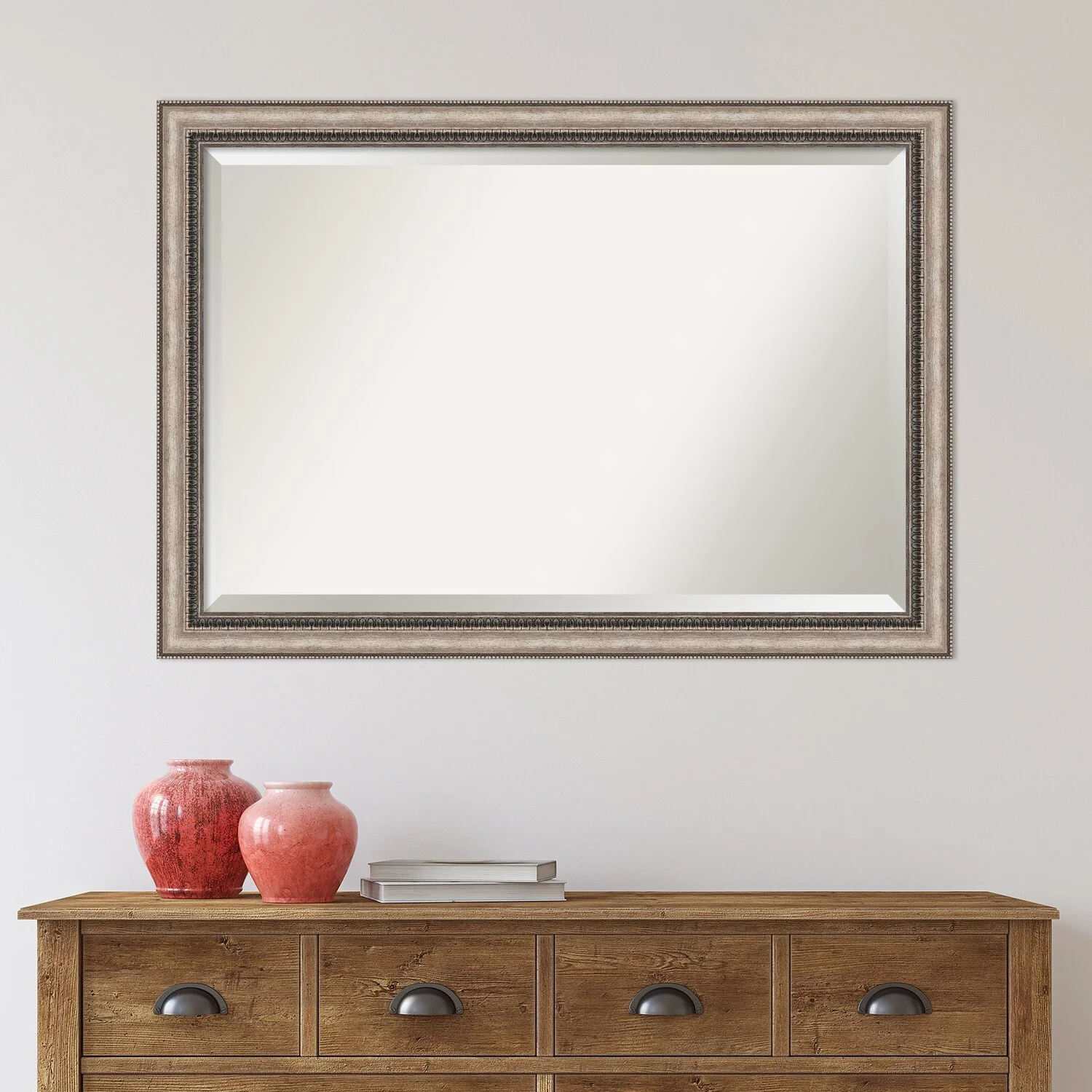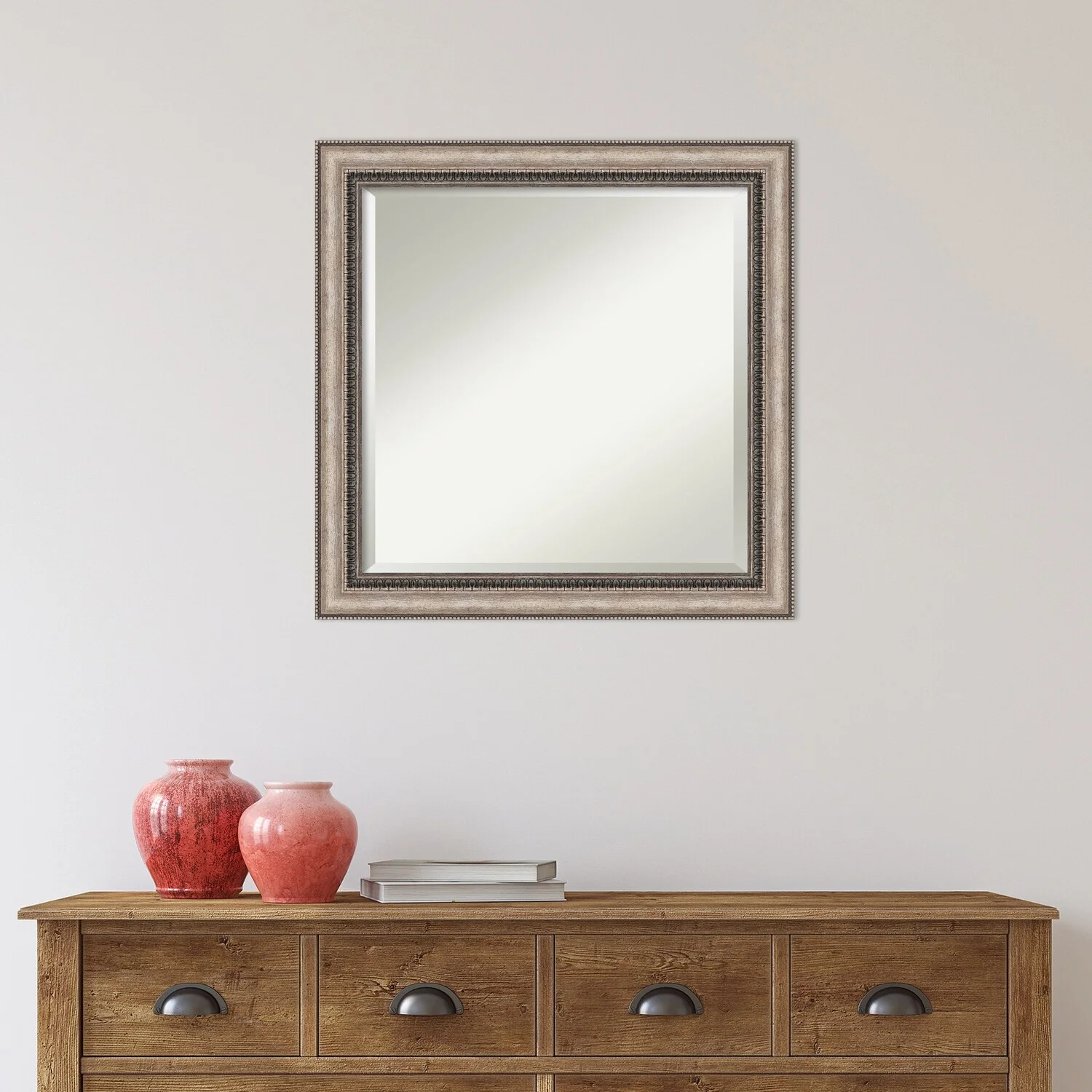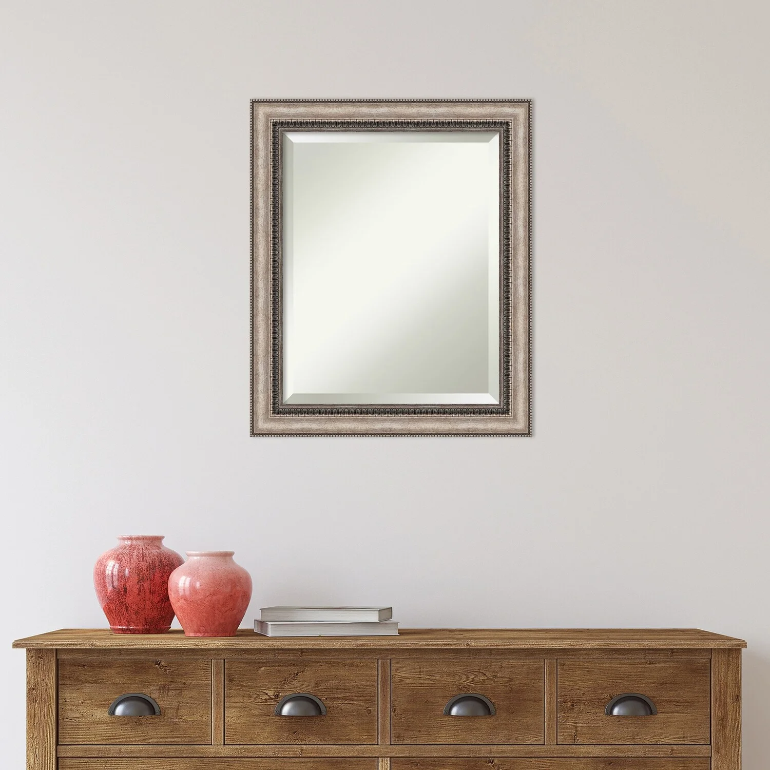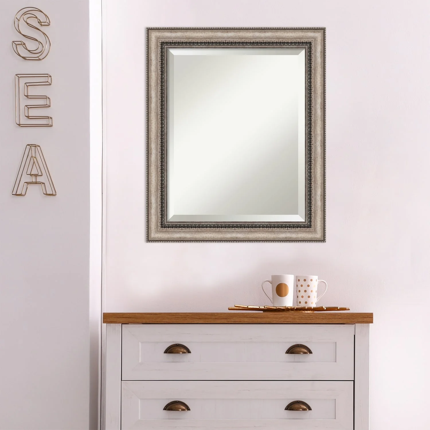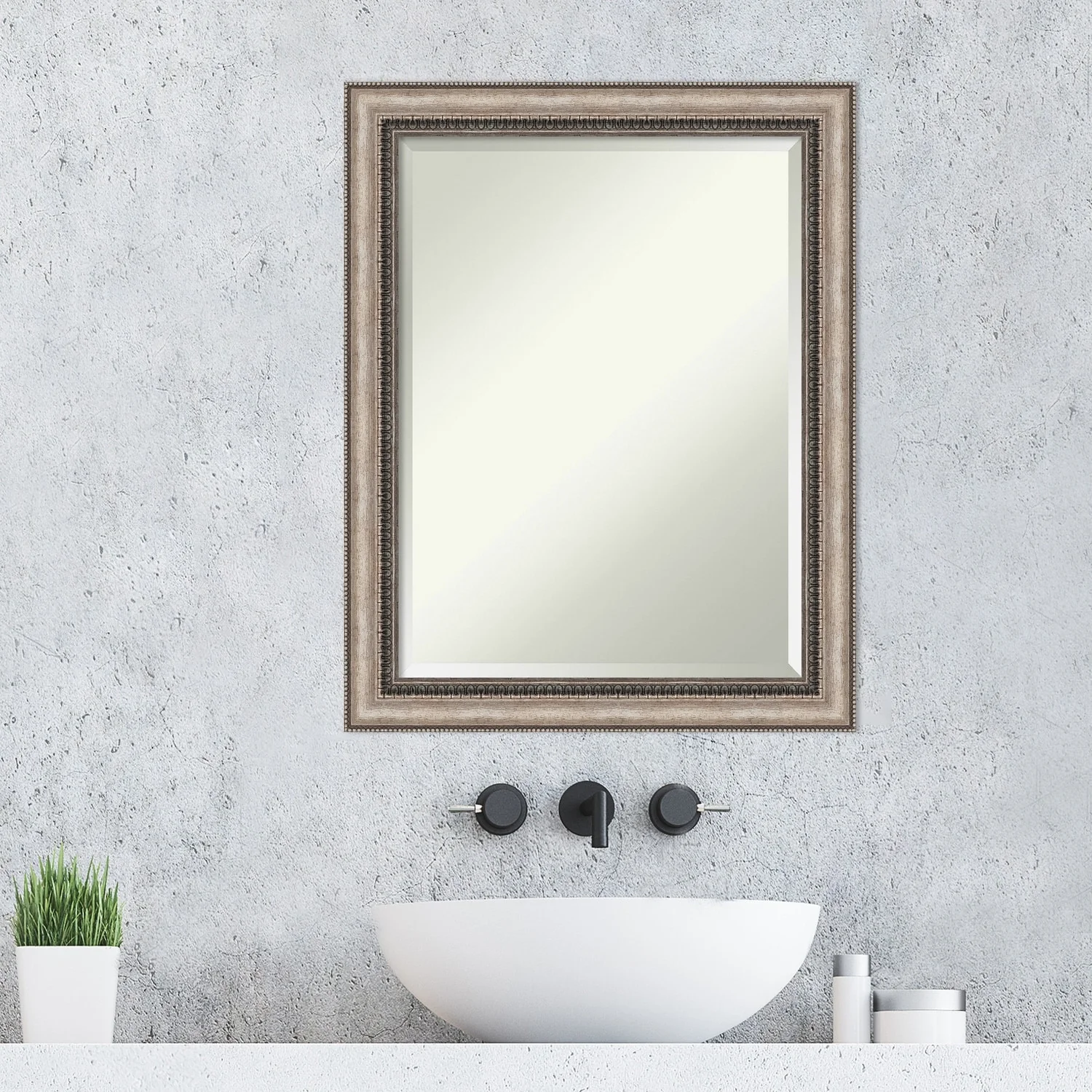 Add a touch of elegance to your bathroom with the Beveled Bathroom Wall Mirror in the Lyla Ornate Silver Frame. This premium mirror is individually crafted using traditional framing techniques and boasts exceptional quality, making it a showstopper in any space. The mirror features premium glass with a beveled edge, while the 2.25 inch wide Lyla Ornate Silver Frame adds an ornate and warm touch to your d茅cor. Hang it easily and securely with the included durable hardware. Assembled in Madison, WI USA, this mirror is a favorite of architects, interior designers, and homeowners alike.