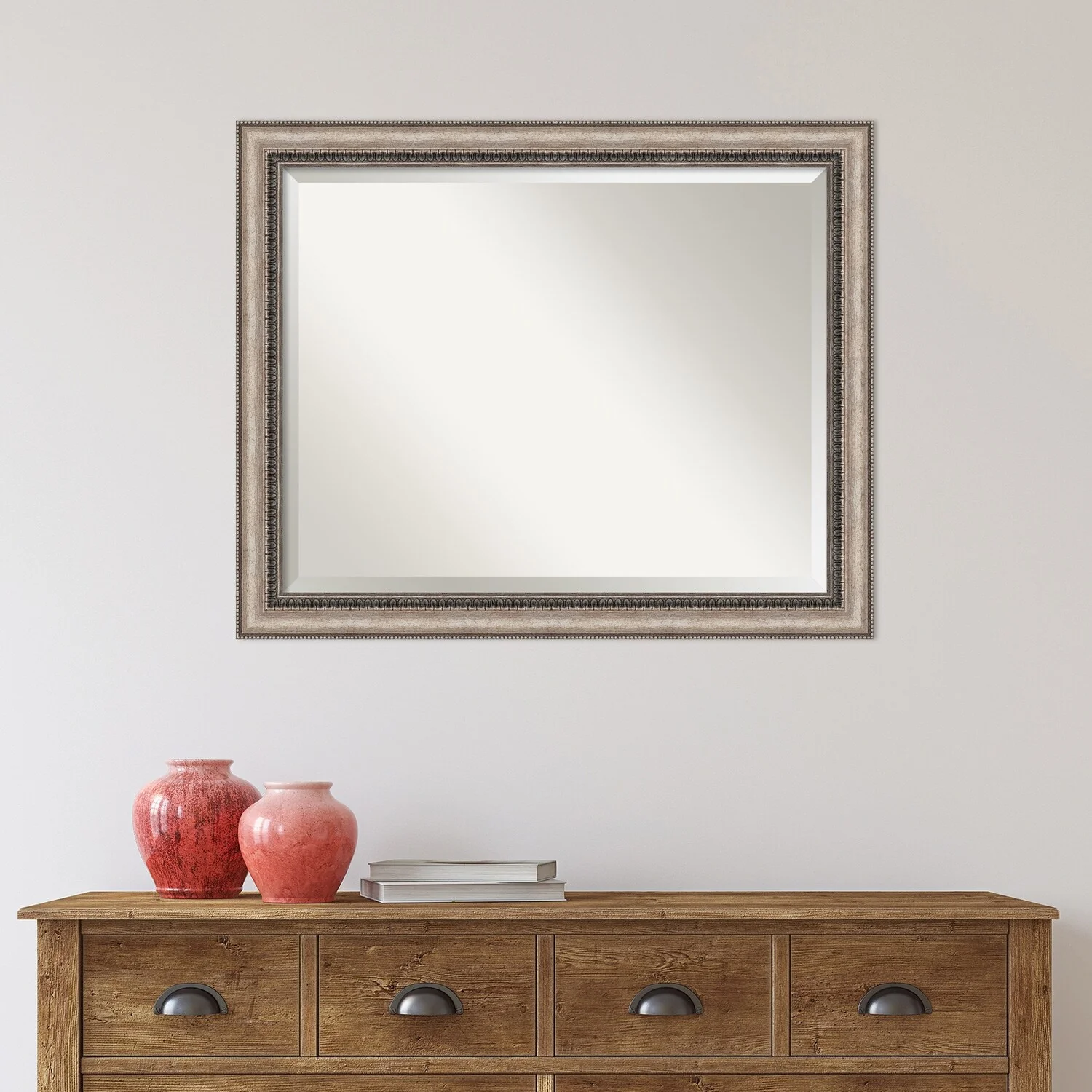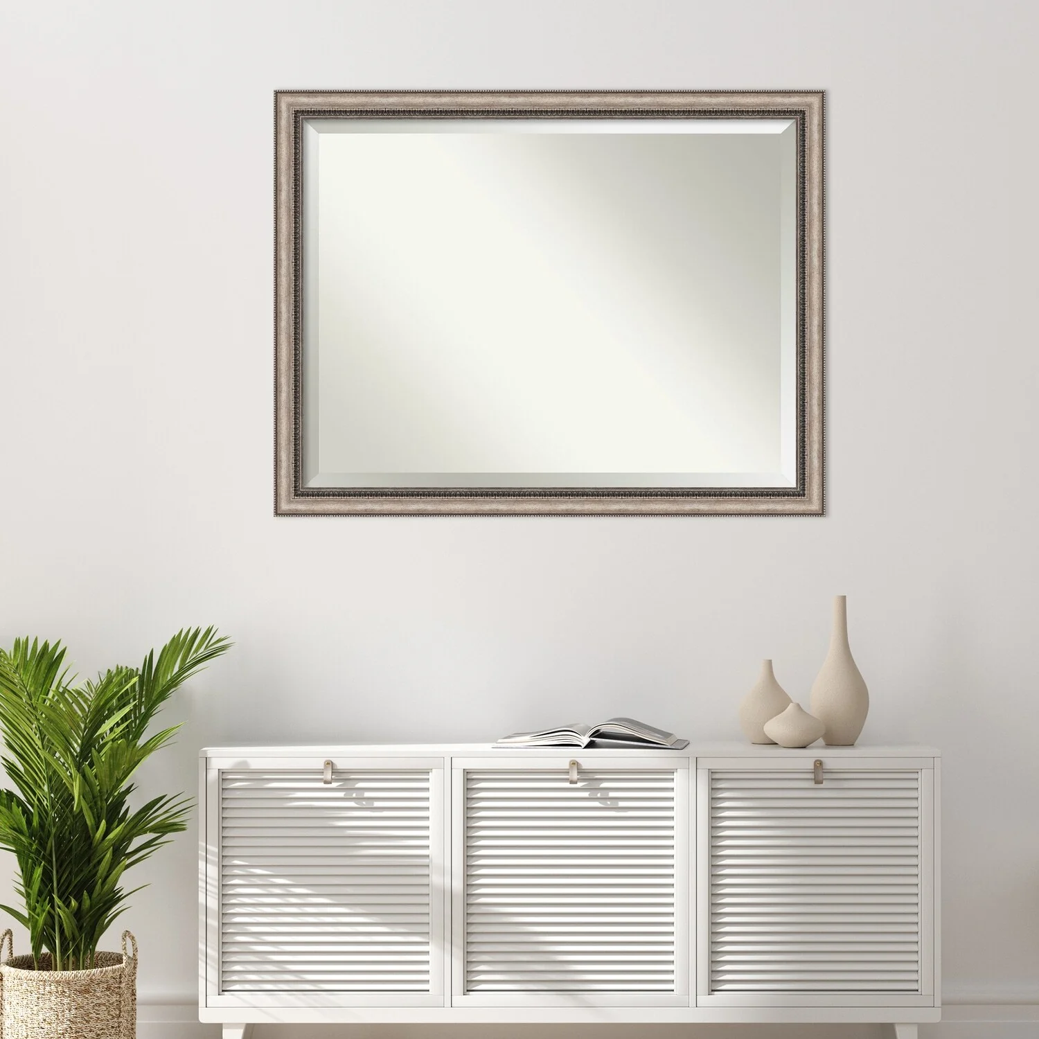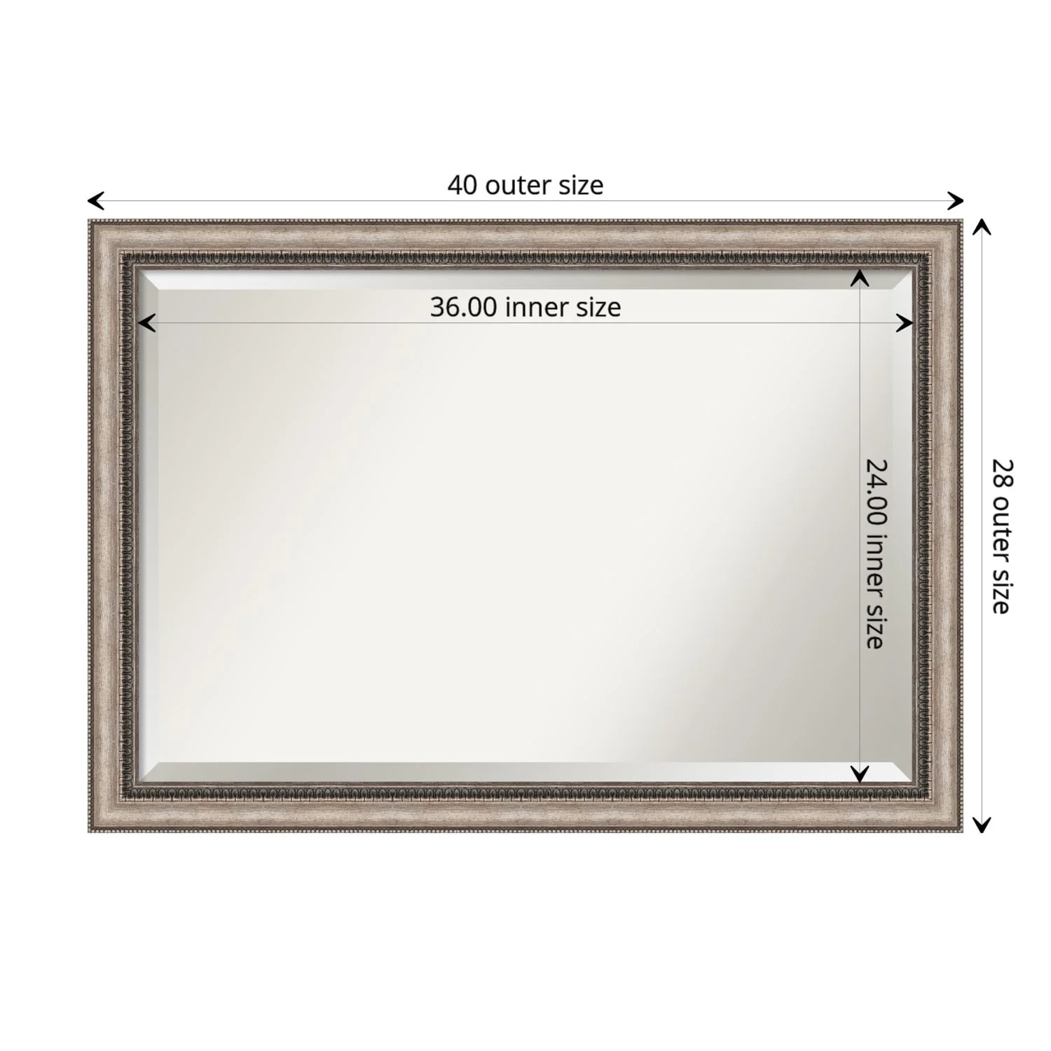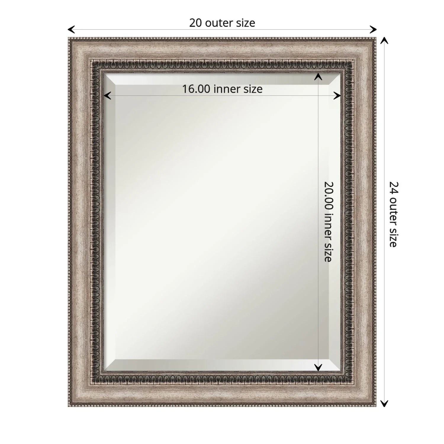 Add a touch of elegance to your bathroom with the Beveled Bathroom Wall Mirror in the Lyla Ornate Silver Frame. This premium mirror is individually crafted using traditional framing techniques and boasts exceptional quality, making it a showstopper in any space. The mirror features premium glass with a beveled edge, while the 2.25 inch wide Lyla Ornate Silver Frame adds an ornate and warm touch to your d茅cor. Hang it easily and securely with the included durable hardware. Assembled in Madison, WI USA, this mirror is a favorite of architects, interior designers, and homeowners alike.