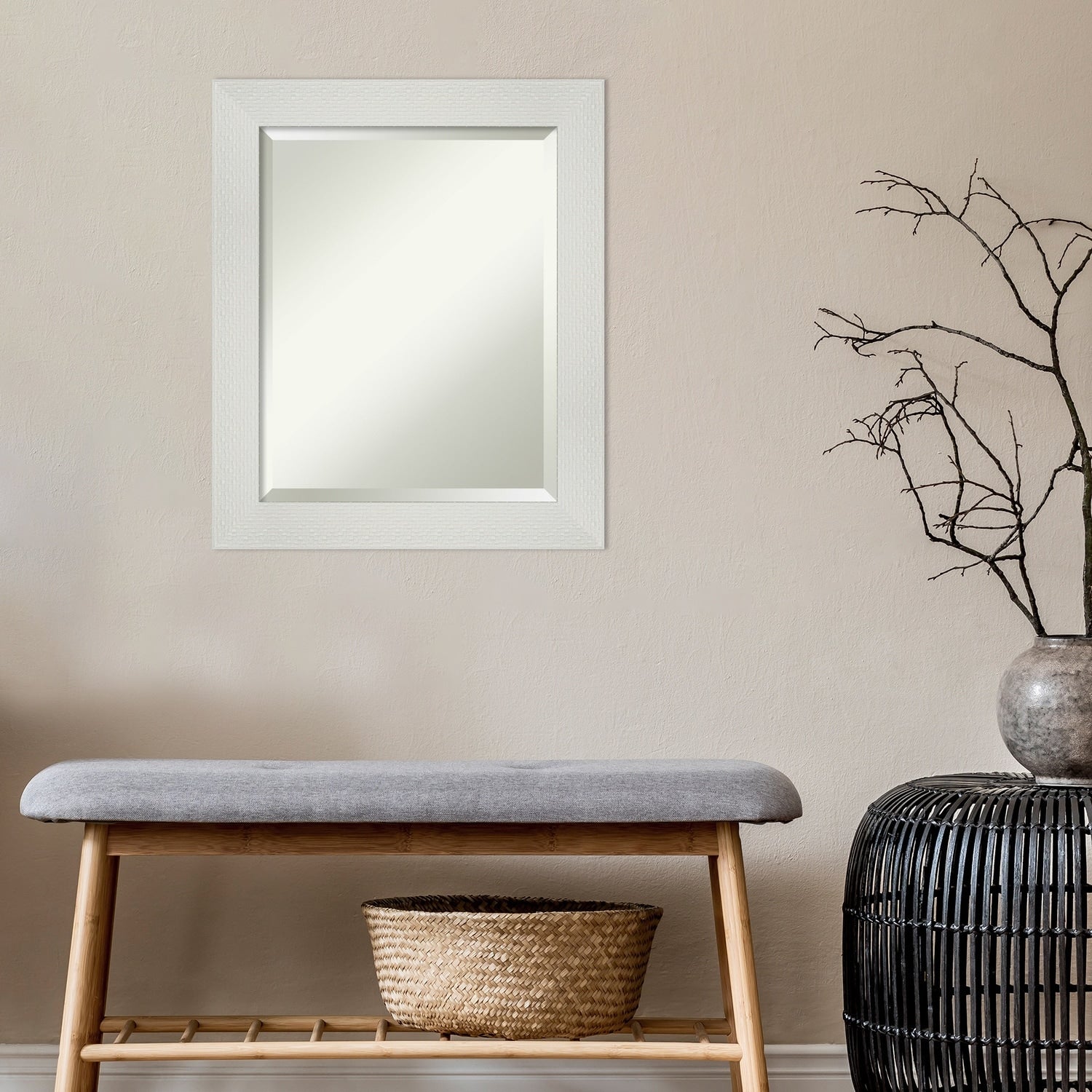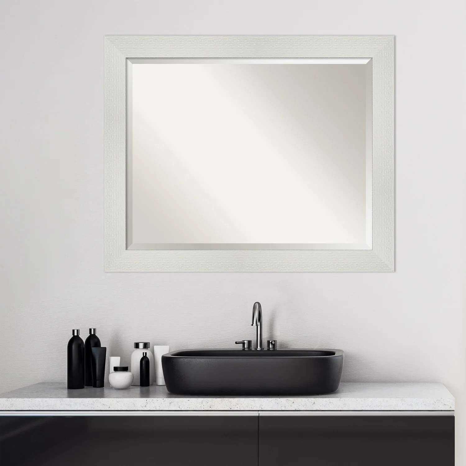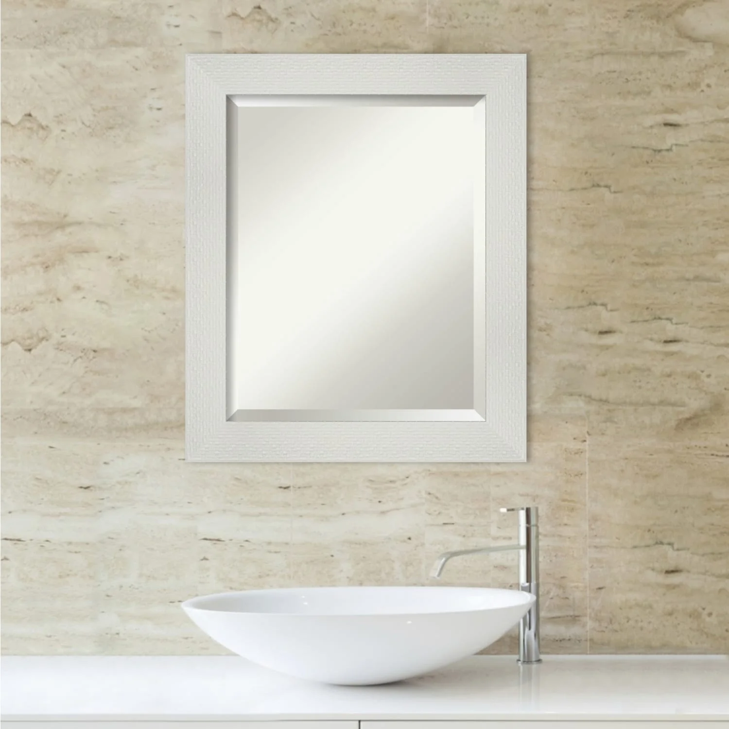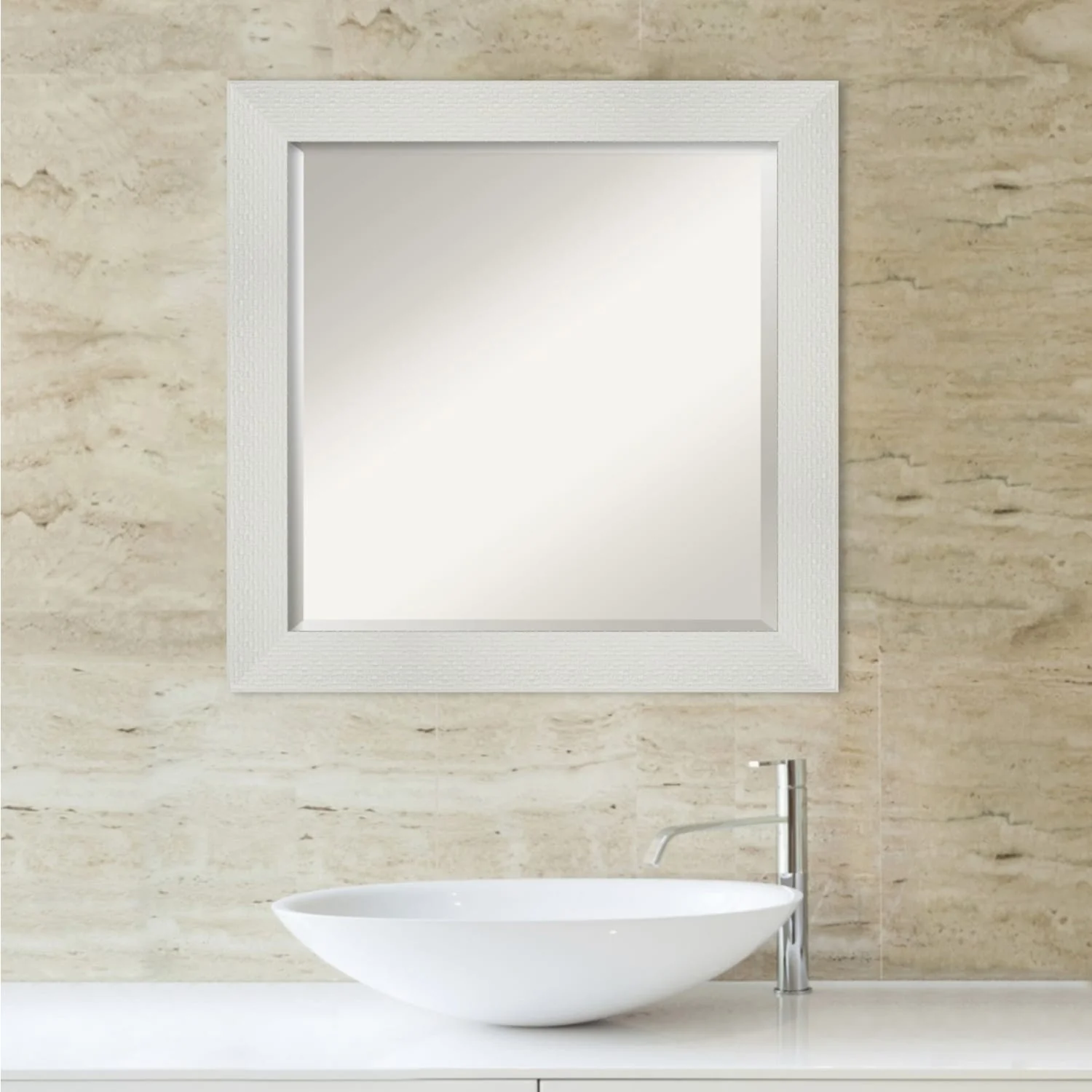 Add a touch of elegance to your bathroom decor with this Beveled Bathroom Wall Mirror. The Mosaic White Frame adds a classic and sophisticated look to the mirror, making it a perfect complement to any style of bathroom. Crafted using traditional custom framing techniques, this mirror is made to last and boasts premium finishing that is sure to impress.