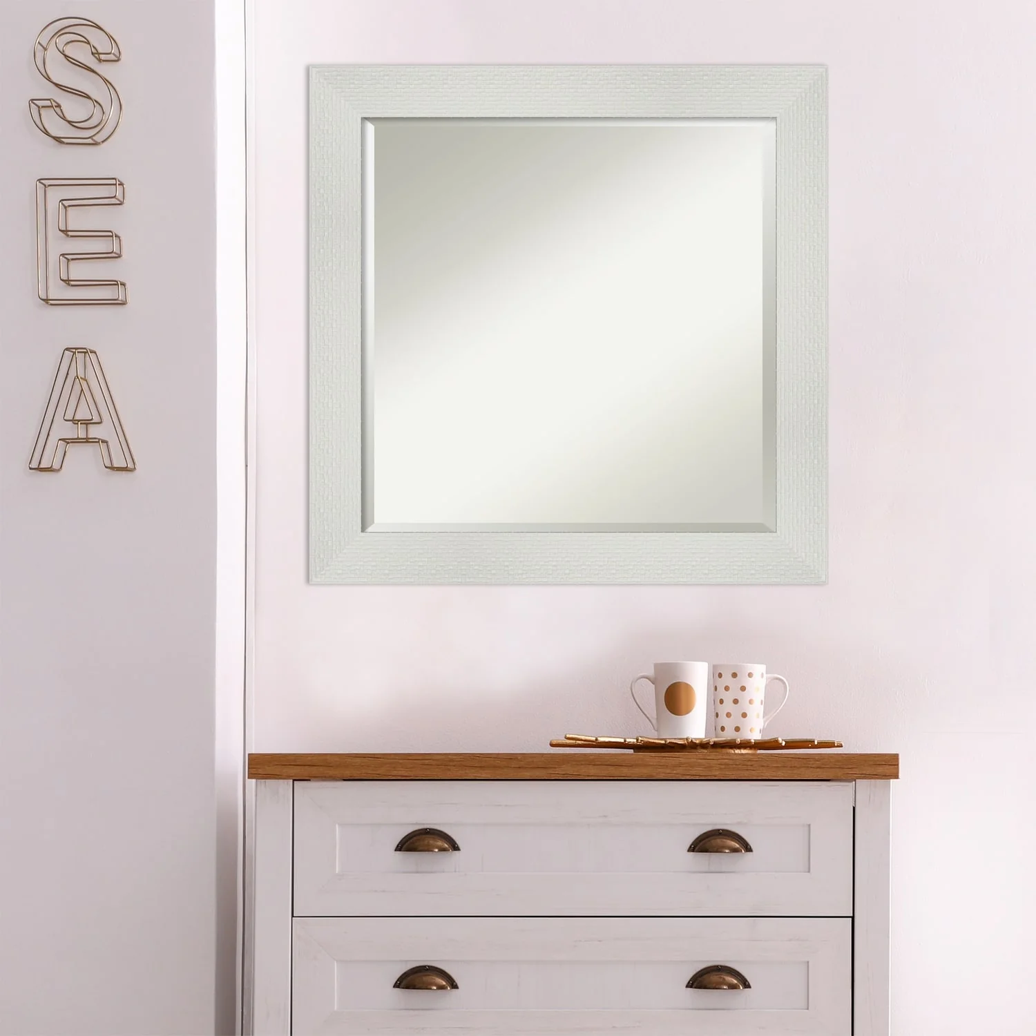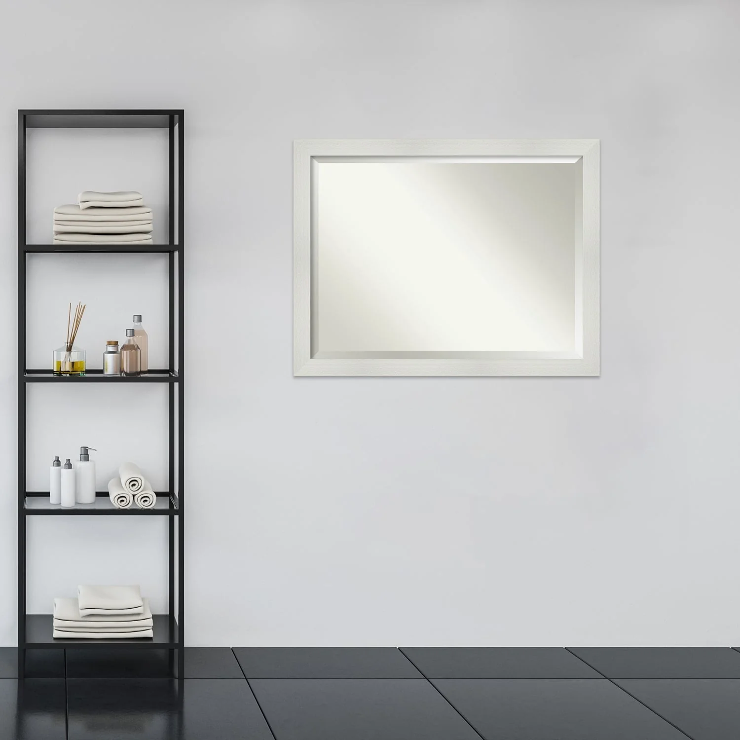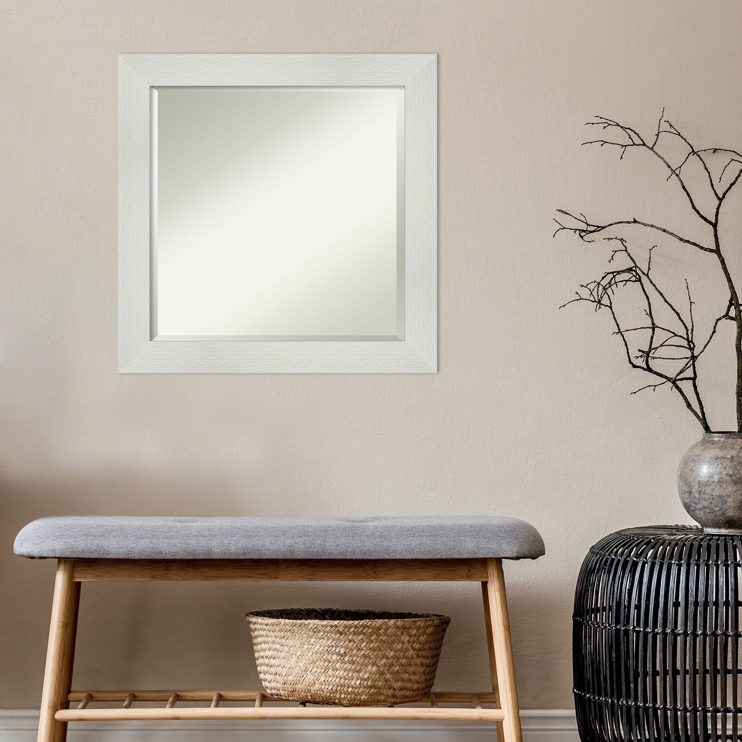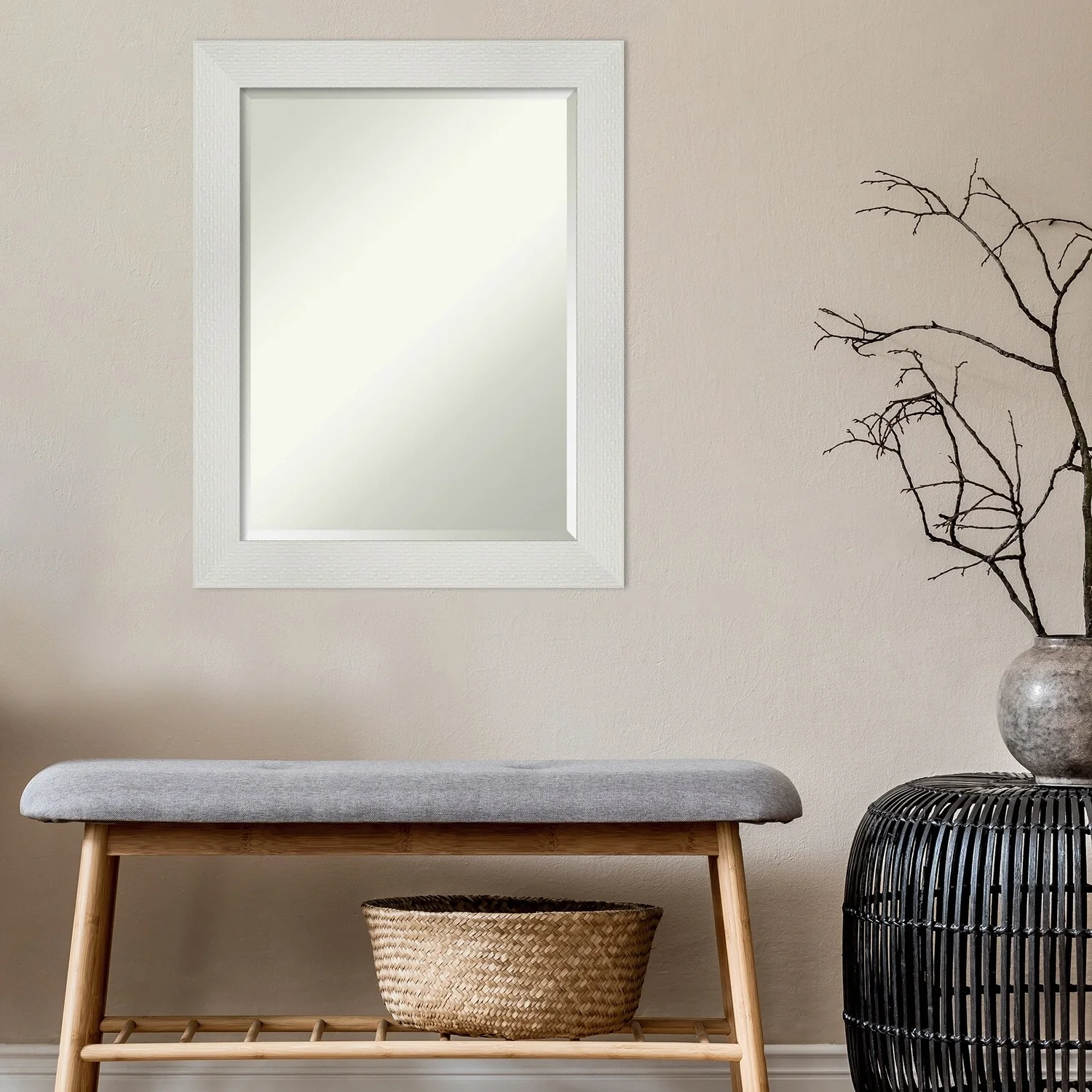 Add a touch of elegance to your bathroom decor with this Beveled Bathroom Wall Mirror. The Mosaic White Frame adds a classic and sophisticated look to the mirror, making it a perfect complement to any style of bathroom. Crafted using traditional custom framing techniques, this mirror is made to last and boasts premium finishing that is sure to impress.