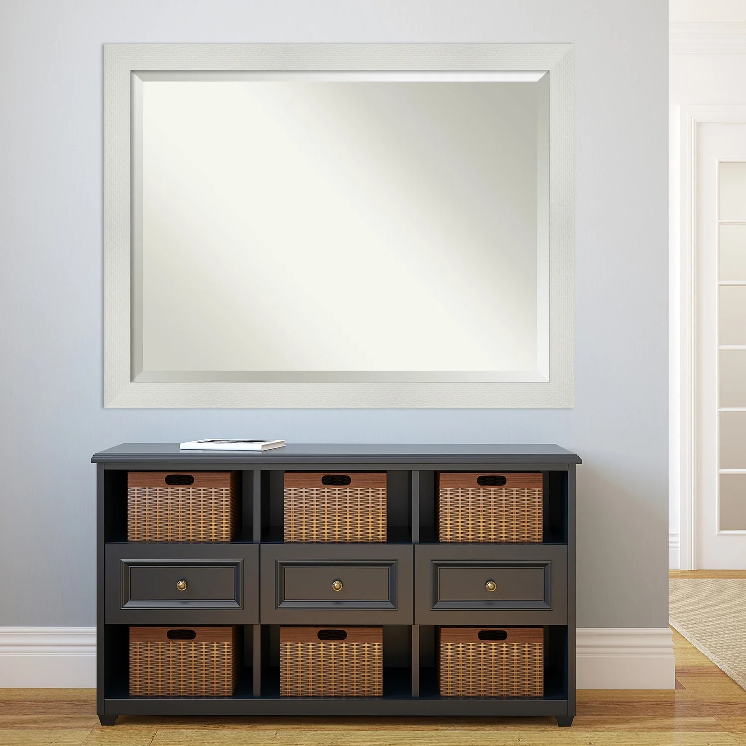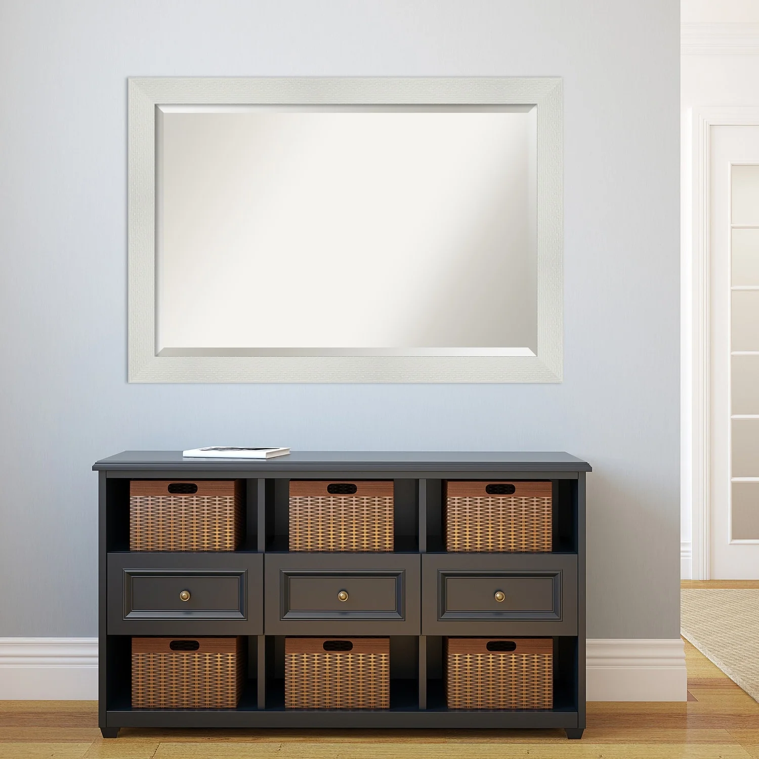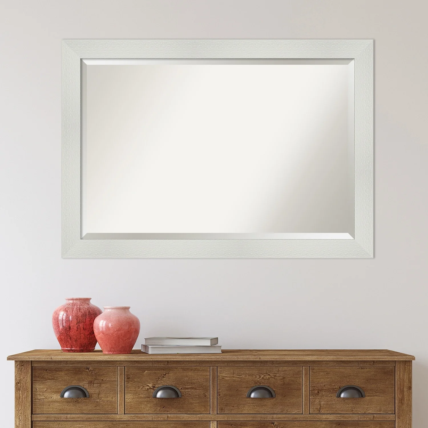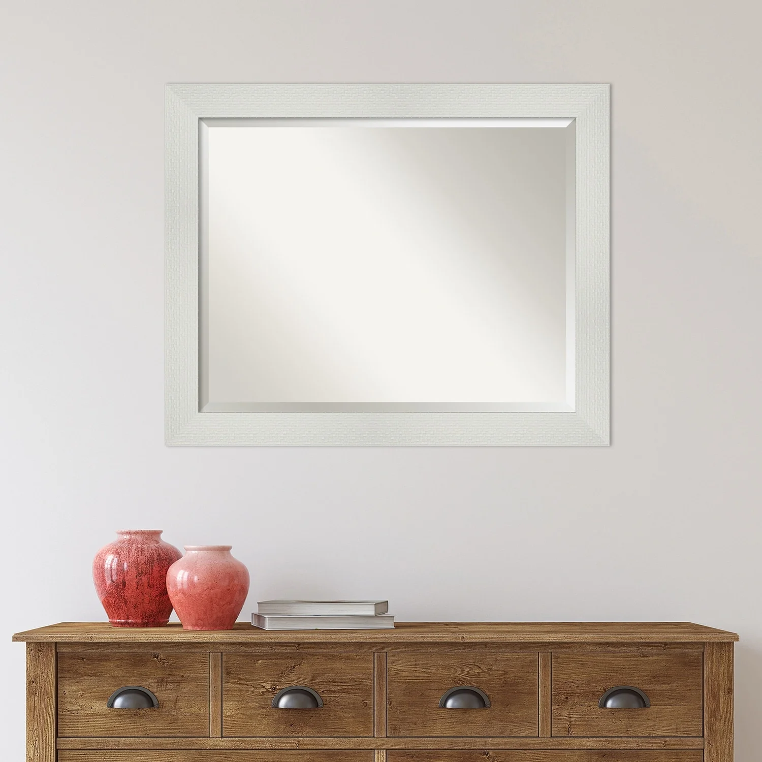 Add a touch of elegance to your bathroom decor with this Beveled Bathroom Wall Mirror. The Mosaic White Frame adds a classic and sophisticated look to the mirror, making it a perfect complement to any style of bathroom. Crafted using traditional custom framing techniques, this mirror is made to last and boasts premium finishing that is sure to impress.