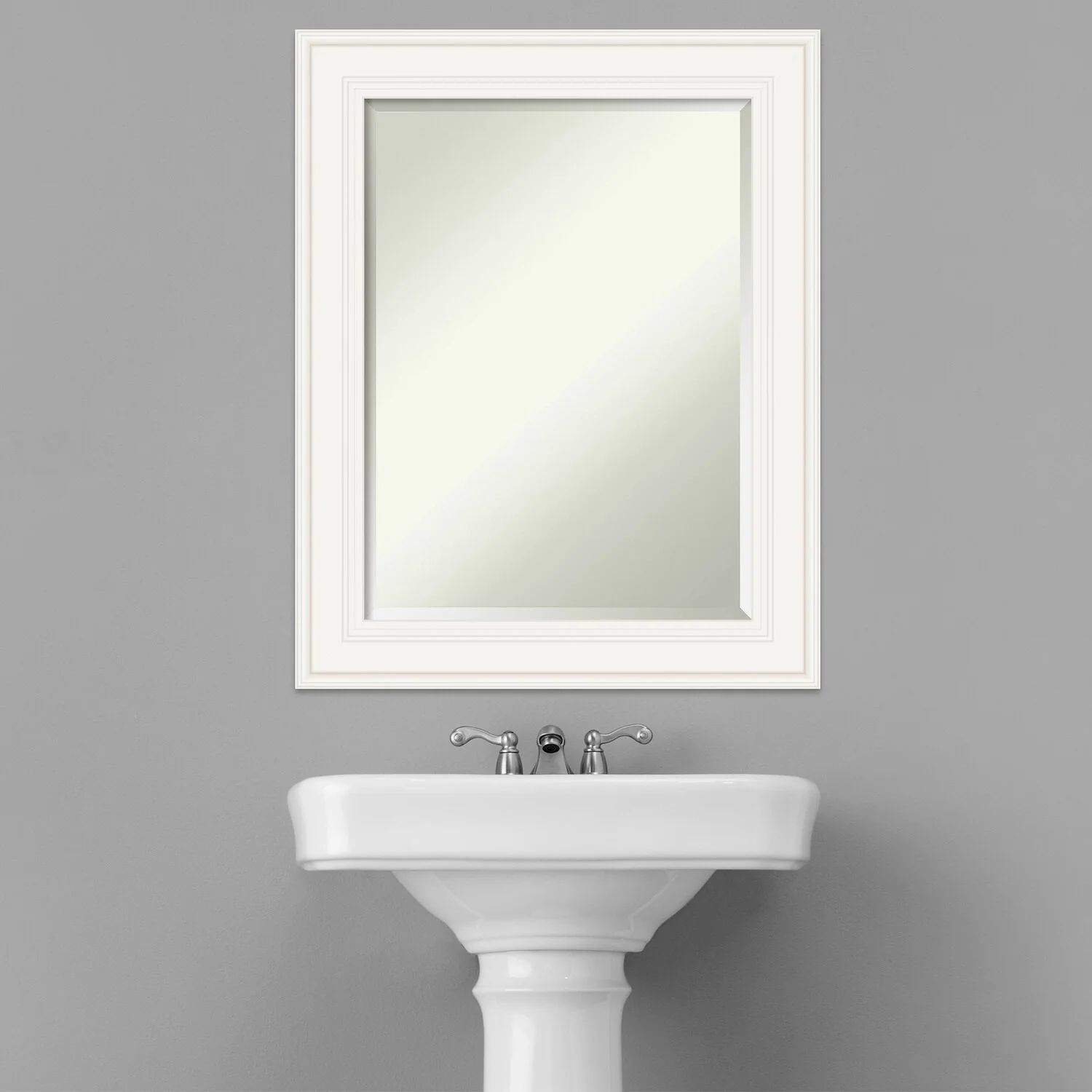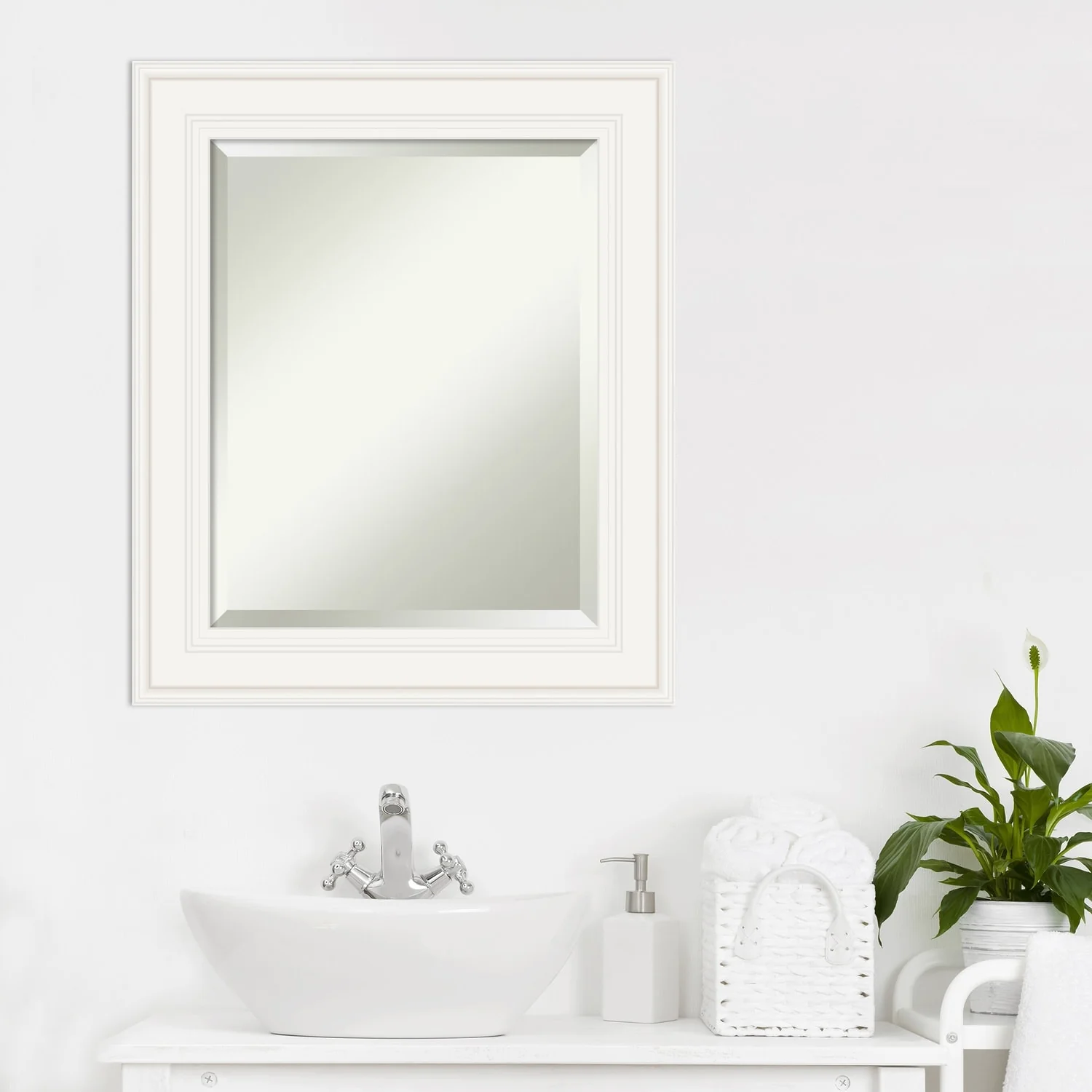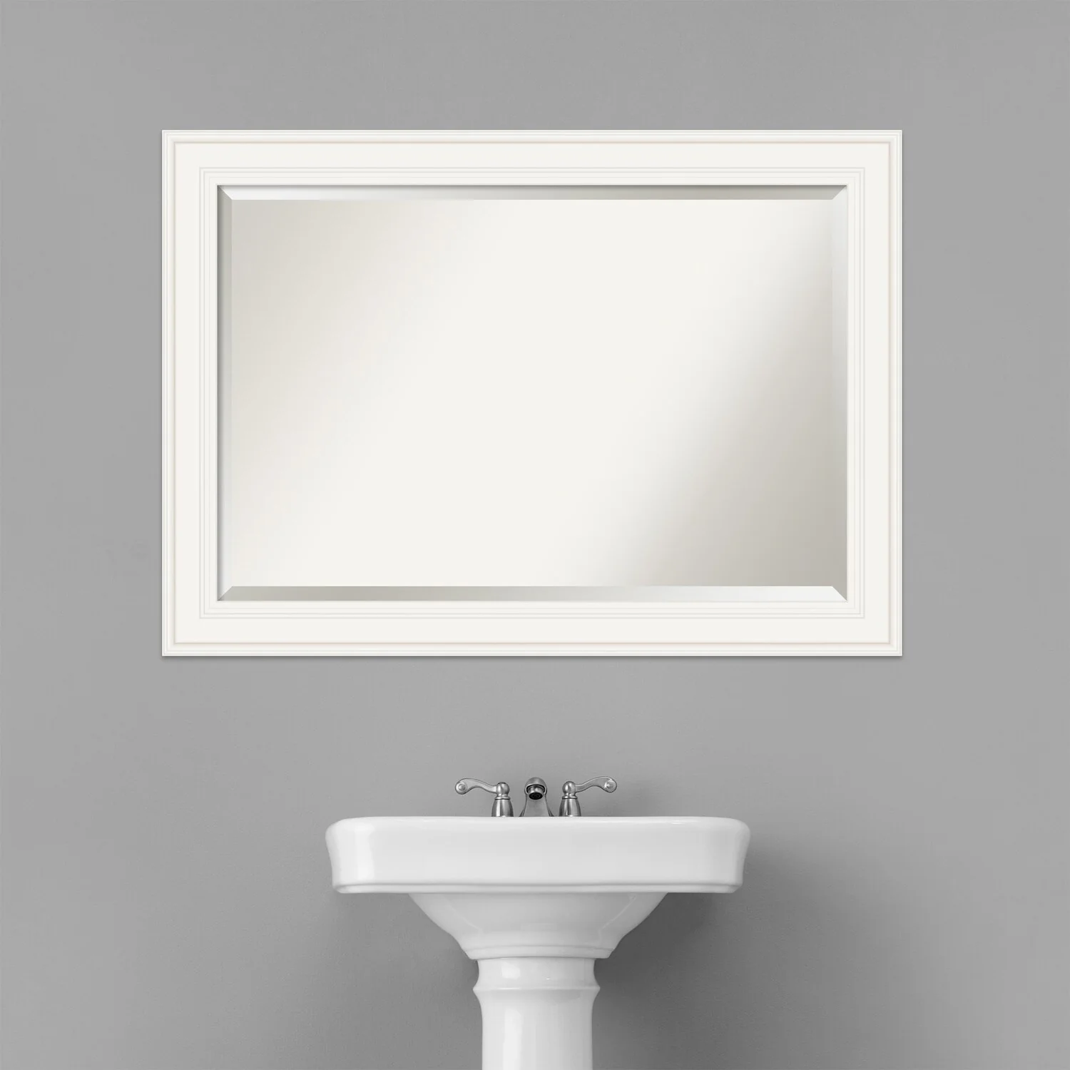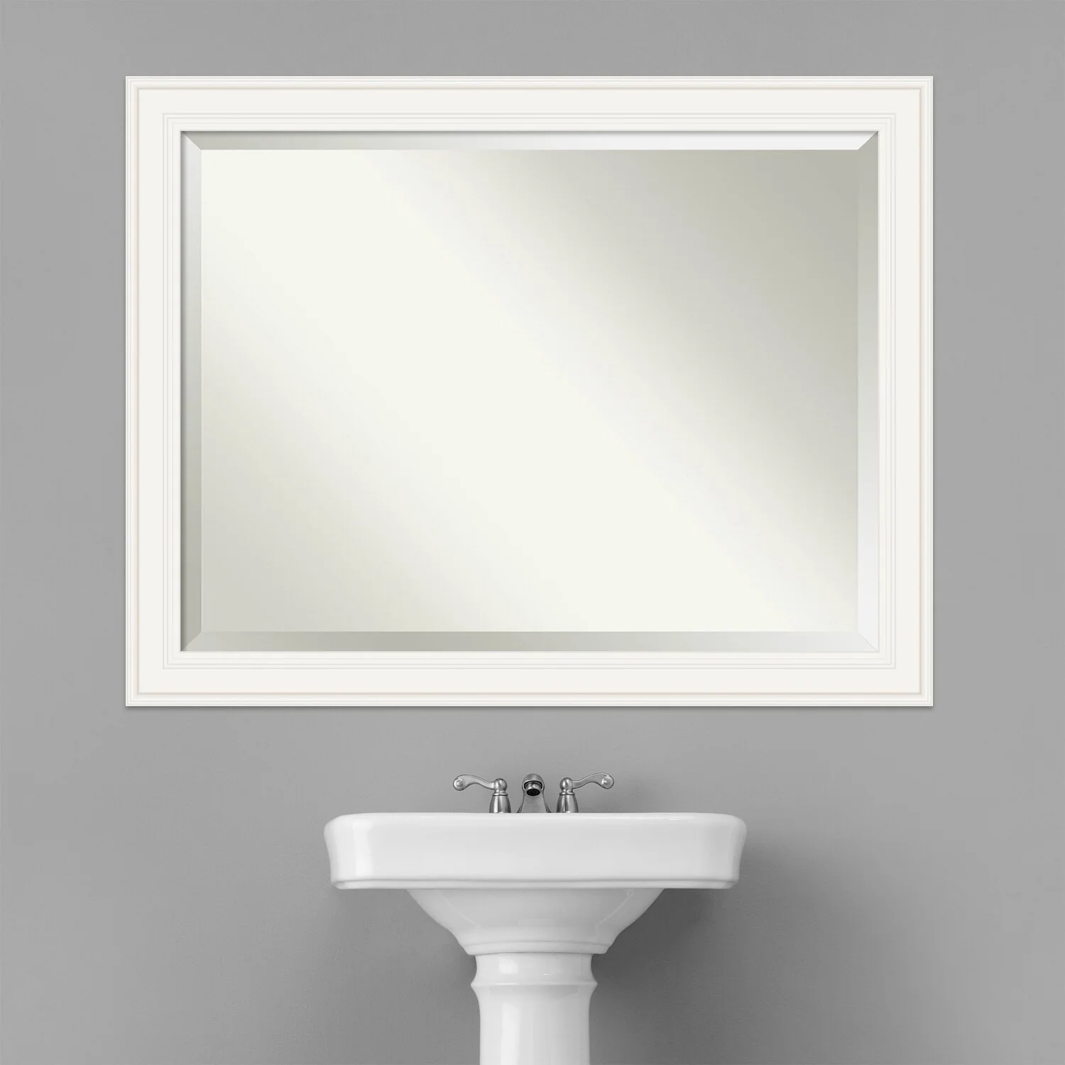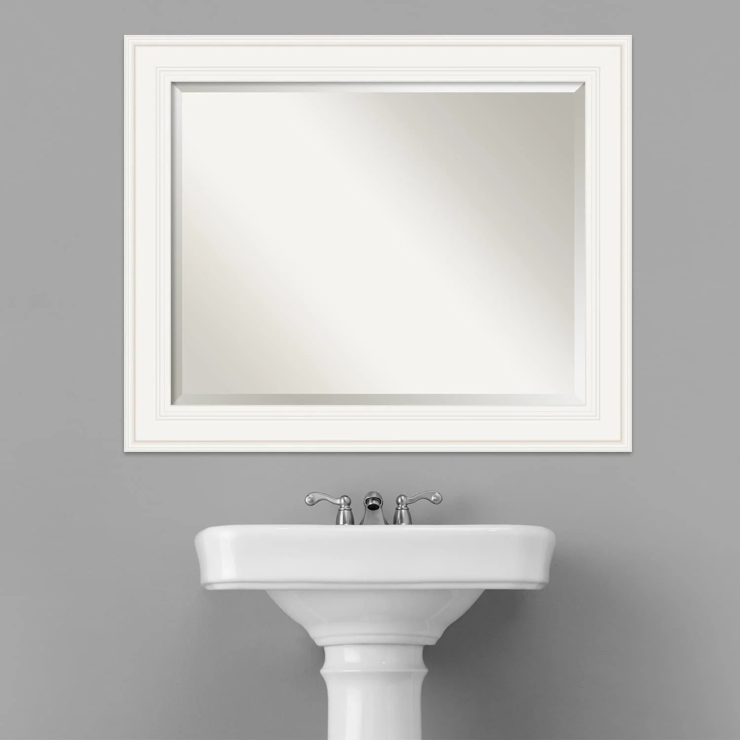 - MIRROR DETAILS: This mirror features premium glass for a clear, undistorted image and is finished with a beveled edge to give the glass a decorative touch.
