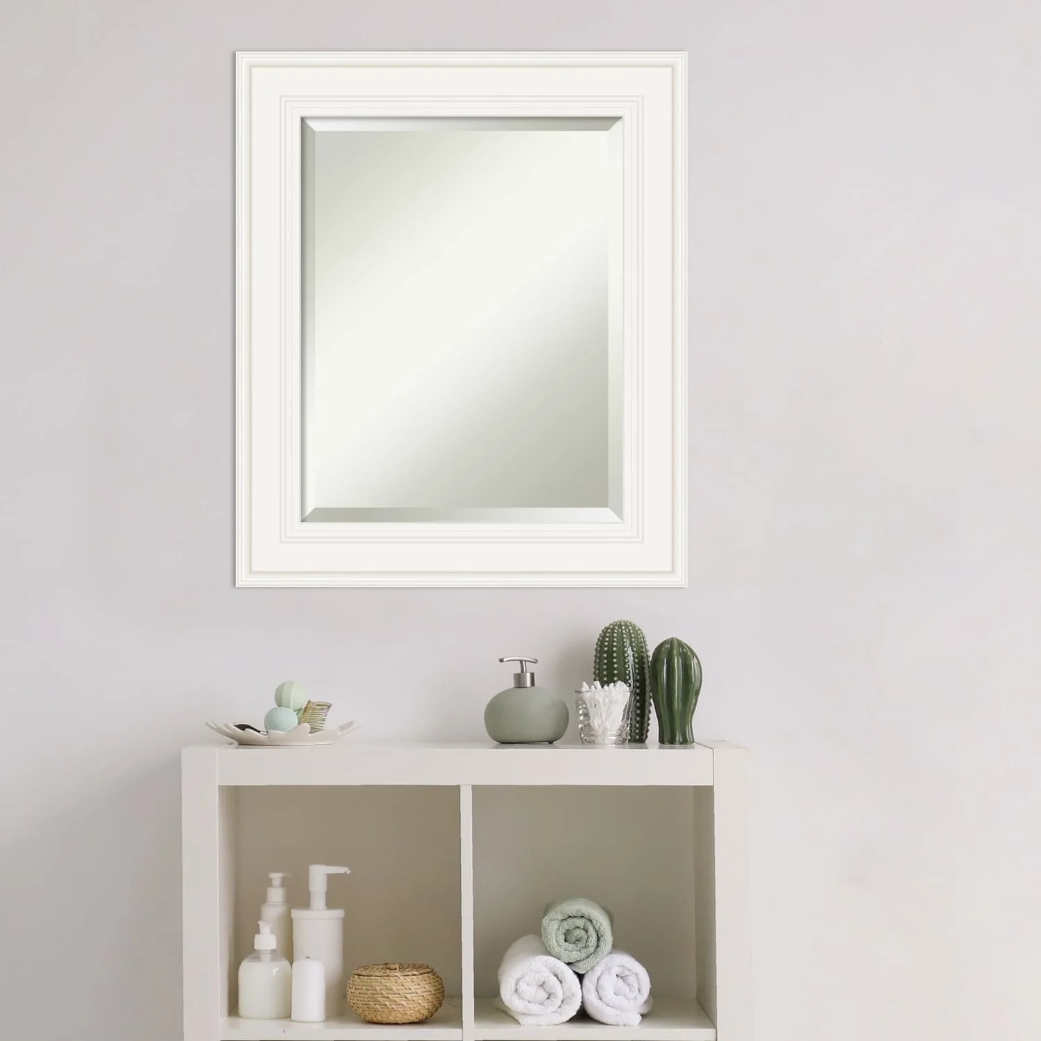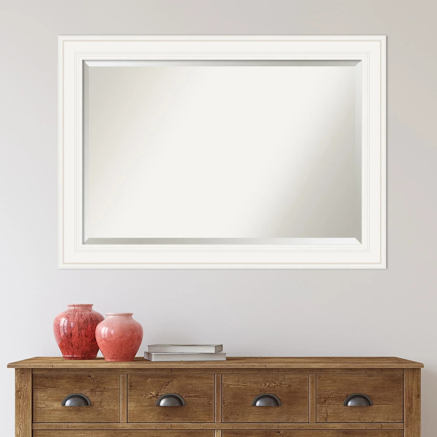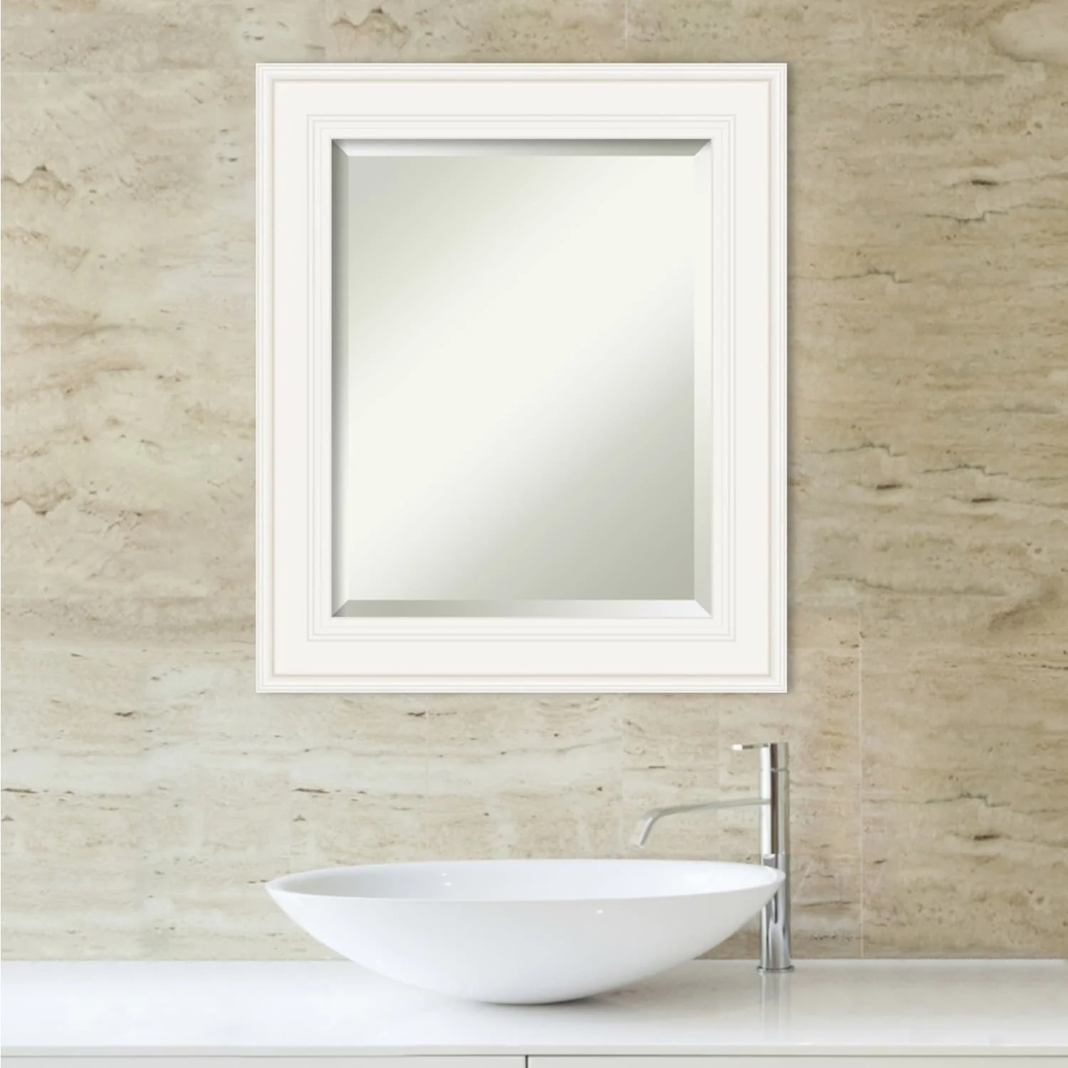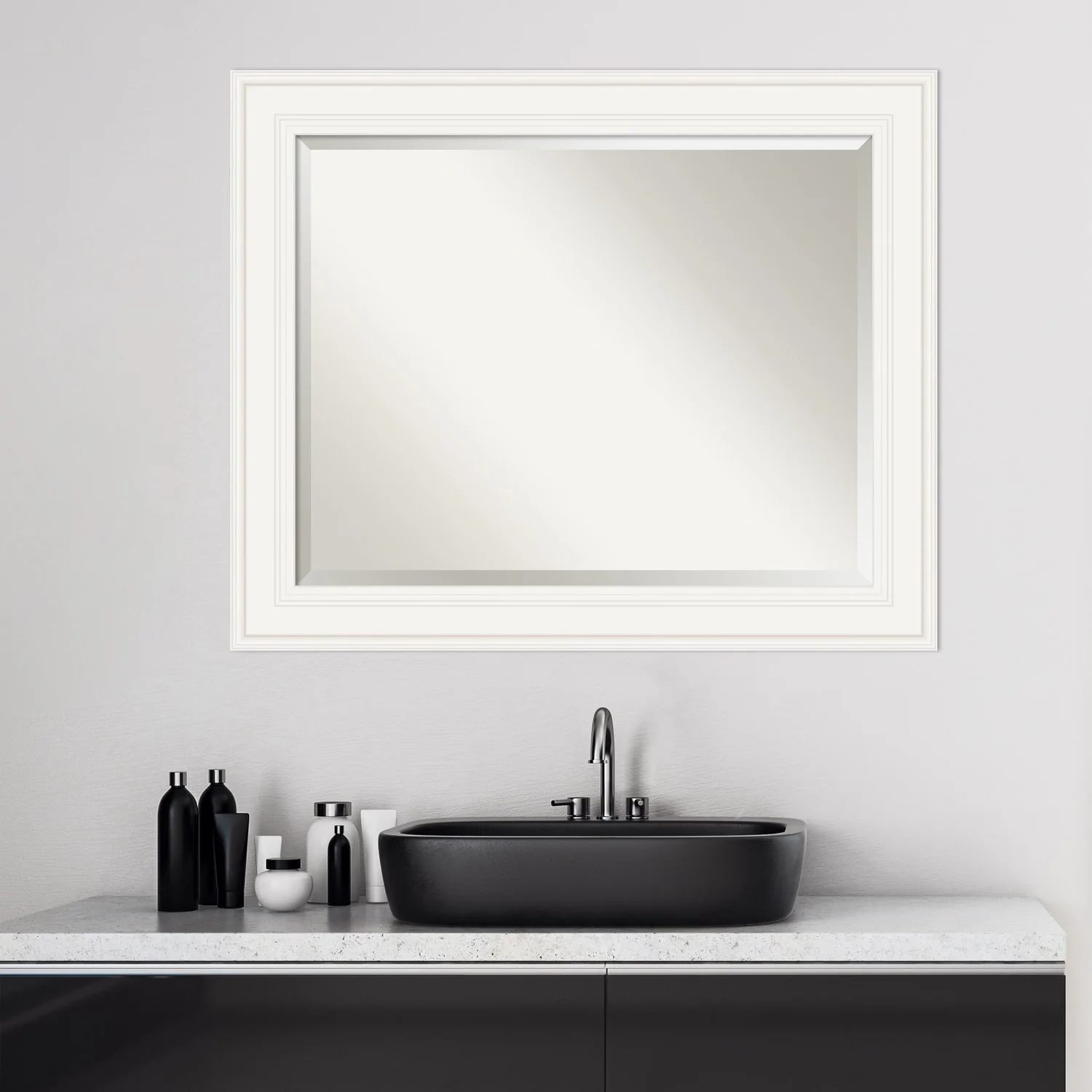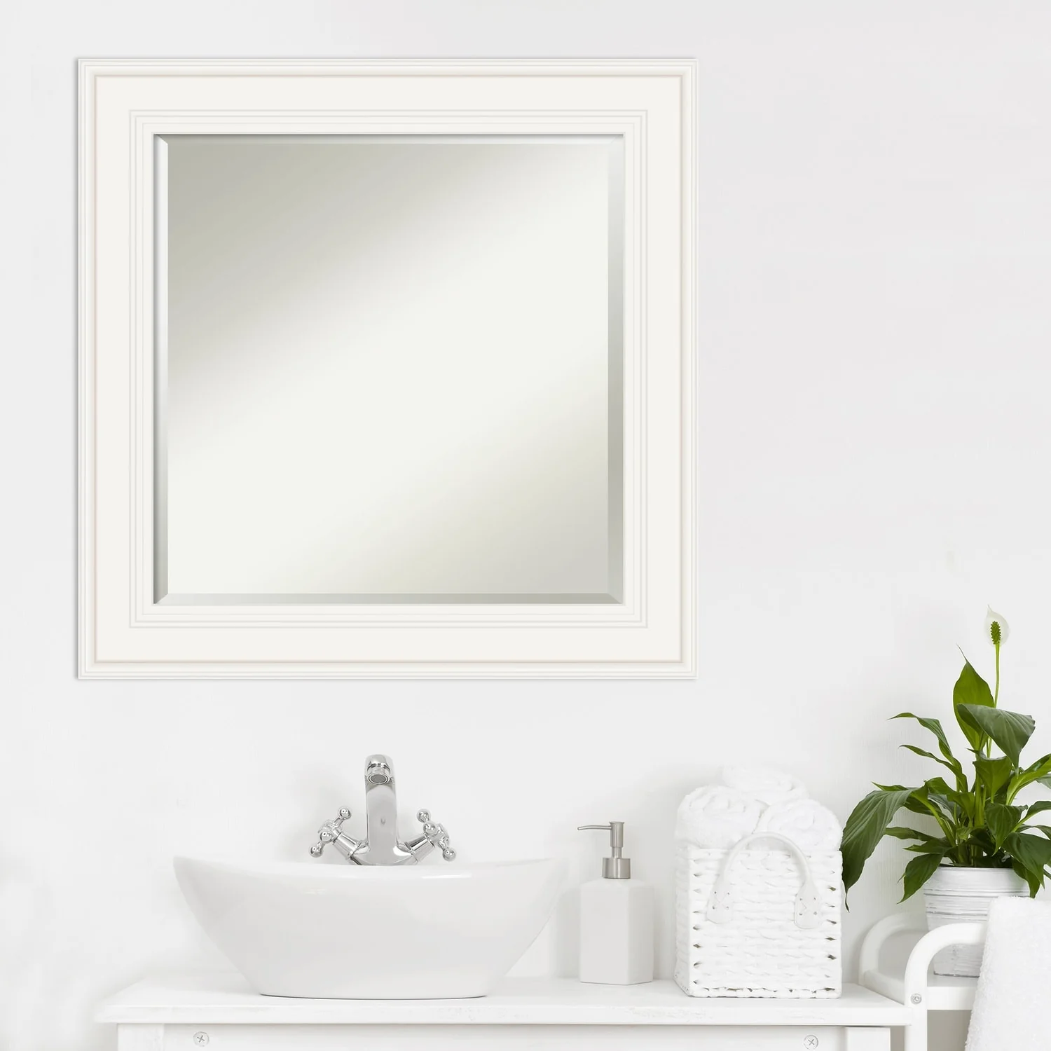 - MIRROR DETAILS: This mirror features premium glass for a clear, undistorted image and is finished with a beveled edge to give the glass a decorative touch.