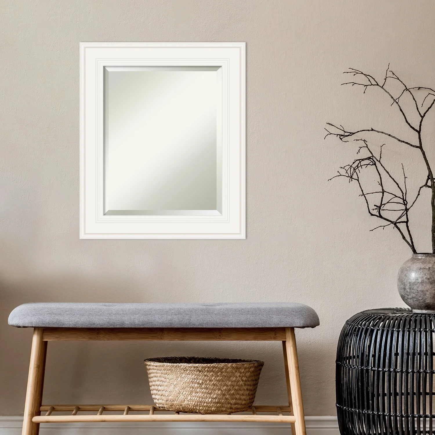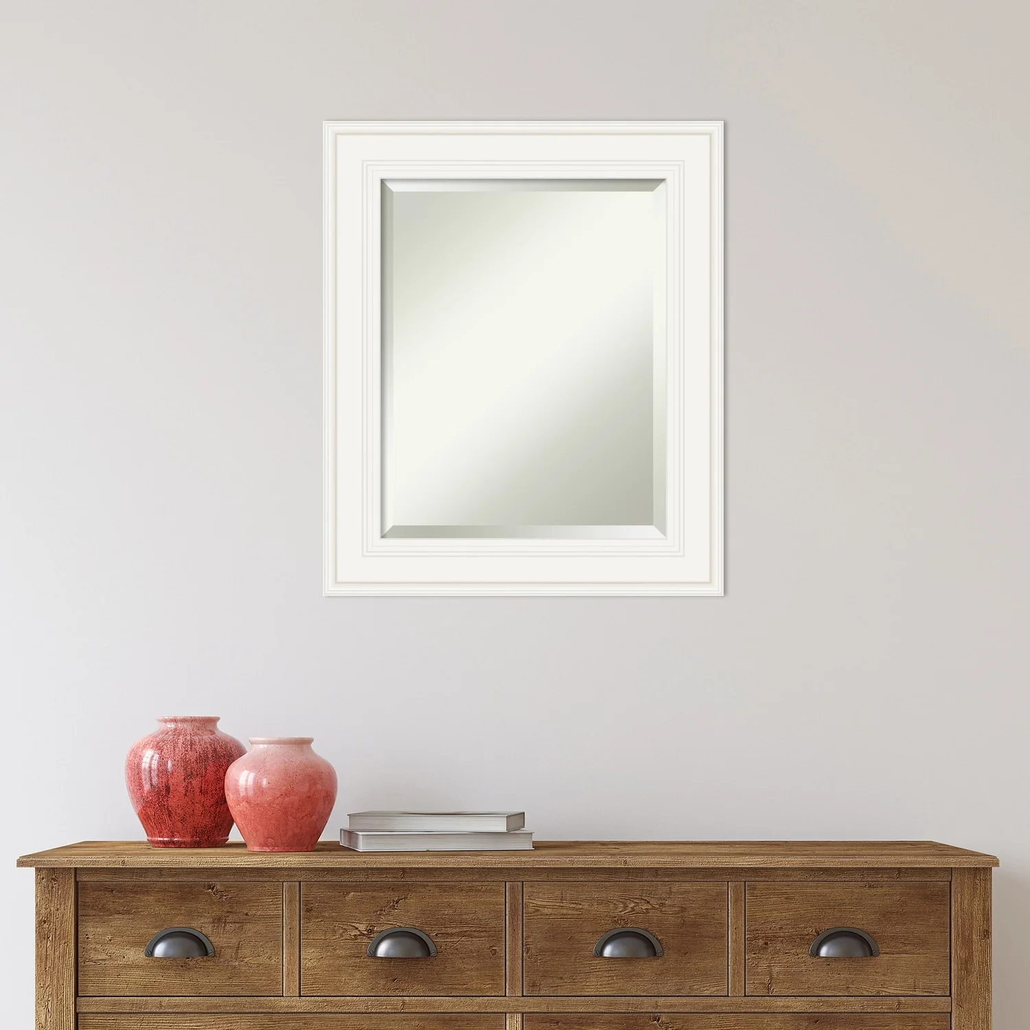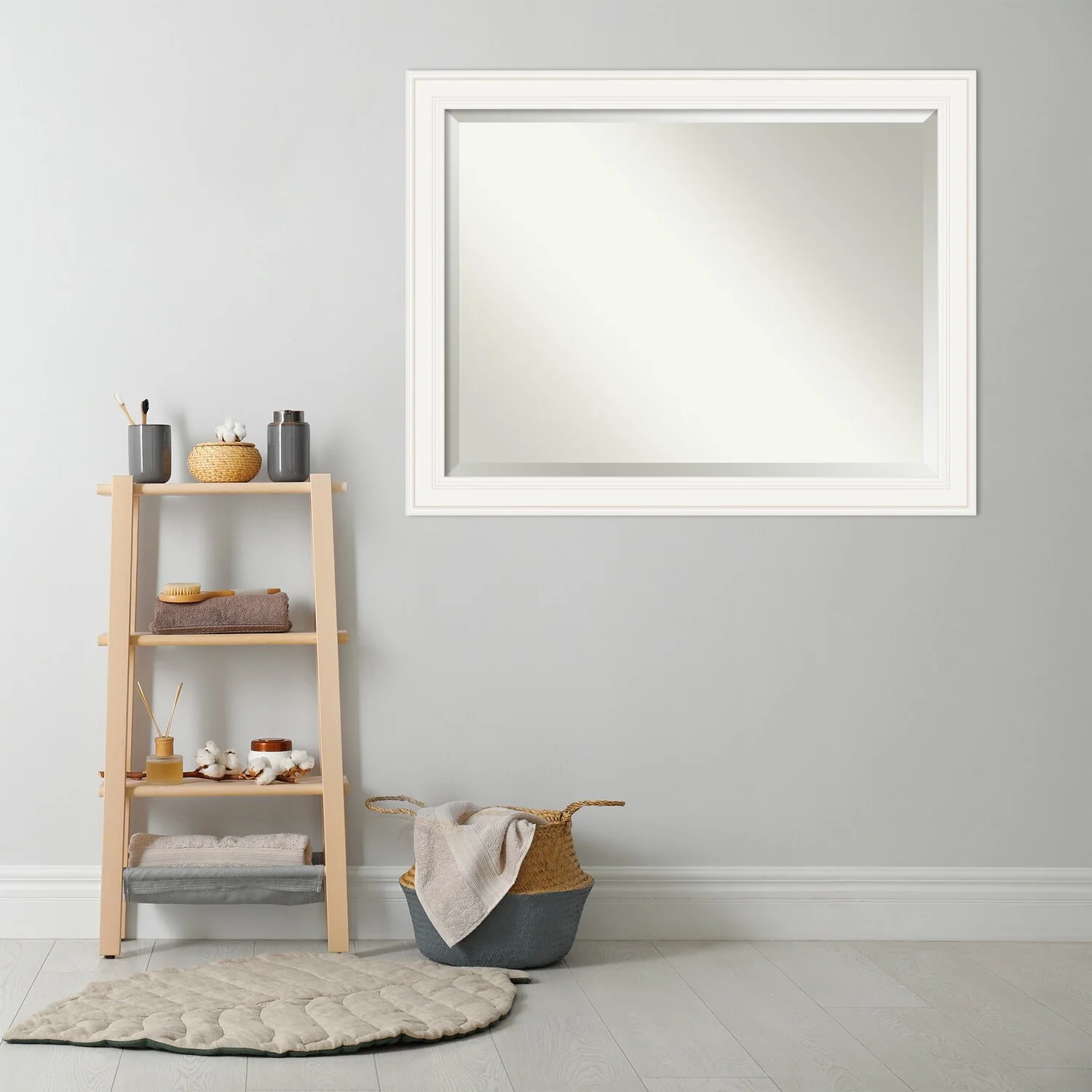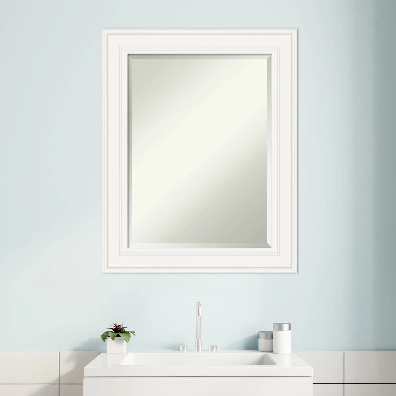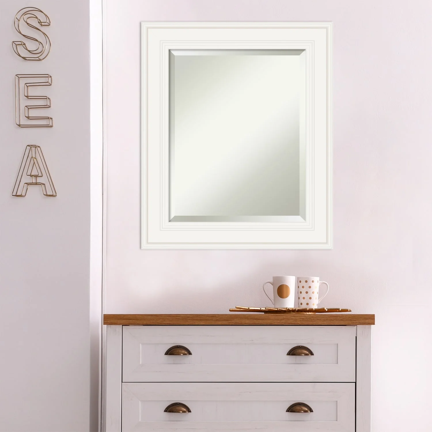 - MIRROR DETAILS: This mirror features premium glass for a clear, undistorted image and is finished with a beveled edge to give the glass a decorative touch.