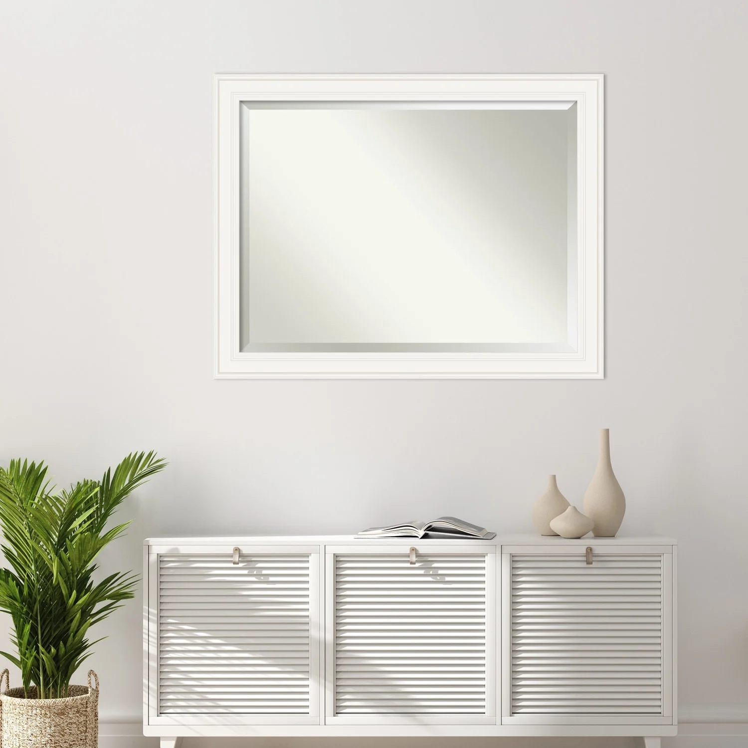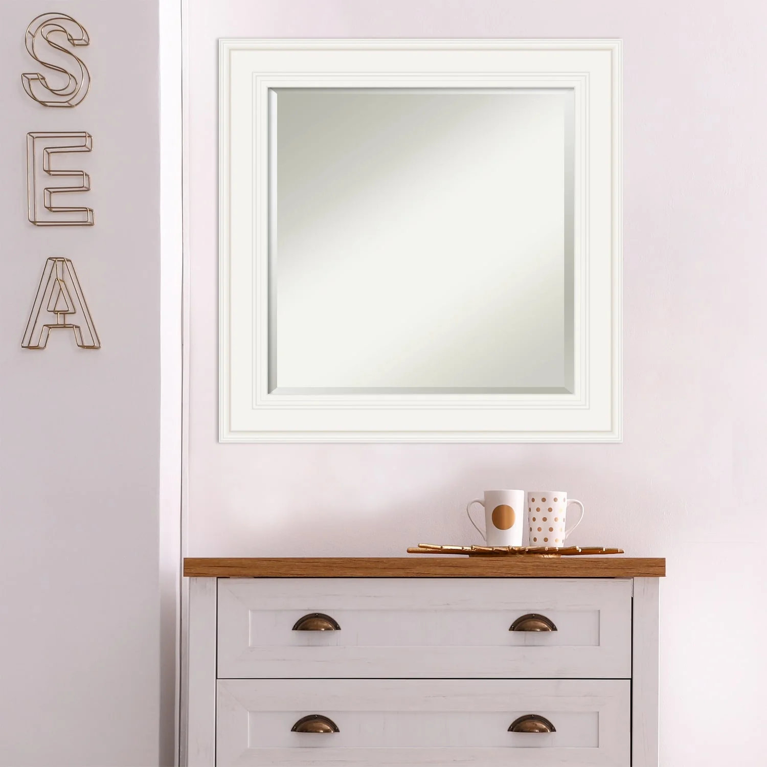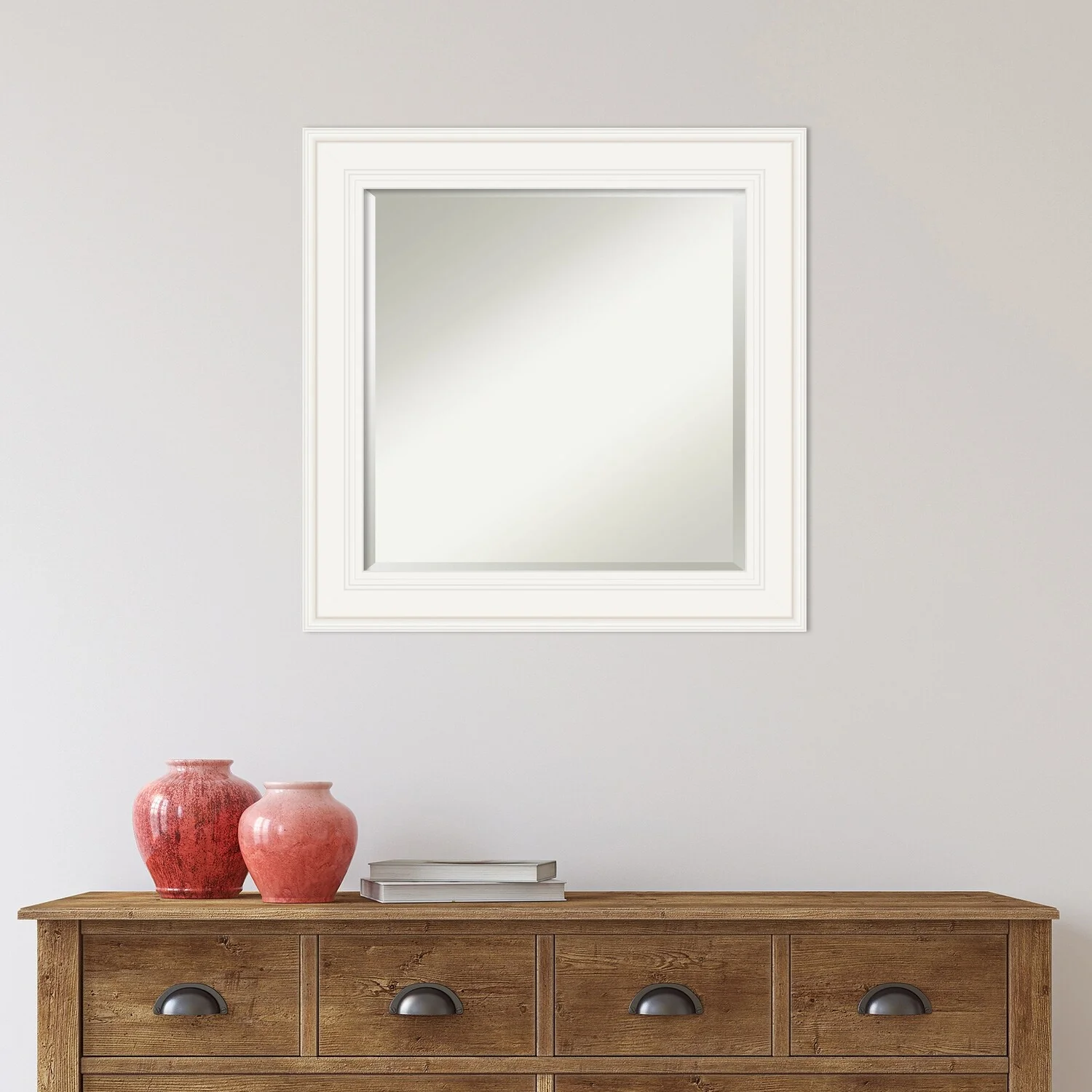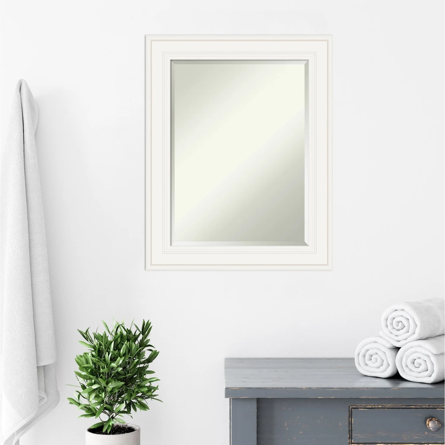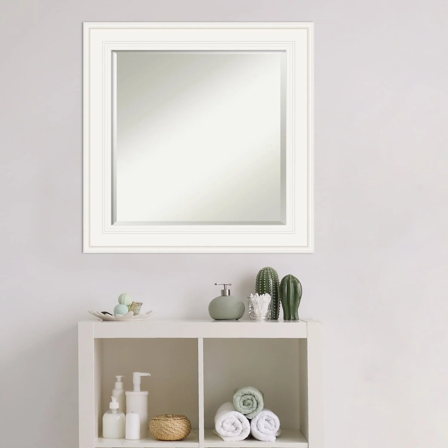 - MIRROR DETAILS: This mirror features premium glass for a clear, undistorted image and is finished with a beveled edge to give the glass a decorative touch.