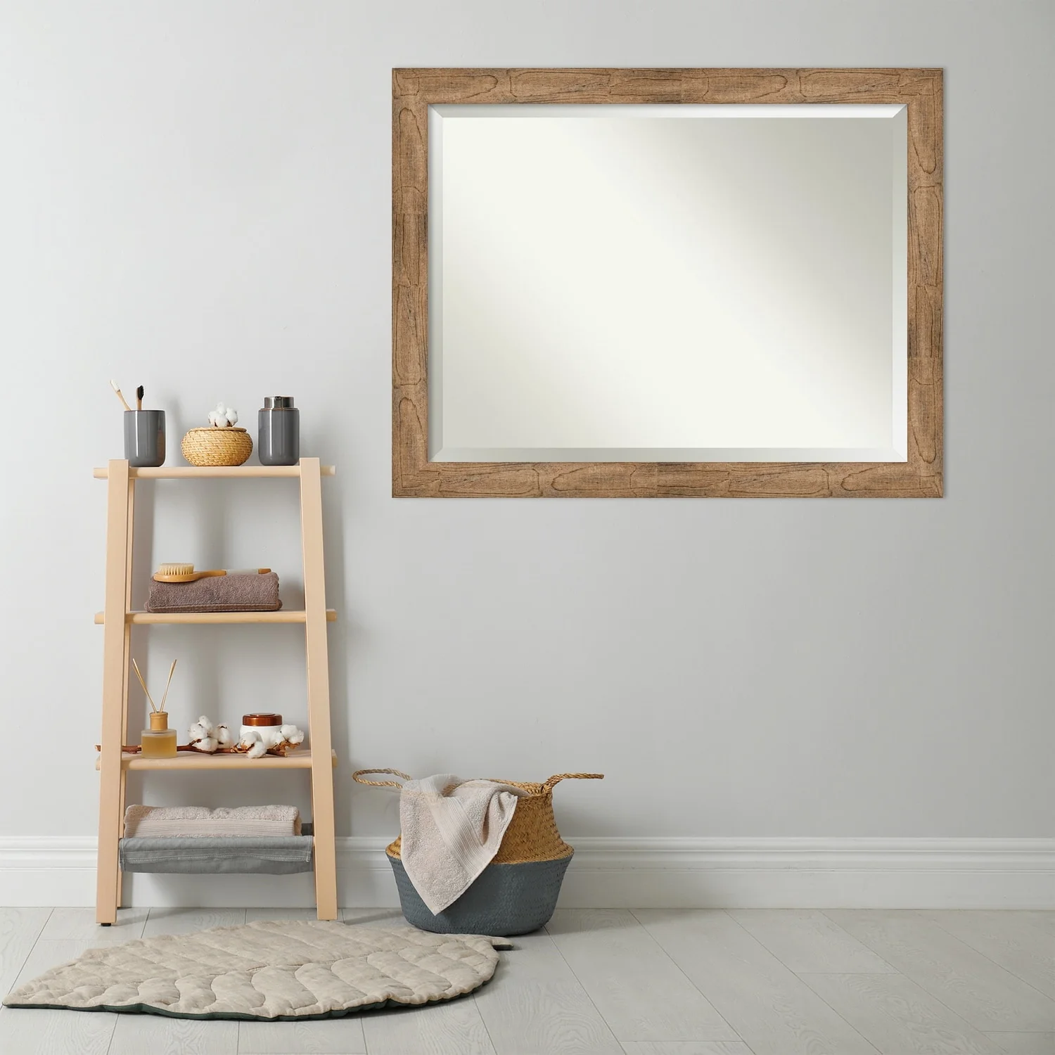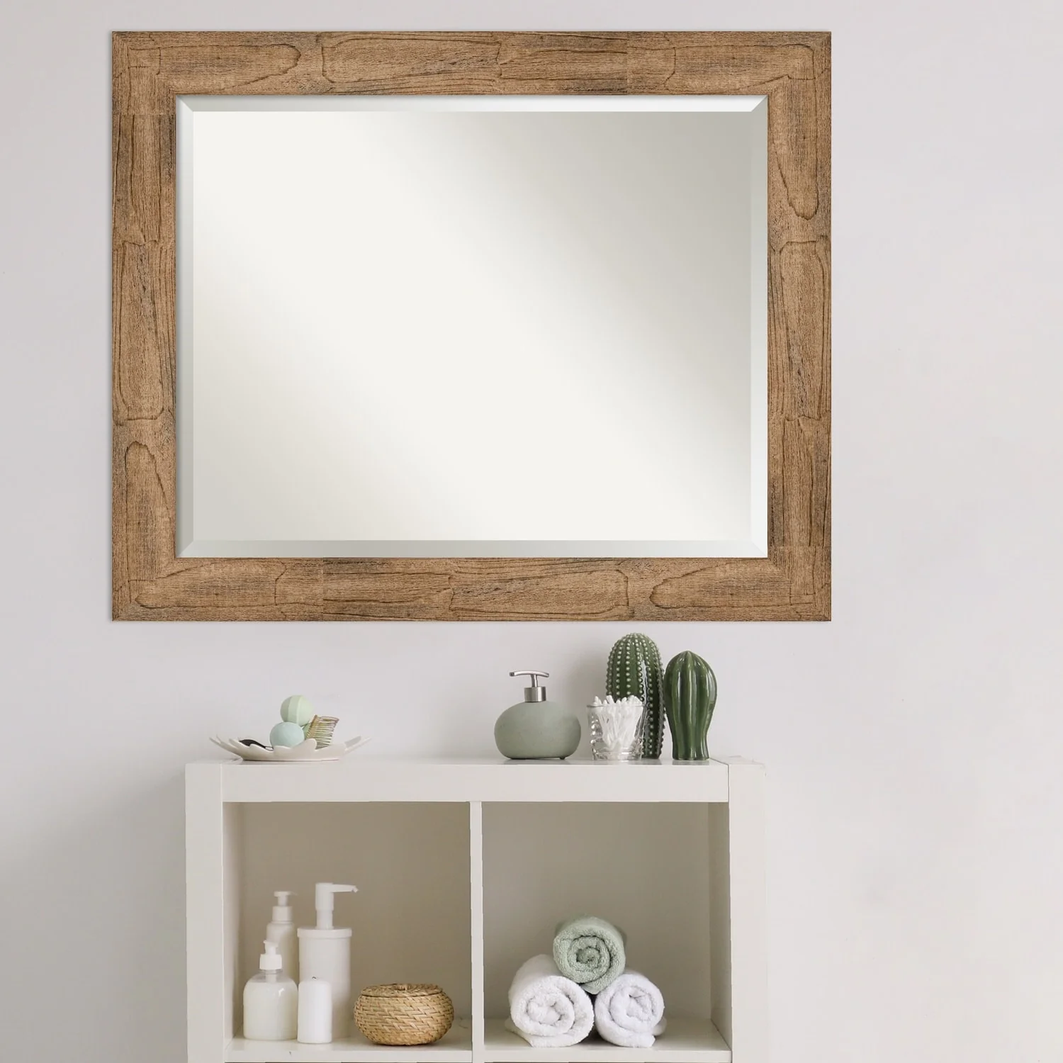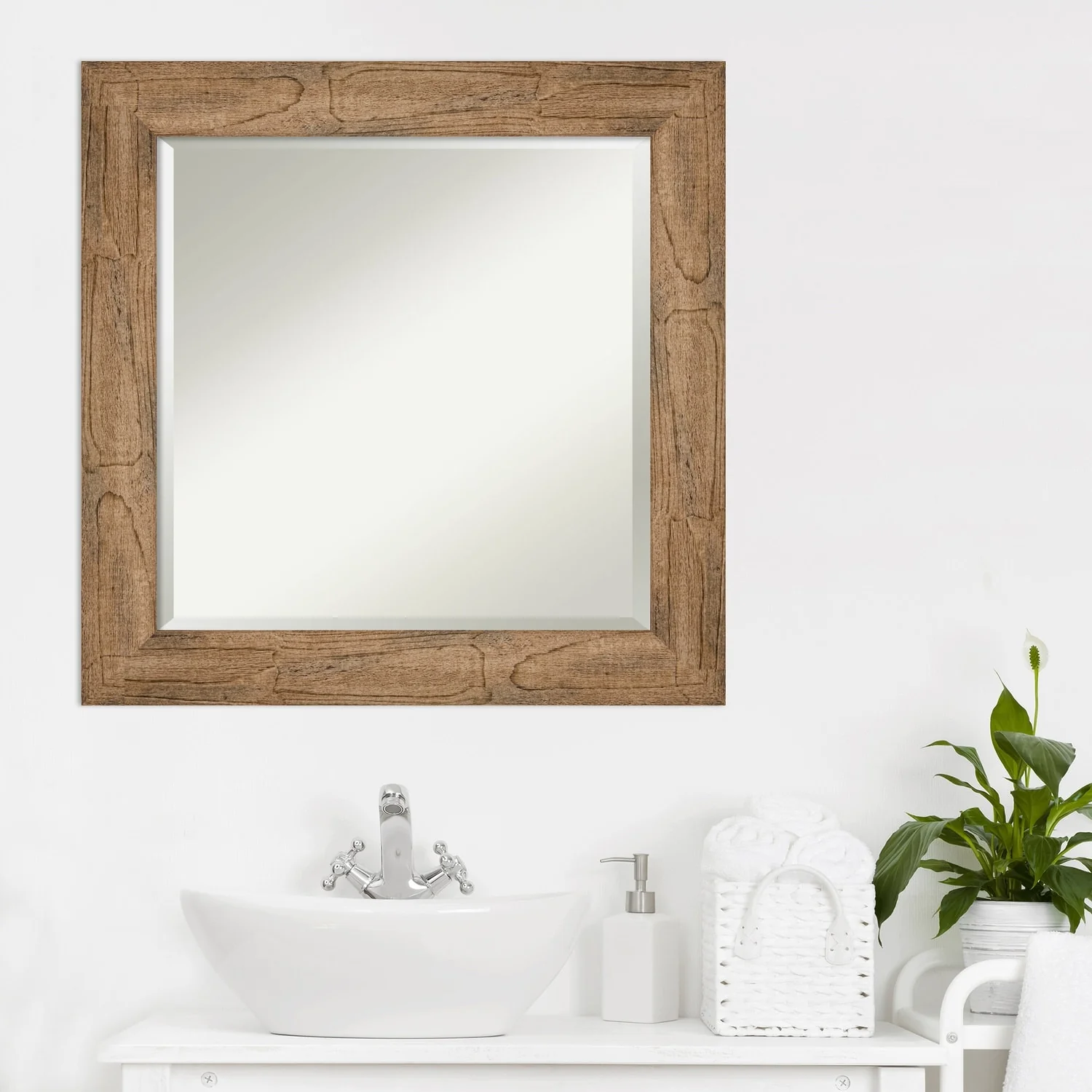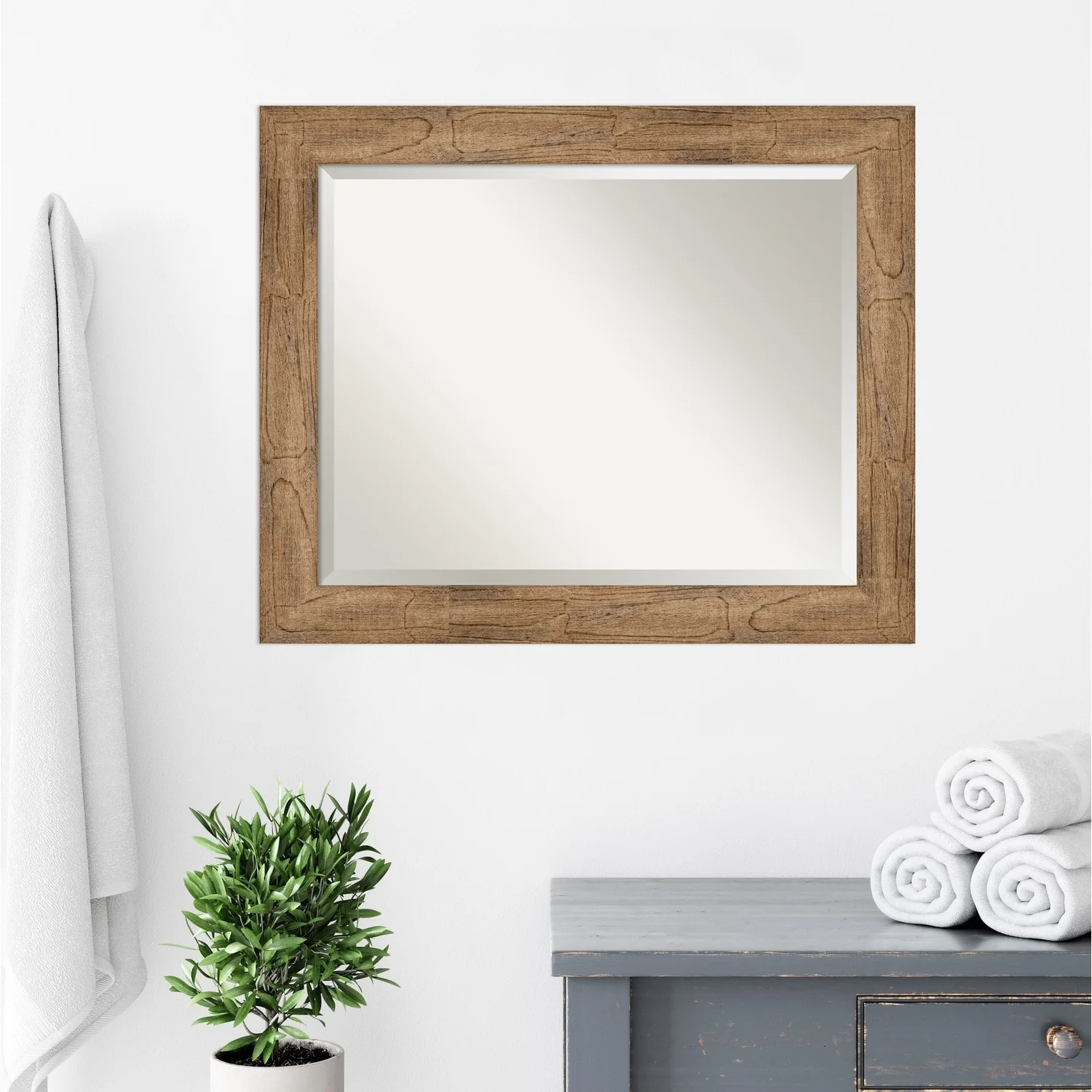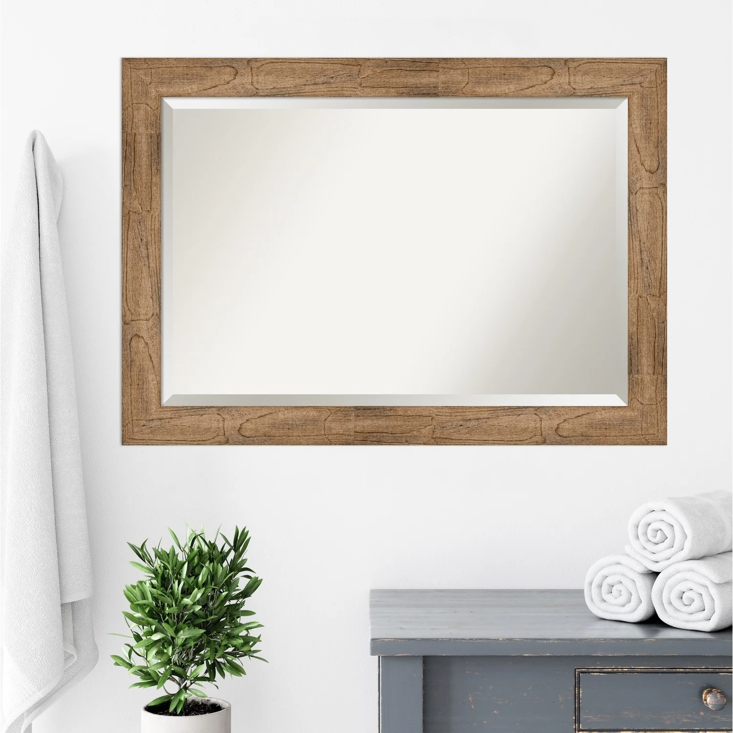 - MIRROR DETAILS: This mirror features premium glass for a clear, undistorted image and is finished with a beveled edge to give the glass a decorative touch.