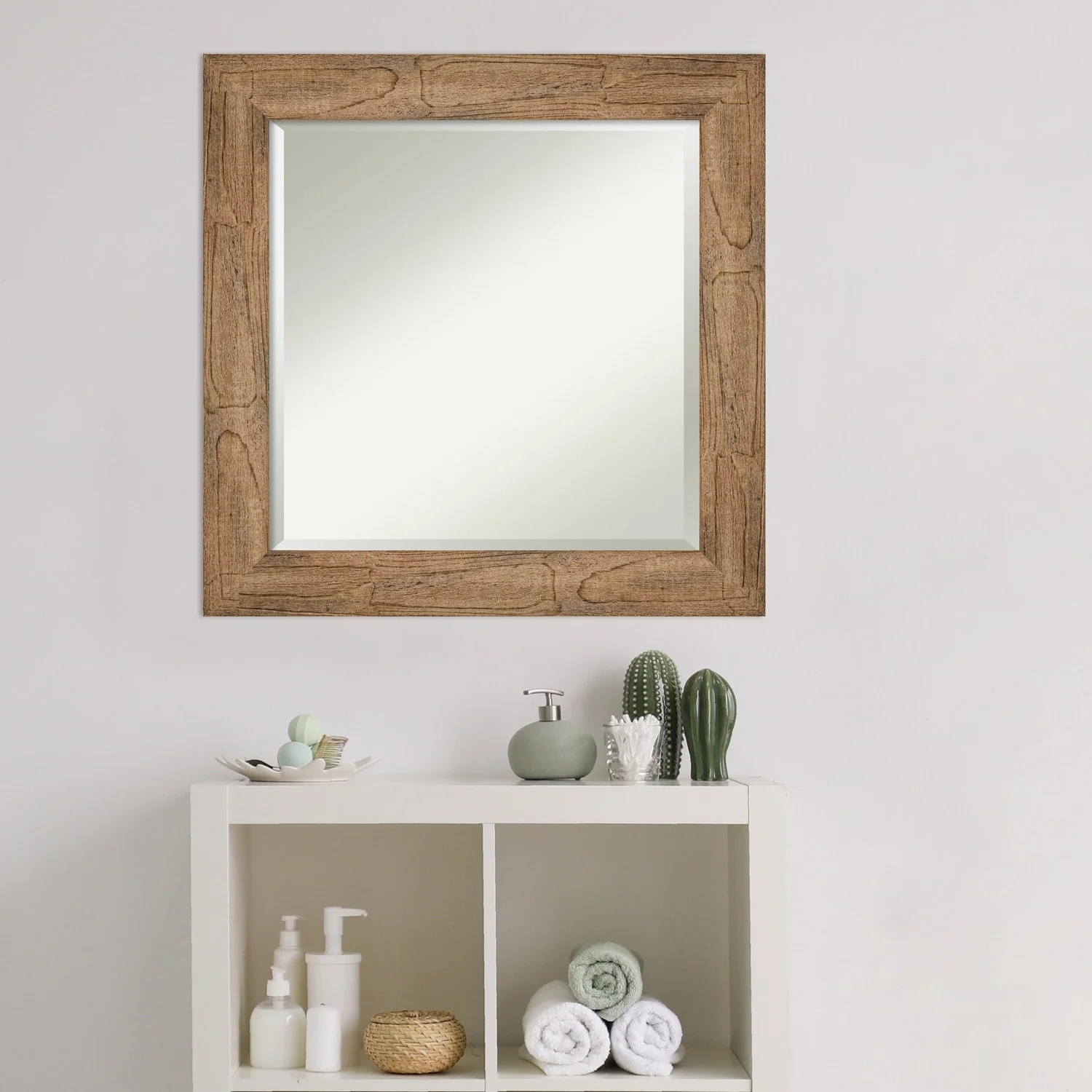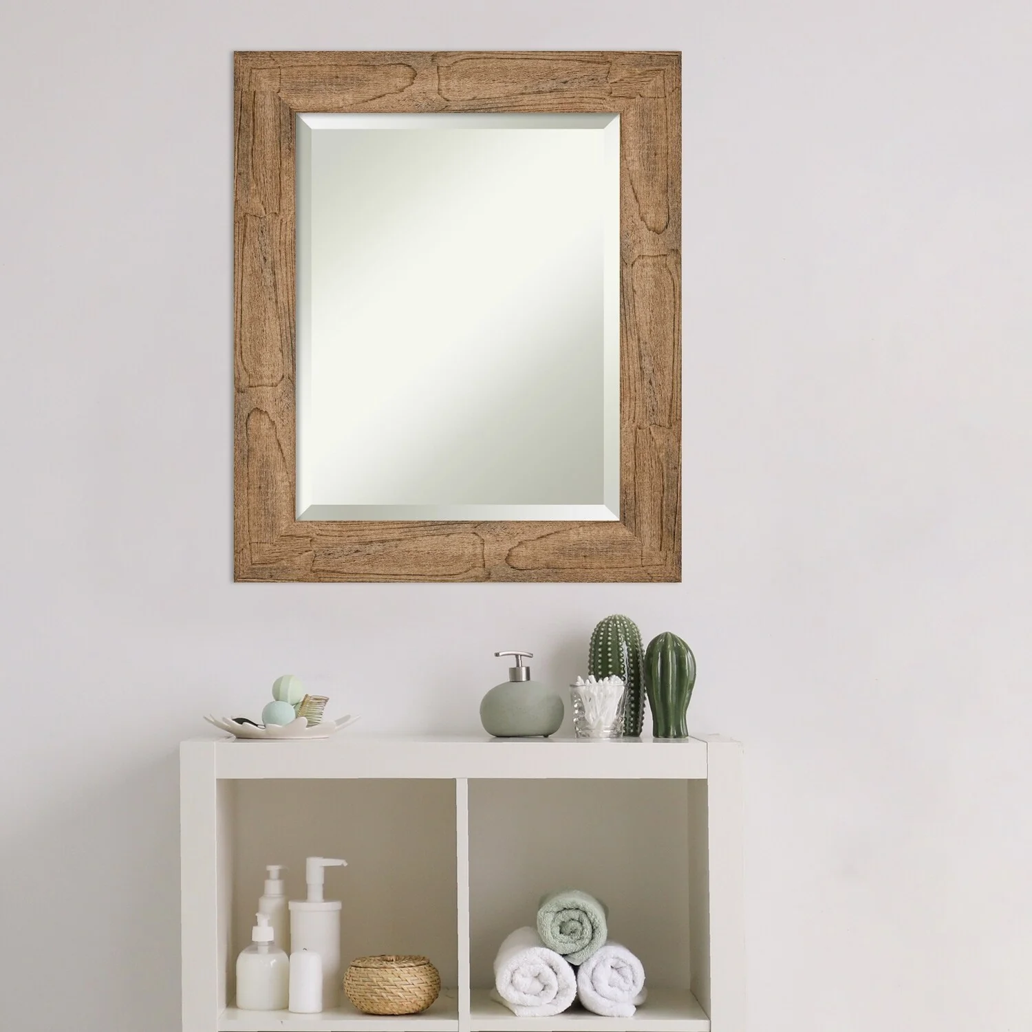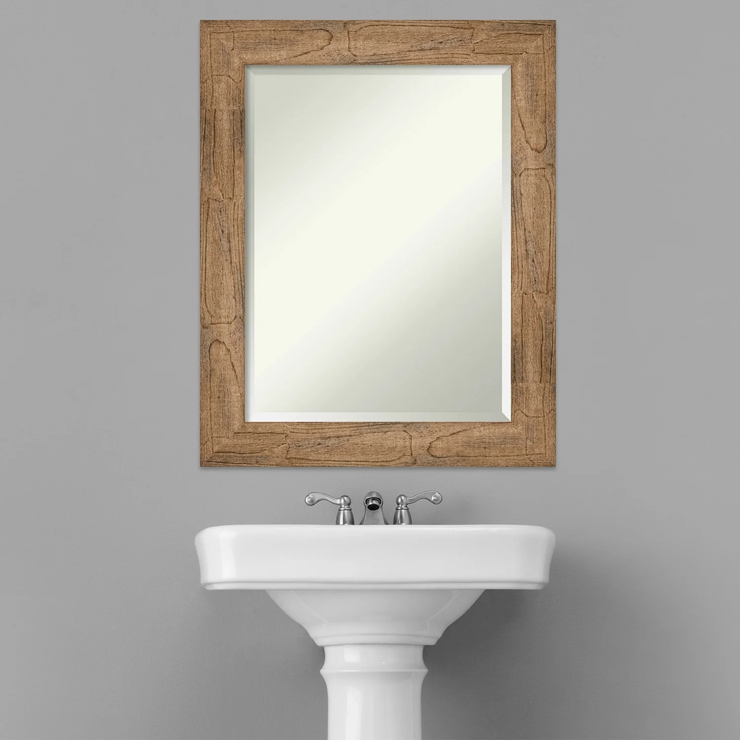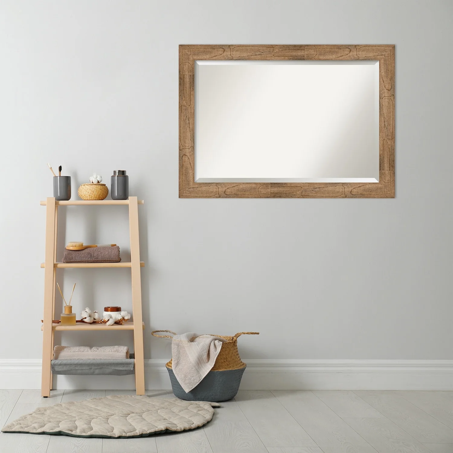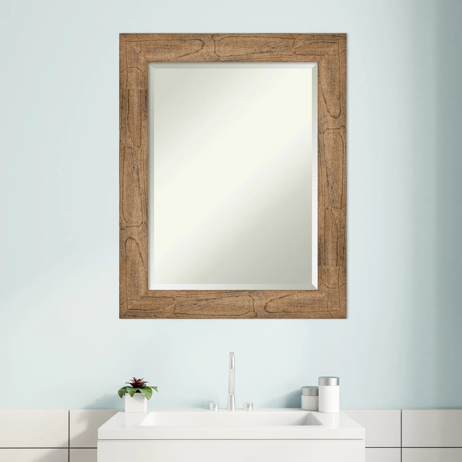 - MIRROR DETAILS: This mirror features premium glass for a clear, undistorted image and is finished with a beveled edge to give the glass a decorative touch.