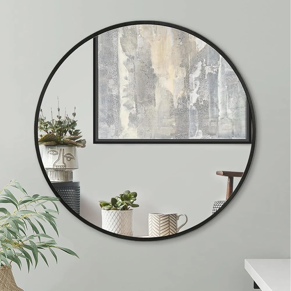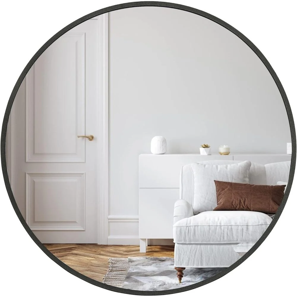 The wall mirror is made of high quality 4mm HD glass with no distortion and the brushed frame of circle mirror is premium anti-rust aluminum alloy.