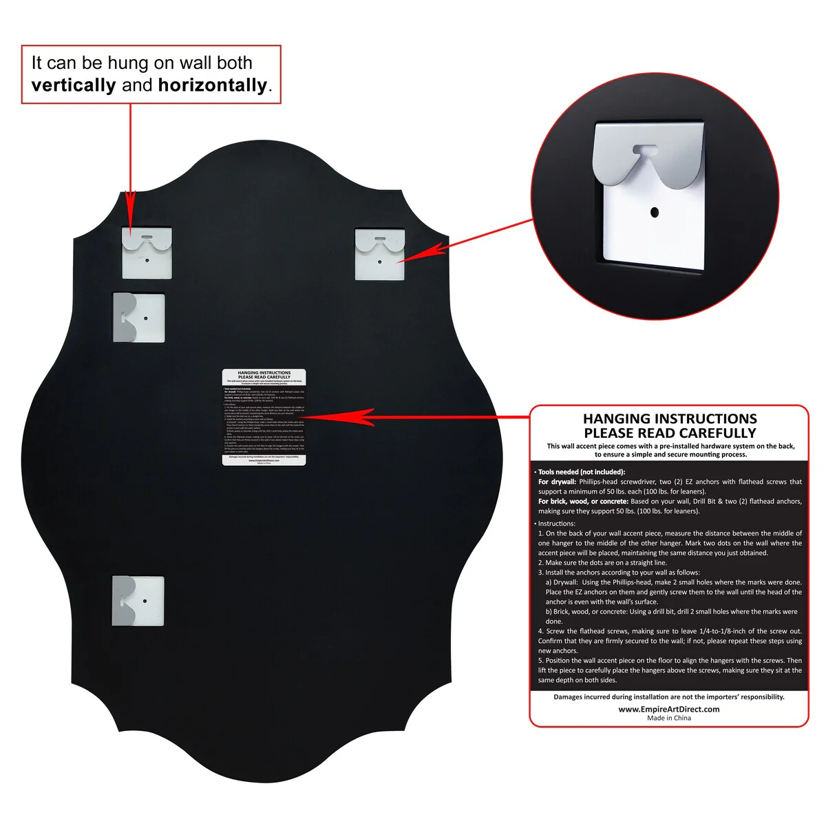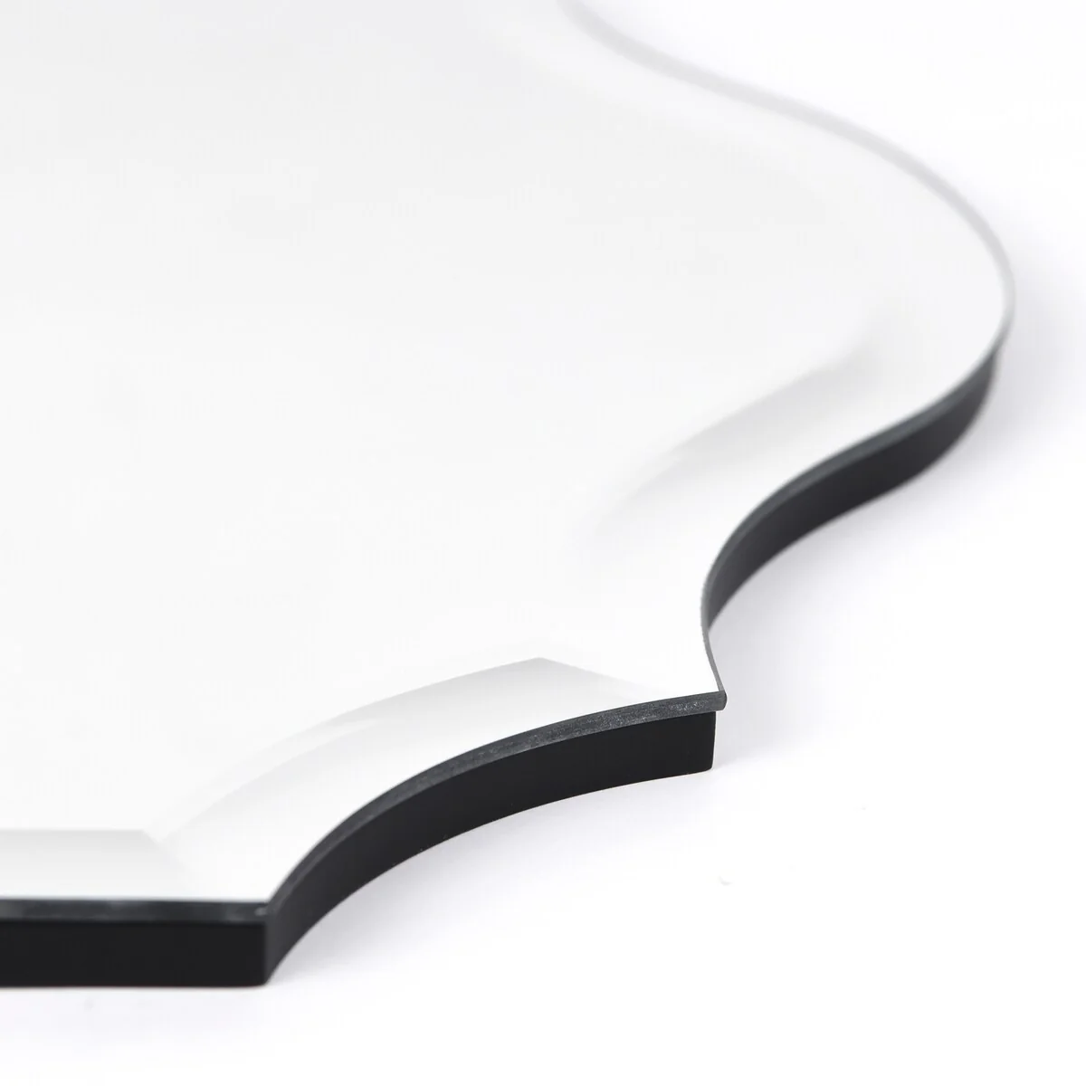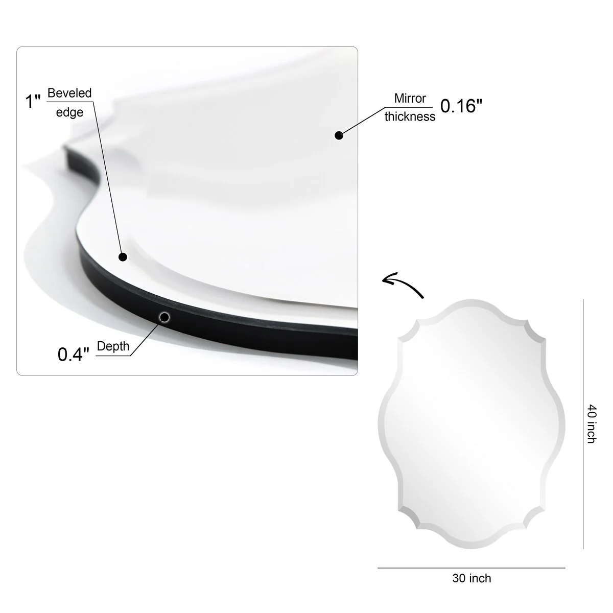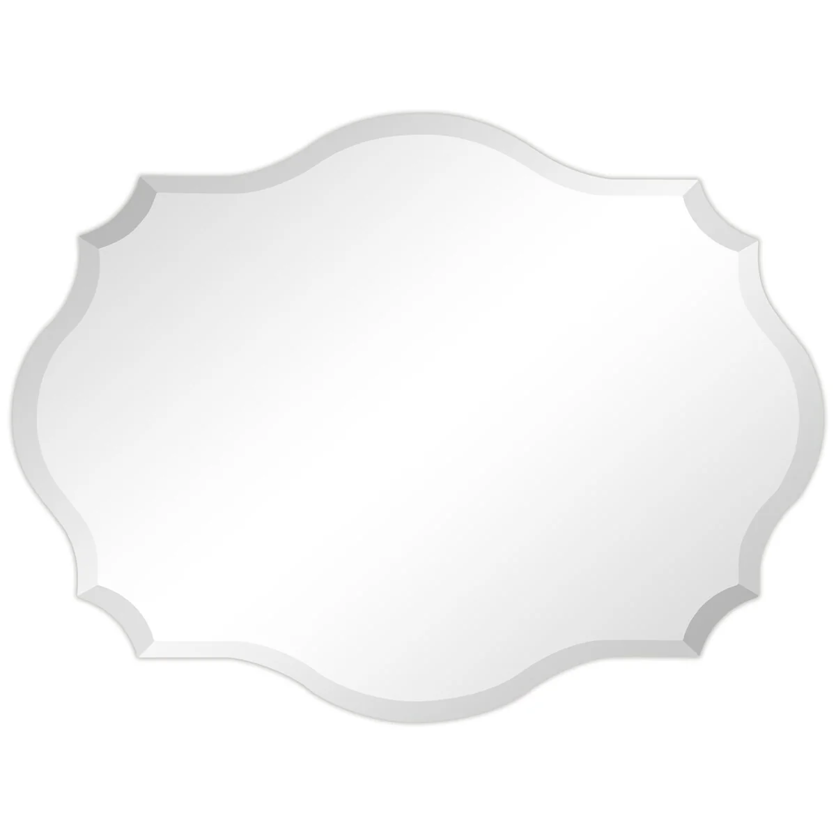 Add a touch of elegance to your home with this Frameless Beveled Oblong Elegant Scalloped Wall Mirror. Made of high-quality glass, this mirror features a unique scalloped oblong shape with a 1-inch beveled edge that adds a vintage touch to any room. The contemporary style fits seamlessly into any decor, while the frameless design makes it versatile to hang in any orientation. With four swallow-tailed hooks pre-installed on the back, it's easy to hang either vertically or horizontally. The mirror comes packaged with full protective corners and Styrofoam, ensuring safe delivery. Available in multiple sizes to fit any space.