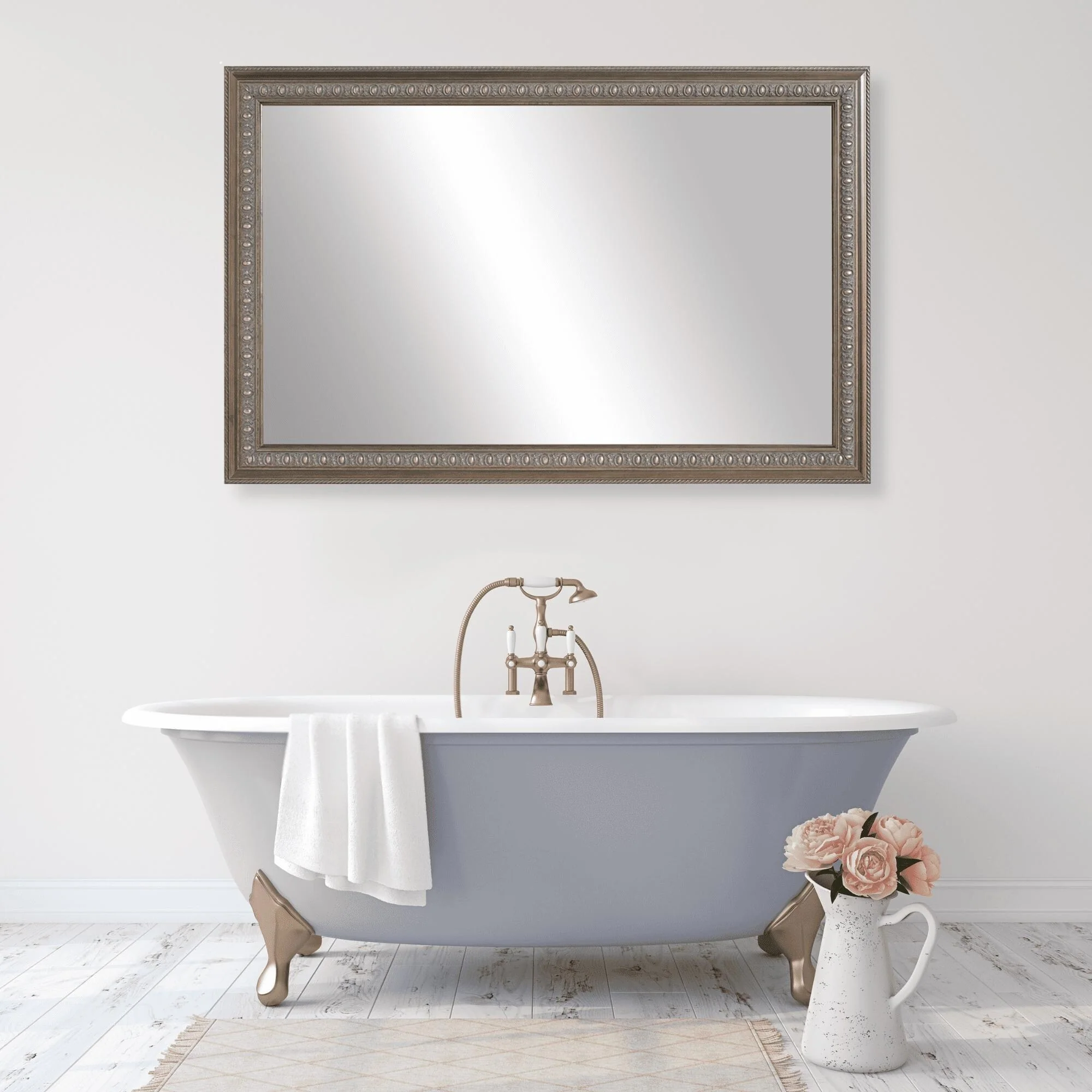 The ornate design of the Imperial framed mirror is enhanced by a multi-colored nickel finish. The raised details shine the brightest, ensuring that you can see the graceful curves that complement this design.�