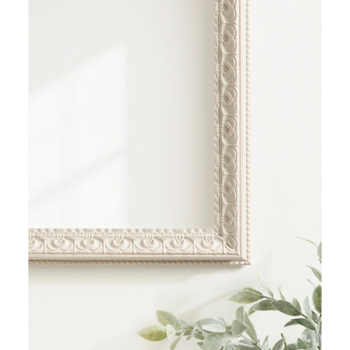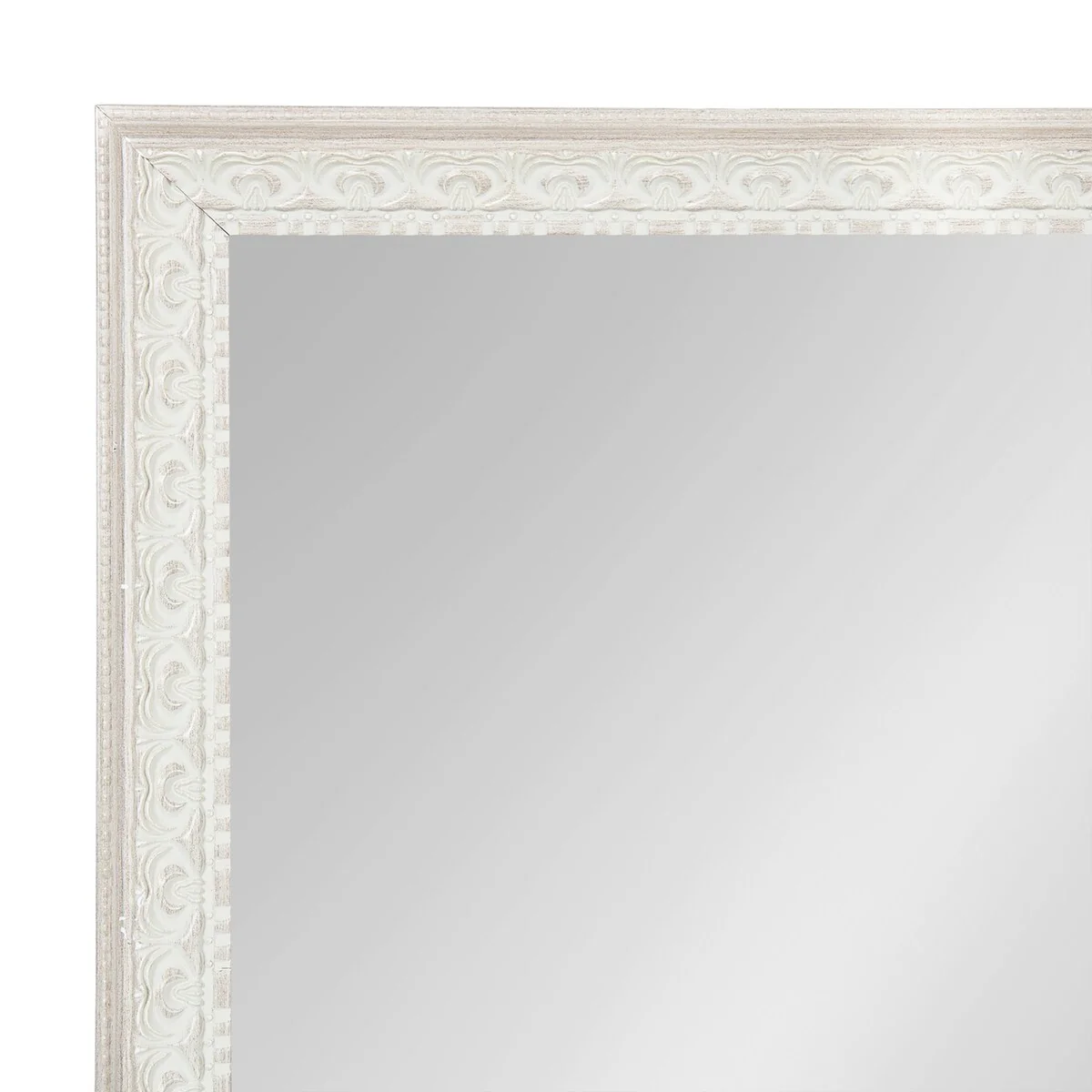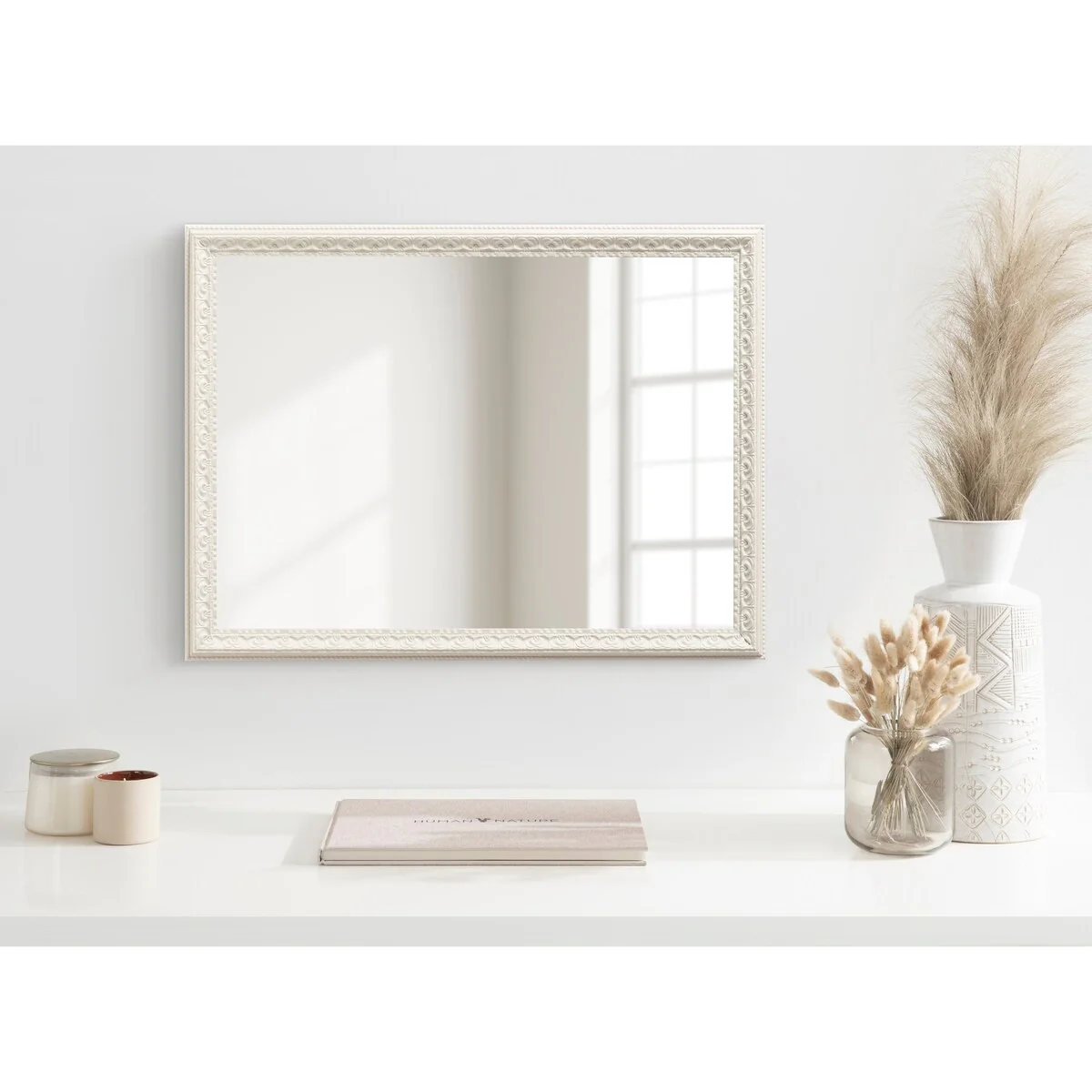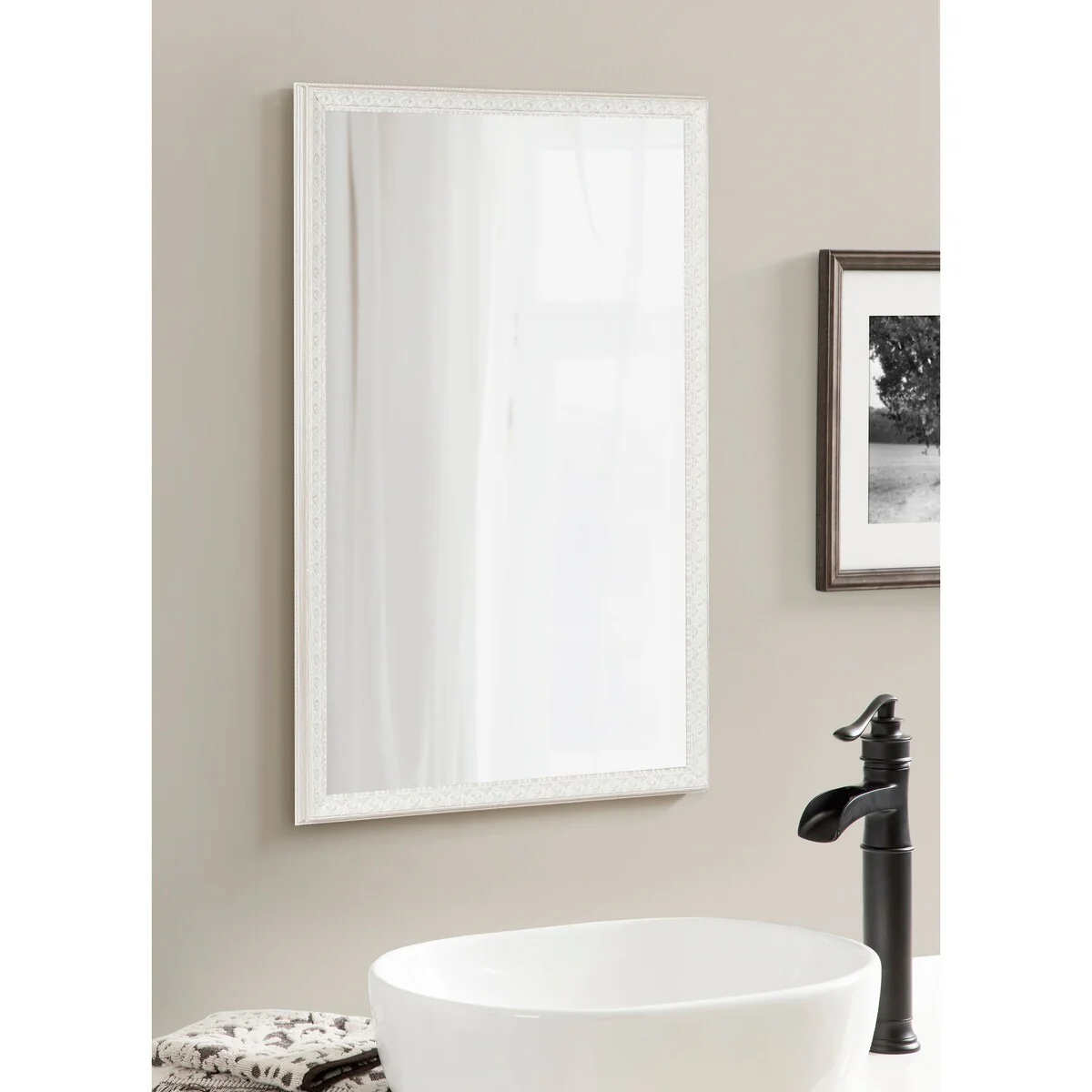 Enhance your home decor with the stunning Kate and Laurel Johann rectangle wall mirror. The rectangular shape of the mirror allows for versatile hanging options, making it the perfect addition to any room in your home. Hang it vertically in your bathroom or horizontally in your entryway to create an accent piece that is both functional and beautiful. Constructed with high-quality materials, this mirror is durable and designed to last. The intricate detailing and unique design of the frame are crafted to impress, adding a touch of sophistication to any room in your home. The mirror is easy to hang in just minutes with the attached D-ring hangers. This traditional rectangle wall mirror is perfect for adding depth, brightness, and character to your space. It is also a great gift for loved ones who appreciate timeless elegance and style. Measuring 18 inches wide by 24 inches high, this mirror boasts a vintage ornate design with an embossed frame and textured finish in a soft white hue, offering a touch of elegance to any space. This wall mirror is more than just a mirror; it is a statement piece that adds a touch of luxury and sophistication to your home decor. To protect the unique, hand-applied finish, be sure to only clean the frame with a dry cloth.