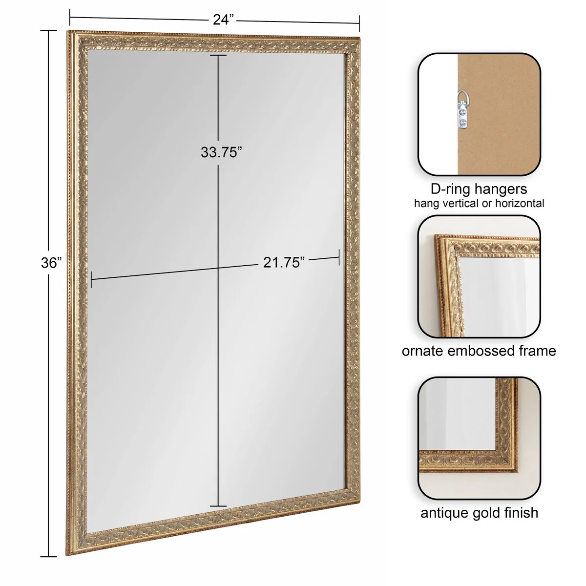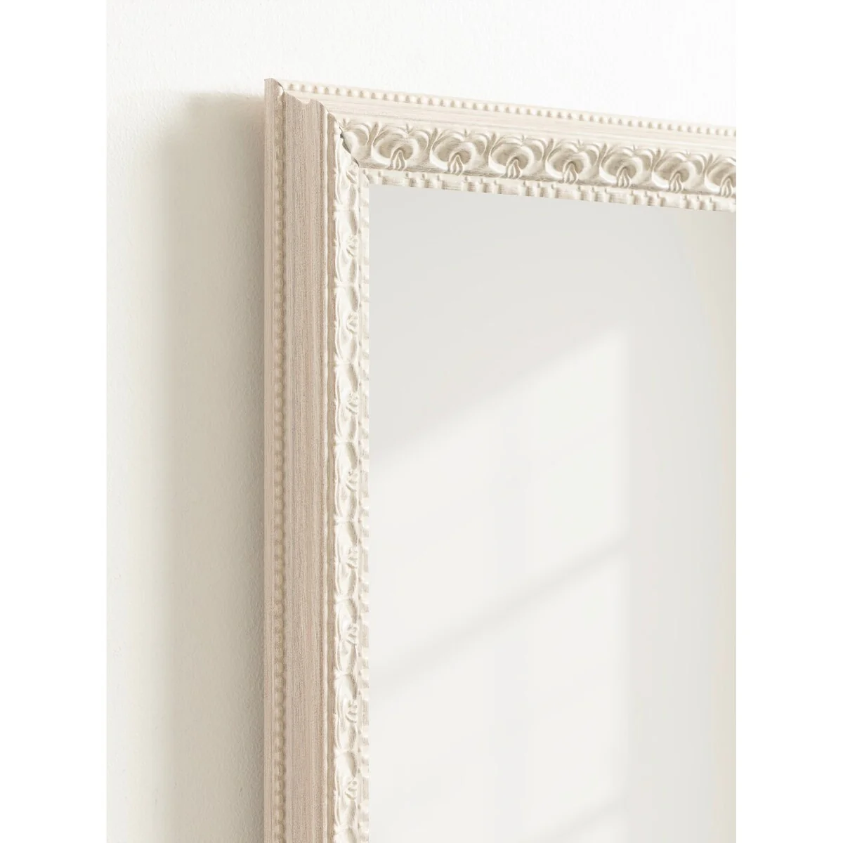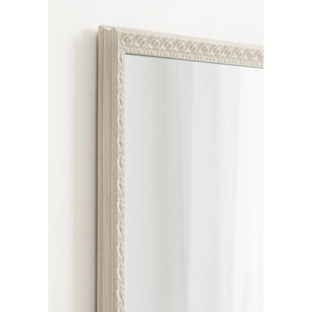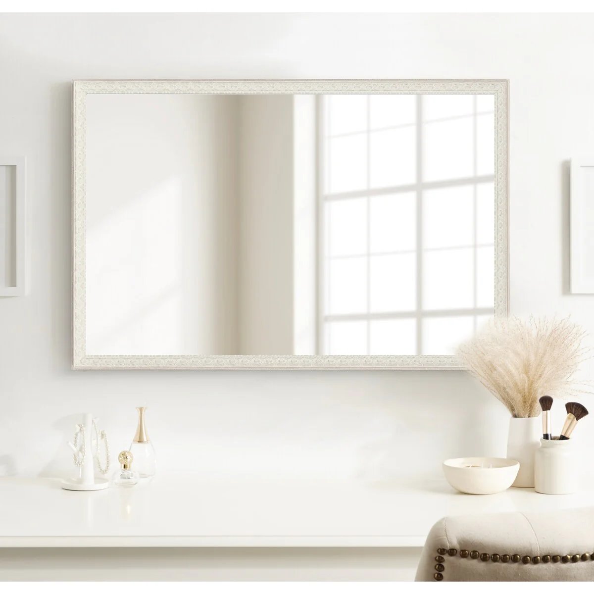 Enhance your home decor with the stunning Kate and Laurel Johann rectangle wall mirror. The rectangular shape of the mirror allows for versatile hanging options, making it the perfect addition to any room in your home. Hang it vertically in your bathroom or horizontally in your entryway to create an accent piece that is both functional and beautiful. Constructed with high-quality materials, this mirror is durable and designed to last. The intricate detailing and unique design of the frame are crafted to impress, adding a touch of sophistication to any room in your home. The mirror is easy to hang in just minutes with the attached D-ring hangers. This traditional rectangle wall mirror is perfect for adding depth, brightness, and character to your space. It is also a great gift for loved ones who appreciate timeless elegance and style. Measuring 18 inches wide by 24 inches high, this mirror boasts a vintage ornate design with an embossed frame and textured finish in a soft white hue, offering a touch of elegance to any space. This wall mirror is more than just a mirror; it is a statement piece that adds a touch of luxury and sophistication to your home decor. To protect the unique, hand-applied finish, be sure to only clean the frame with a dry cloth.