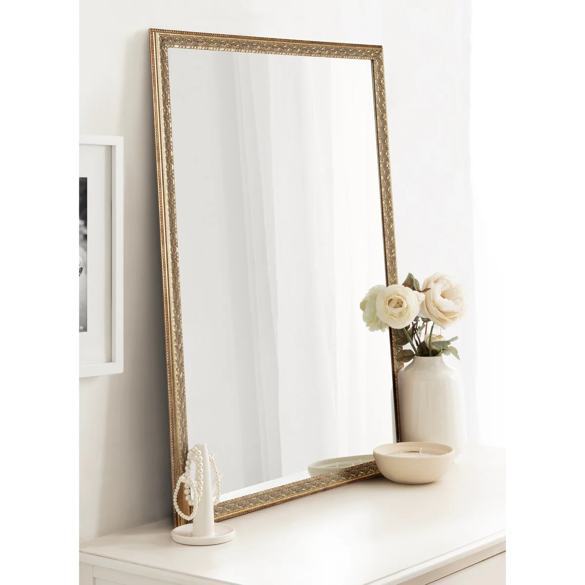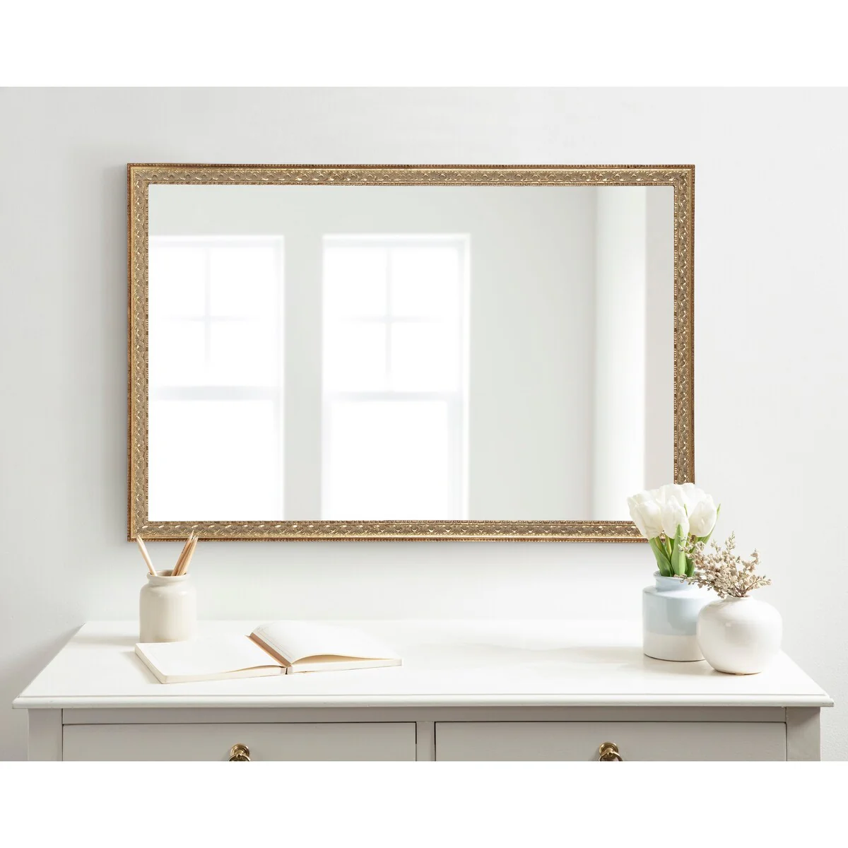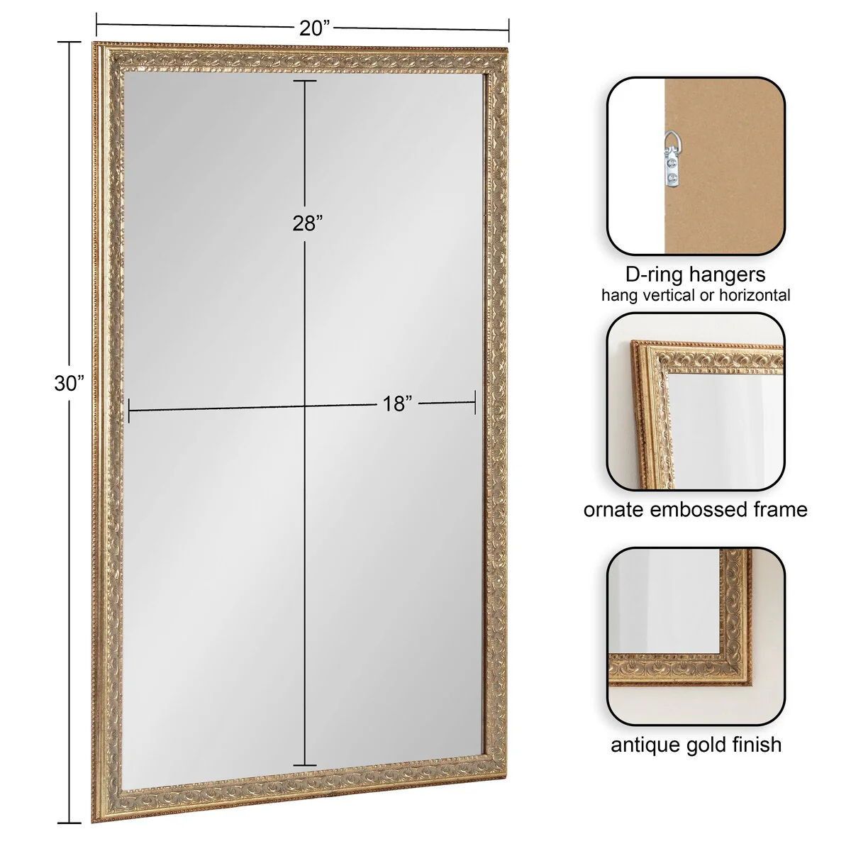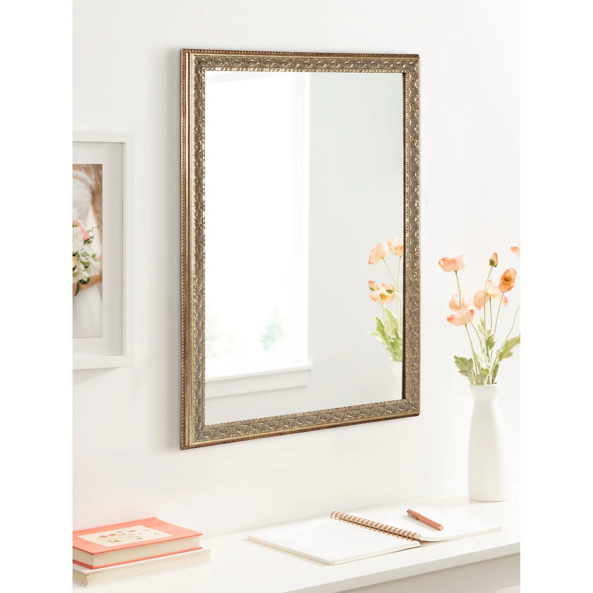 Enhance your home decor with the stunning Kate and Laurel Johann rectangle wall mirror. The rectangular shape of the mirror allows for versatile hanging options, making it the perfect addition to any room in your home. Hang it vertically in your bathroom or horizontally in your entryway to create an accent piece that is both functional and beautiful. Constructed with high-quality materials, this mirror is durable and designed to last. The intricate detailing and unique design of the frame are crafted to impress, adding a touch of sophistication to any room in your home. The mirror is easy to hang in just minutes with the attached D-ring hangers. This traditional rectangle wall mirror is perfect for adding depth, brightness, and character to your space. It is also a great gift for loved ones who appreciate timeless elegance and style. Measuring 18 inches wide by 24 inches high, this mirror boasts a vintage ornate design with an embossed frame and textured finish in a soft white hue, offering a touch of elegance to any space. This wall mirror is more than just a mirror; it is a statement piece that adds a touch of luxury and sophistication to your home decor. To protect the unique, hand-applied finish, be sure to only clean the frame with a dry cloth.